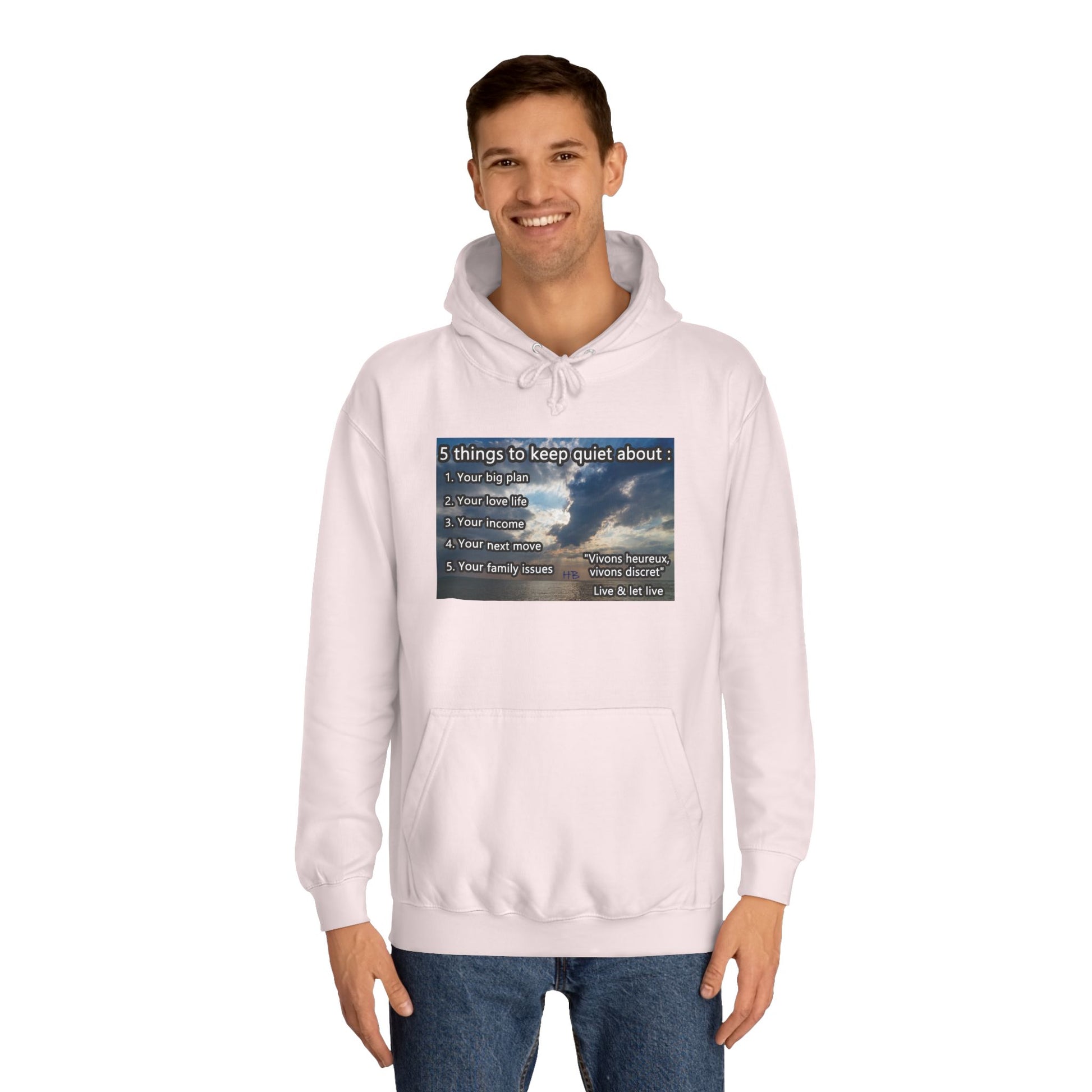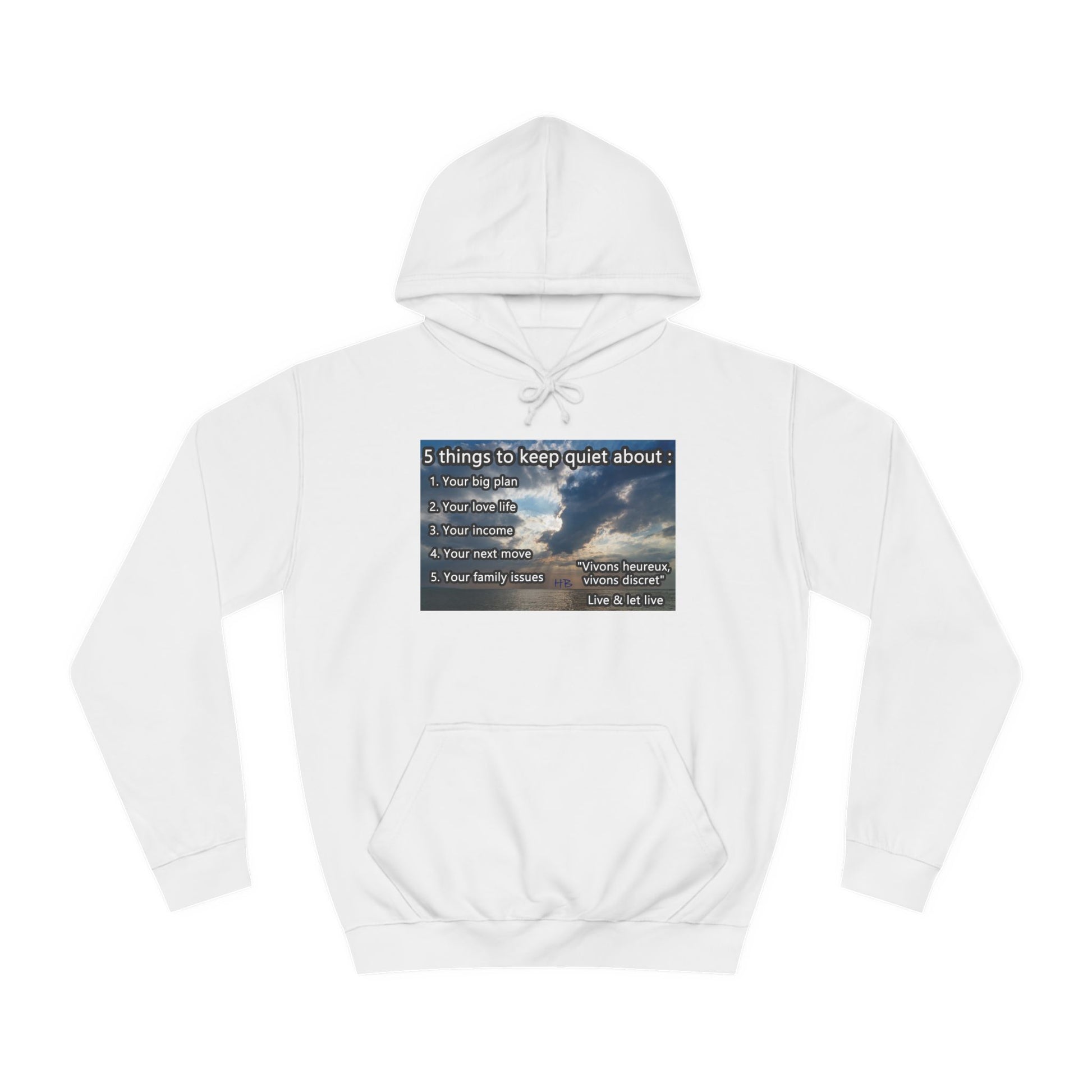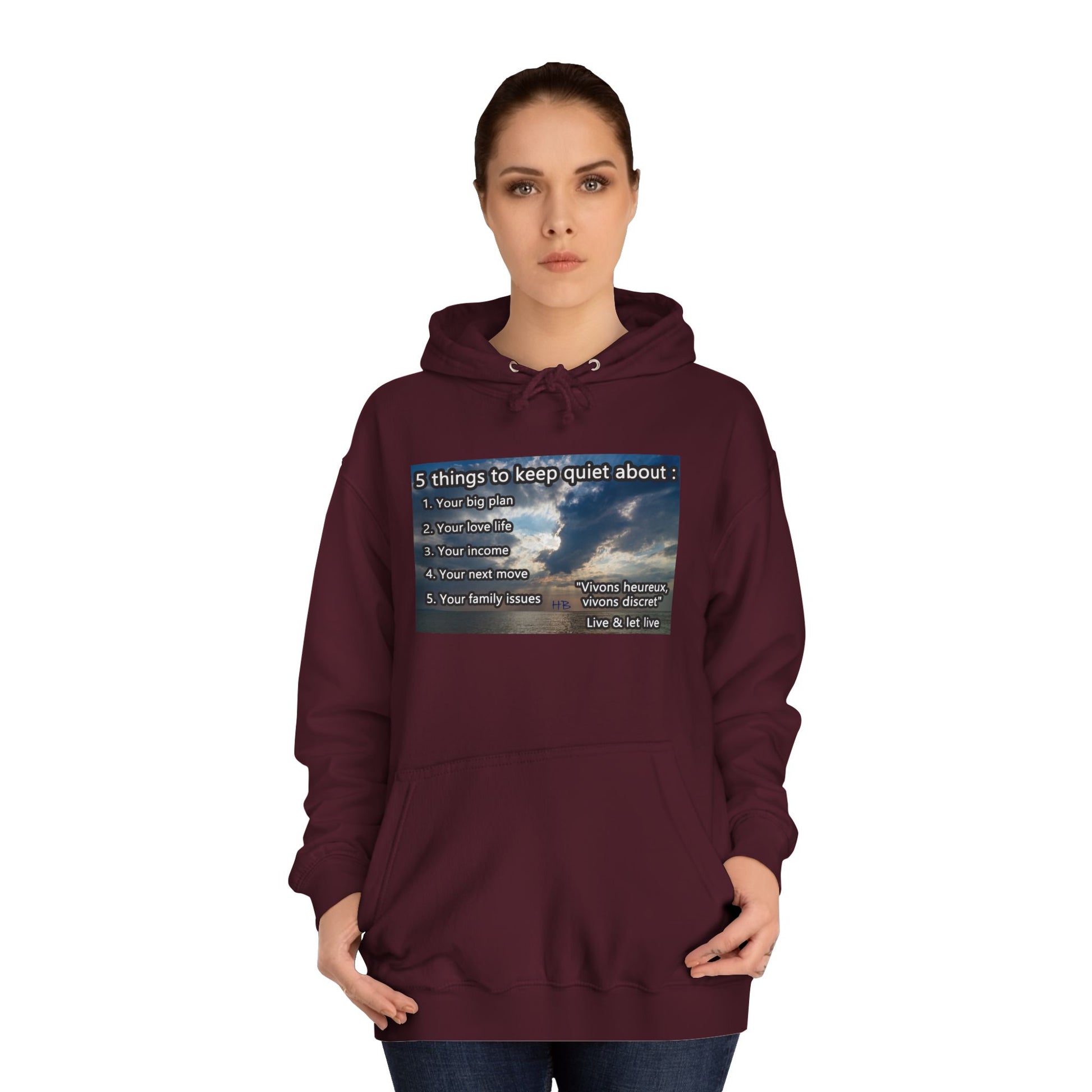 5 things to keep discret or quiet about. Vivons heureux vivons cacher/discret live and let live (Hoodie - Cozy and Durable)
