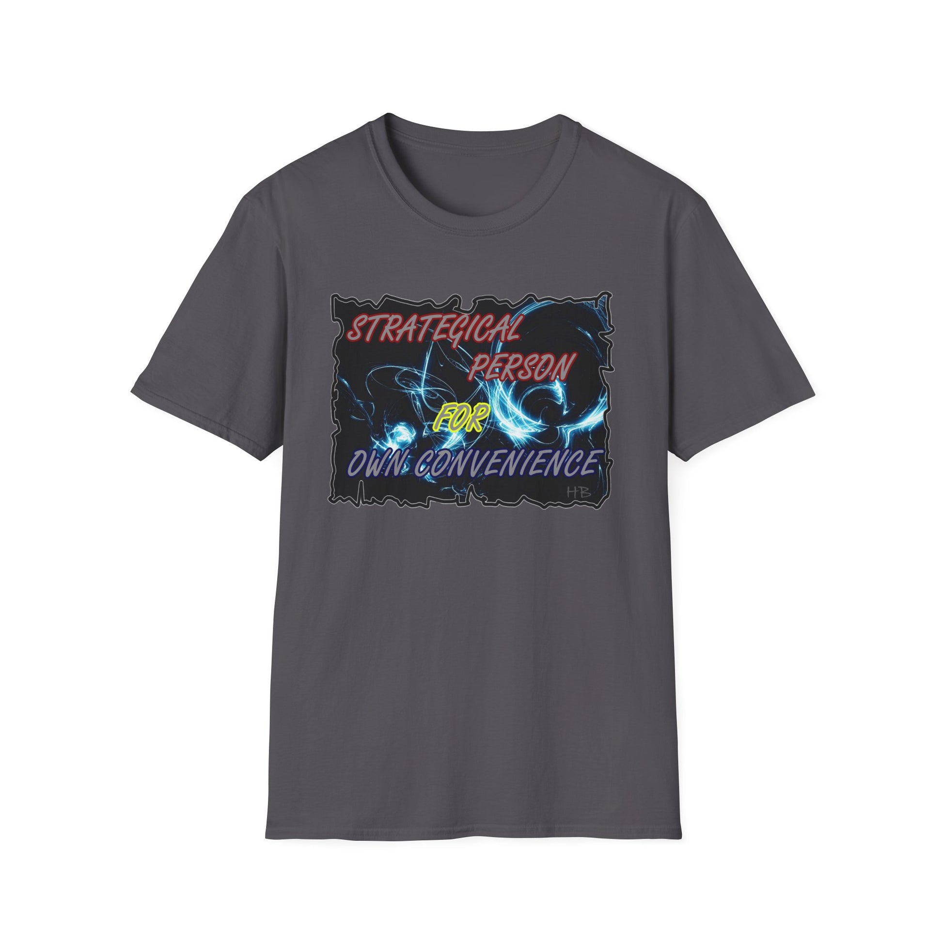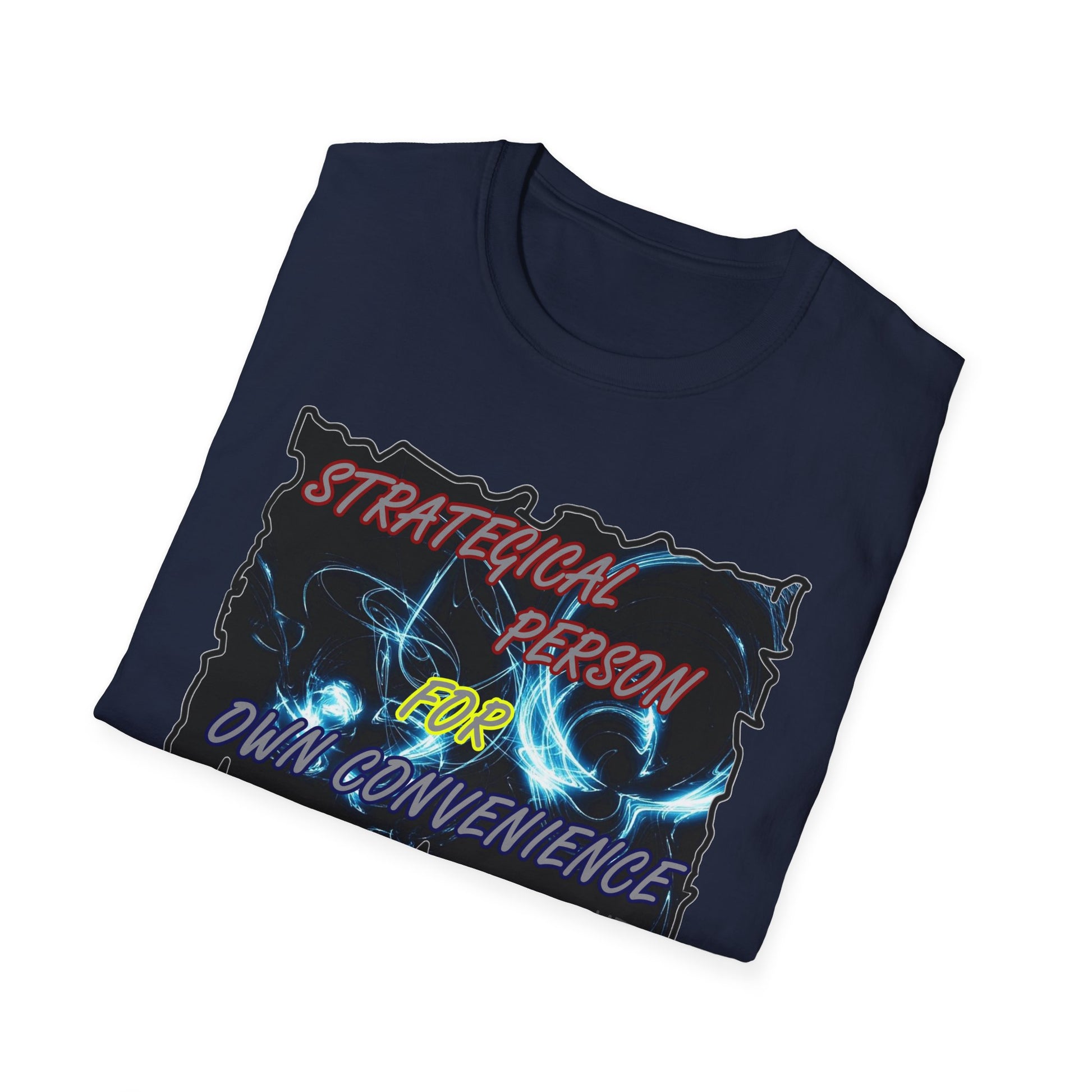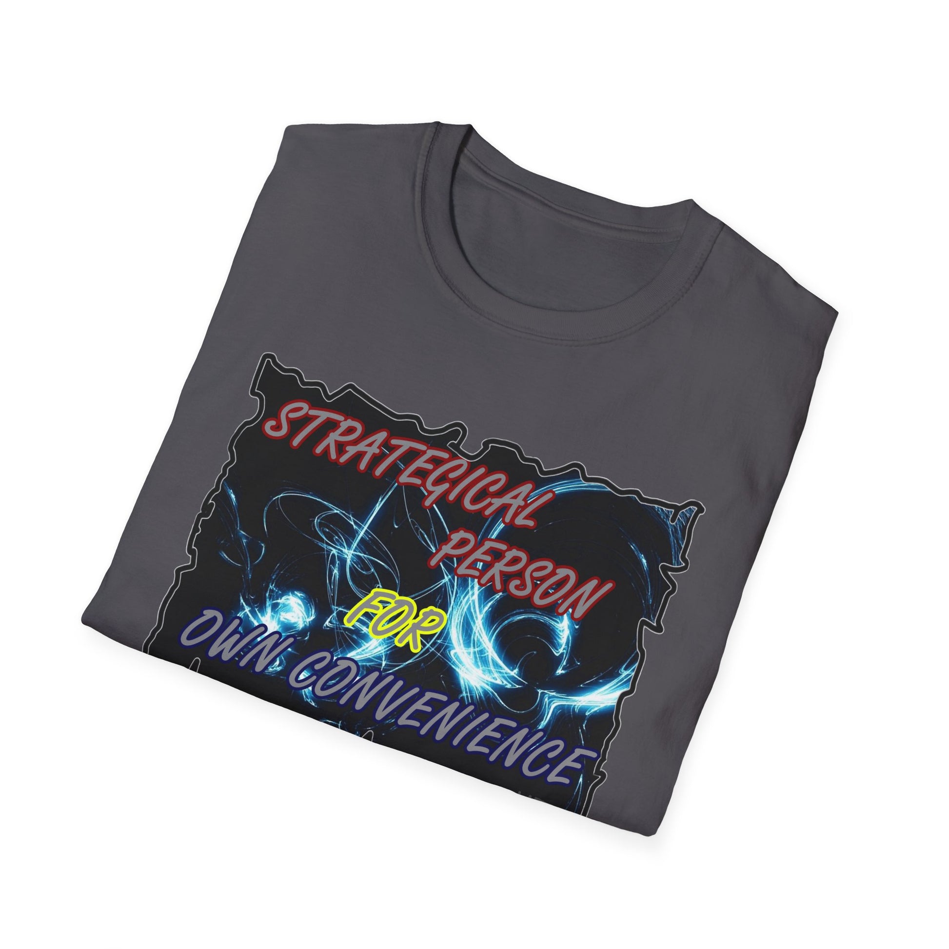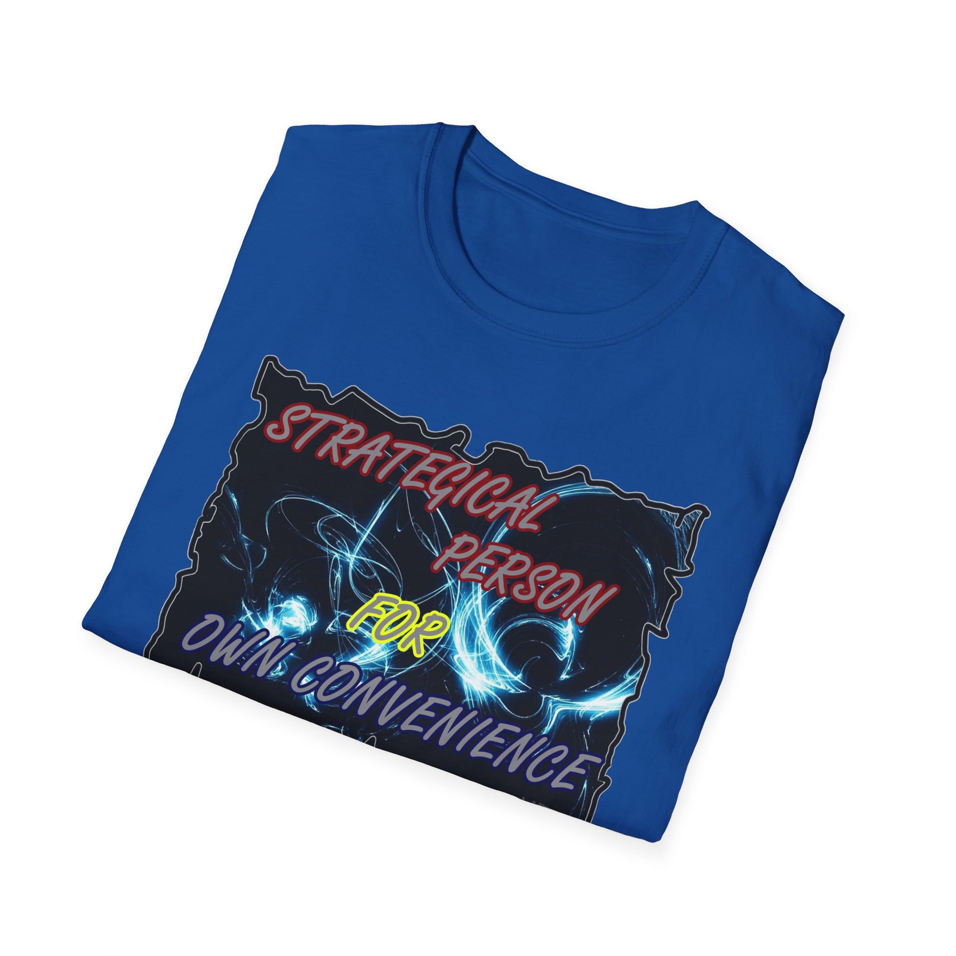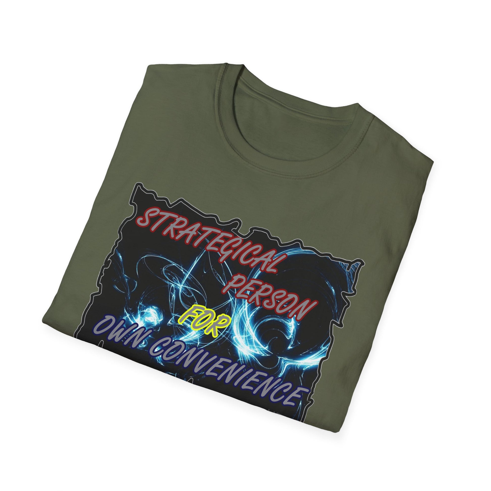 Introducing our latest addition to the clothing collection - the "Strategical person for own convenience" tee shirt. Crafted with premium quality fabric, this tee shirt boasts a comfortable and breathable fit that's perfect for any casual occasion.