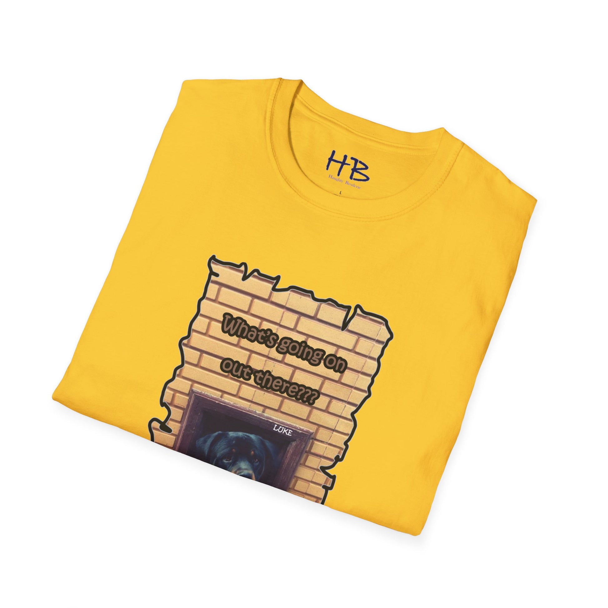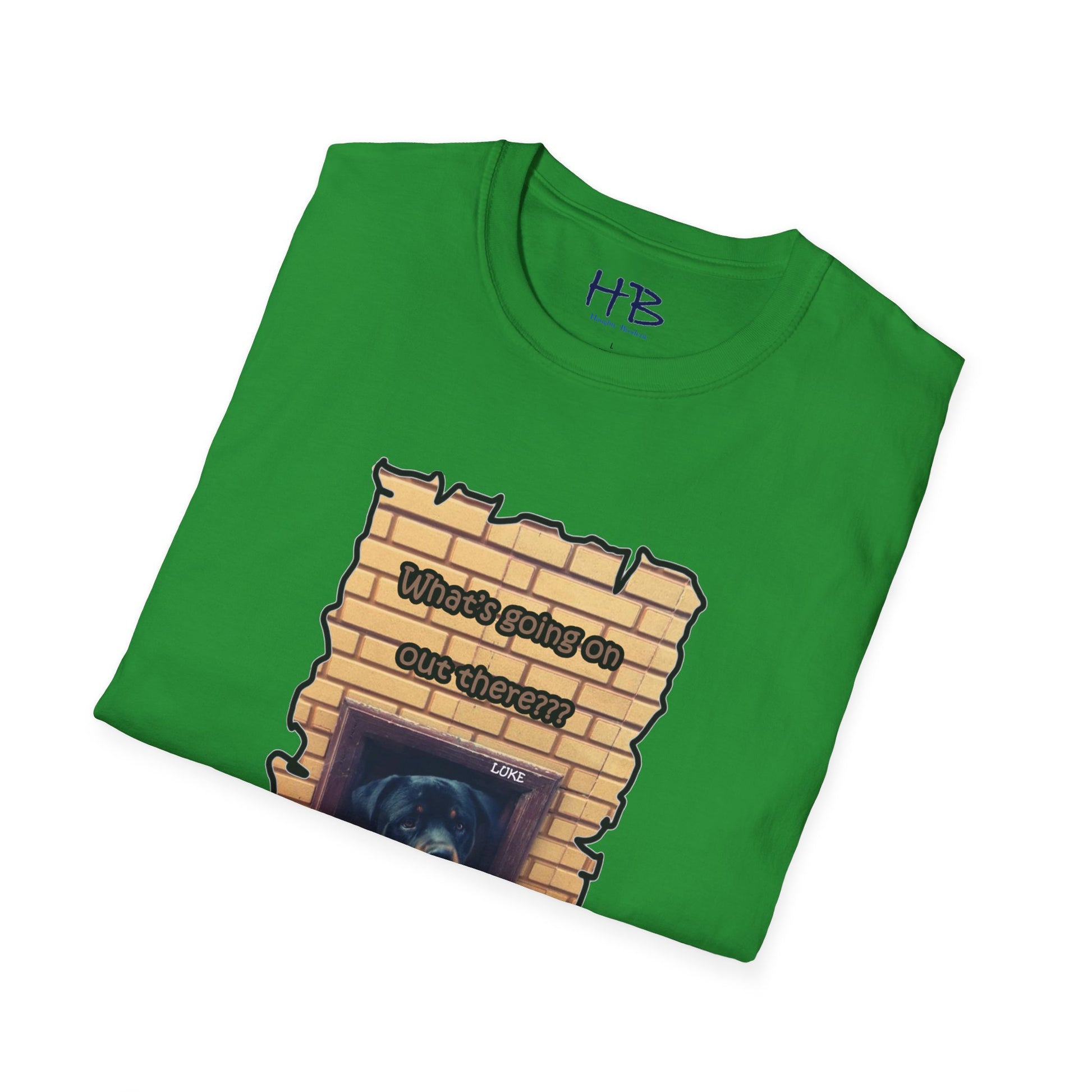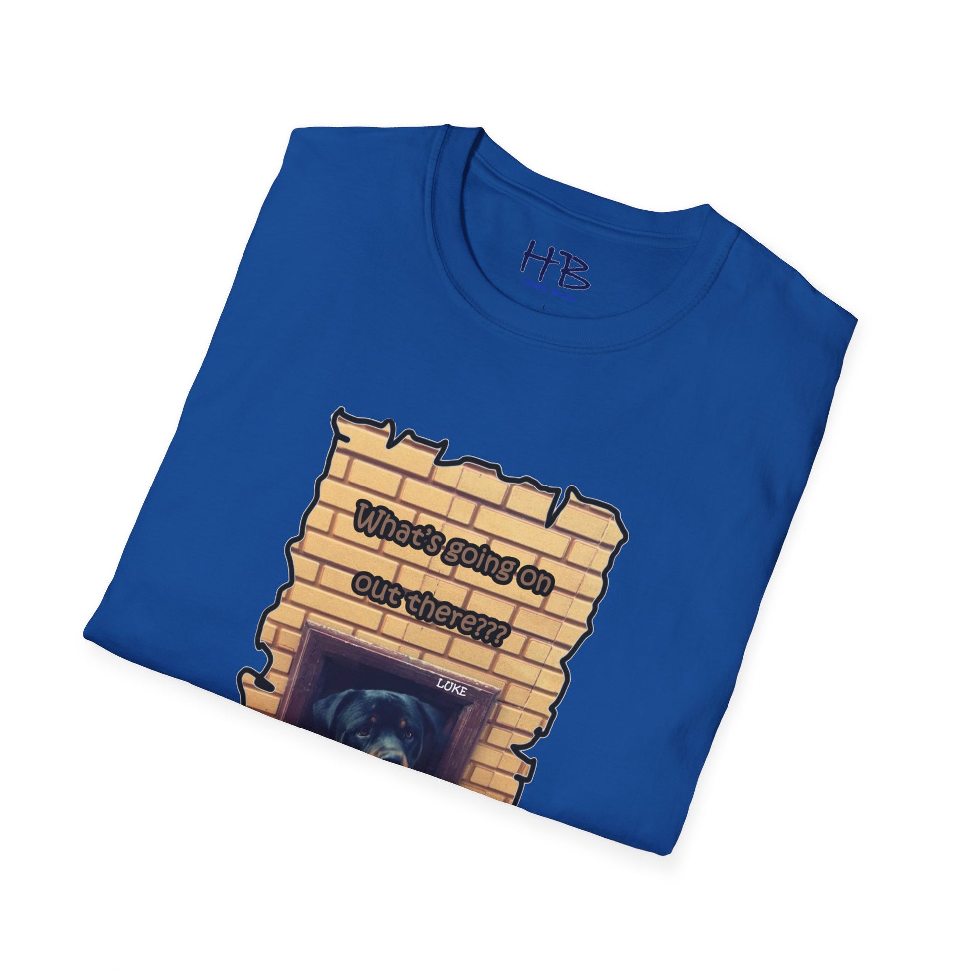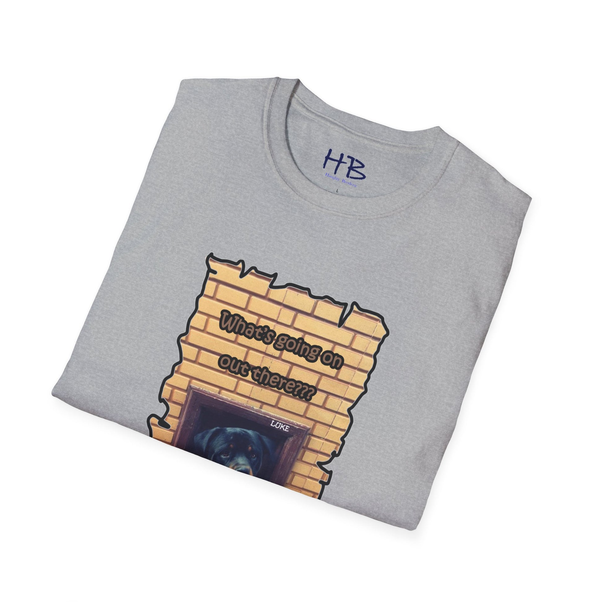 Step into a world of wonder with our enchanting Luke's Awakening Tee, featuring the marvelous Rothweiller, Luke, who takes center stage as he curiously peeks through the back window of his cozy dog niche. This heartwarming image captures the very essence of companionship and curiosity, making it a perfect addition to your wardrobe.