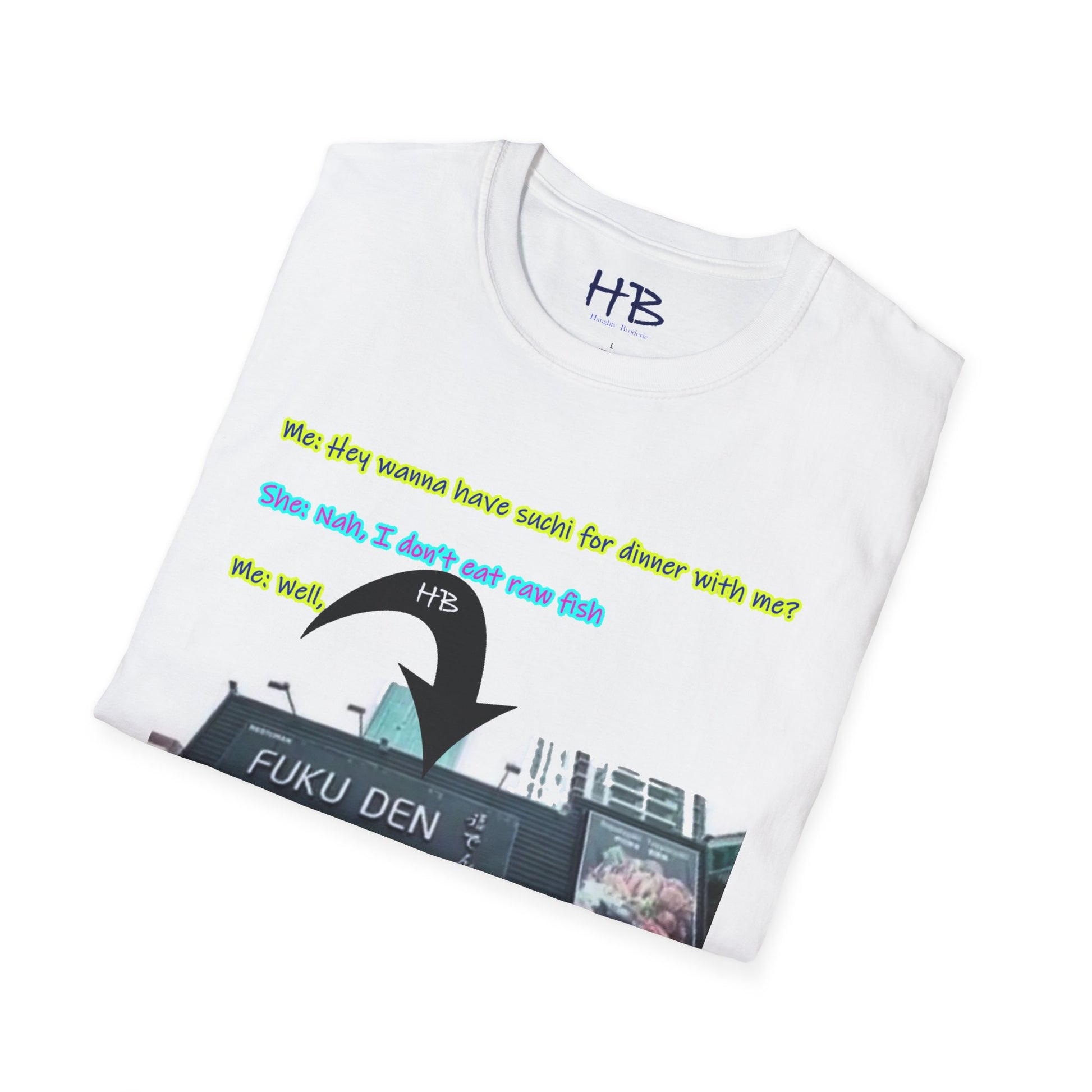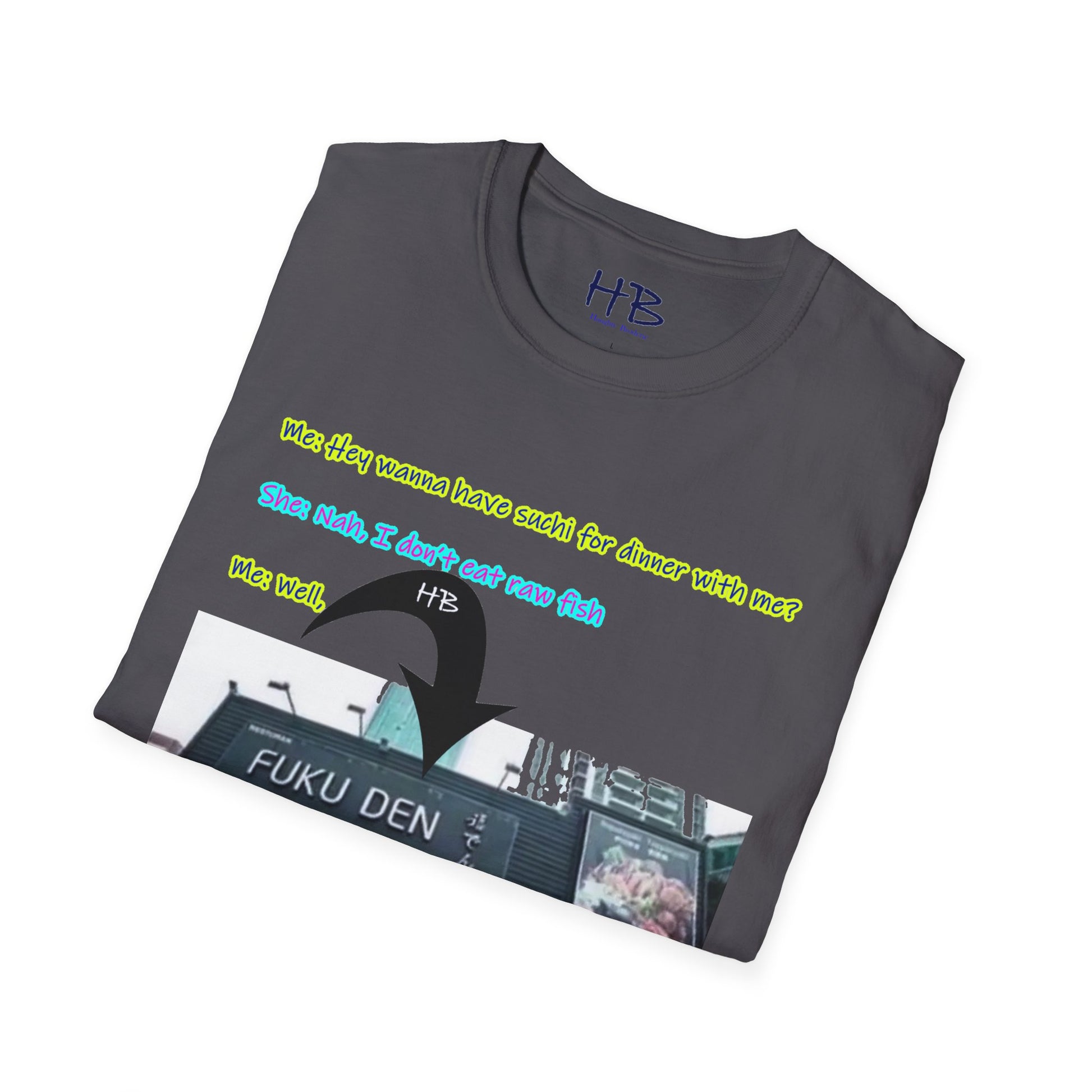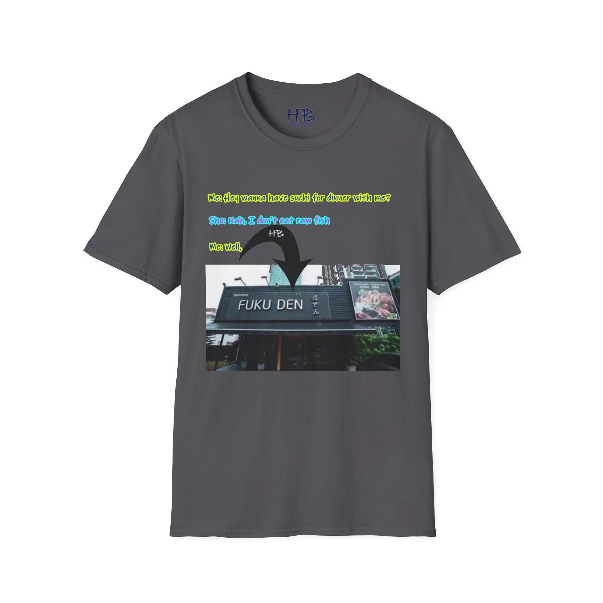 "Streetwise Laughter: The 'Sushi or FUKU DEN?' Shirt"