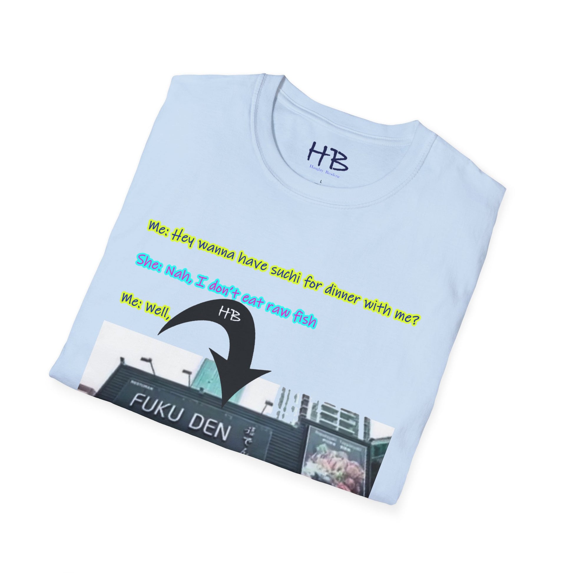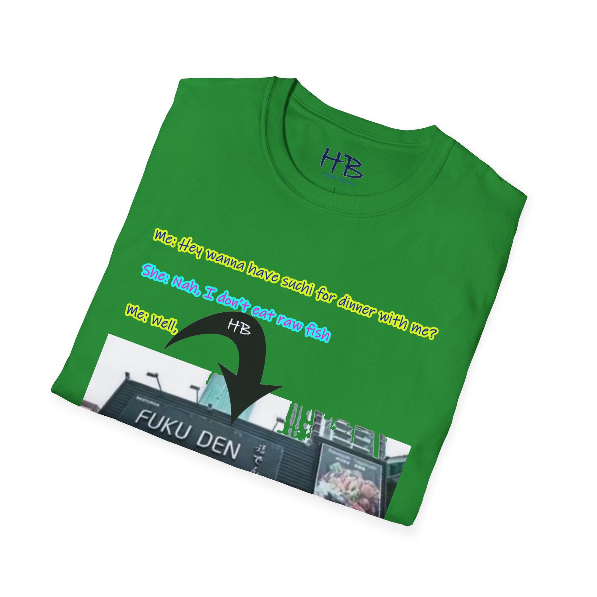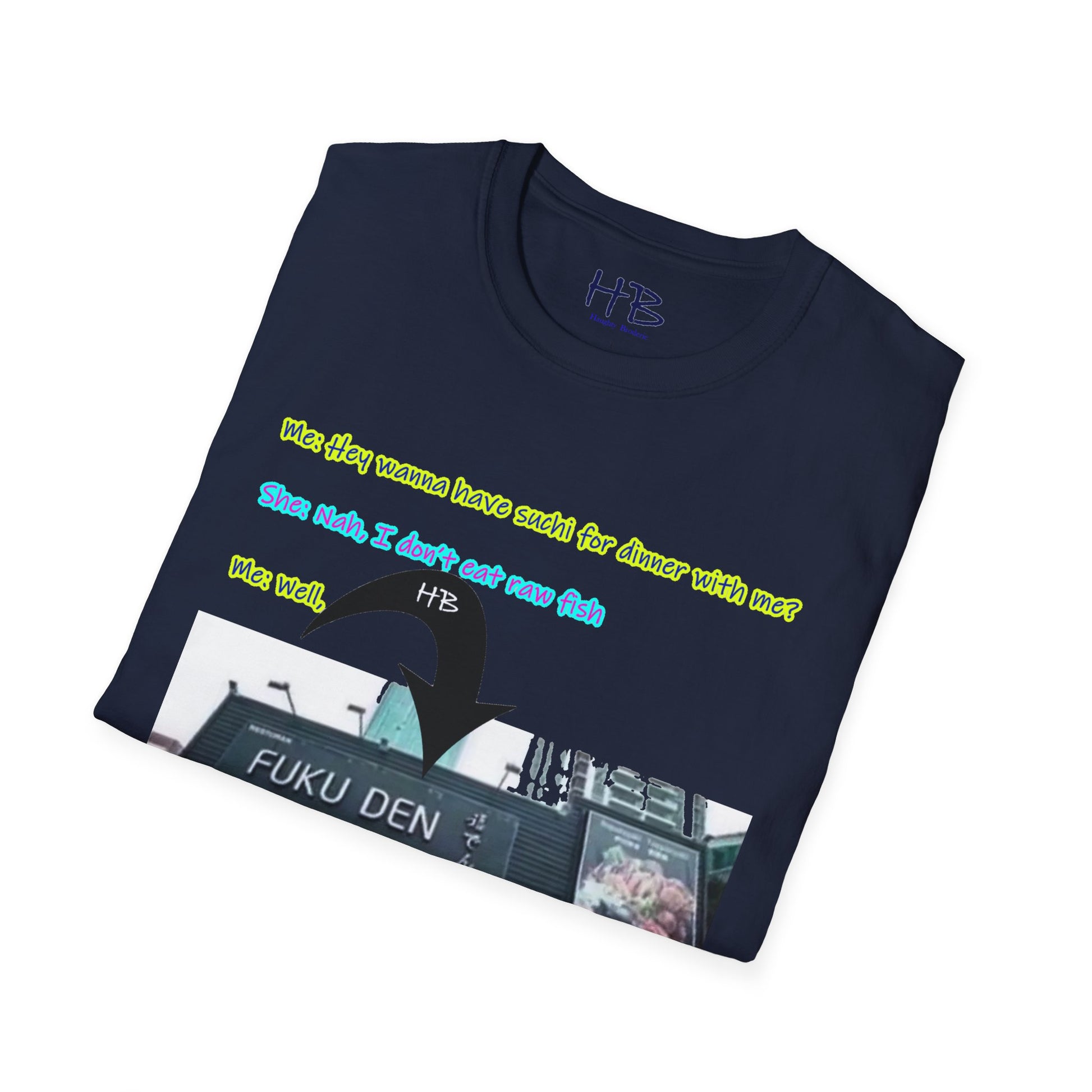 "Streetwise Laughter: The 'Sushi or FUKU DEN?' Shirt"