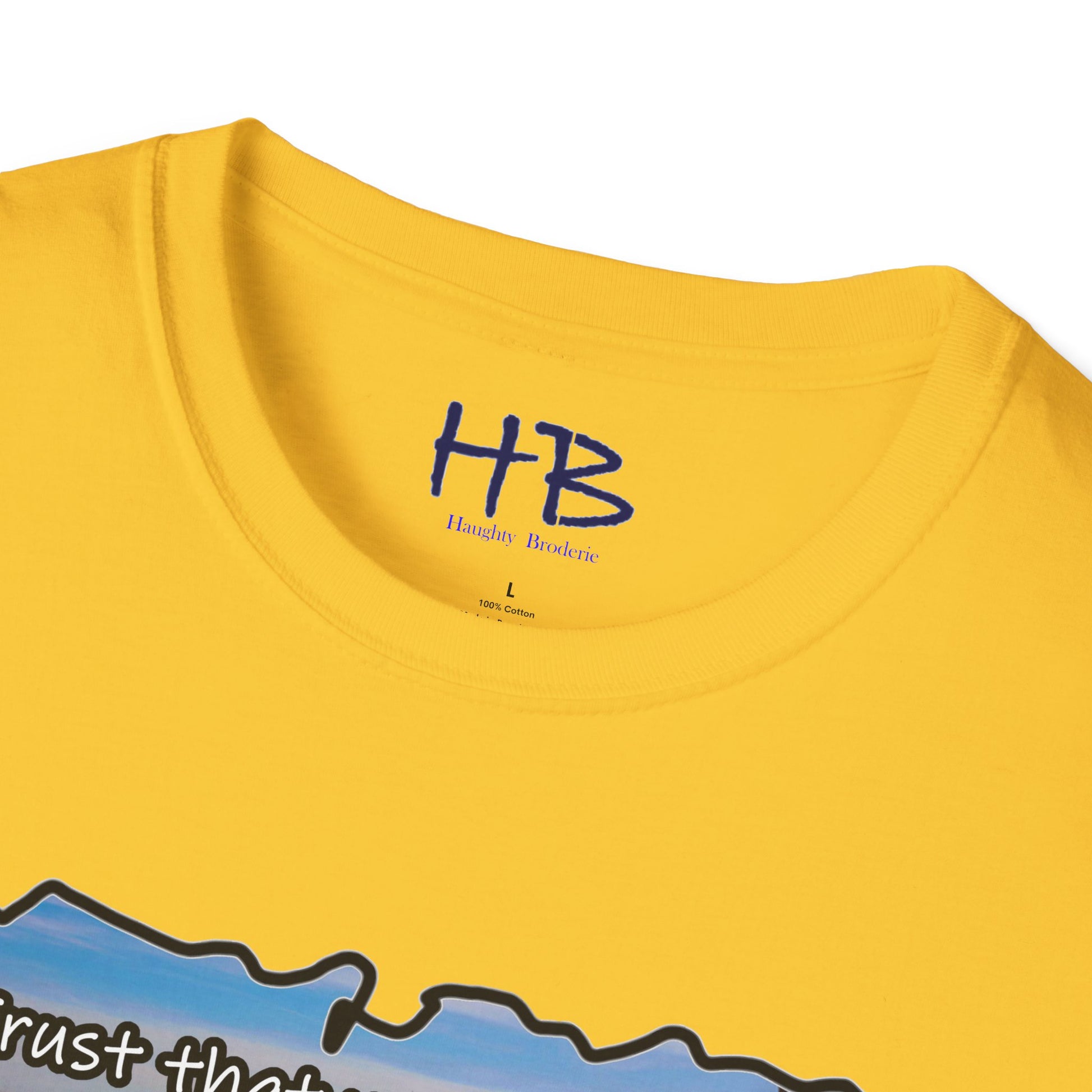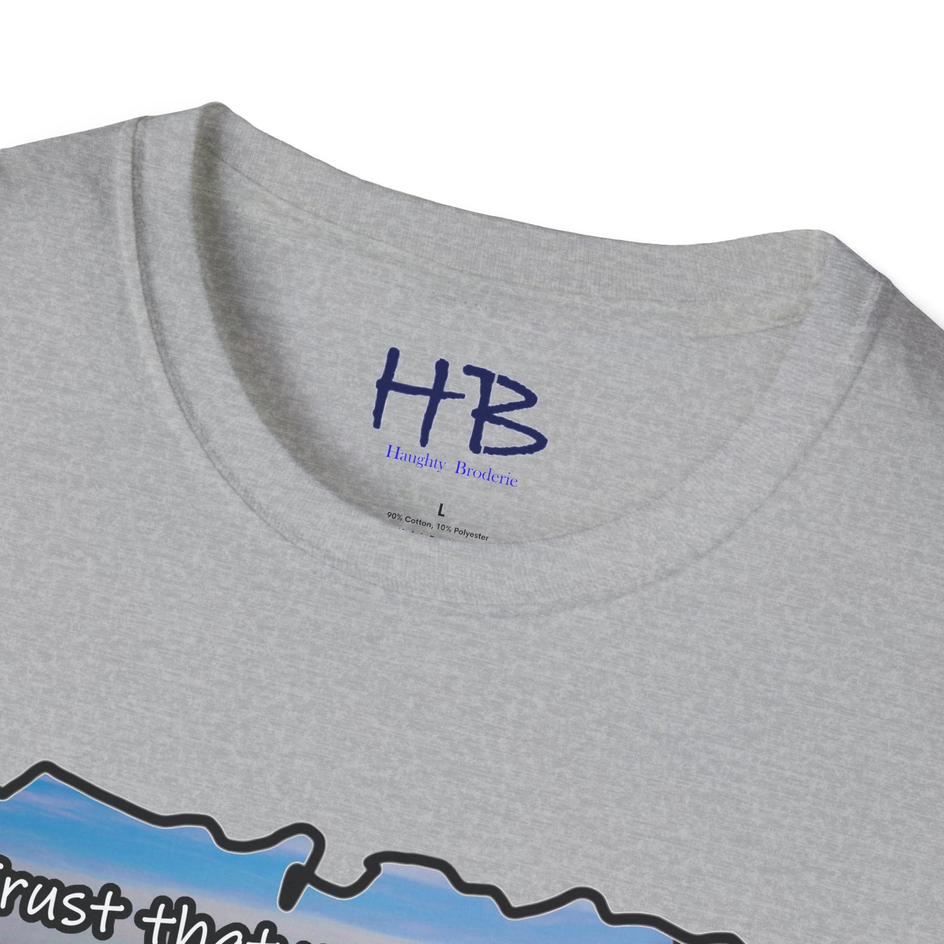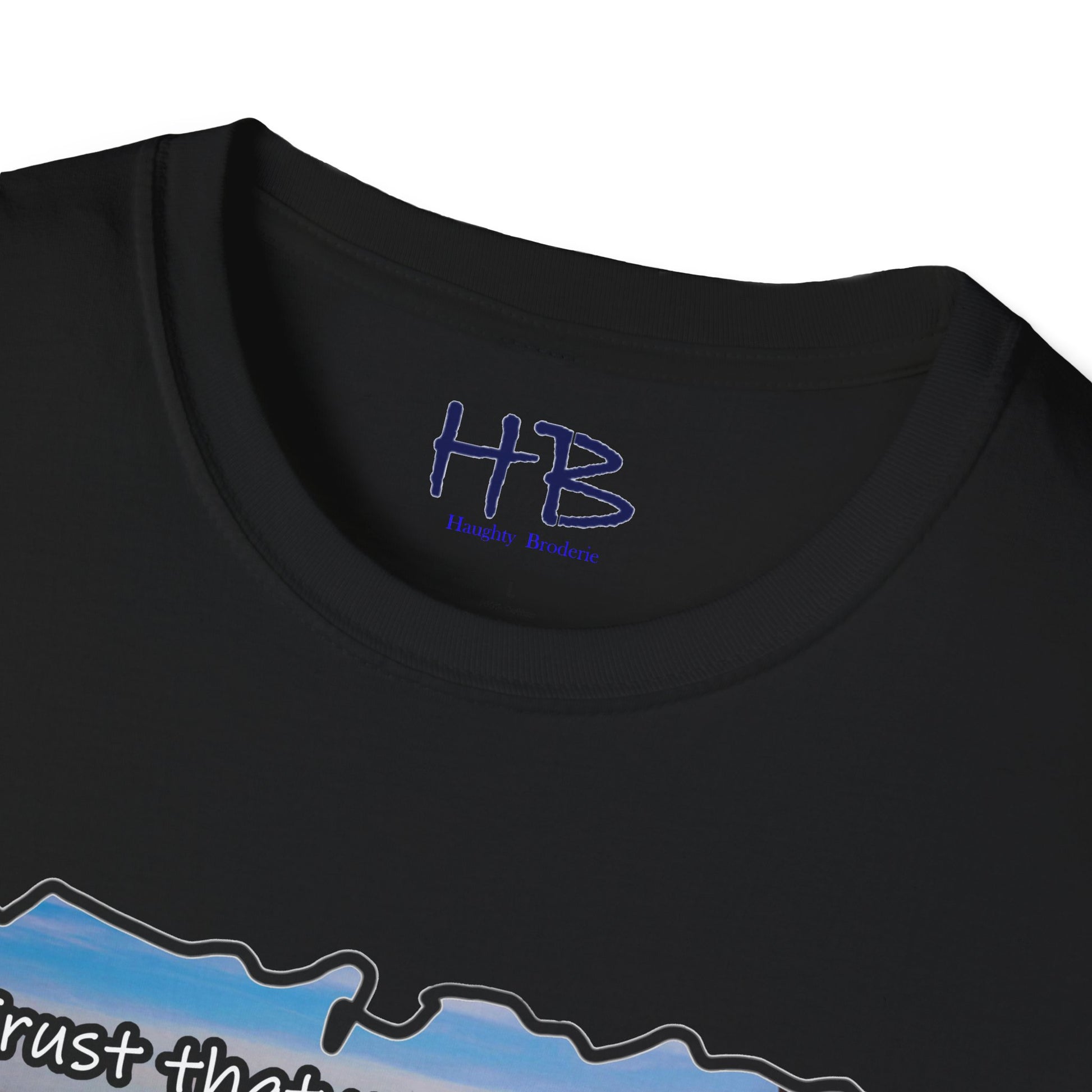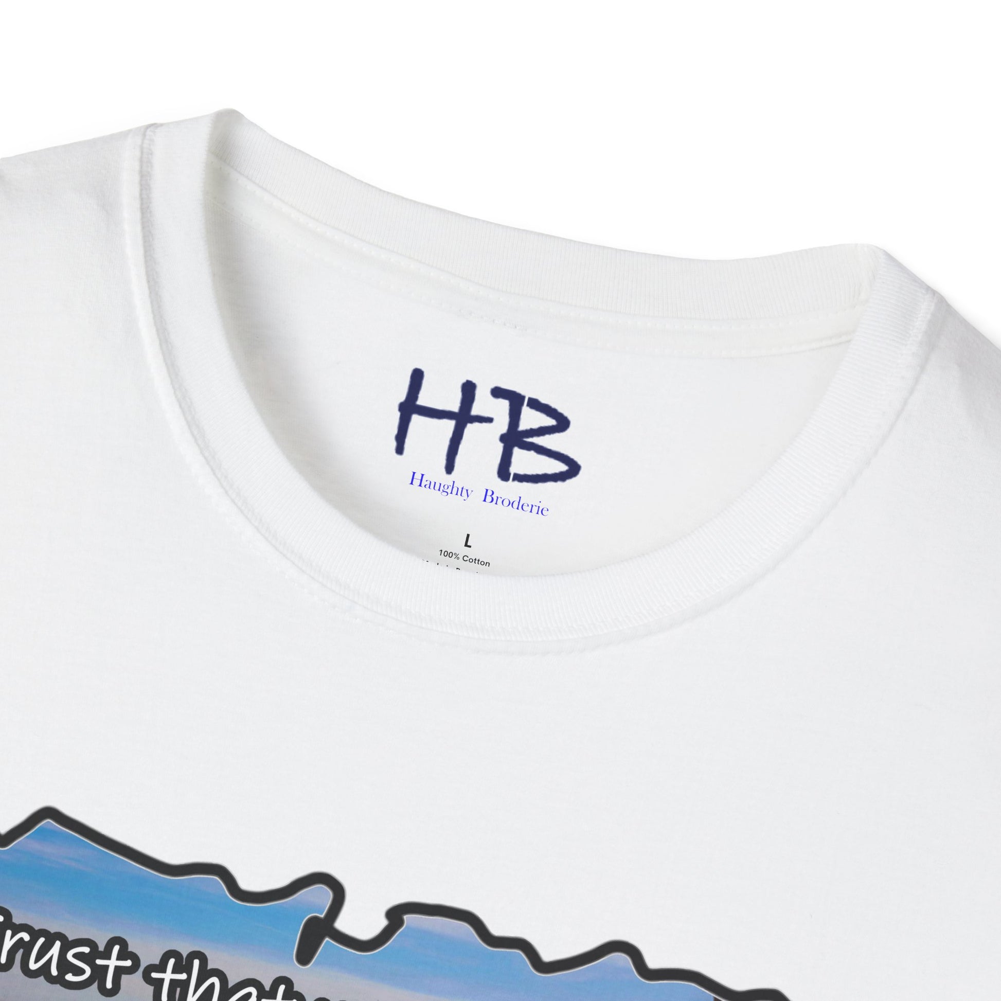 This wearable masterpiece goes beyond being just a garment; it's an embodiment of aspiration and dedication. The central message, elegantly scripted amid this picturesque panorama, reads, "Trust that your sacrifices & hard work will pay off one day." It's a rallying cry for those who navigate the challenging waters of hard work, bypassing the allure of fleeting pleasures to forge a path toward the realization of their most coveted desires.