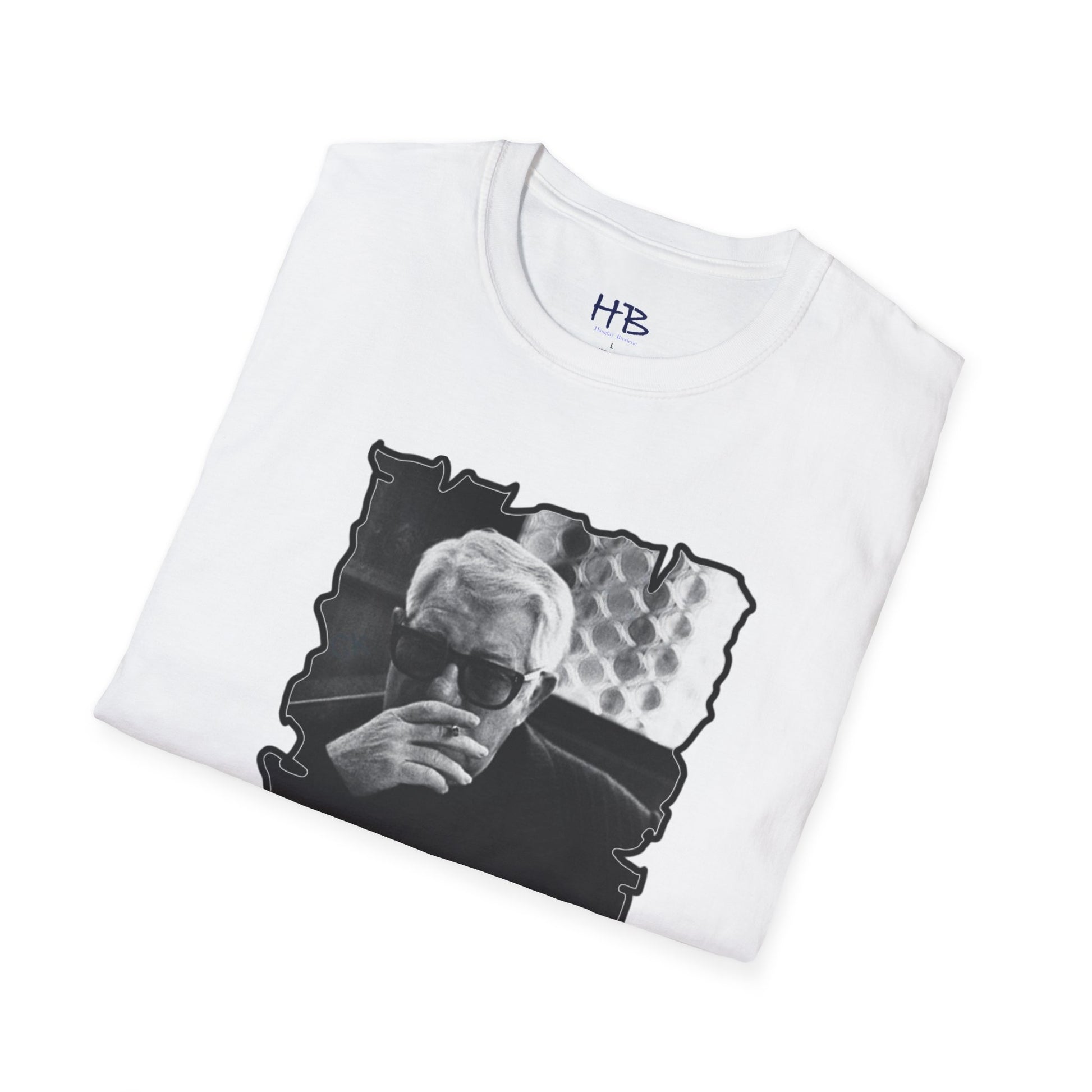 Introducing our latest tee shirt design featuring a knowledgeable elderly gentleman adorned in vintage shades.