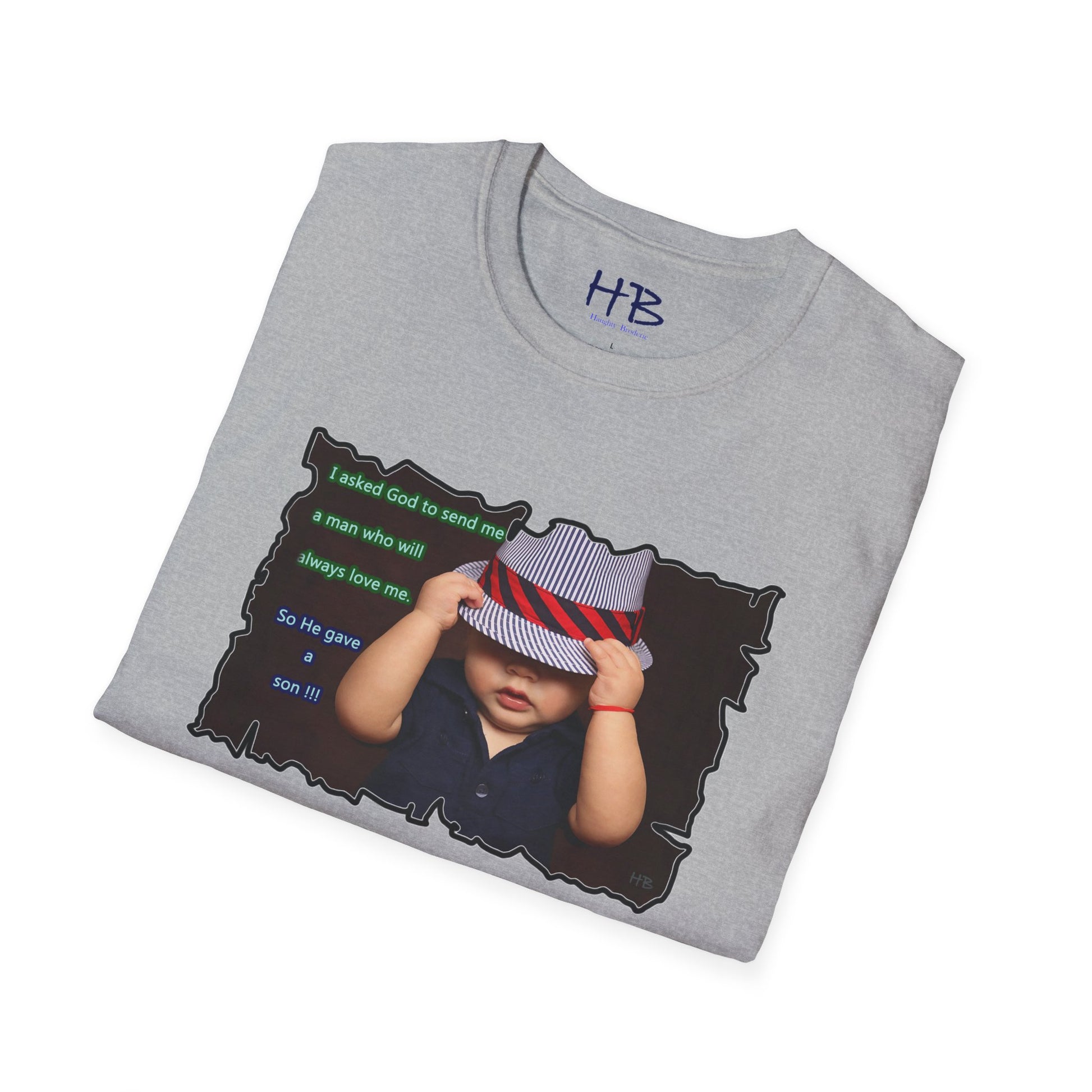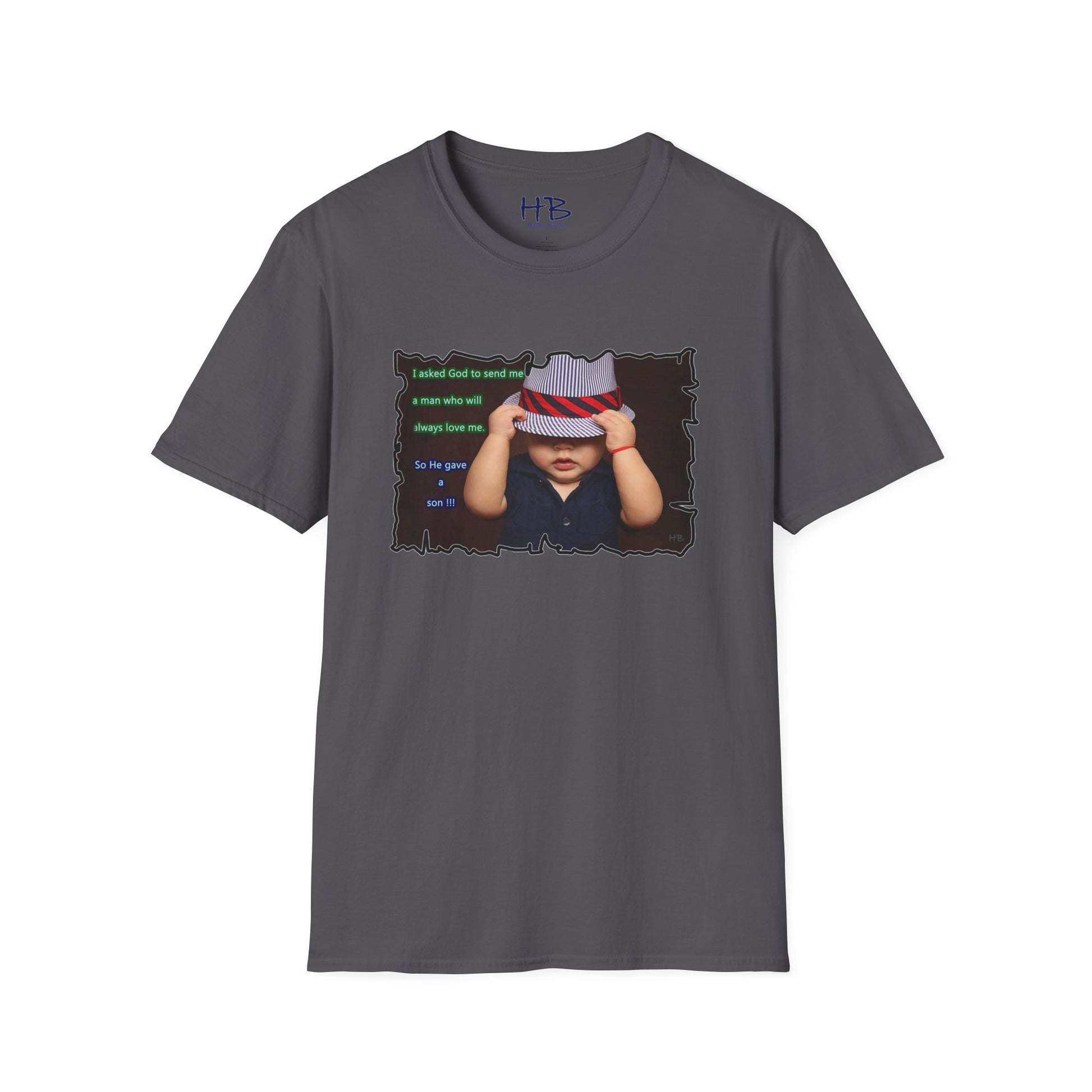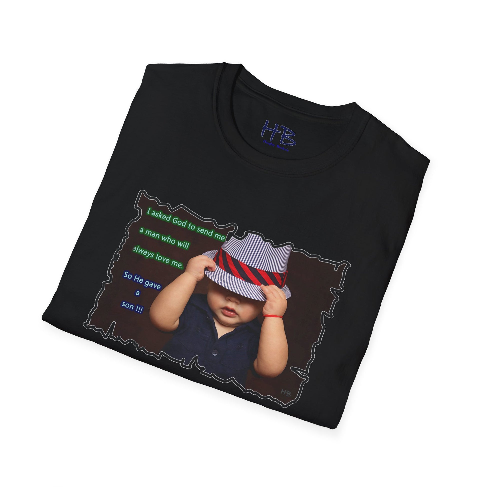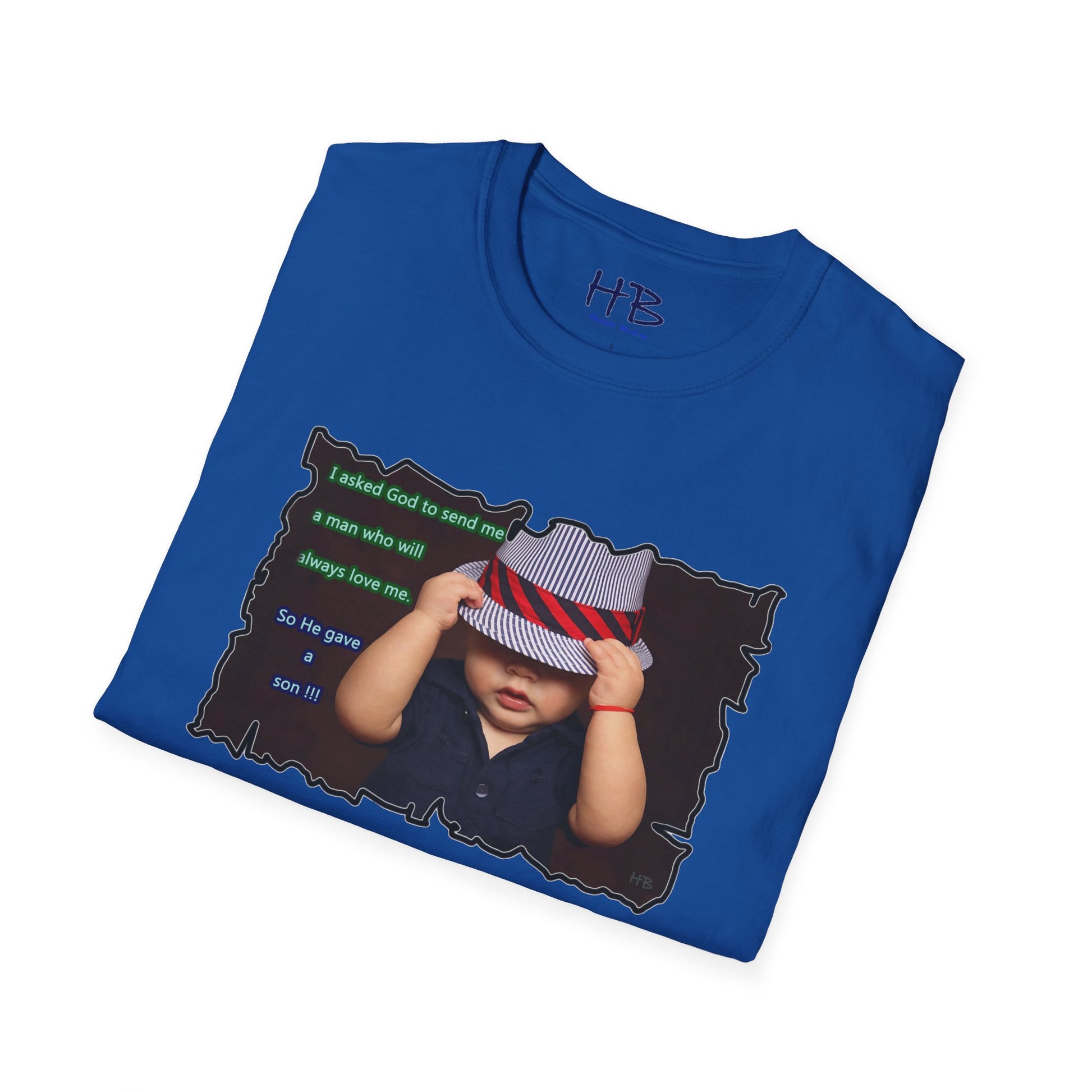 The shirt's message, "I prayed to the Almighty God for a lifelong love, and He blessed me with a son," adds an emotional and personal touch that will resonate with many proud parents. Made with high-quality fabric, this tee offers both comfort and durability, ensuring that it can withstand even the most active of infants.