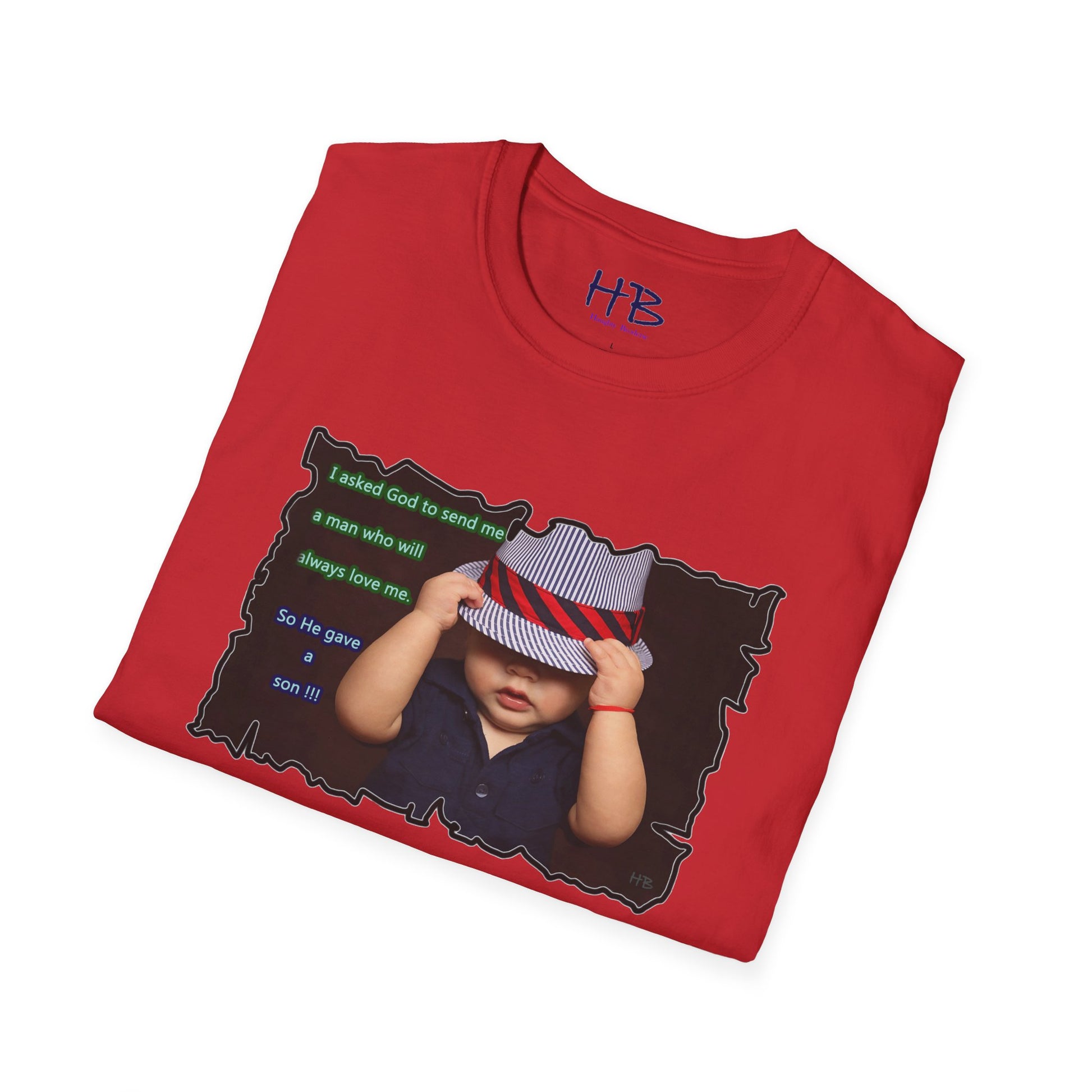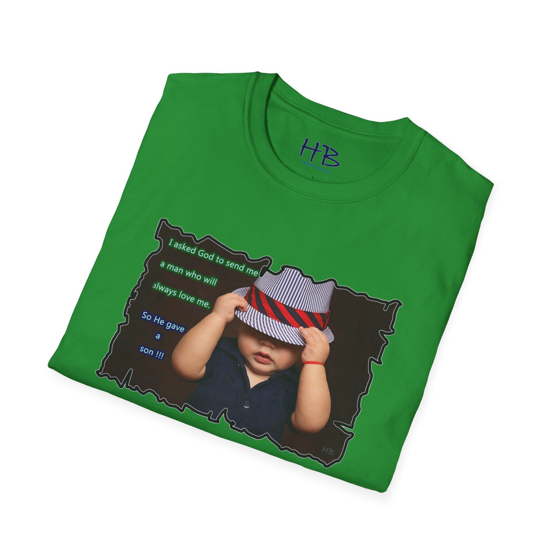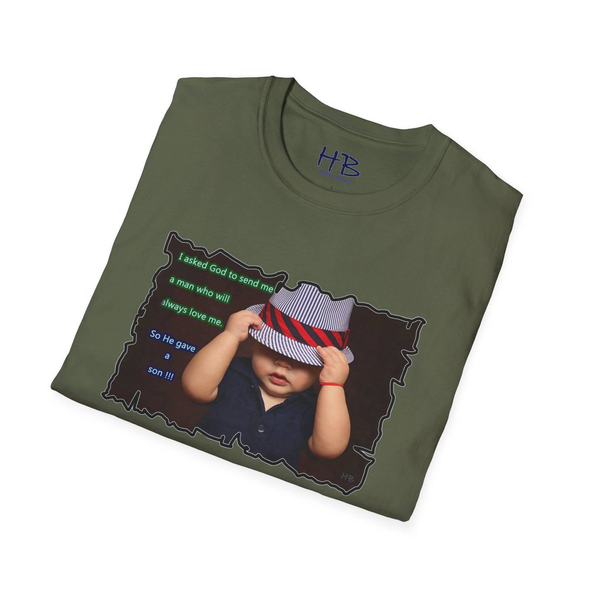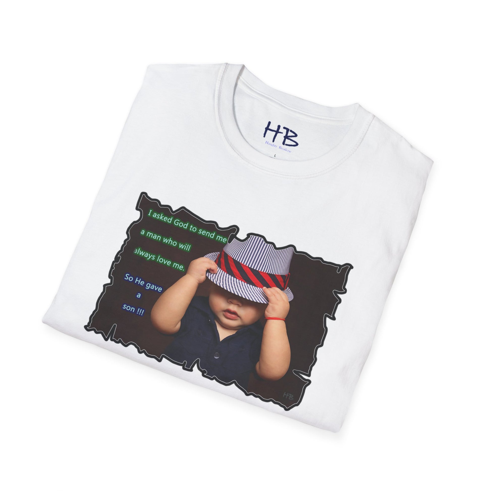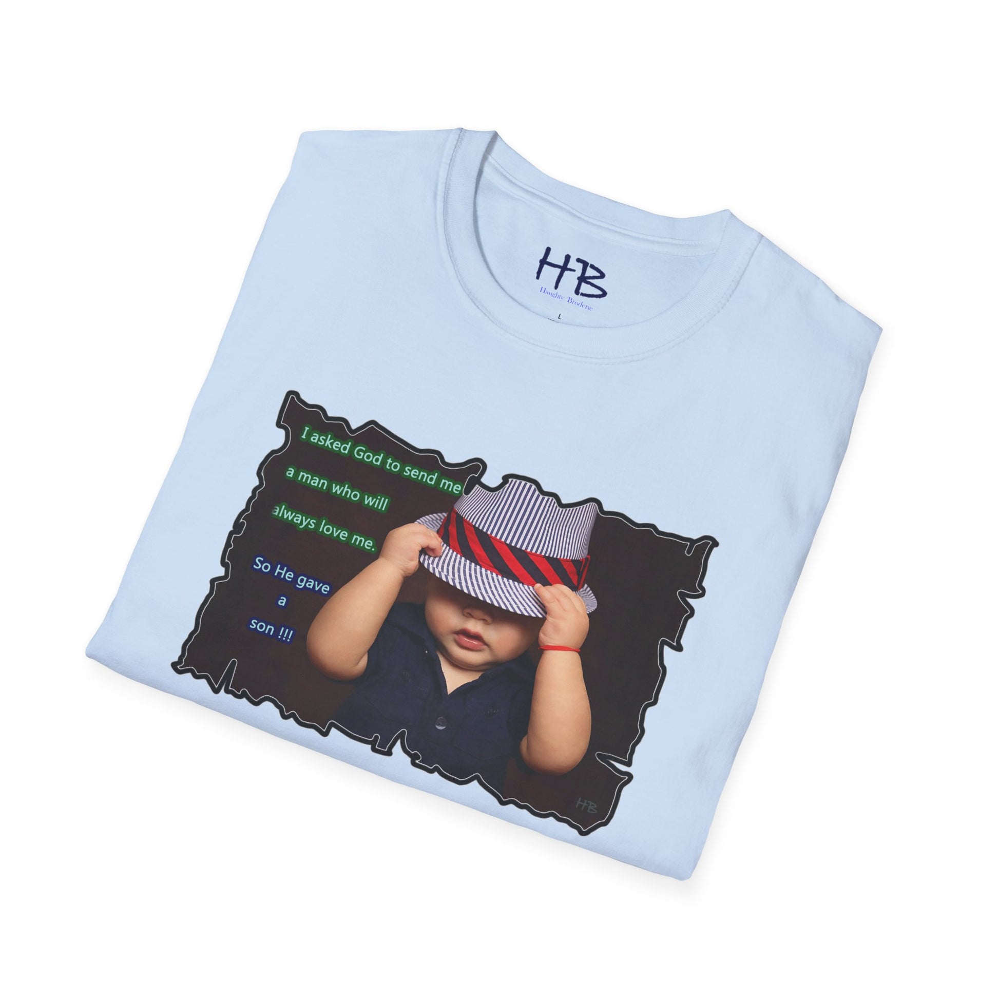 The shirt's message, "I prayed to the Almighty God for a lifelong love, and He blessed me with a son," adds an emotional and personal touch that will resonate with many proud parents. Made with high-quality fabric, this tee offers both comfort and durability, ensuring that it can withstand even the most active of infants.