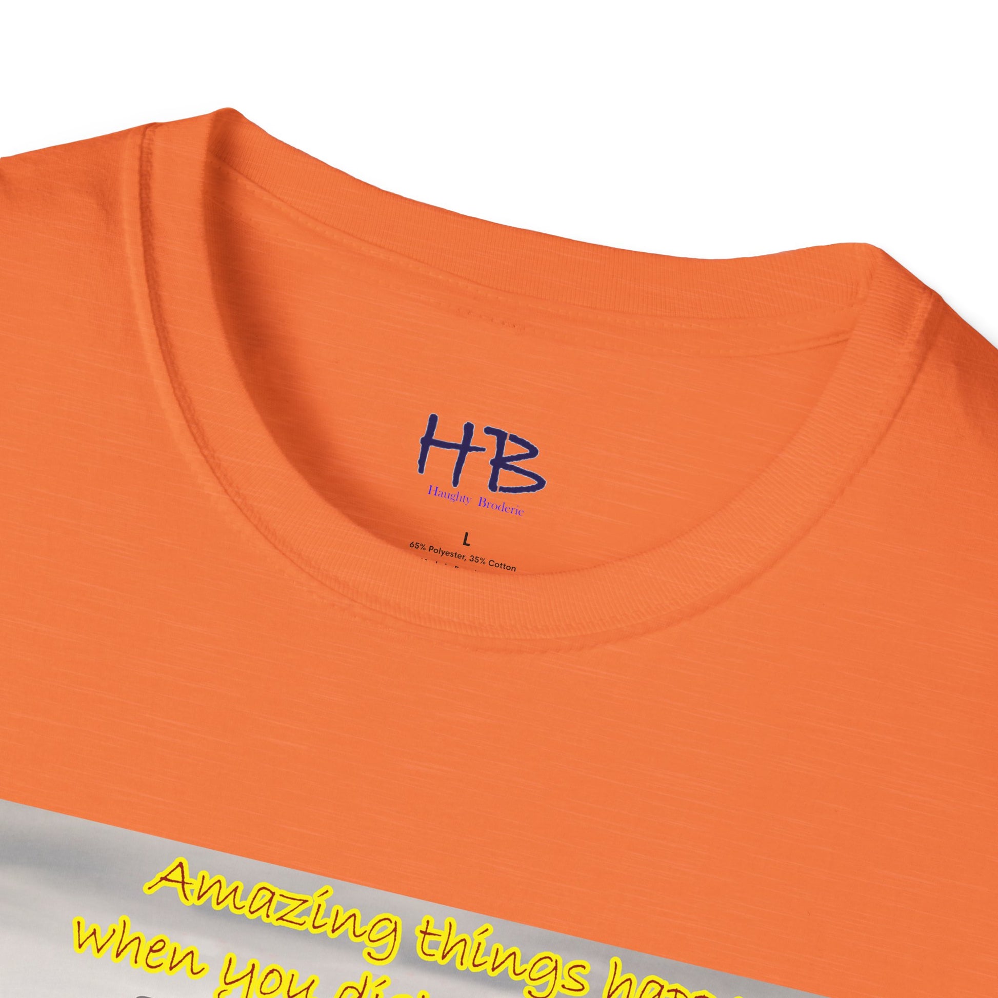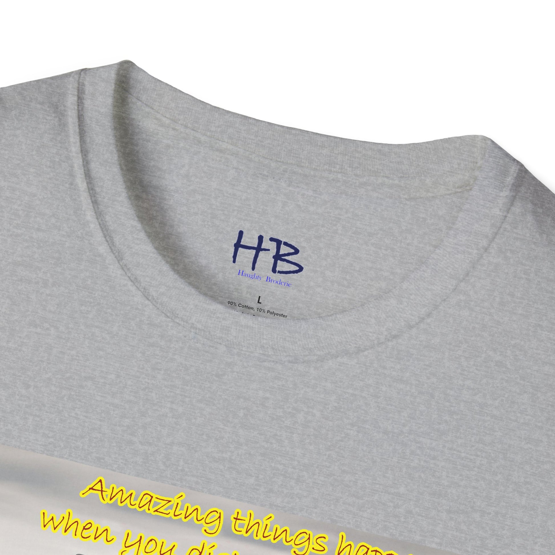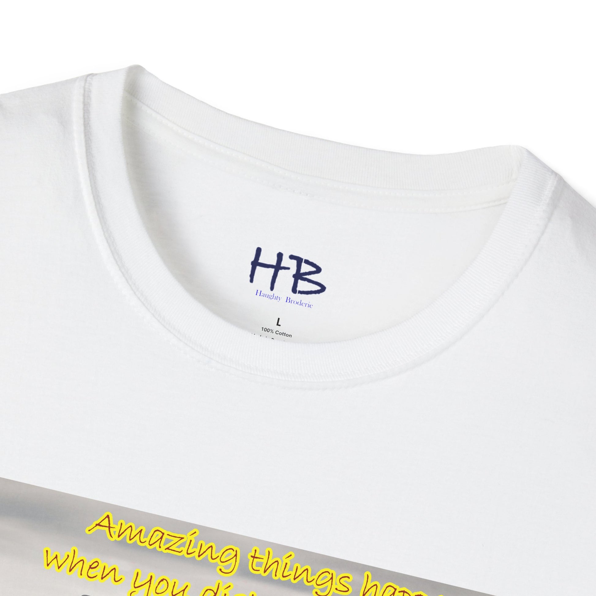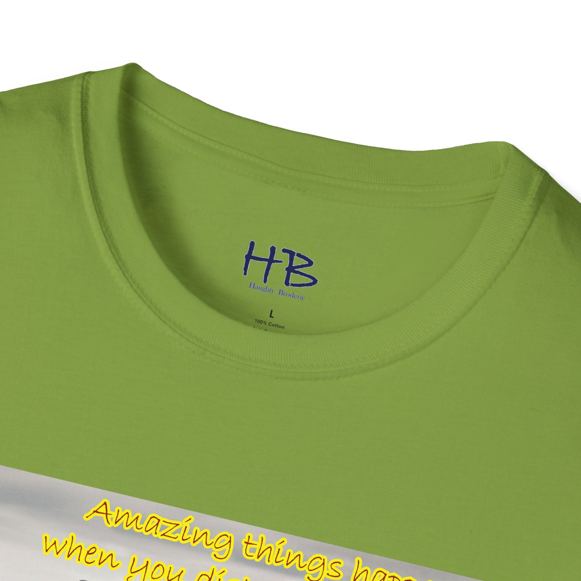 The accompanying text on the tee shirt reads "Amazing things happen when you keep negativity at bay," conveying the message that negativity only brings sorrow, worry, and bad energy. It's important to keep negativity out of our lives and focus on positivity, as it can lead us towards a happier, more fulfilling life.