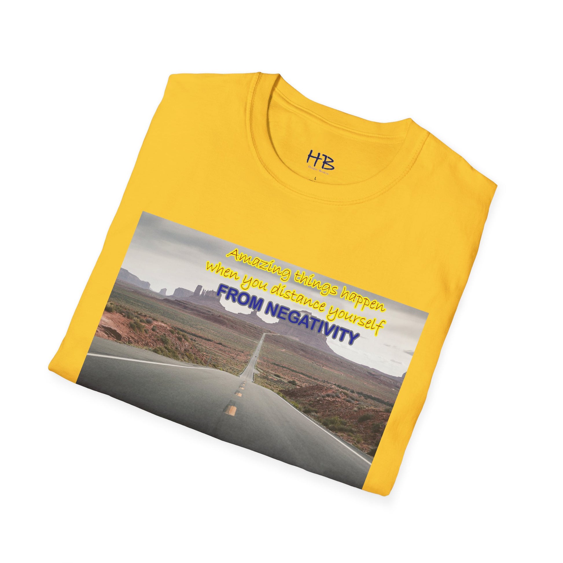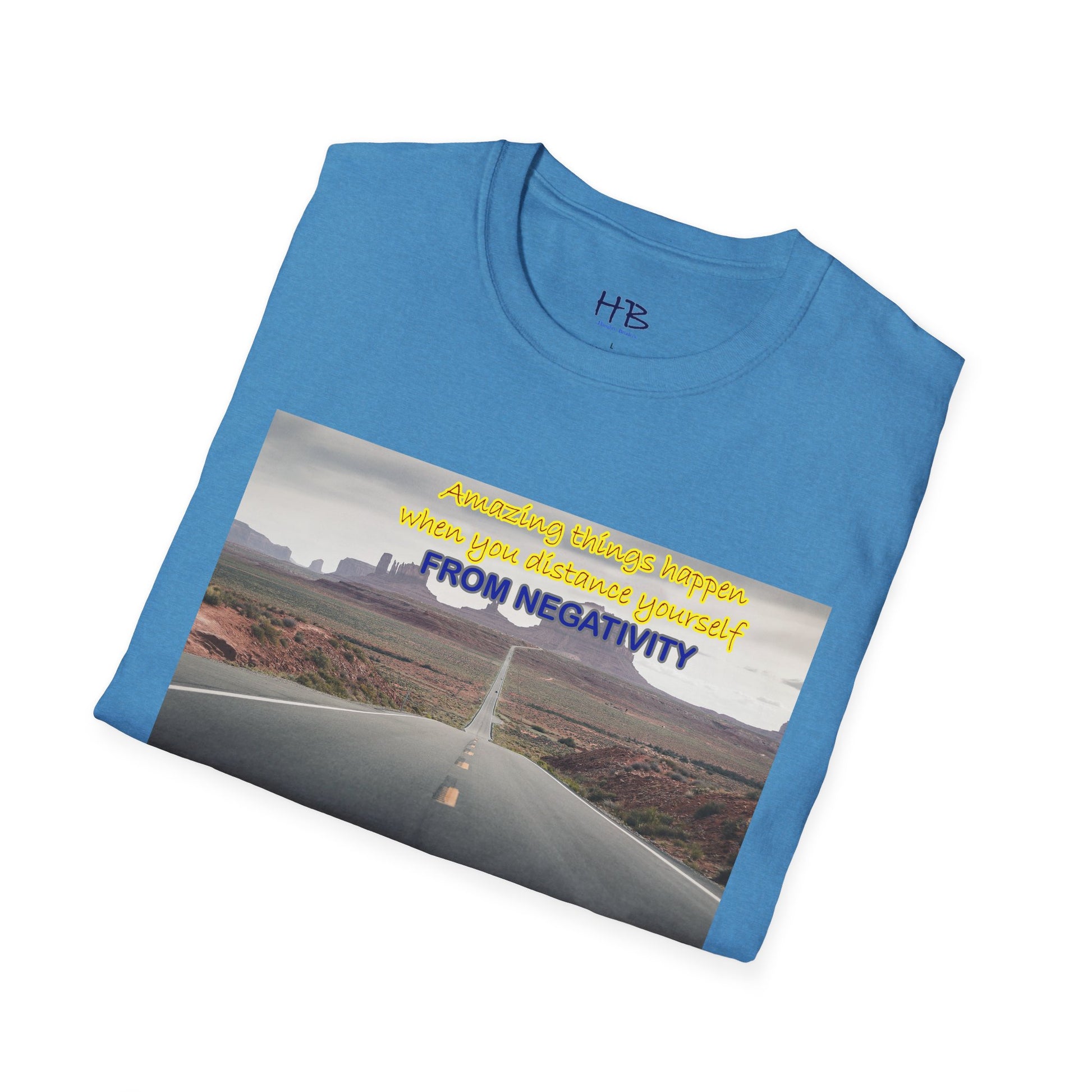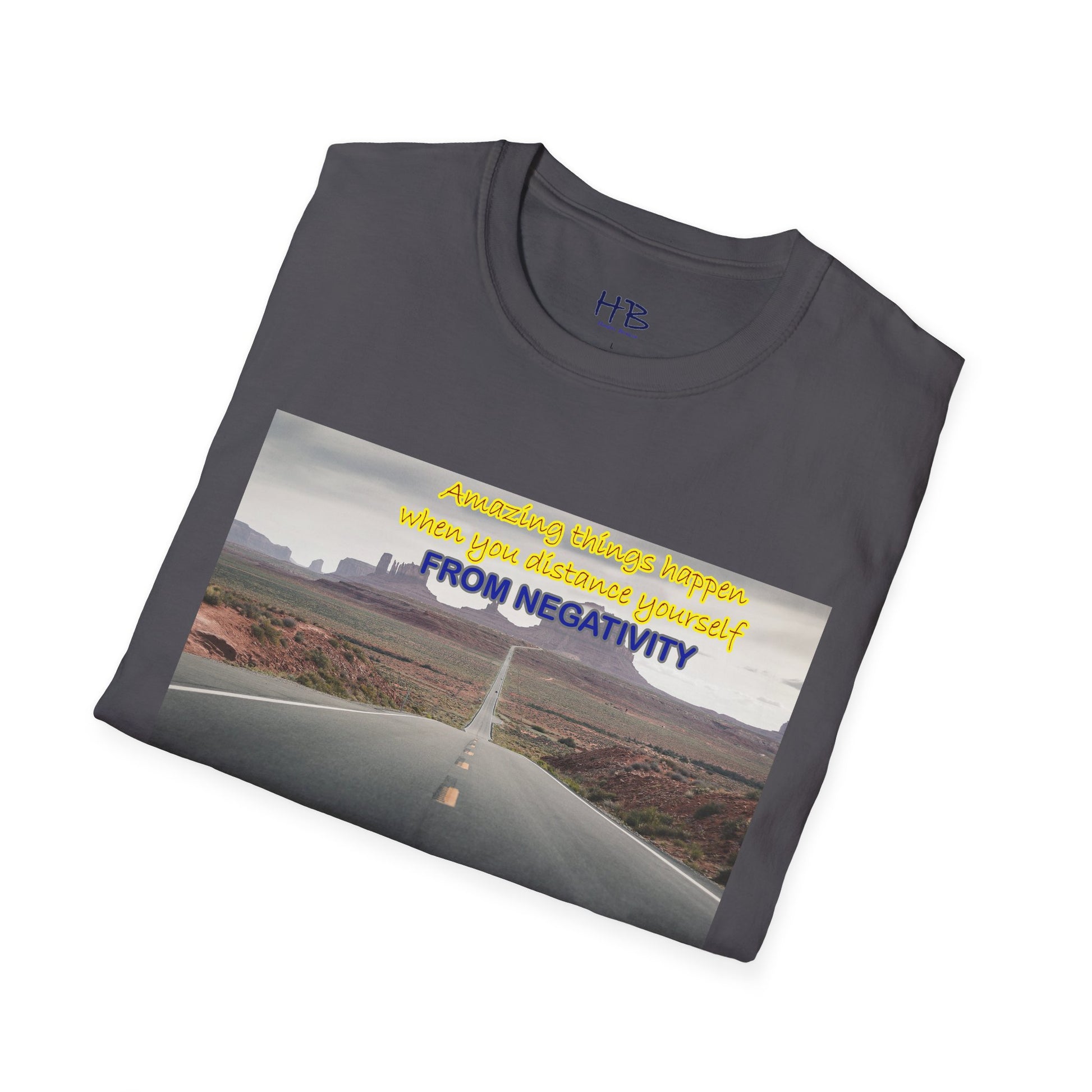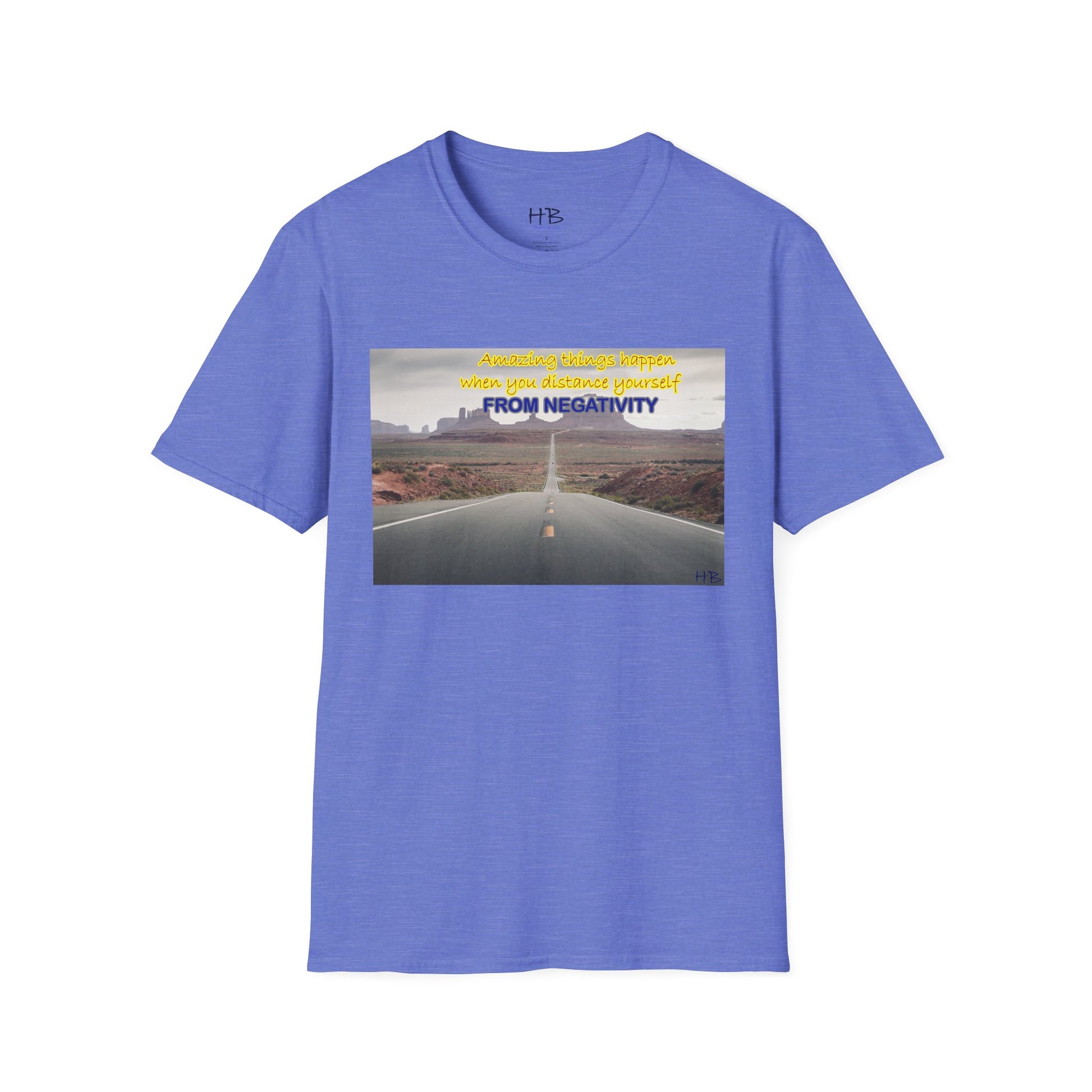 Introducing our newest tee shirt, featuring a captivating design that showcases the stunning Route 66 and the breathtaking canyon in the background. This image serves as a powerful reminder that amazing things can happen when we distance ourselves from negativity and focus on the positive things in life.