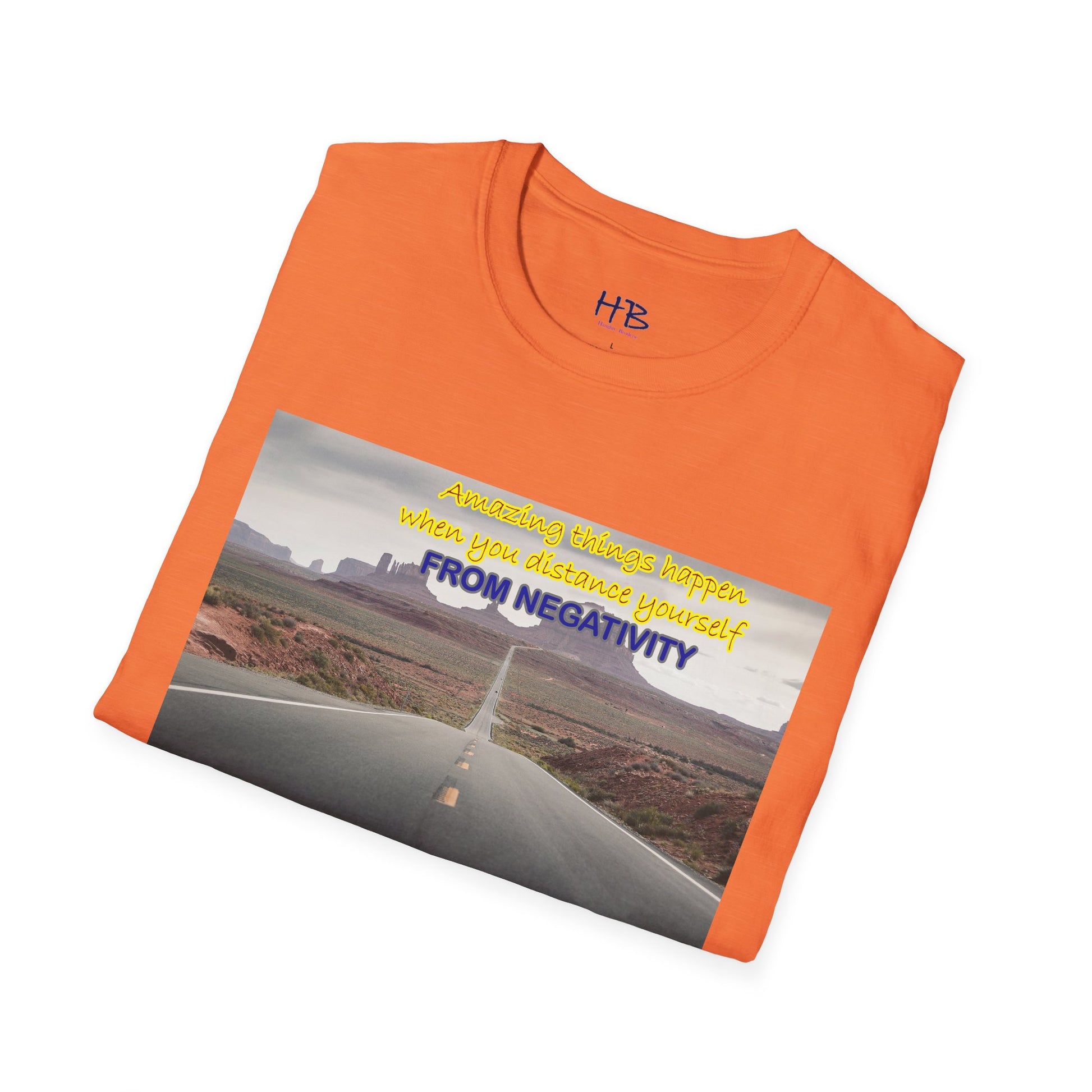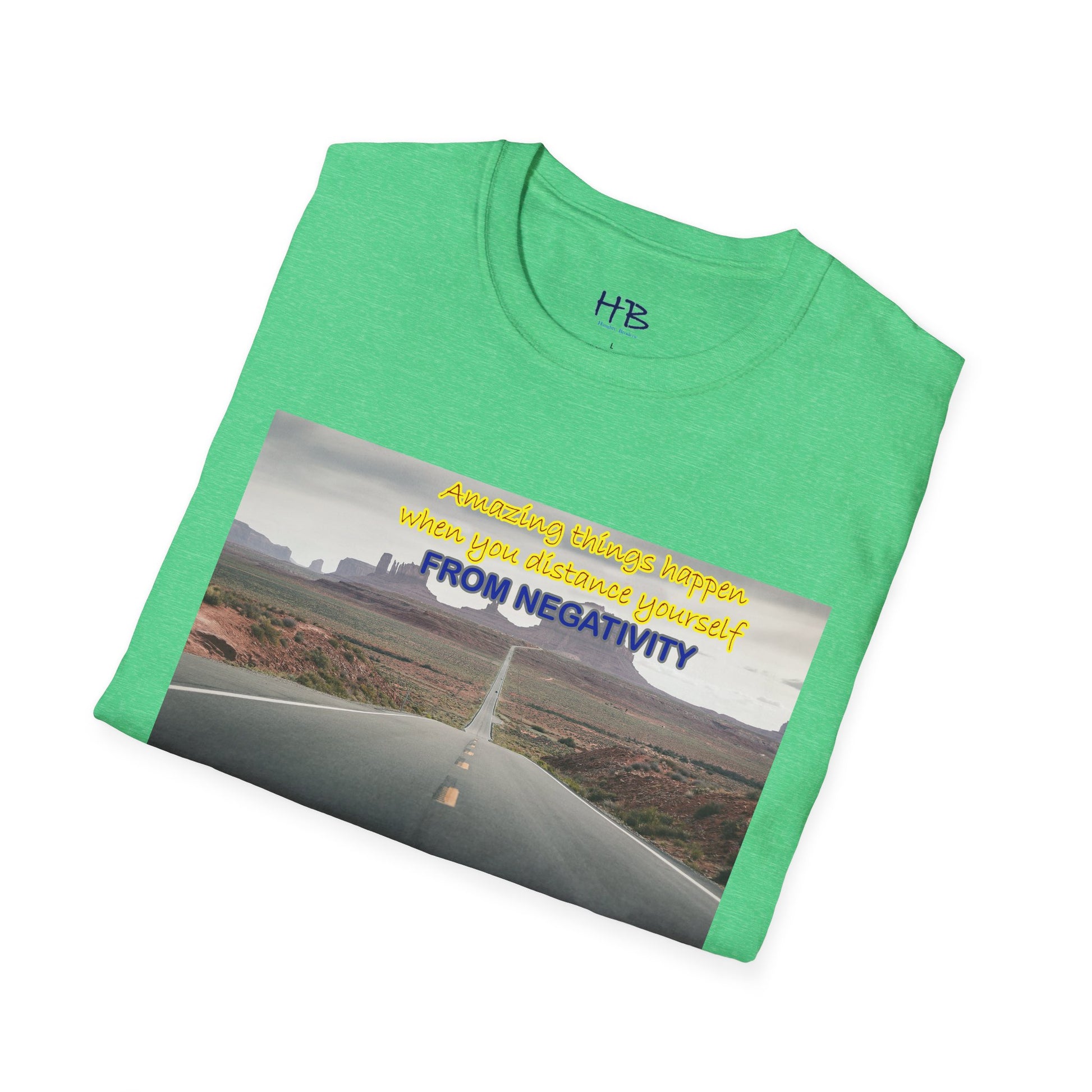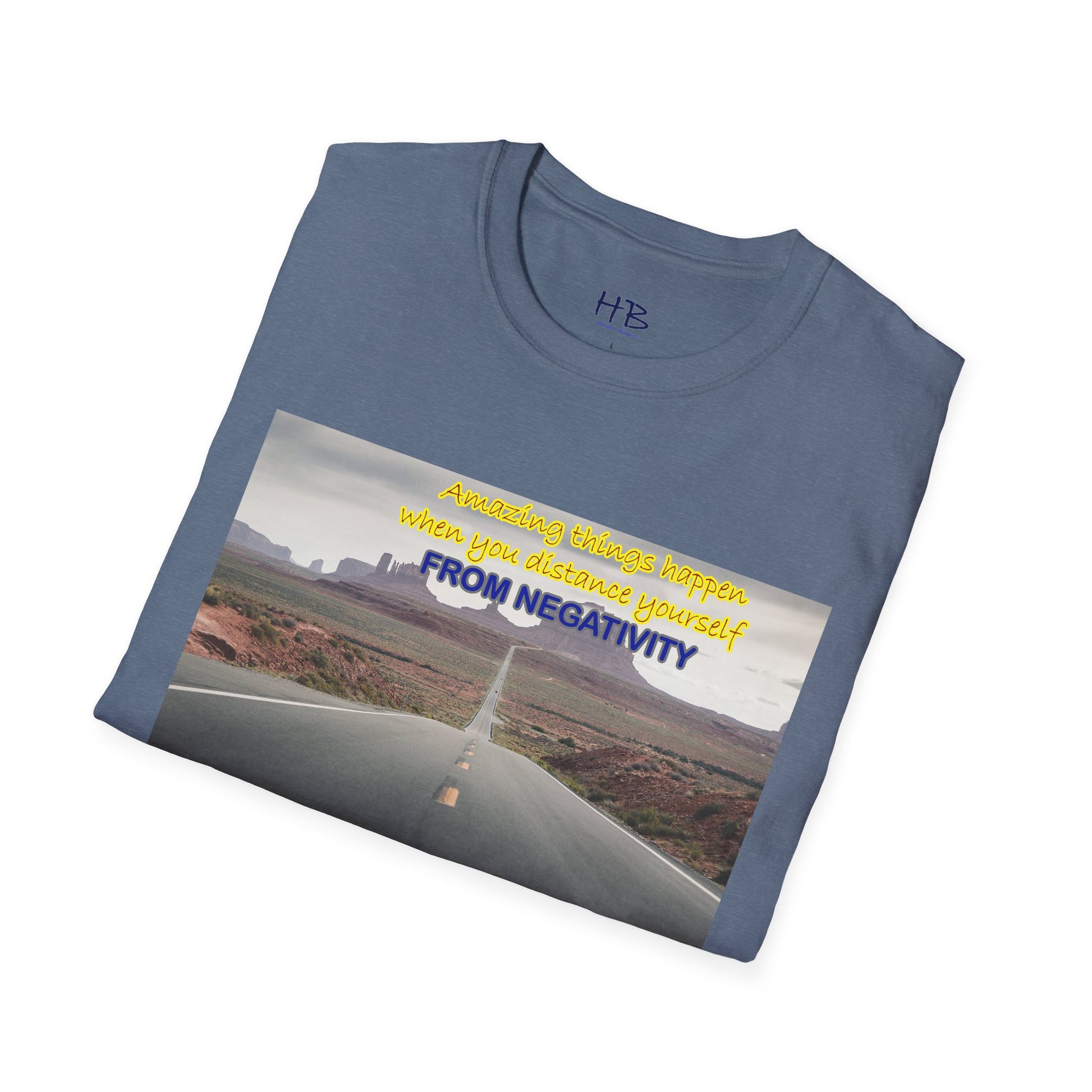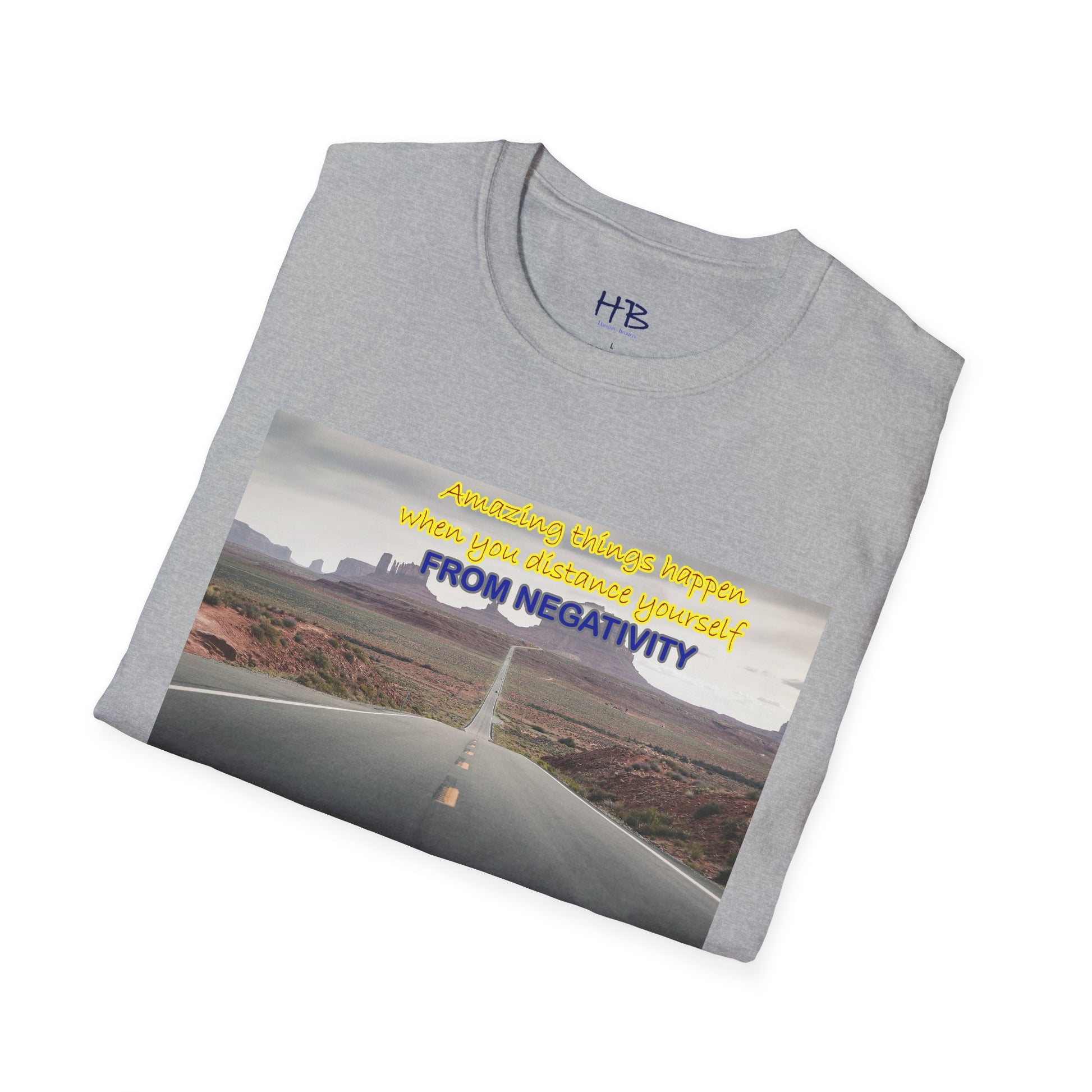 Introducing our newest tee shirt, featuring a captivating design that showcases the stunning Route 66 and the breathtaking canyon in the background. This image serves as a powerful reminder that amazing things can happen when we distance ourselves from negativity and focus on the positive things in life.