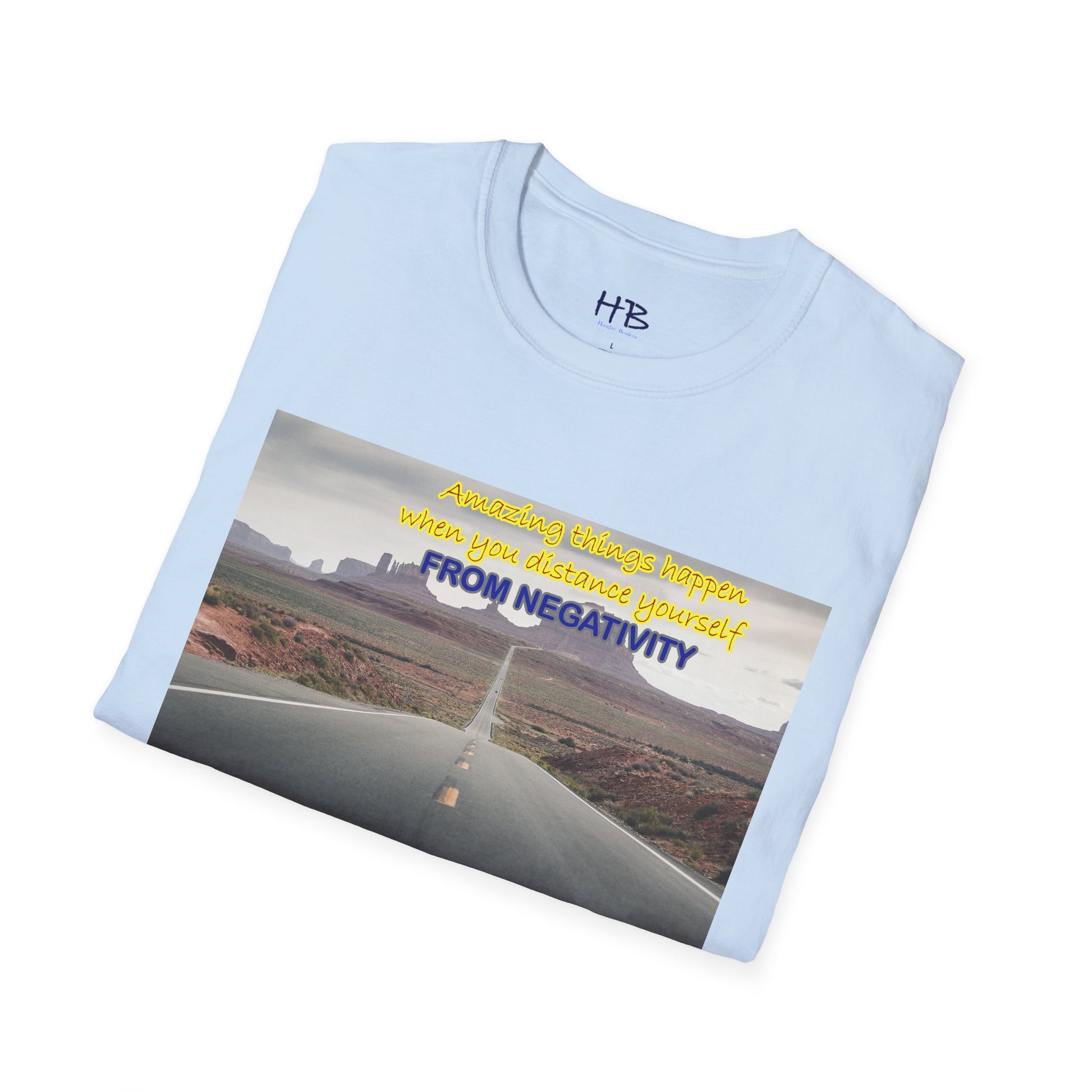 The design on the tee shirt is printed using cutting-edge technology, ensuring that the colors and details are vibrant and long-lasting. Whether you're embarking on a road trip or simply looking to add some positivity to your wardrobe, this tee shirt is the perfect choice. So why not distance yourself from negativity and add this tee shirt to your collection today, and let the world know that you're focused on the positive things in life.