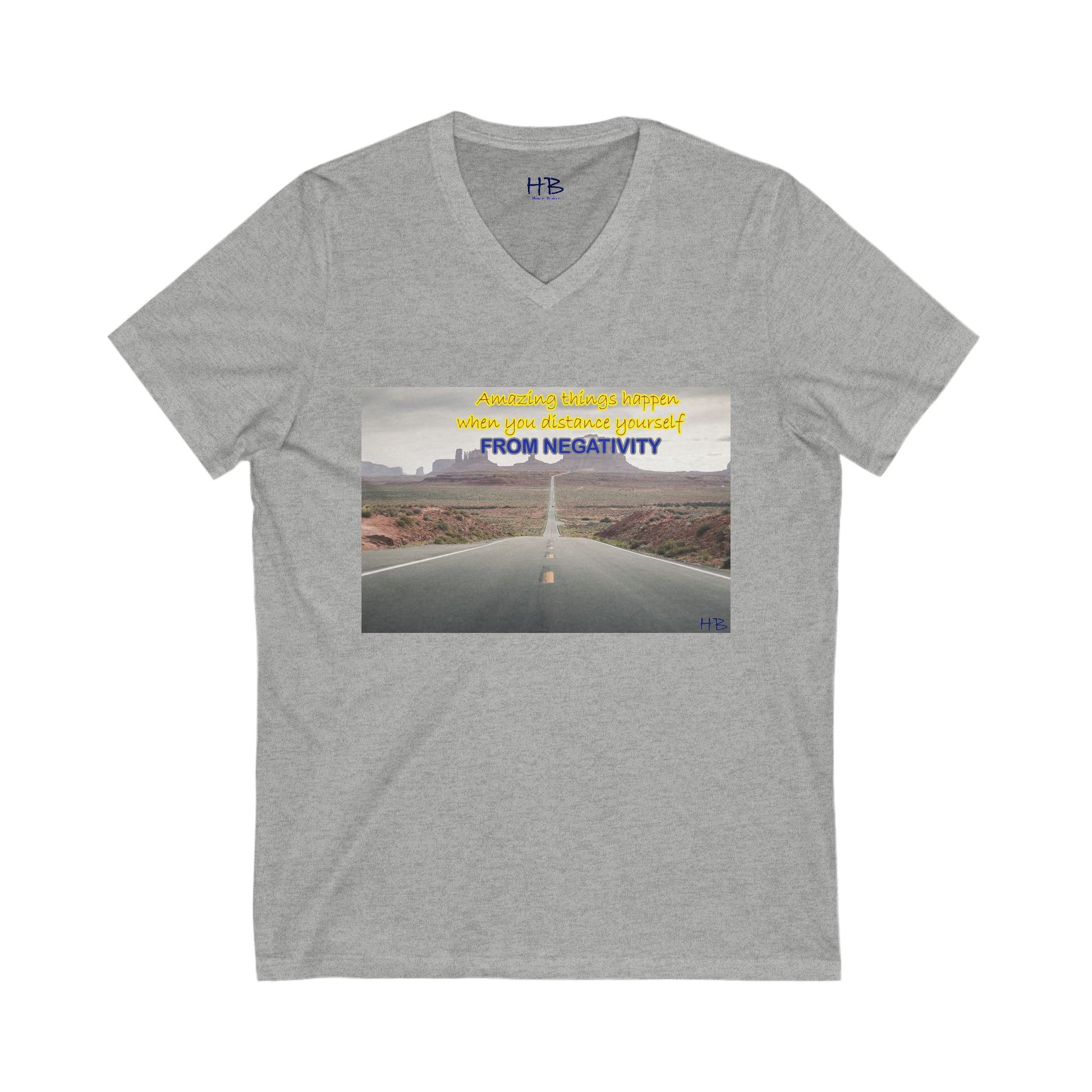 Amazing Things Happen when Distancing from Negativity (Unisex Jersey Short Sleeve V-neck - Comfortable Everyday Wear)