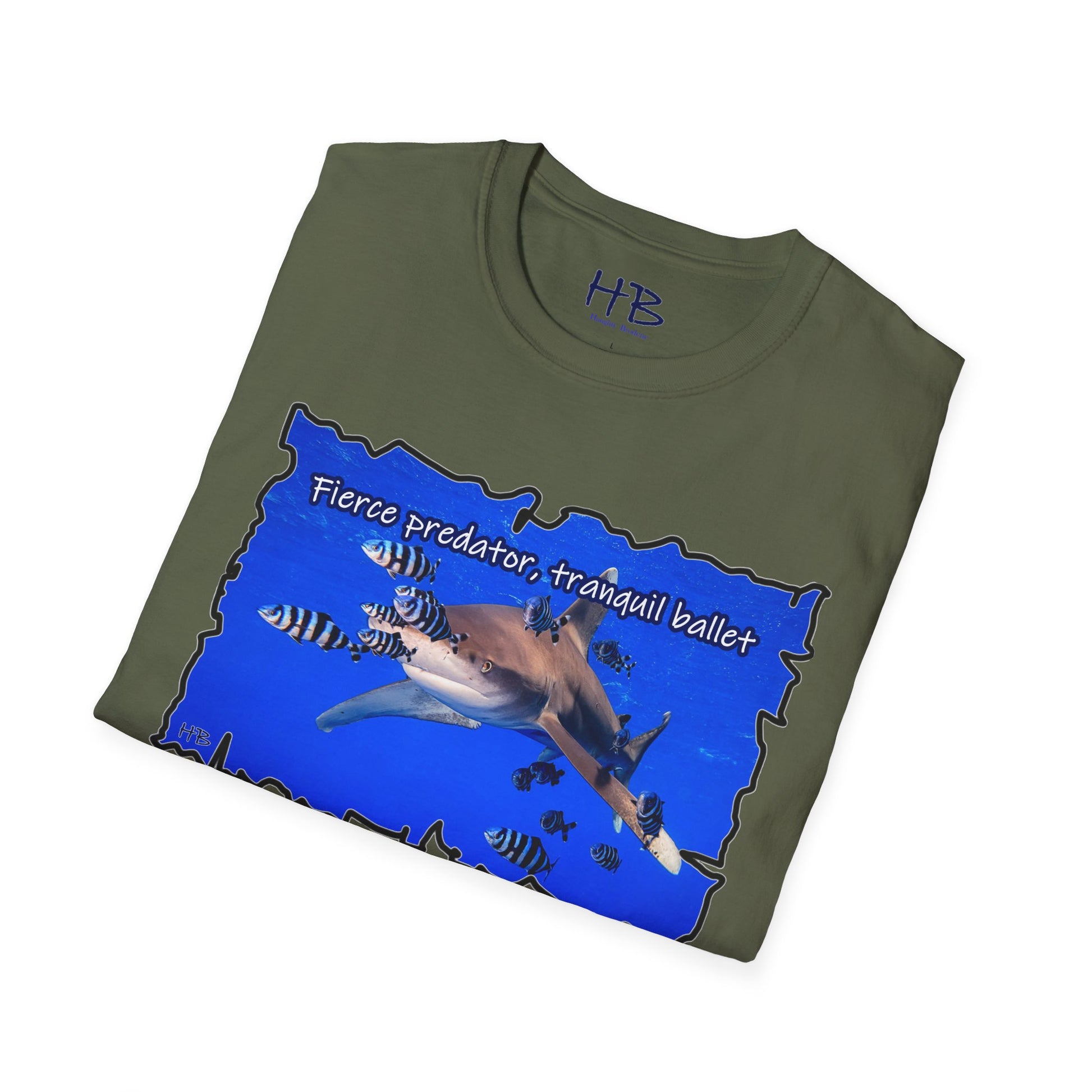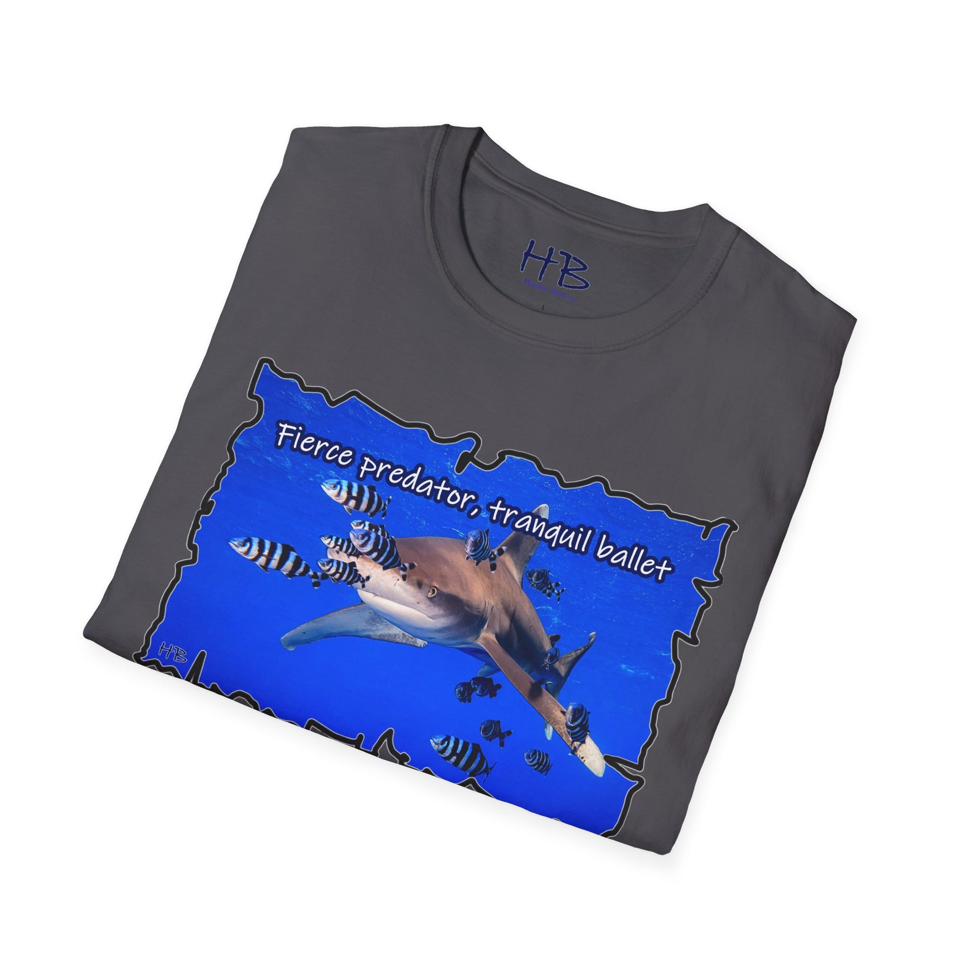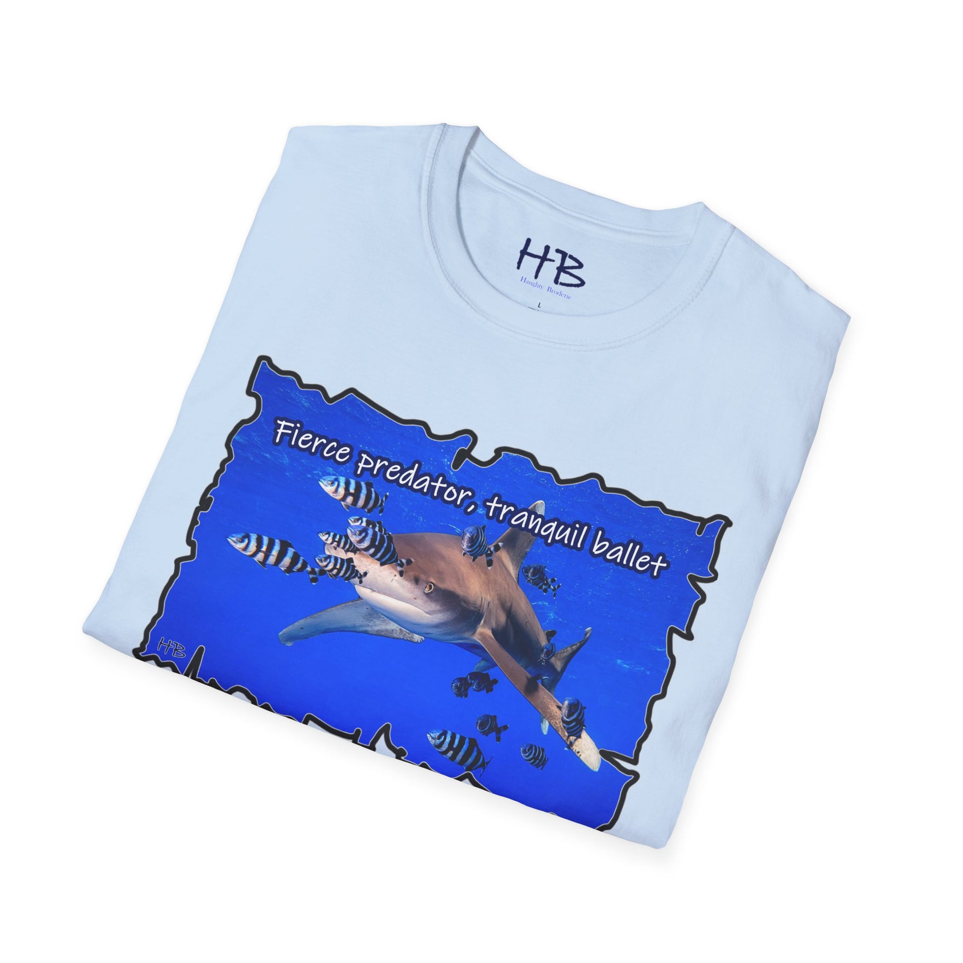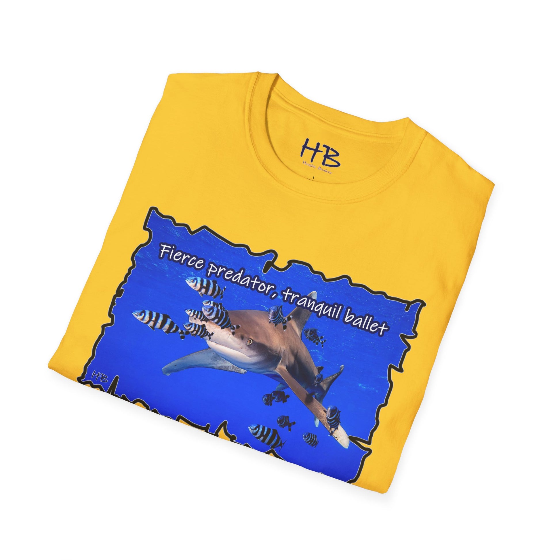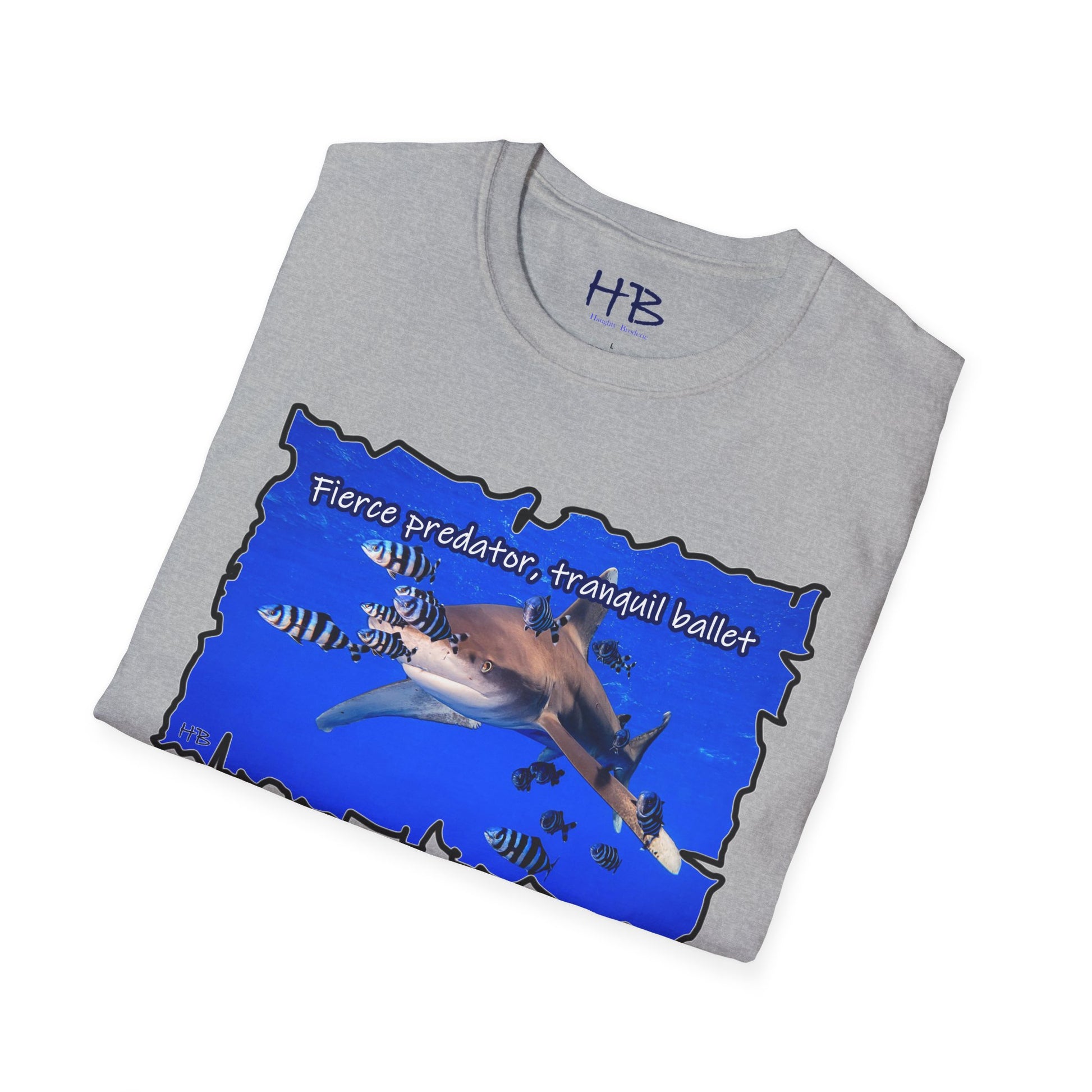 Step into the world of the "Fierce Predator, Tranquil Ballet" and revel in the positive attention and admiration it effortlessly attracts. Embrace the boldness of the shark and the subtlety of the fish, embodying a unique blend of power and poise that sets you apart. Elevate your style with a tee that transcends fashion, becoming a wearable masterpiece that speaks volumes without uttering a word.