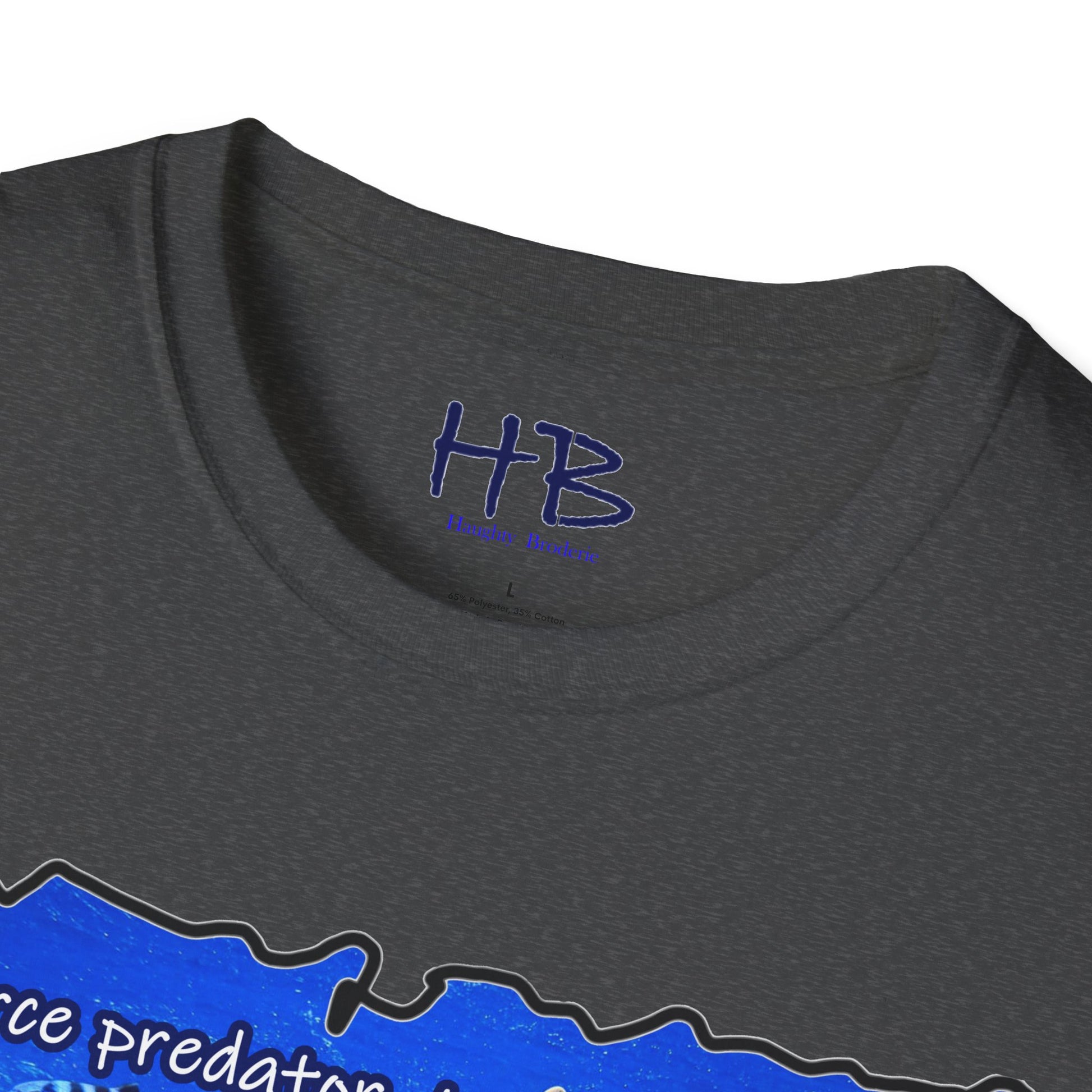 Dive into the depths of unparalleled style with our breathtaking aquatic masterpiece, the "Fierce Predator, Tranquil Ballet" t-shirt. Crafted with the utmost precision, this garment showcases a mesmerizing blue underwater panorama where a formidable shark, the epitome of aquatic power, effortlessly navigates the vast ocean. Marvel as the graceful ballet unfolds, with over a dozen stunning fish accompanying the apex predator in a harmonious aquatic parade.