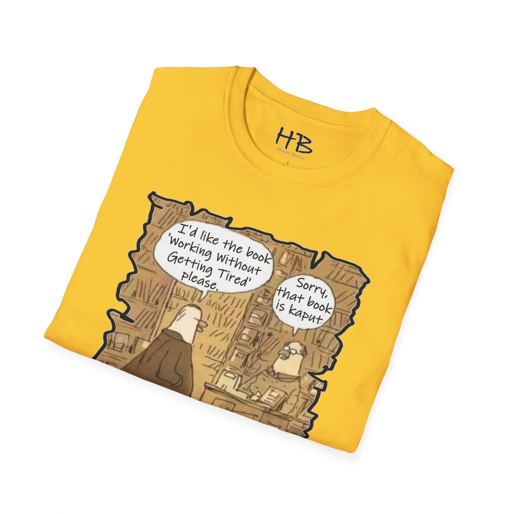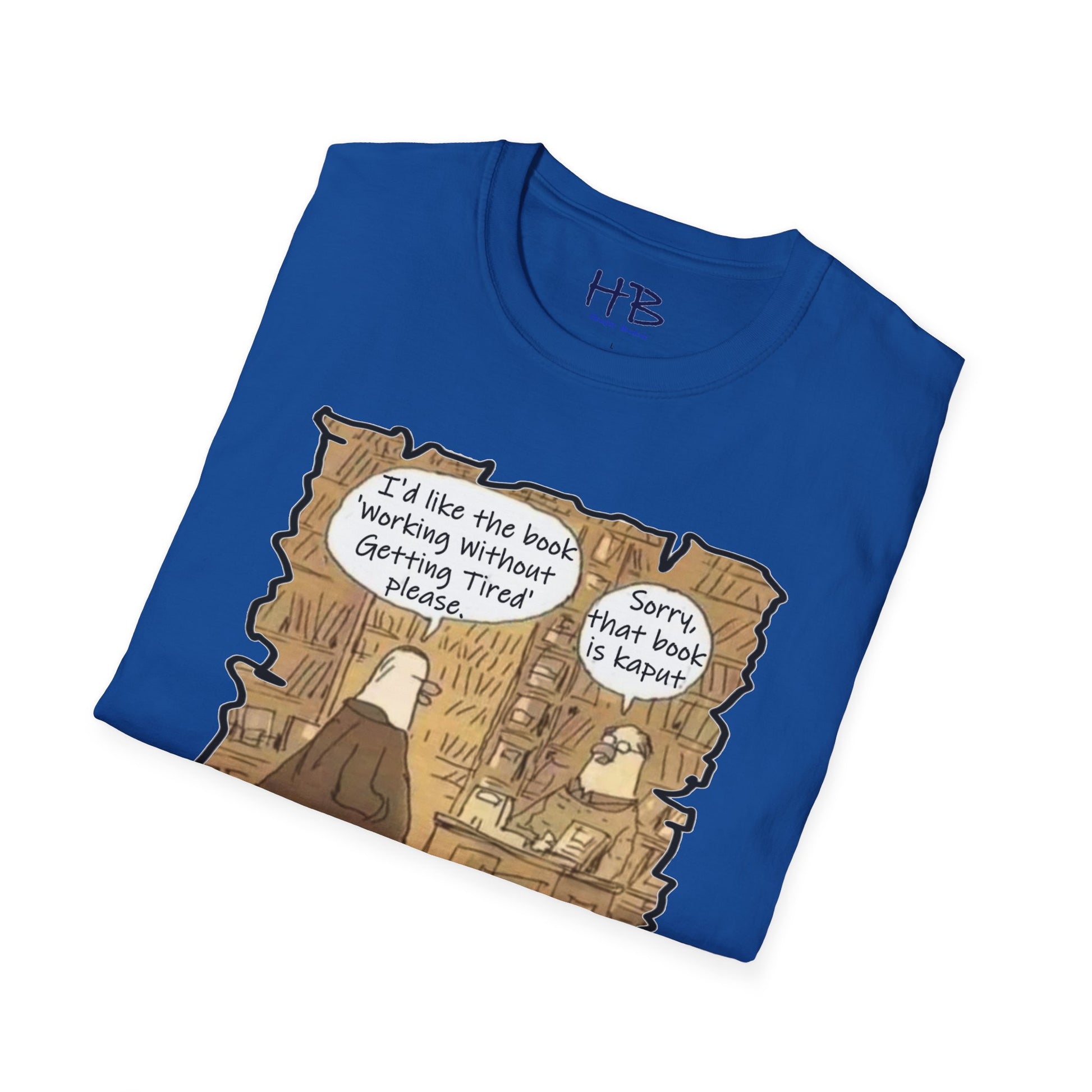 This whimsical portrayal captures the essence of the modern quest for productivity and the perennial struggle against weariness. The clever interplay of the bird in business attire, the erudite bookstore setting, and the elusive quest for an energy-filled work life adds layers of meaning to this wearable work of art.