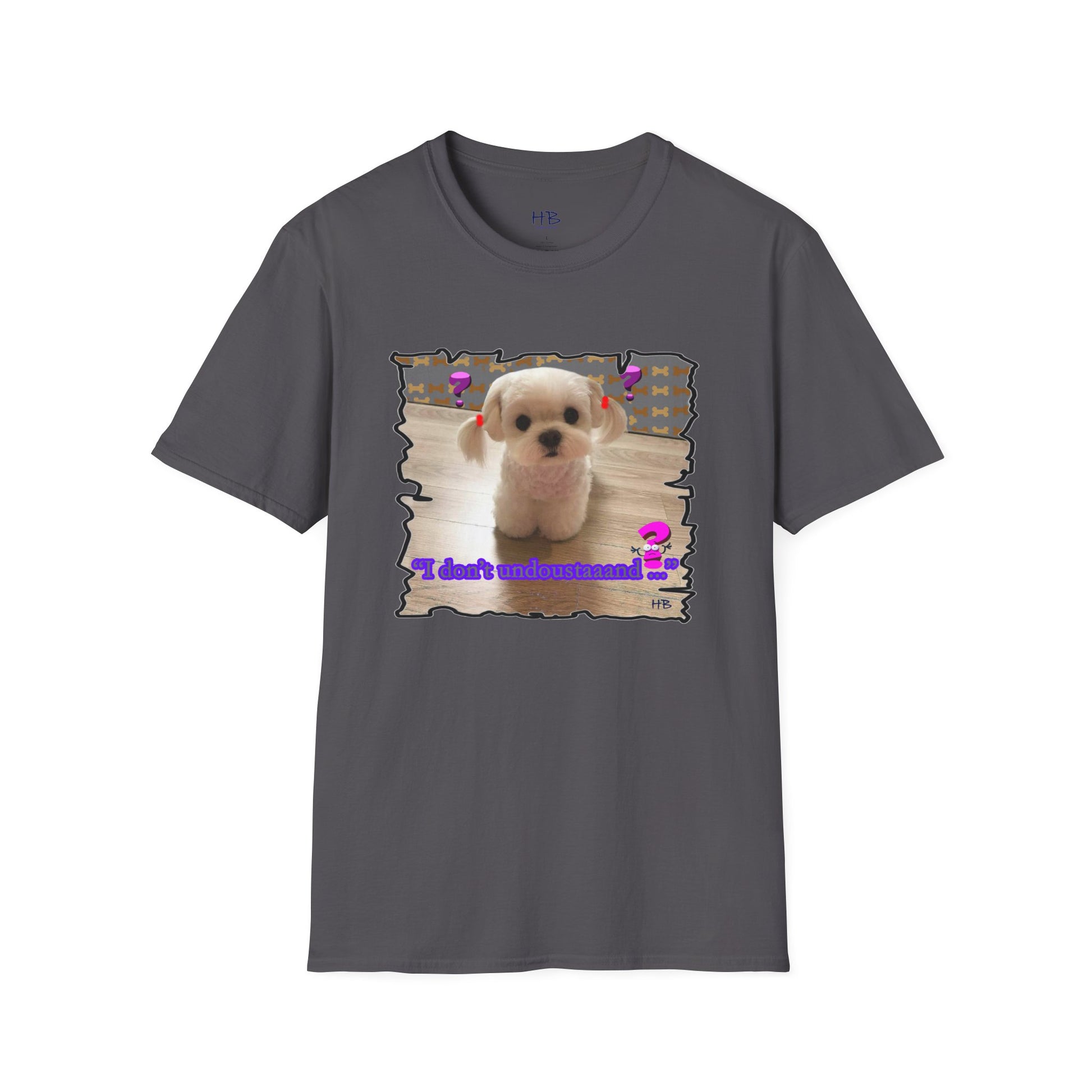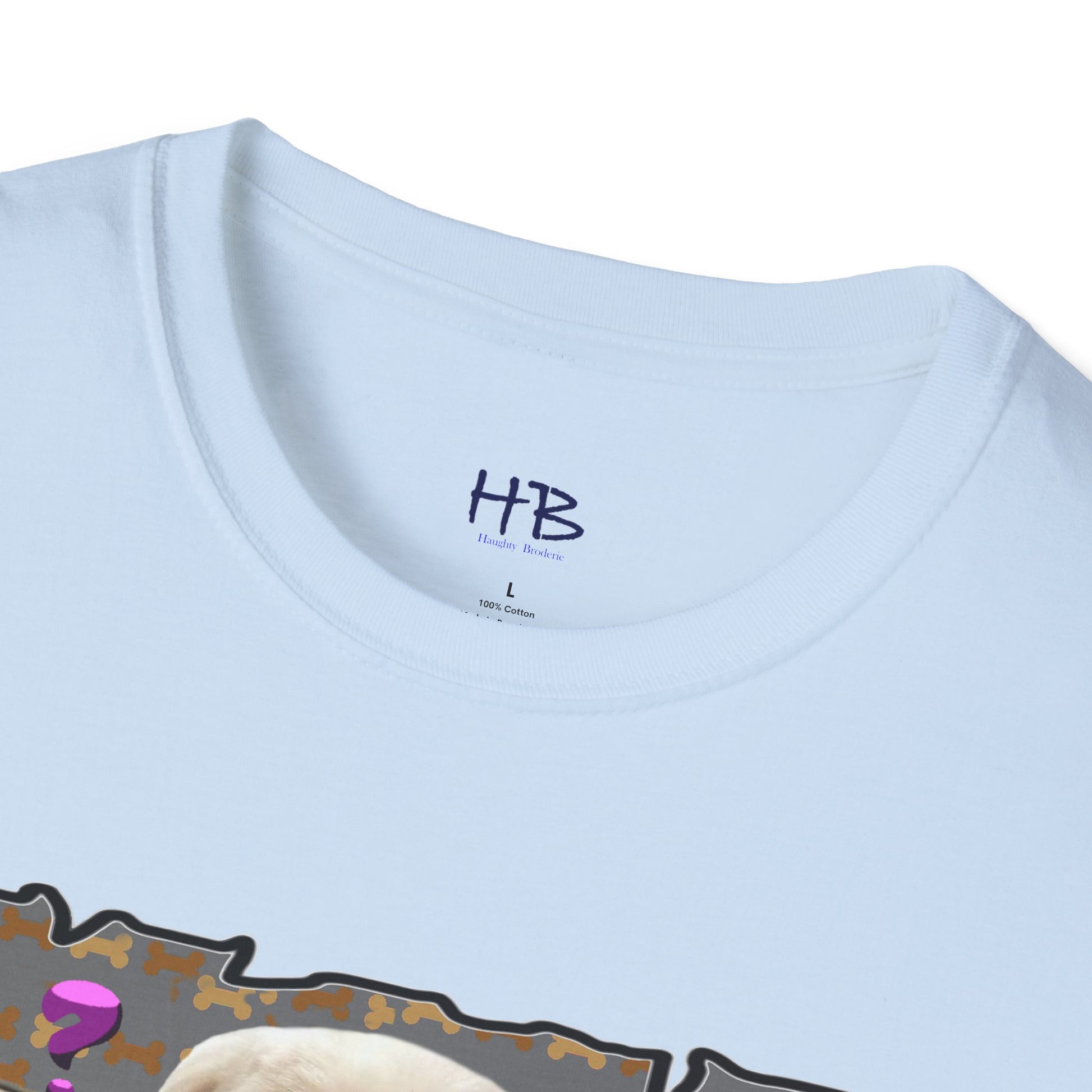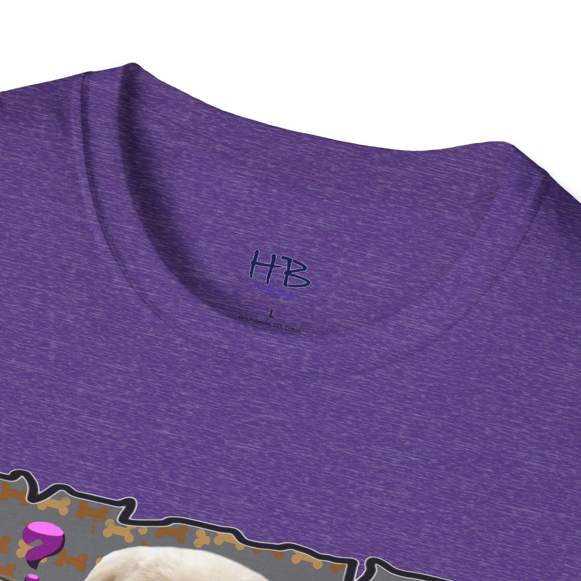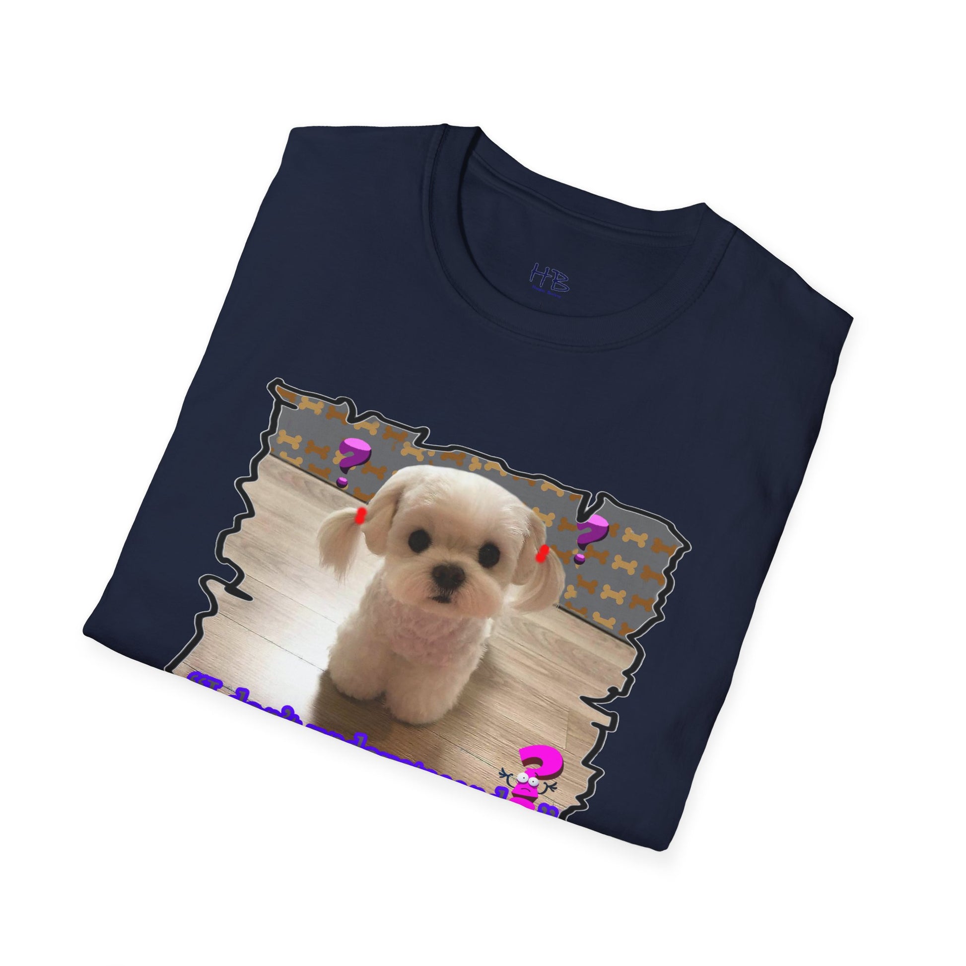 Introducing our newest addition to our tee shirt collection! This cute and adorable tee features a baby bichon maltese with innocent, wide-open eyes looking up at their owner in curiosity. The pup's expression is simply priceless with its large purple question marks that give off an air of cluelessness. The background showcases images of delicious dog bones, further highlighting the playful and fun nature of this shirt. This shirt is perfect for dog lovers who can't resist the charm of an adorable pup.