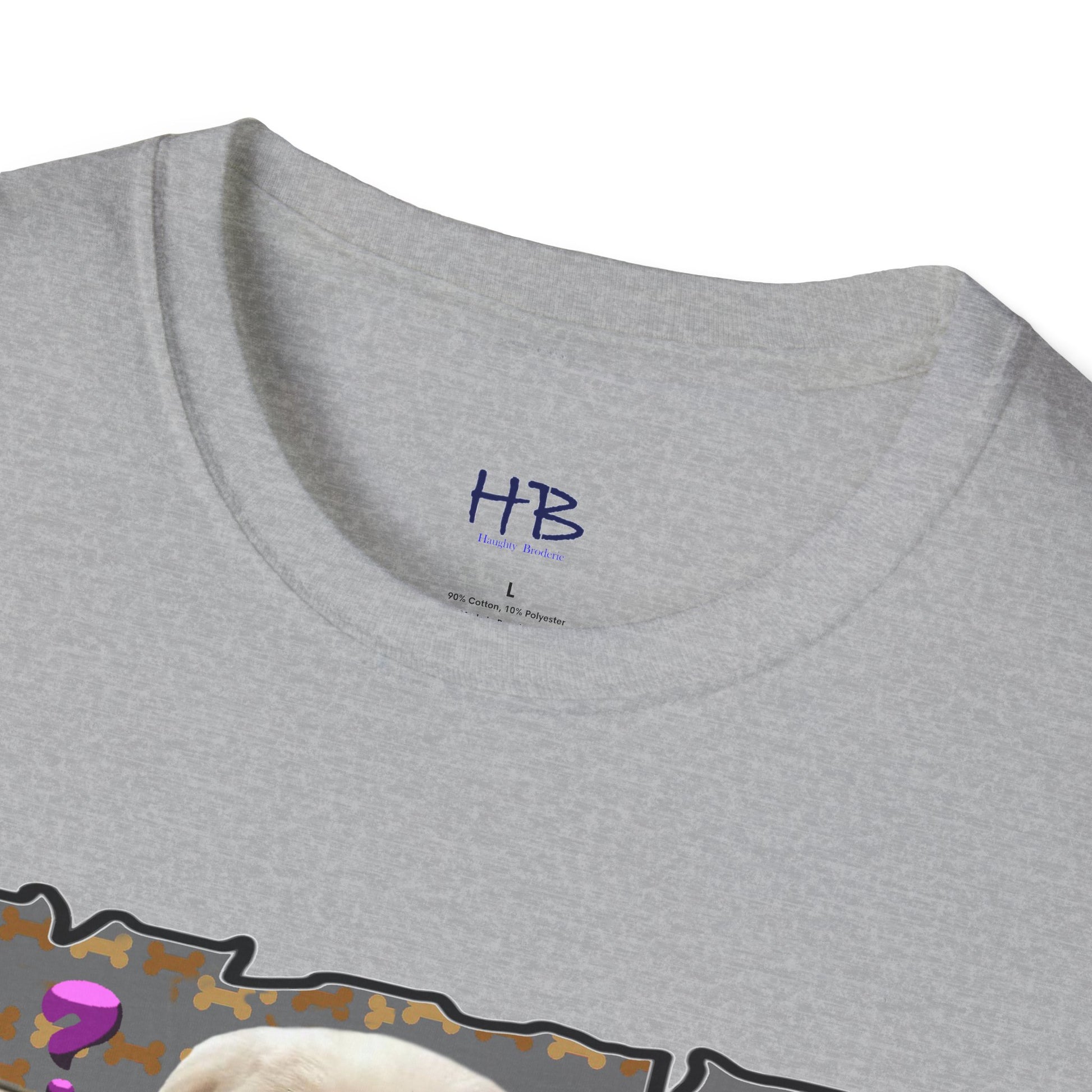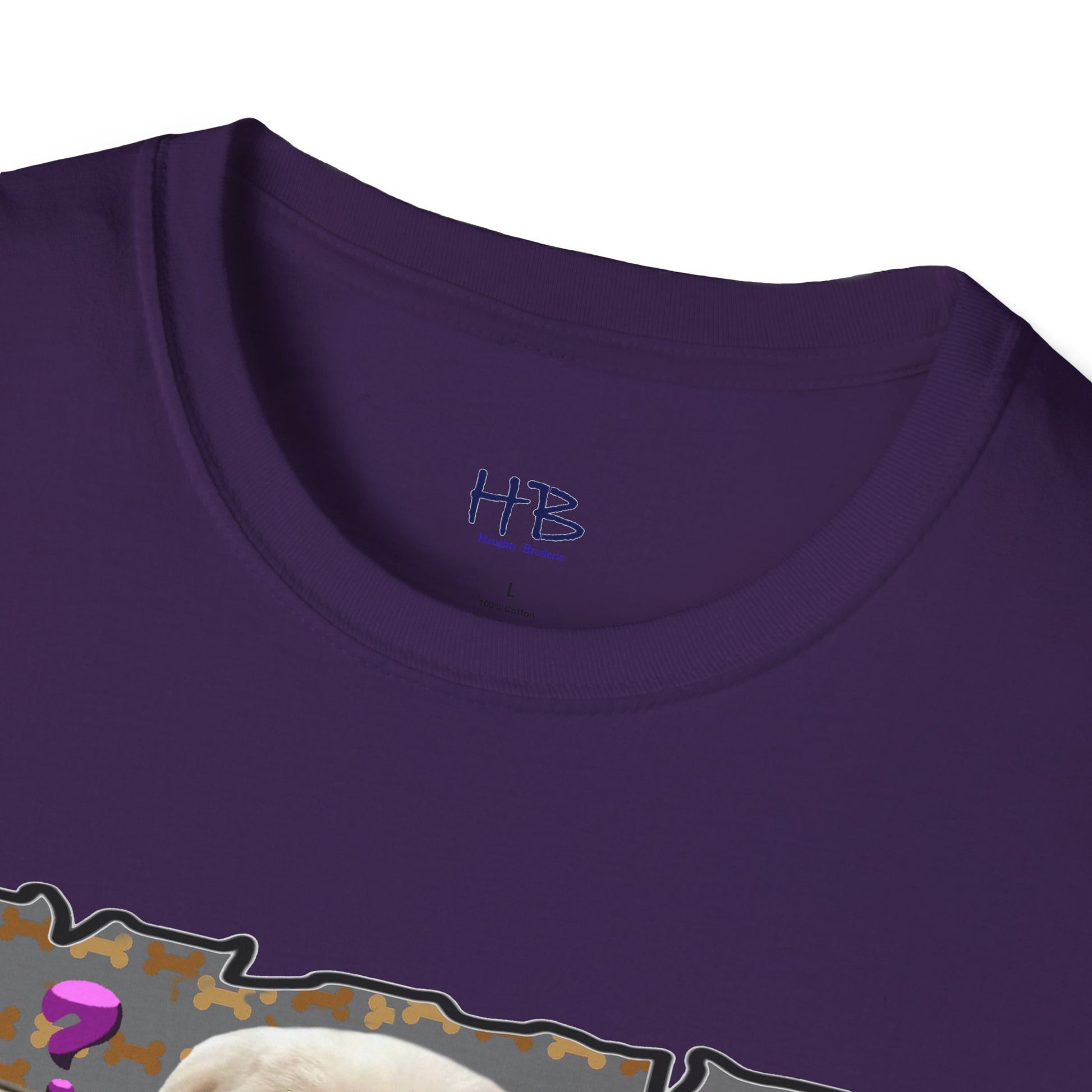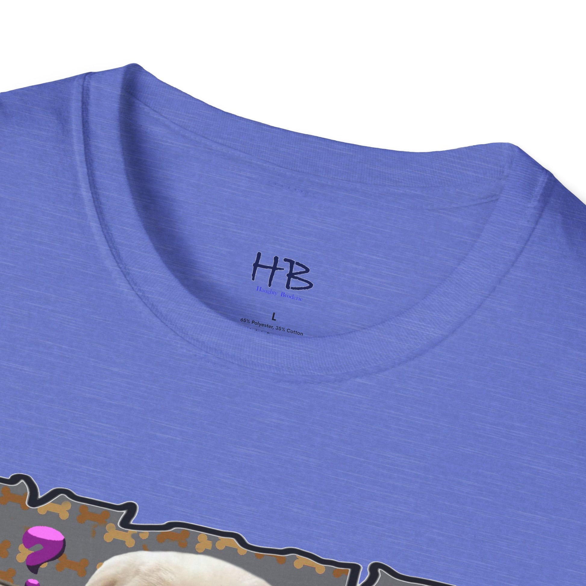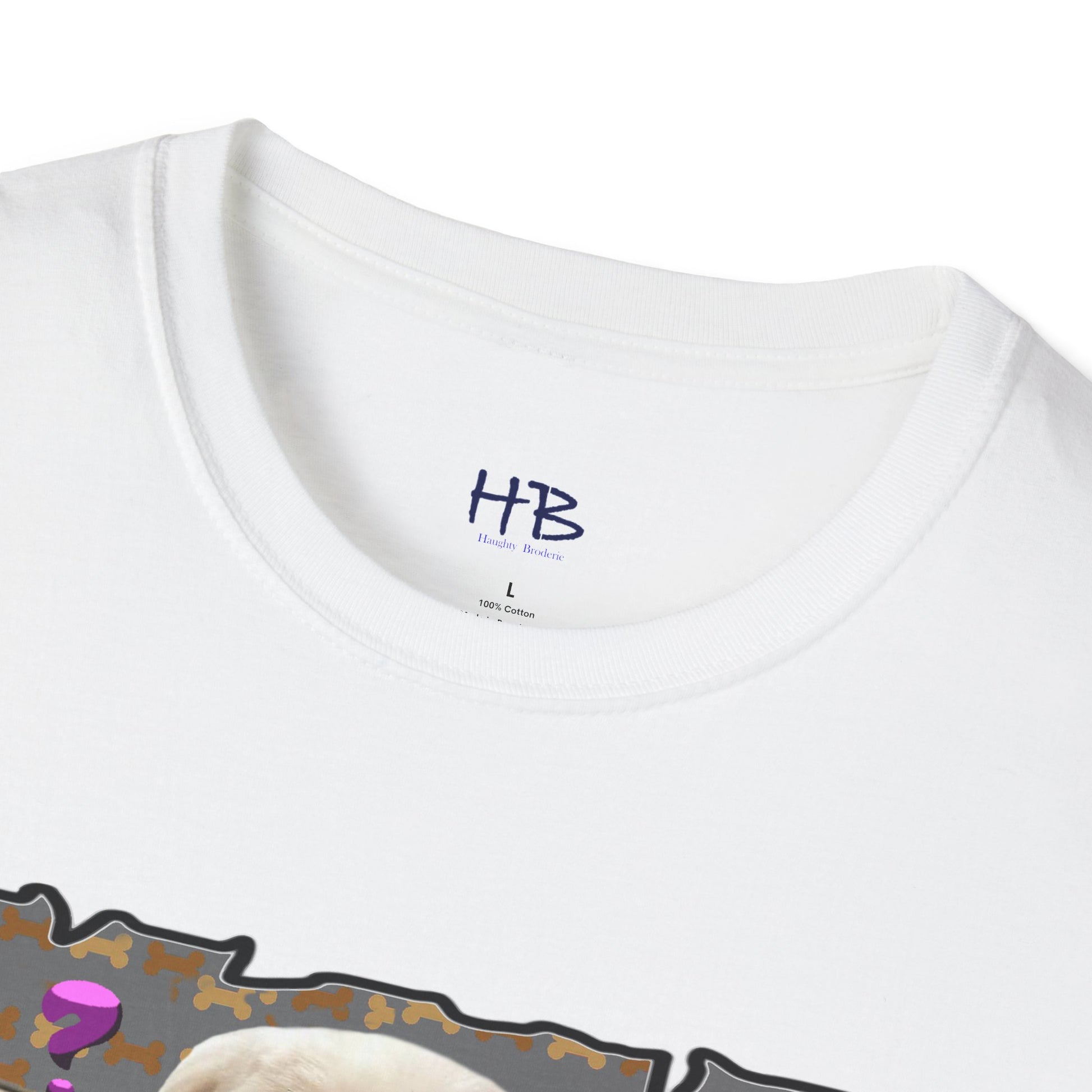 Introducing our newest addition to our tee shirt collection! This cute and adorable tee features a baby bichon maltese with innocent, wide-open eyes looking up at their owner in curiosity. The pup's expression is simply priceless with its large purple question marks that give off an air of cluelessness. The background showcases images of delicious dog bones, further highlighting the playful and fun nature of this shirt. This shirt is perfect for dog lovers who can't resist the charm of an adorable pup.