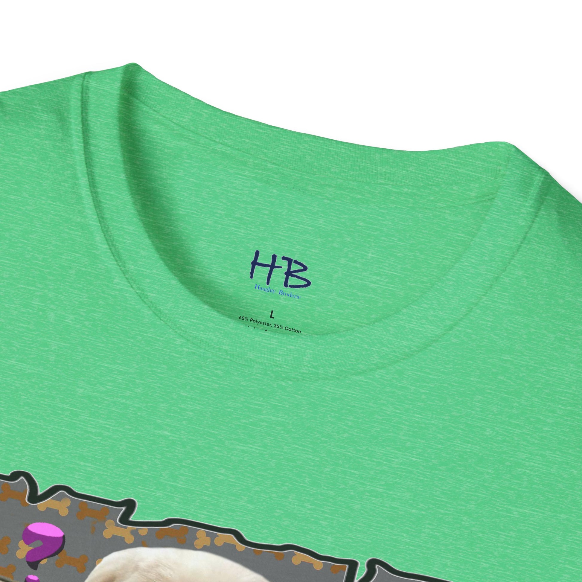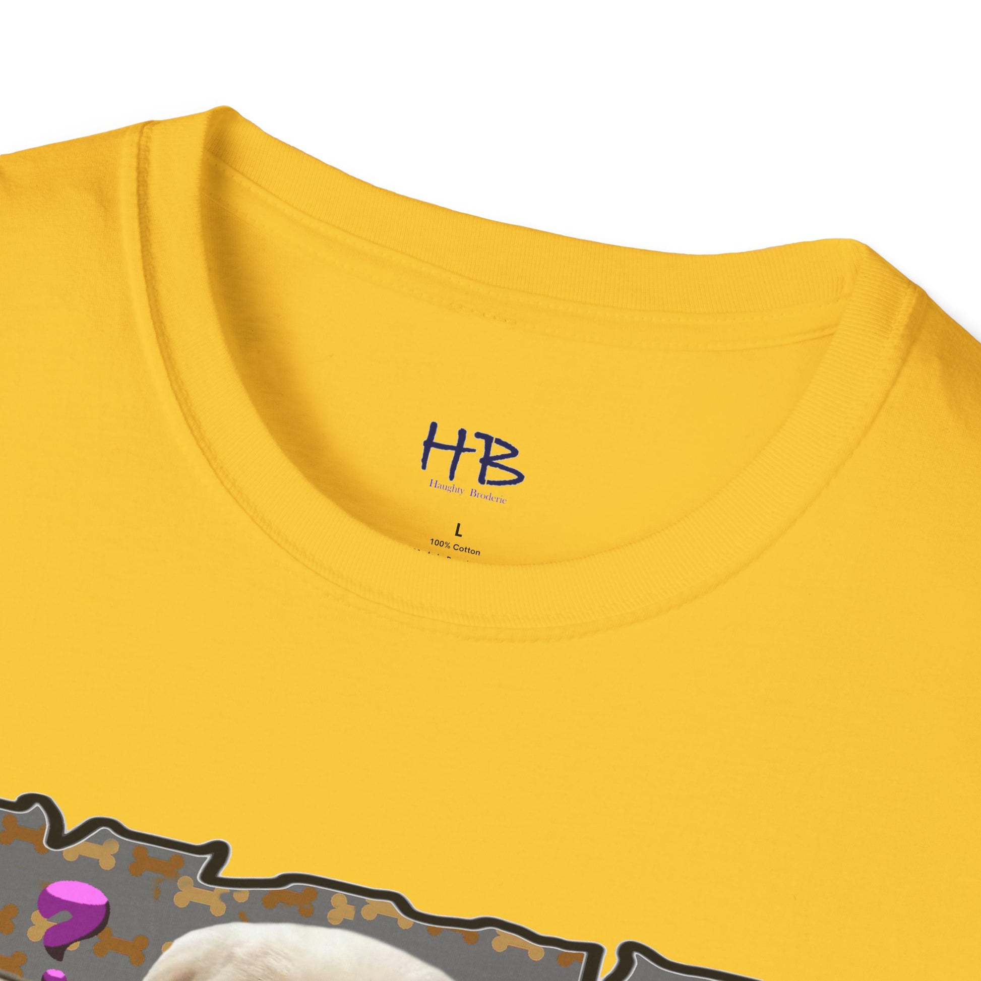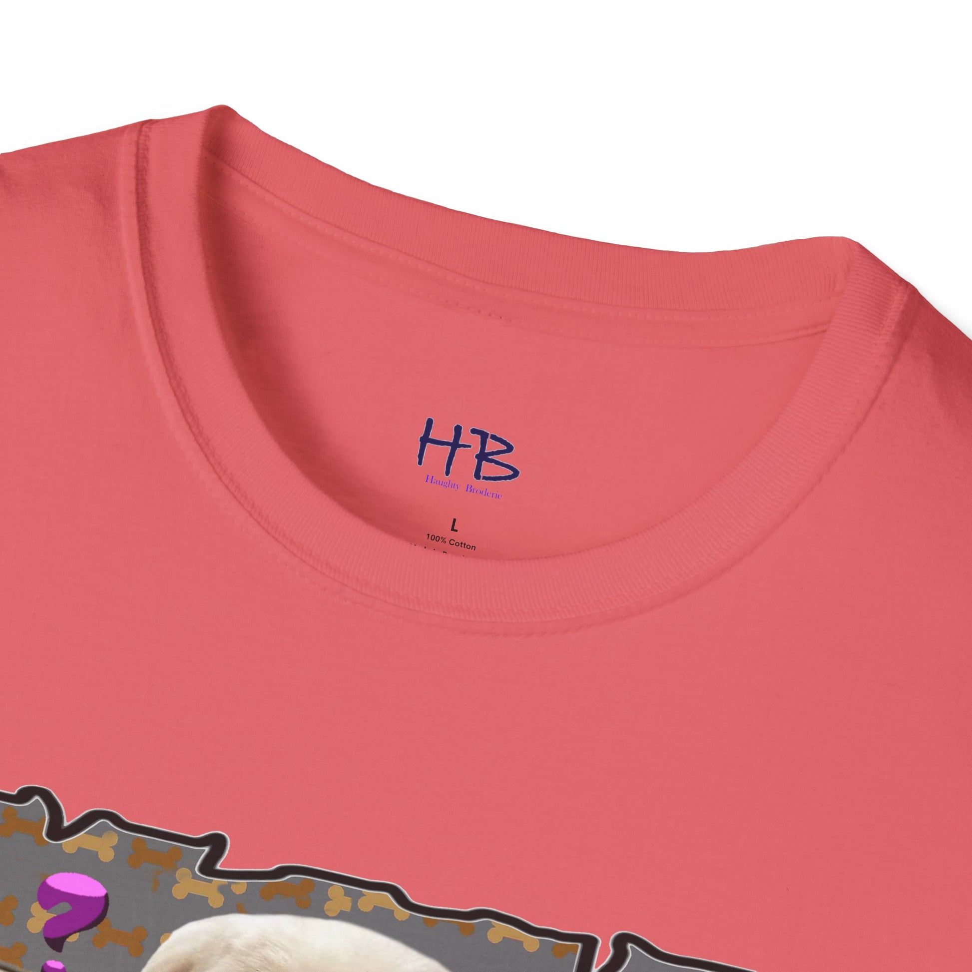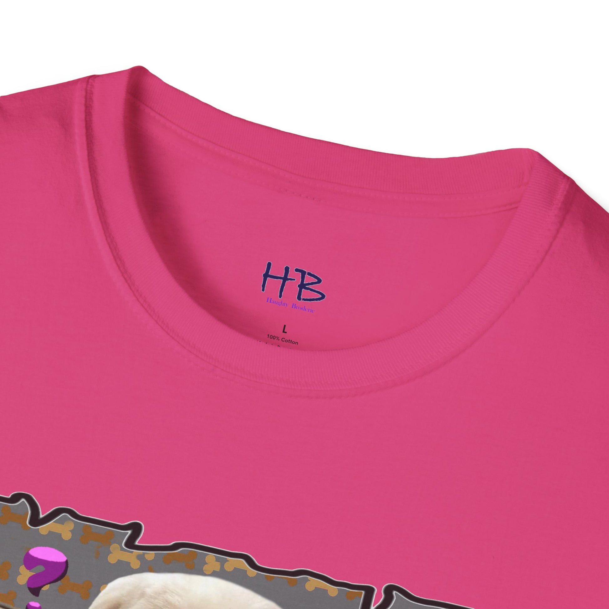 Introducing our newest addition to our tee shirt collection! This cute and adorable tee features a baby bichon maltese with innocent, wide-open eyes looking up at their owner in curiosity. The pup's expression is simply priceless with its large purple question marks that give off an air of cluelessness. The background showcases images of delicious dog bones, further highlighting the playful and fun nature of this shirt. This shirt is perfect for dog lovers who can't resist the charm of an adorable pup.