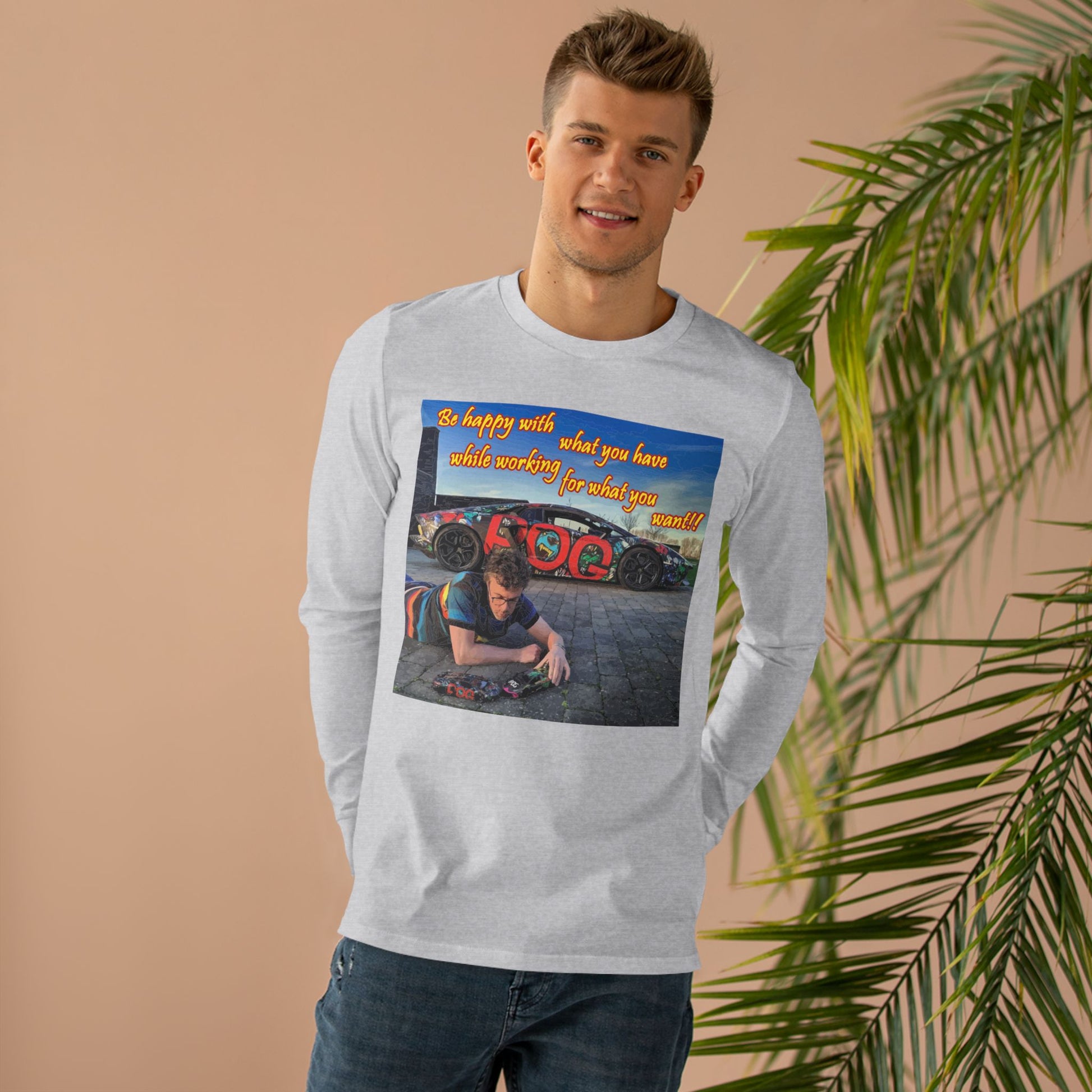 Be happy with what you have while working for what you want (Men's Base Longsleeve Tee - All-Season Wear)