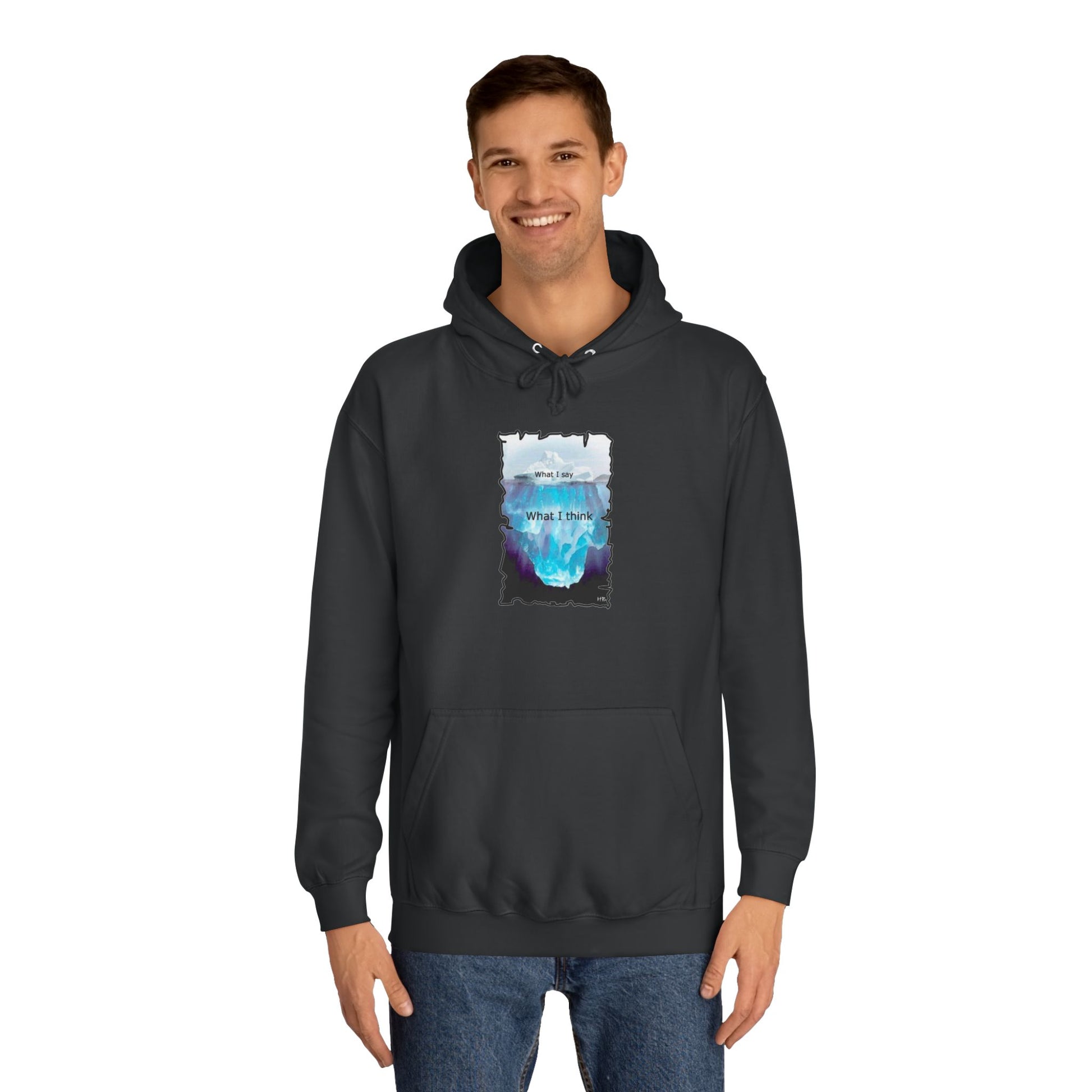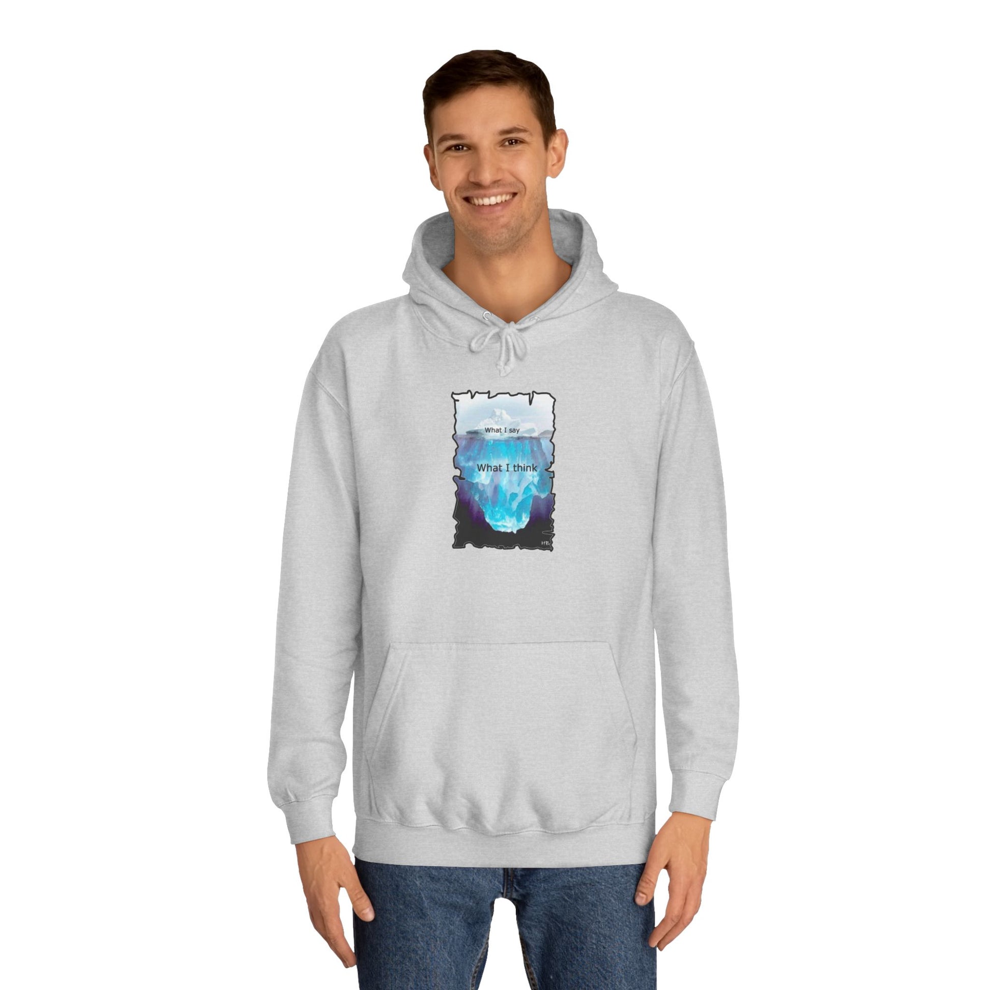 Featuring a stunning image of a massive iceberg, this tee shirt is sure to grab attention. The visible portion of the iceberg above the water reads "What I Say," while the hidden portion below the surface says "What I Think." This design perfectly captures the idea that we often keep our true thoughts and feelings concealed, only sharing a small portion of what we truly think.