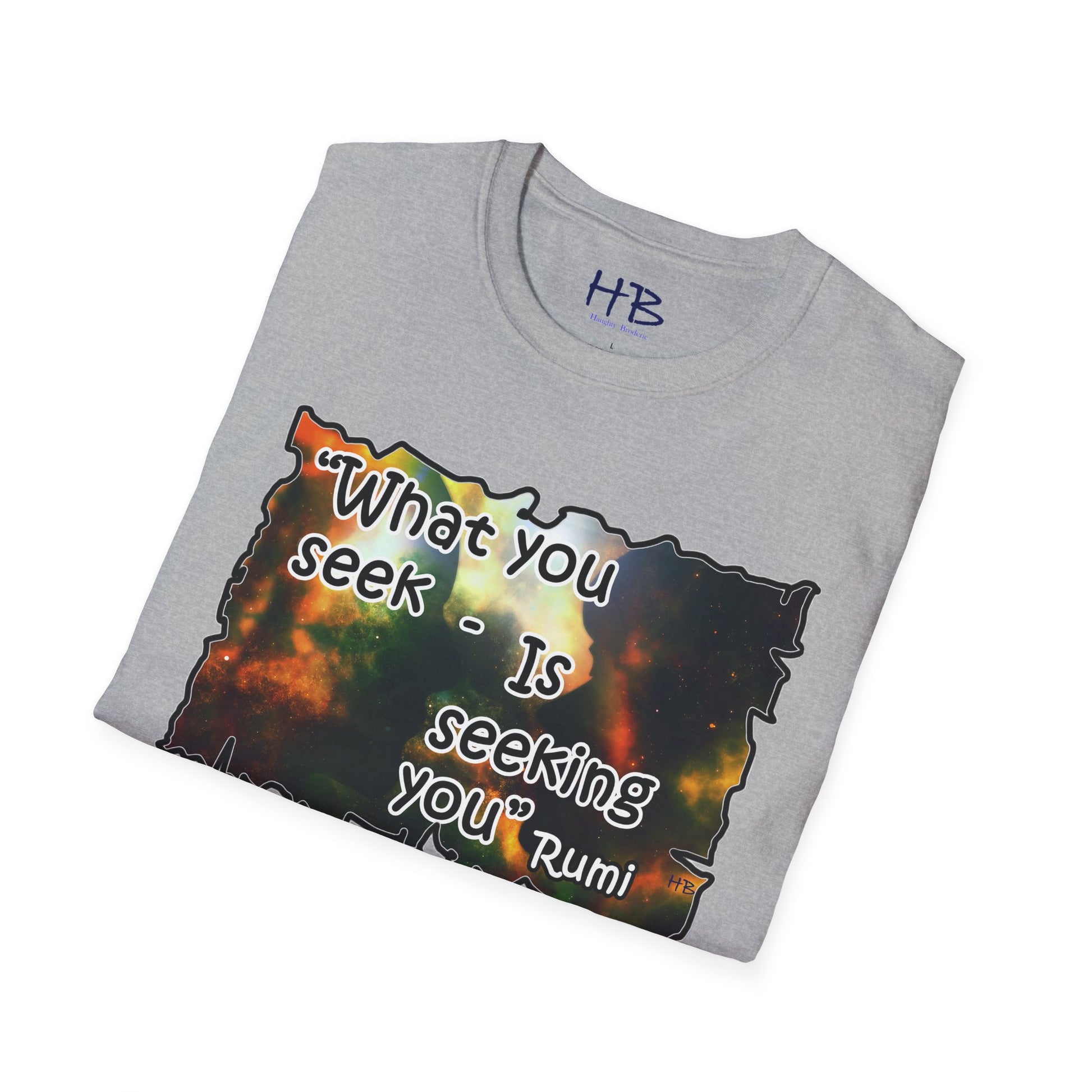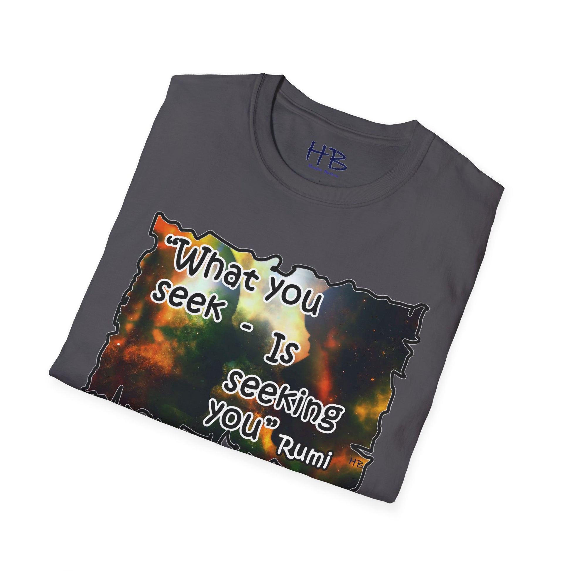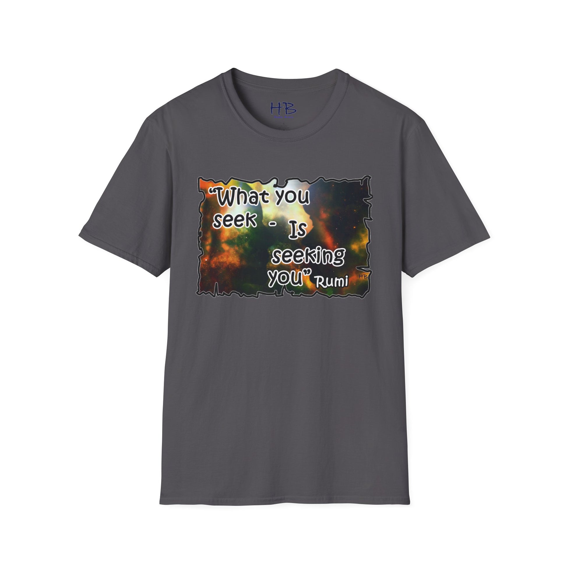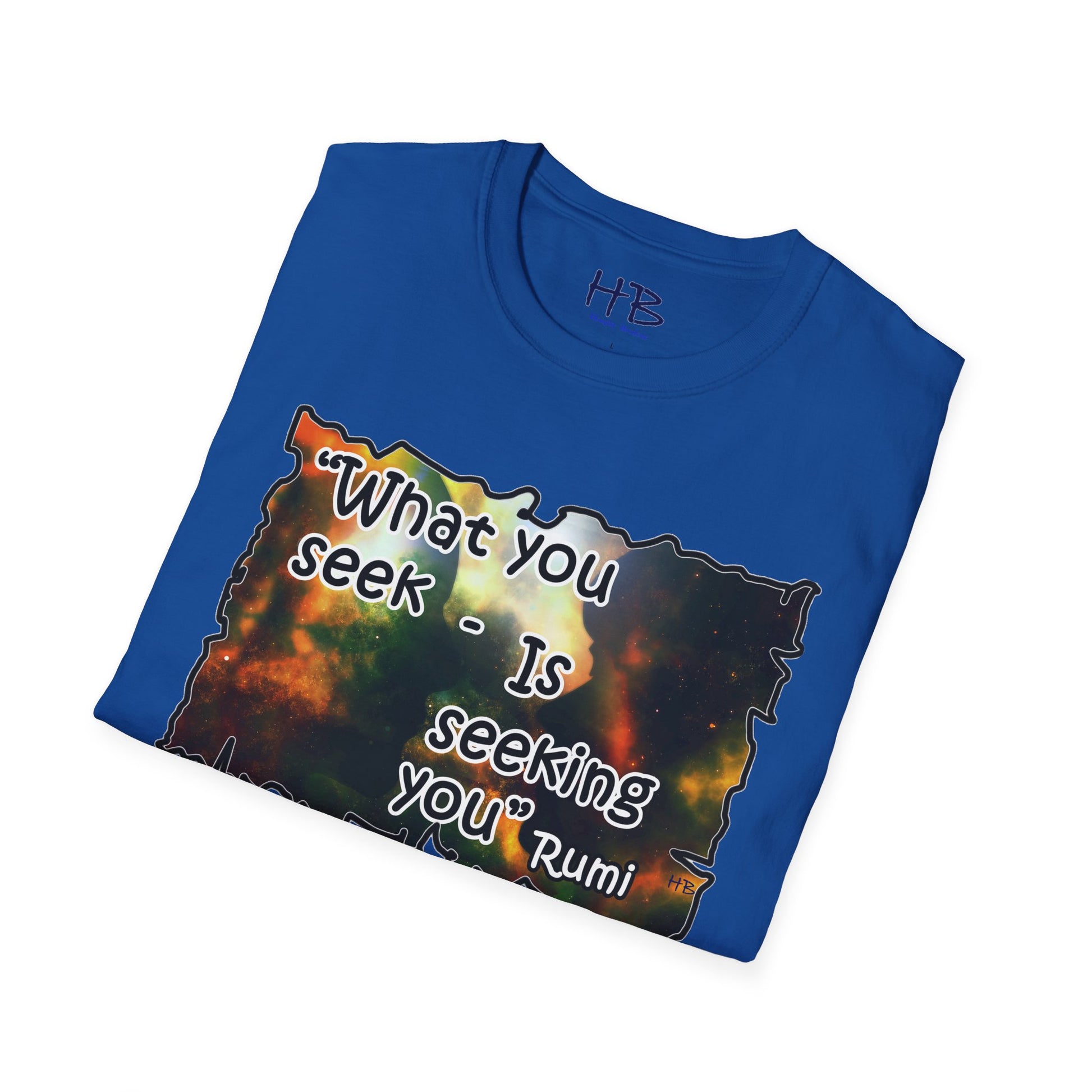 With each glance at the image and quote on your tee shirt, you are reminded of the cosmic dance unfolding around you. Embrace the wisdom of Rumi and the infinite possibilities that lie within the universe and within yourself. Step into the world with a renewed sense of purpose, knowing that what you seek is indeed seeking you. Let your tee shirt inspire others to embark on their own journeys of self-discovery, connection, and fulfillment in this wondrous cosmic tapestry we call life.
