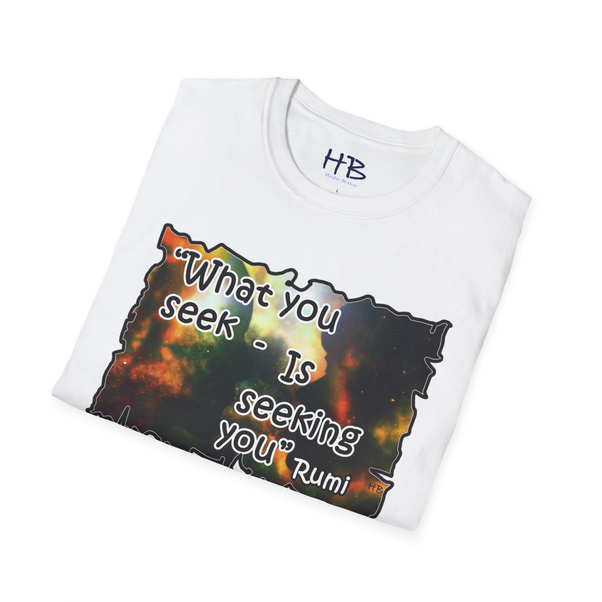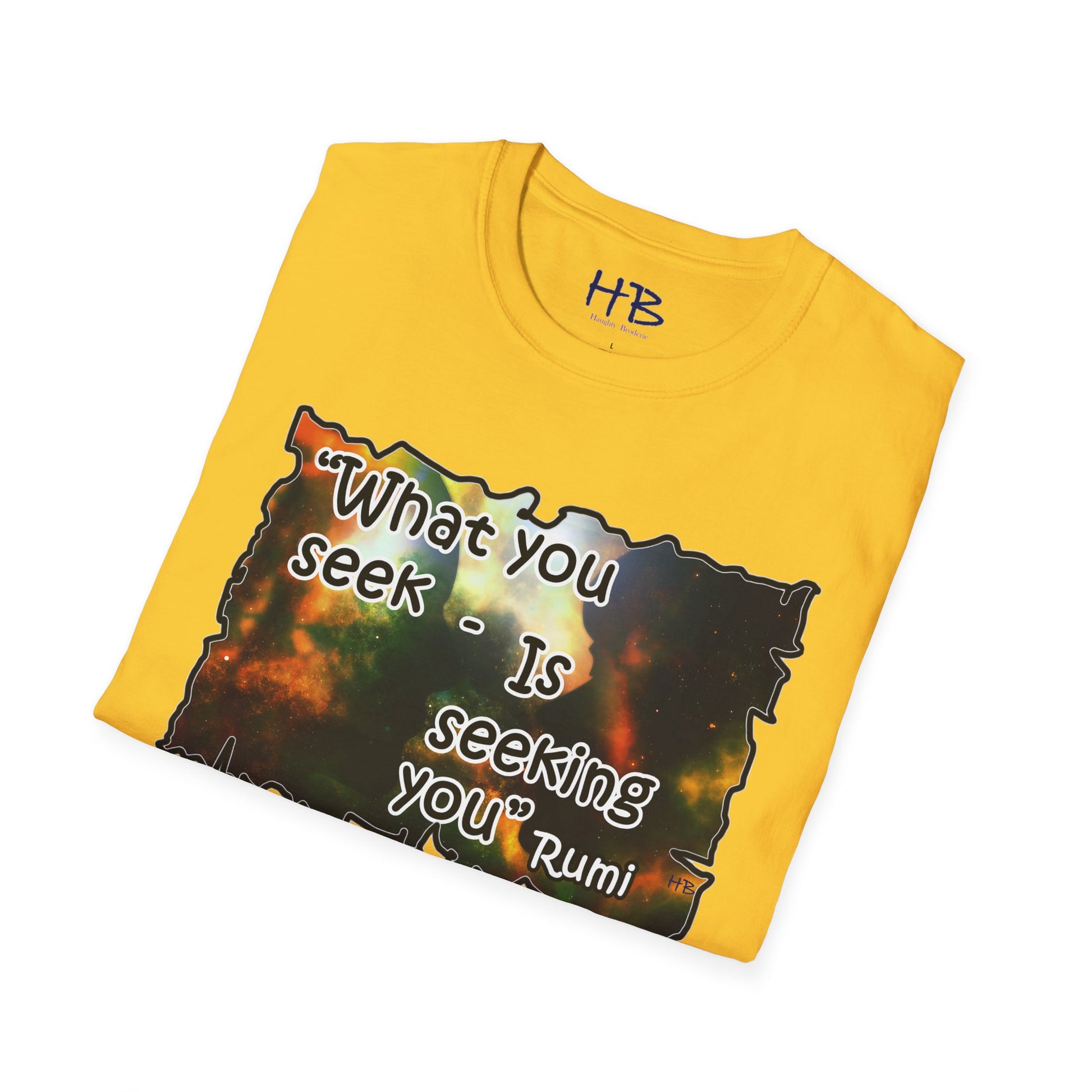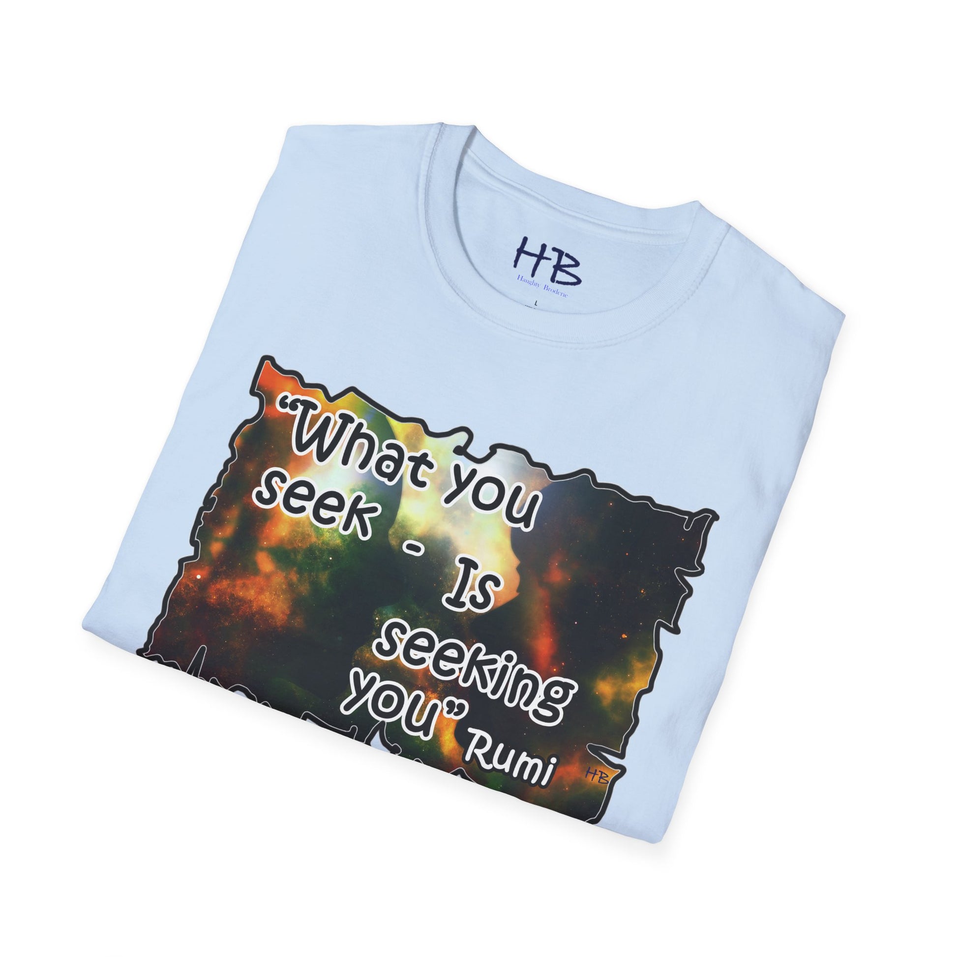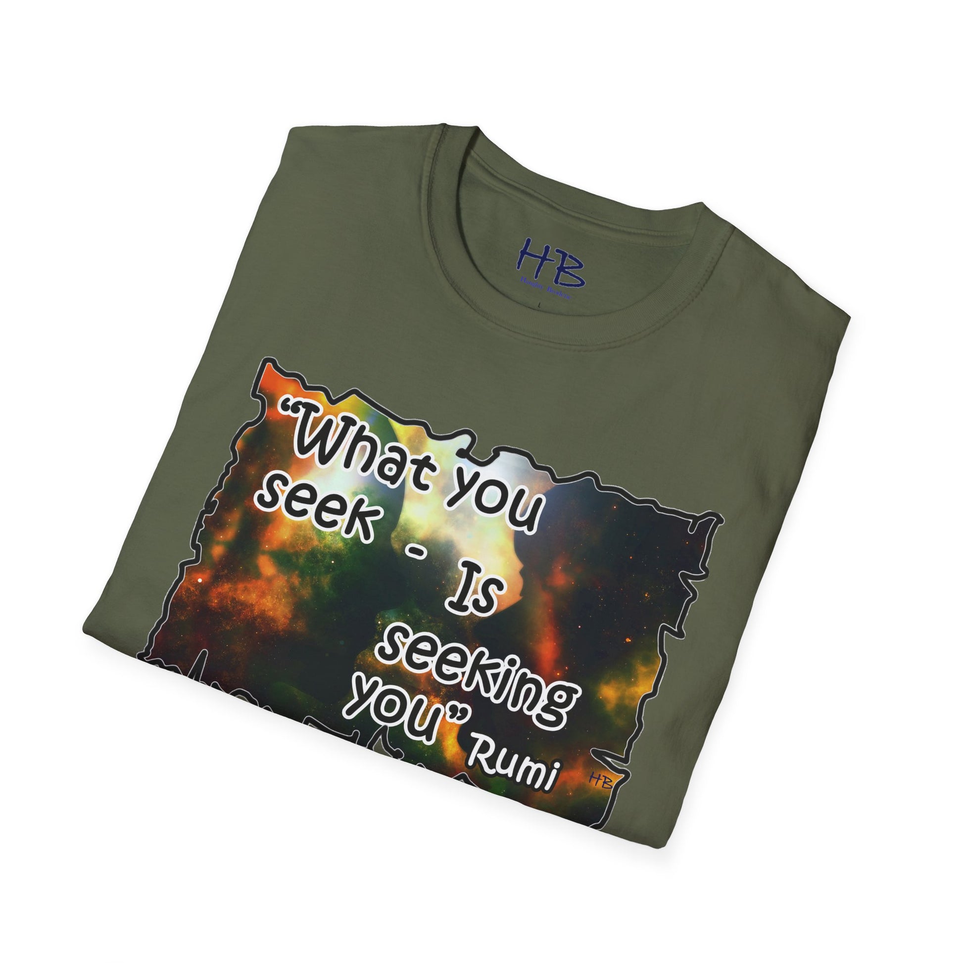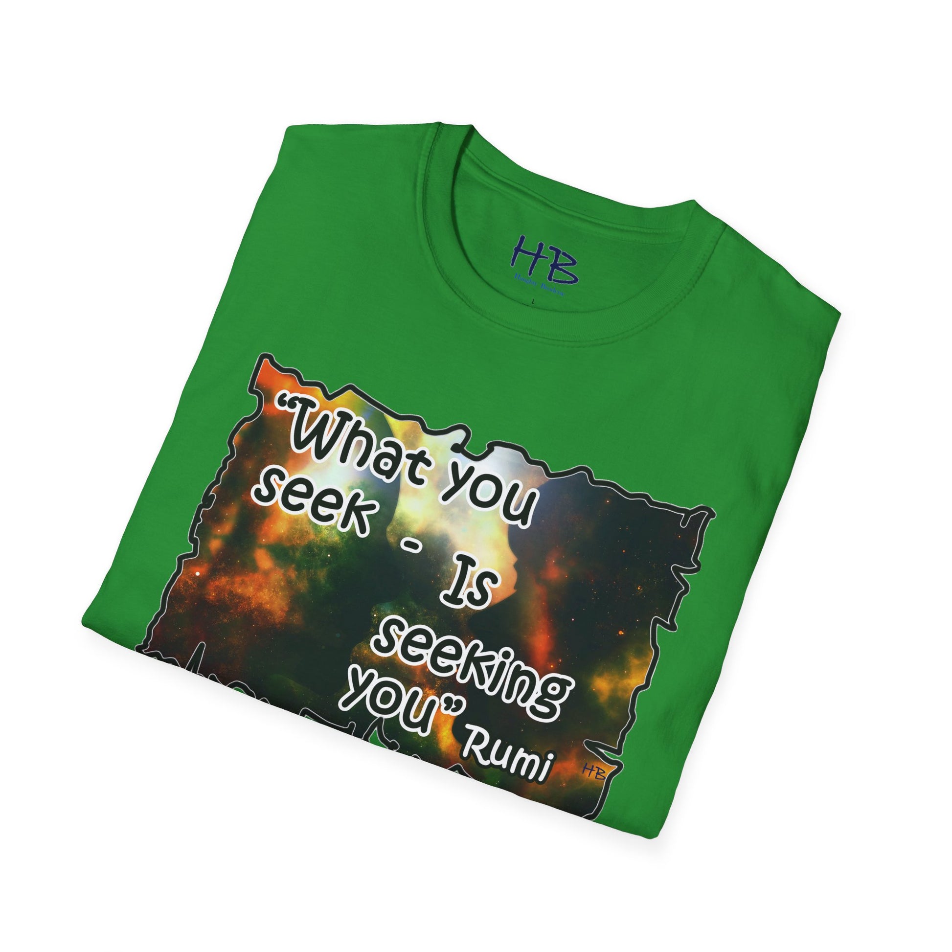 With each glance at the image and quote on your tee shirt, you are reminded of the cosmic dance unfolding around you. Embrace the wisdom of Rumi and the infinite possibilities that lie within the universe and within yourself. Step into the world with a renewed sense of purpose, knowing that what you seek is indeed seeking you. Let your tee shirt inspire others to embark on their own journeys of self-discovery, connection, and fulfillment in this wondrous cosmic tapestry we call life.
