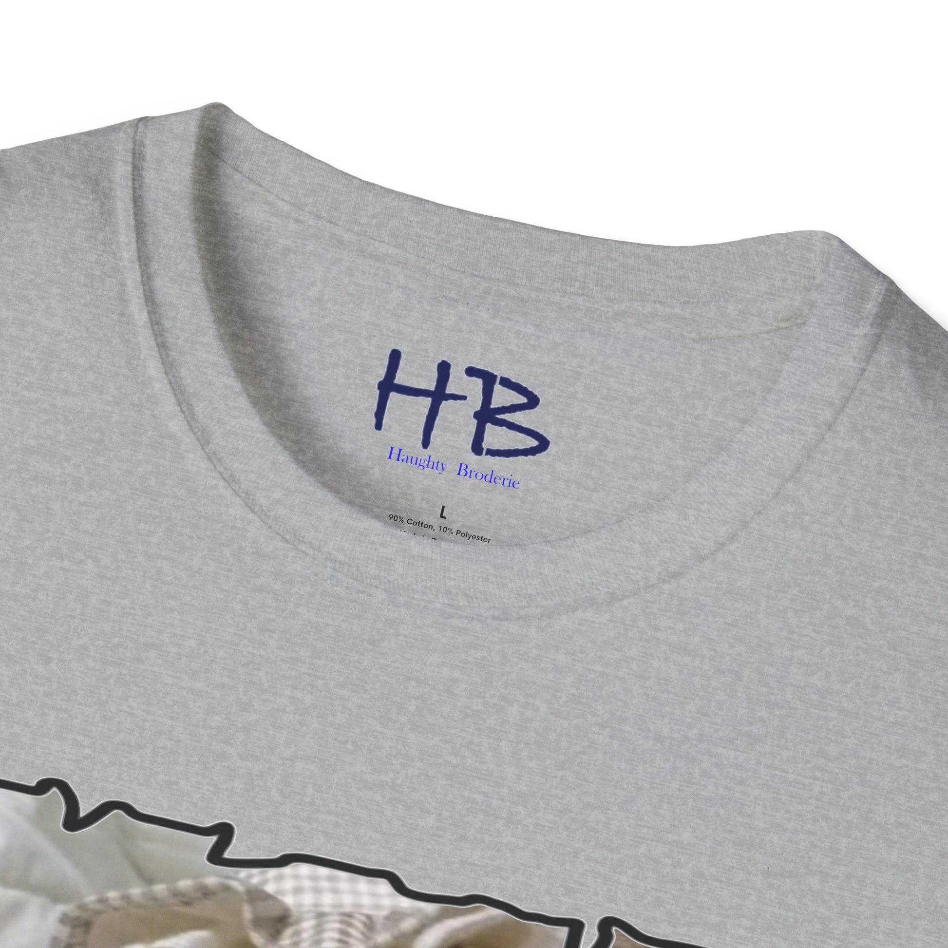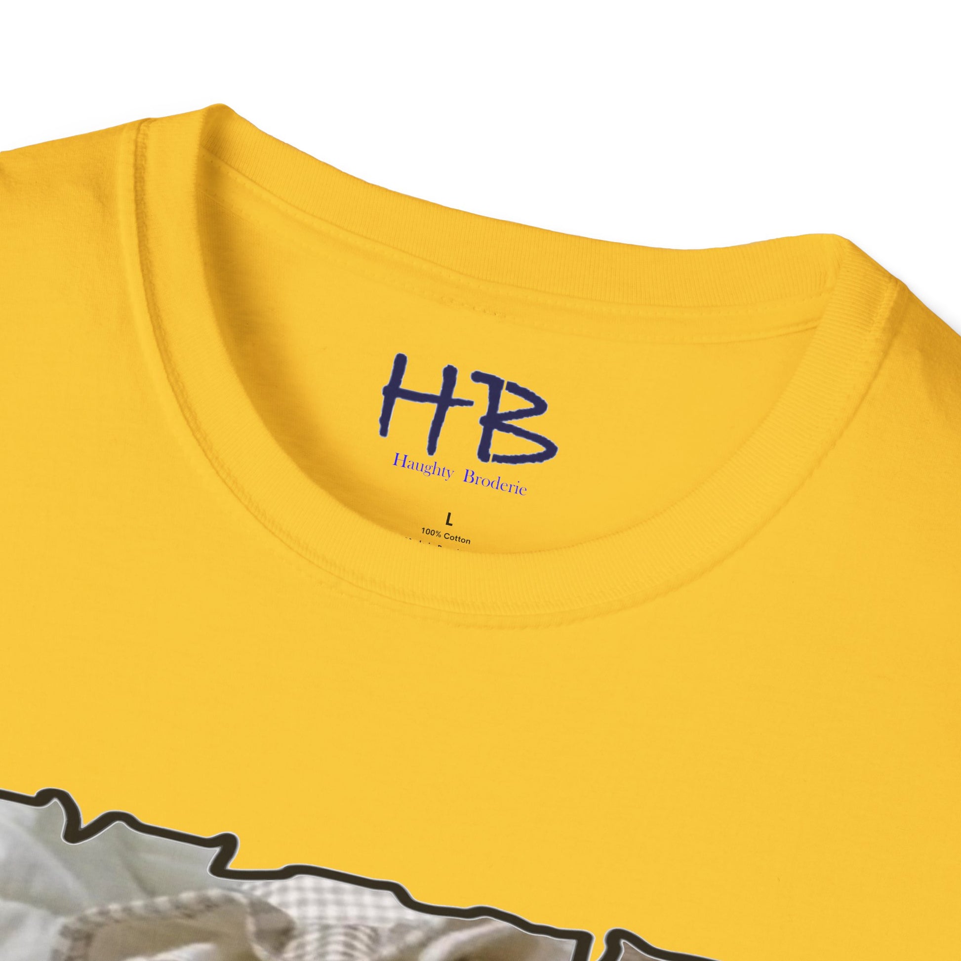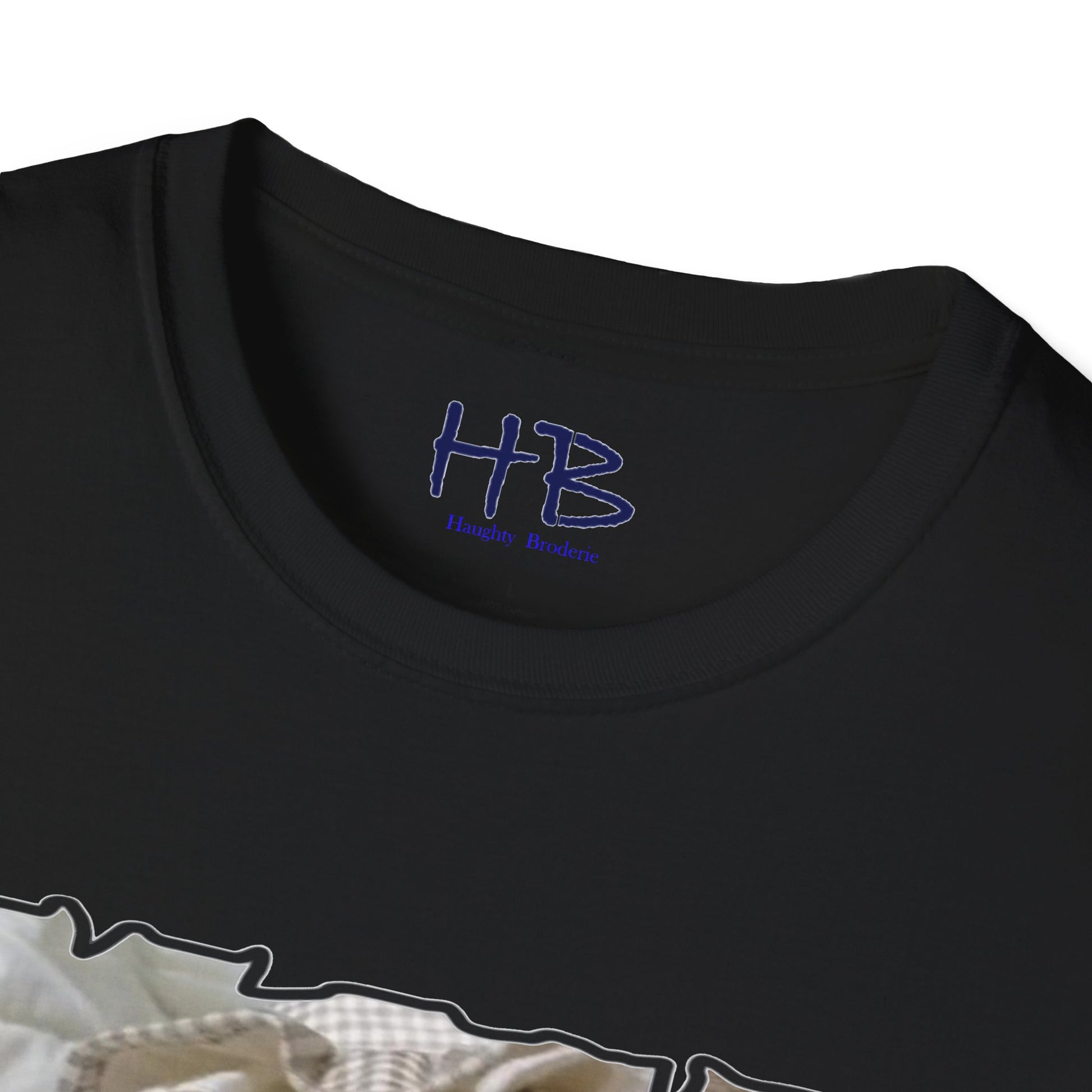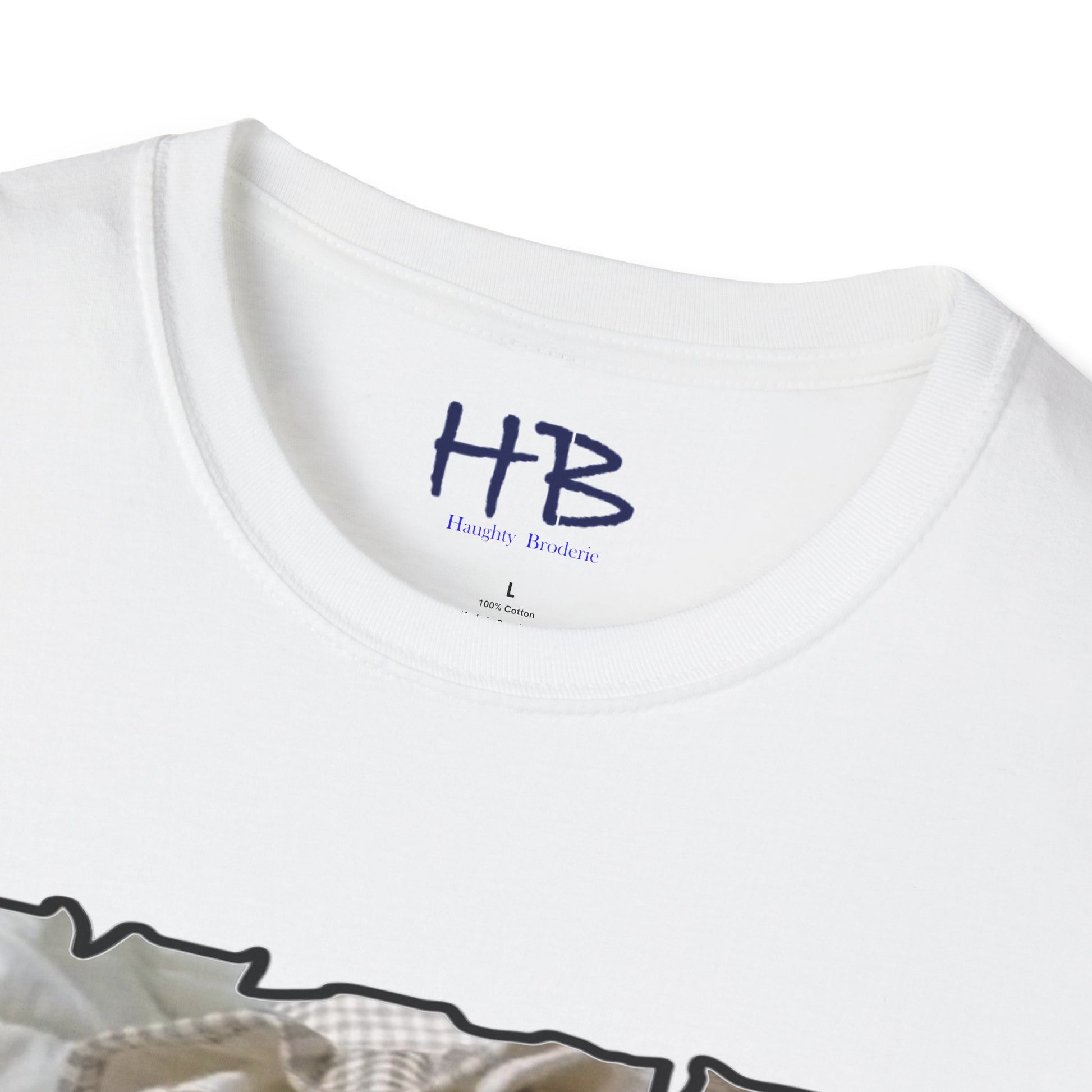 Introducing our latest tee shirt featuring a darling and adorable little Maltese puppy, with a snowy white coat and a dainty size that will surely melt your heart. This cute and charming bichon is captured wearing a fancy and elegant hat and night uniform that complements its delicate features perfectly. The image showcases a look of anxiety in the puppy's eyes, which adds to the cuteness factor and makes it all the more endearing.