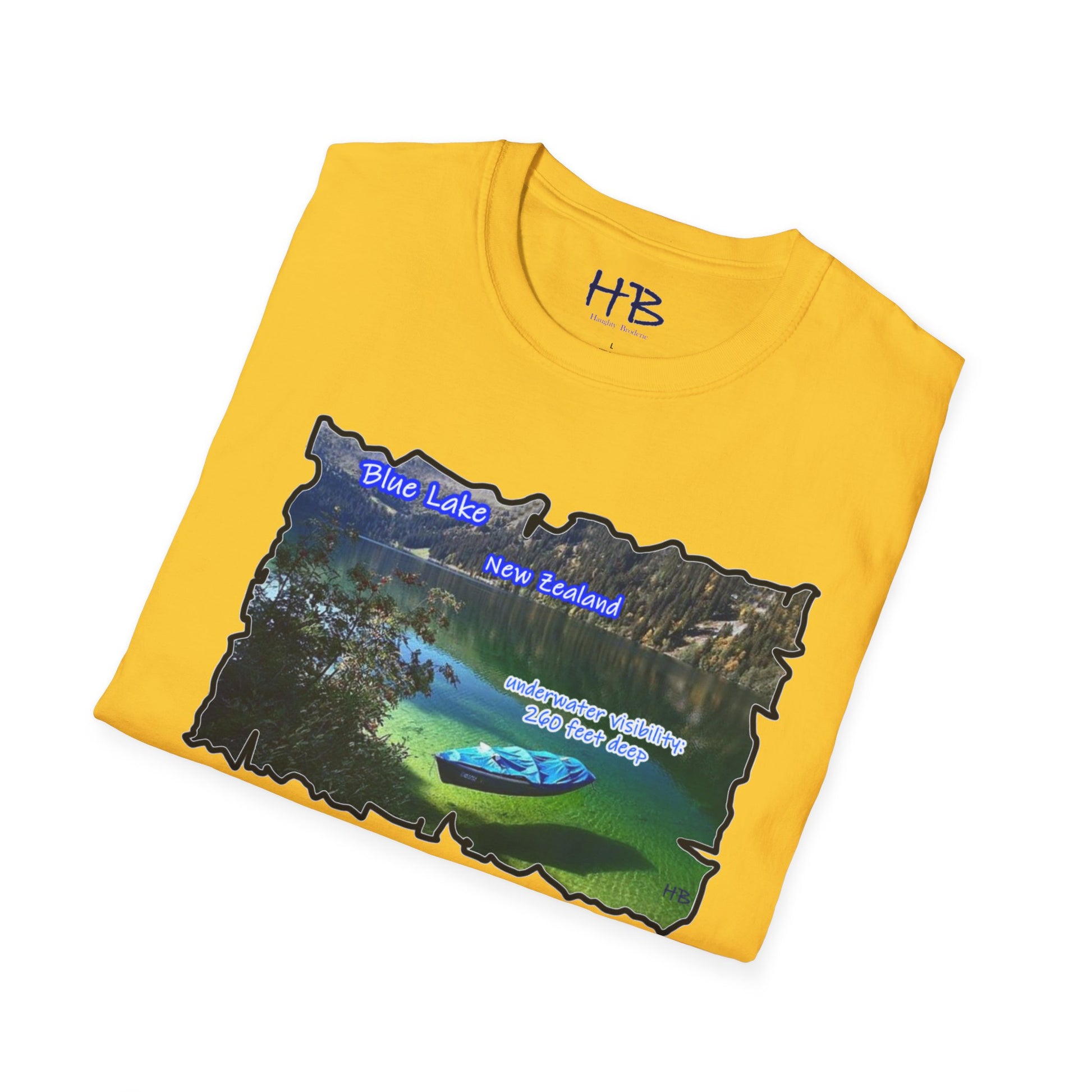 Introducing our latest masterpiece: the Blue Lake Visionary Tee, a wearable ode to the mesmerizing beauty of New Zealand's Blue Lake. This t-shirt transcends the ordinary, capturing the essence of the clearest lake in the world with unparalleled underwater visibility of up to 260 feet in depth. The vivid imagery on this tee transports you to the tranquil depths of Blue Lake, where every ripple and reflection is a testament to the pristine wonders of nature.