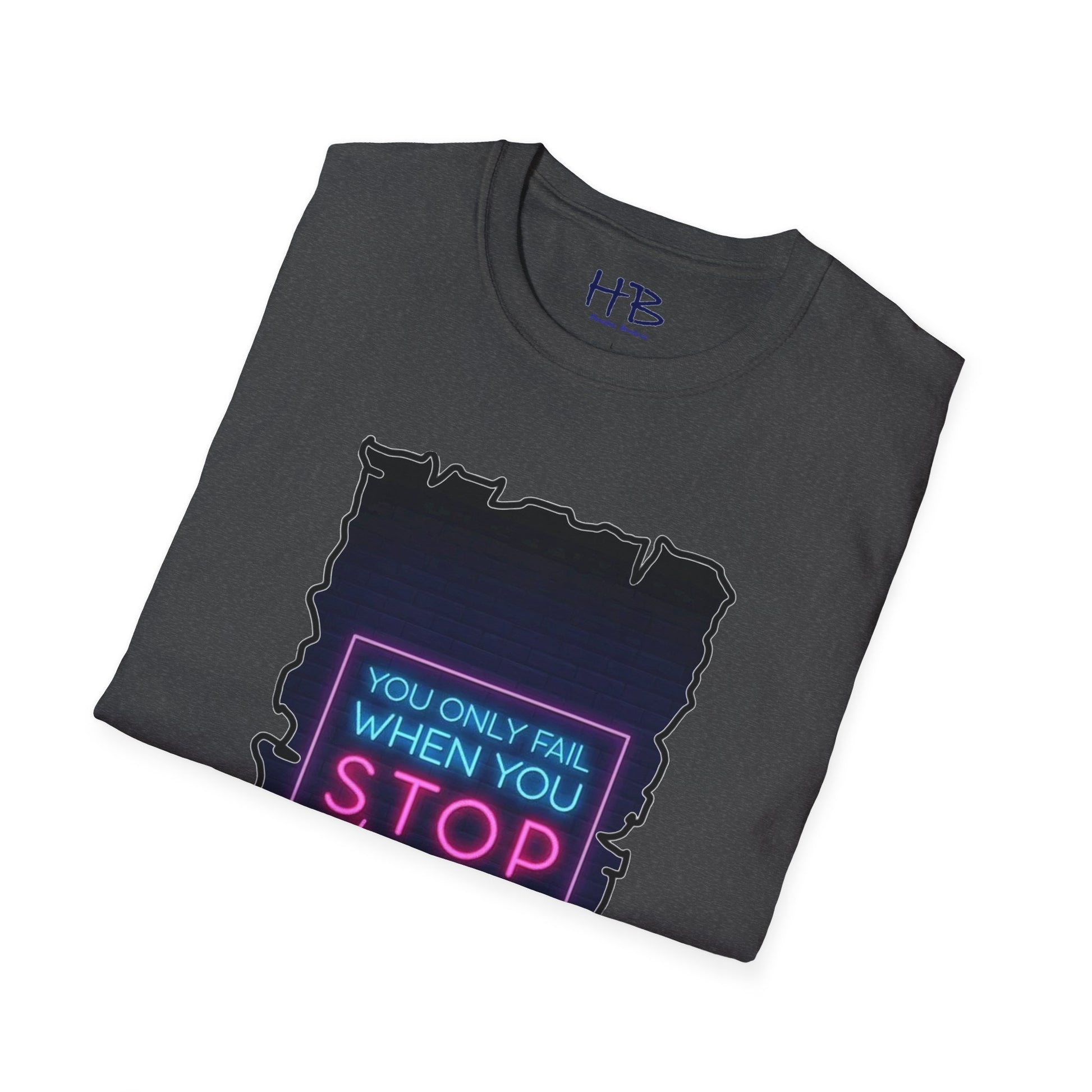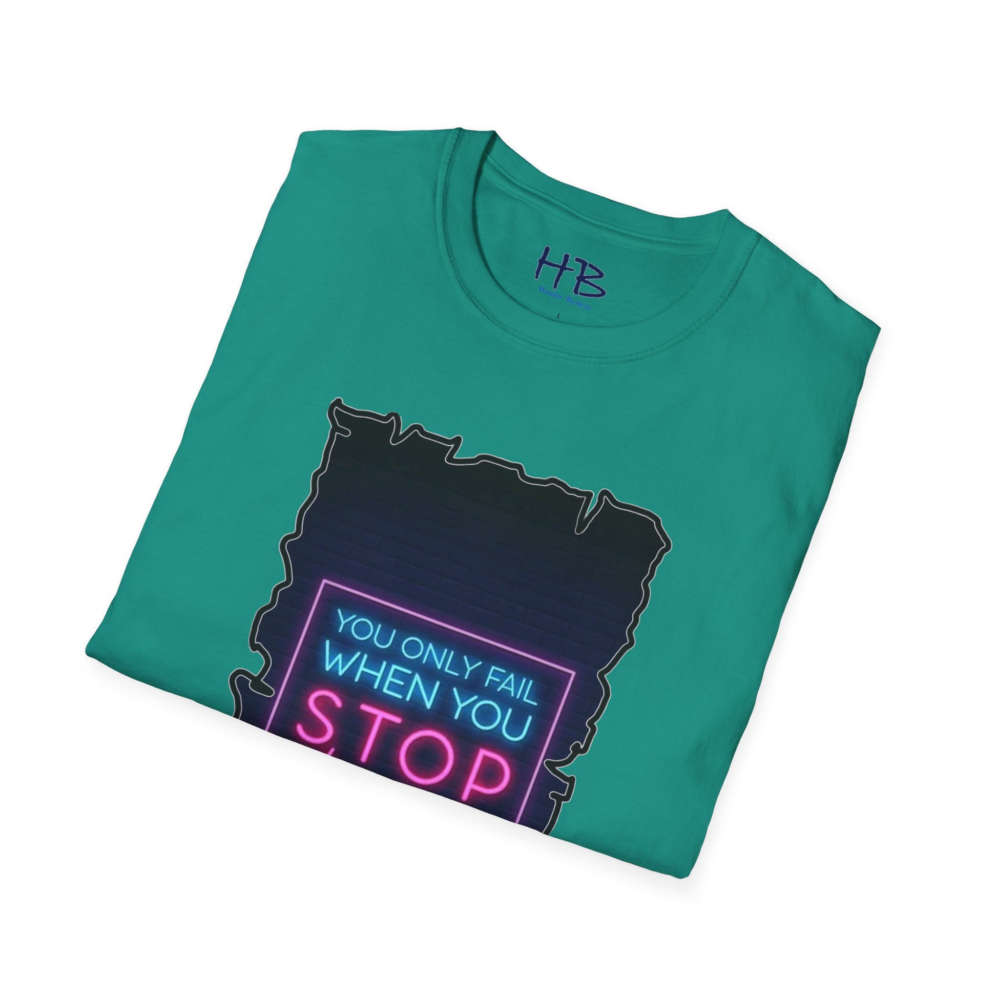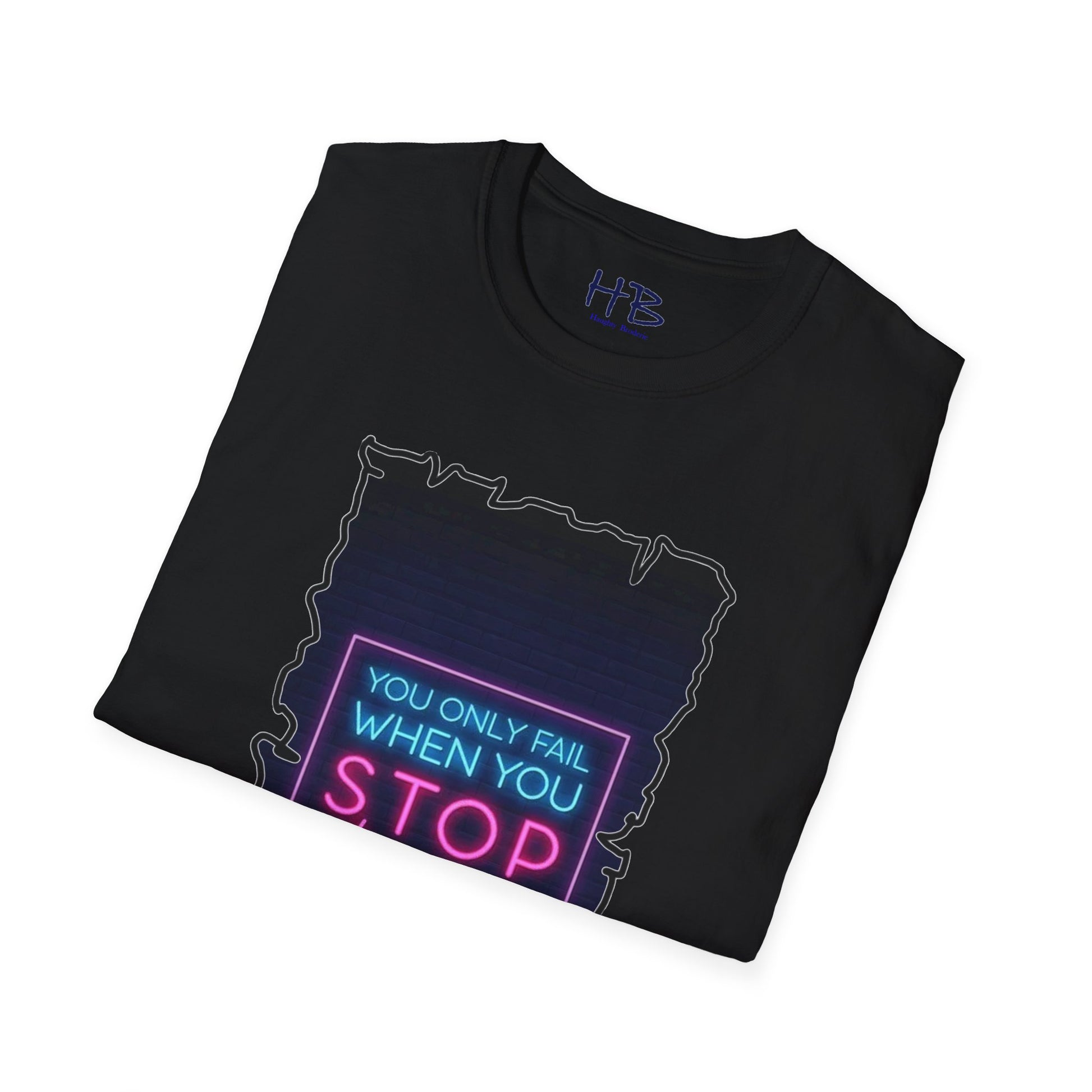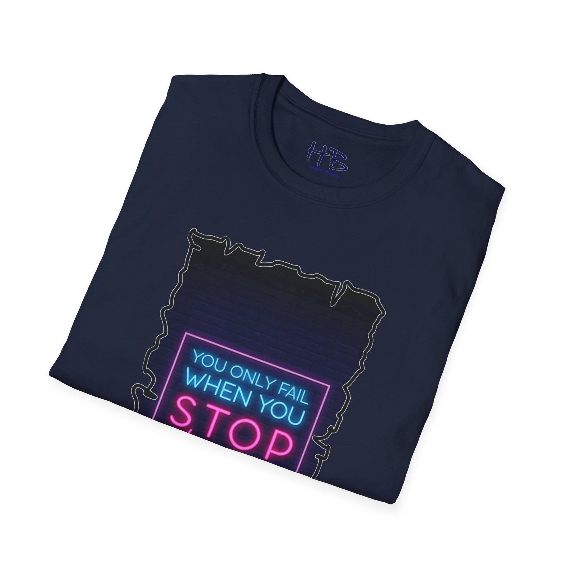 This exceptional piece of clothing doesn't just represent fashion; it is a tangible embodiment of an unwavering spirit, the kind that refuses to accept defeat. The neon sign eloquently declares, "You only fail when you STOP trying," a maxim that resonates deeply in the modern world, where resilience is paramount.
