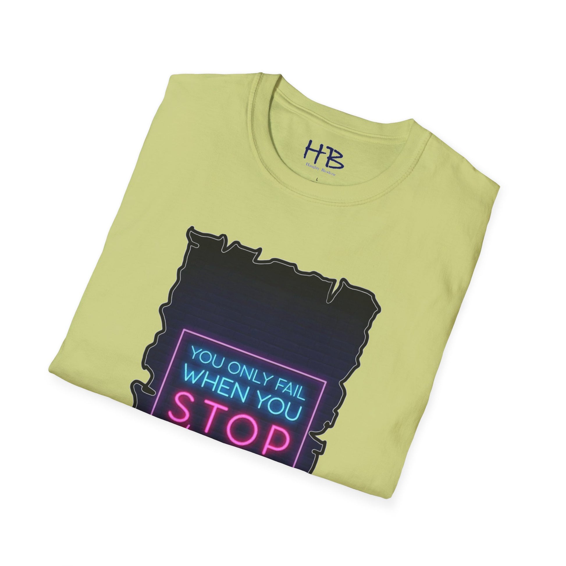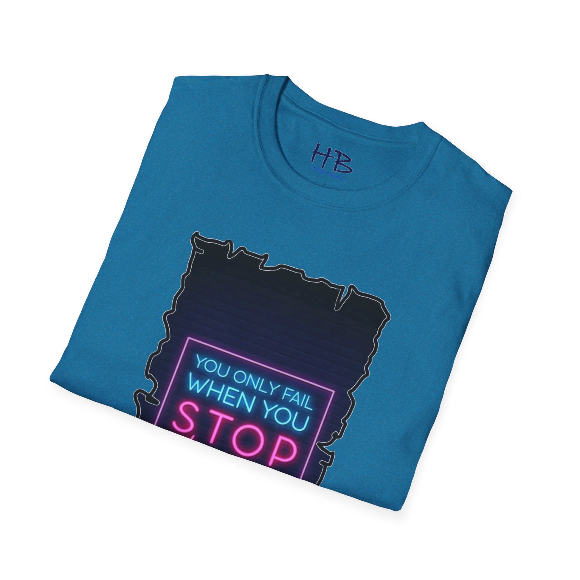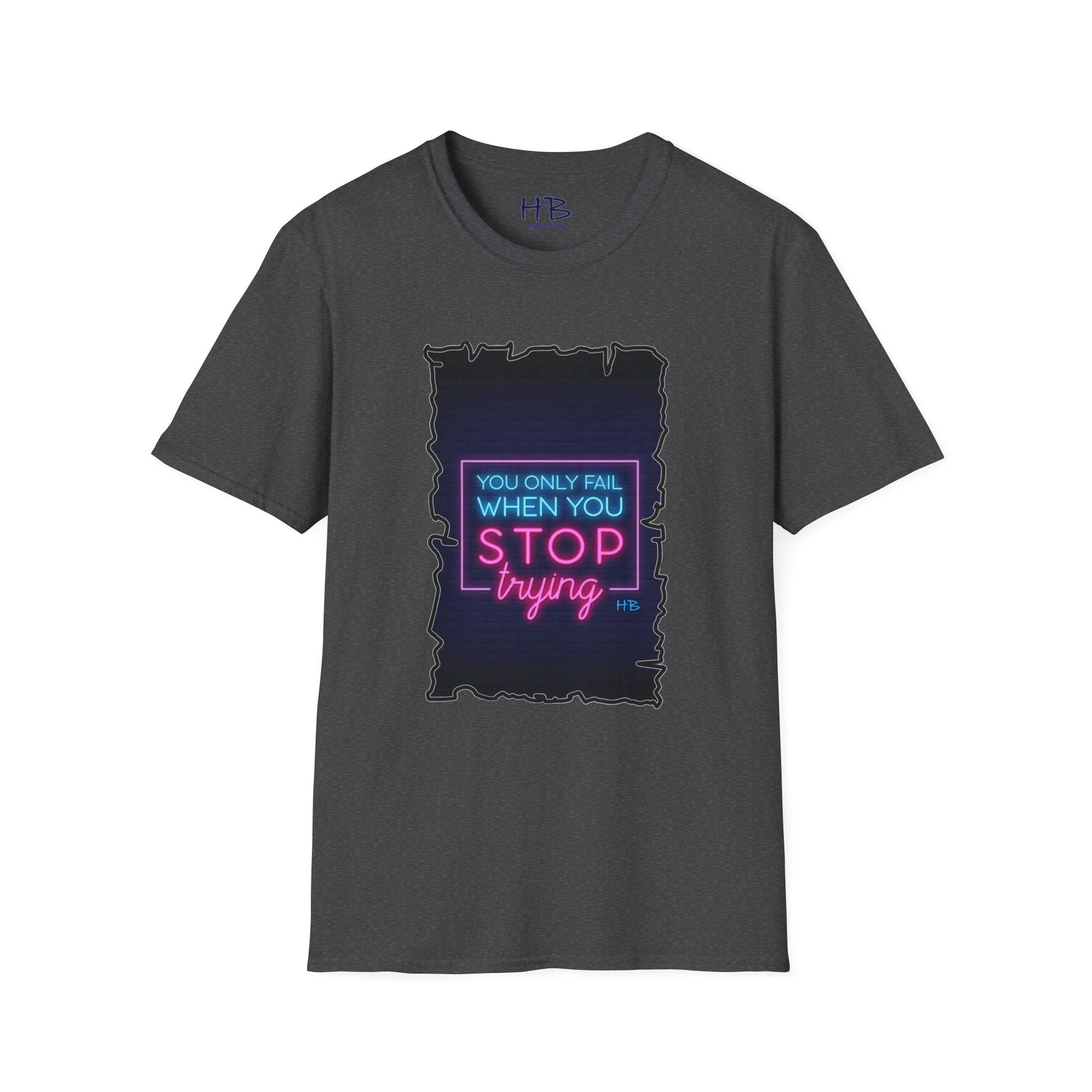 This exceptional piece of clothing doesn't just represent fashion; it is a tangible embodiment of an unwavering spirit, the kind that refuses to accept defeat. The neon sign eloquently declares, "You only fail when you STOP trying," a maxim that resonates deeply in the modern world, where resilience is paramount.