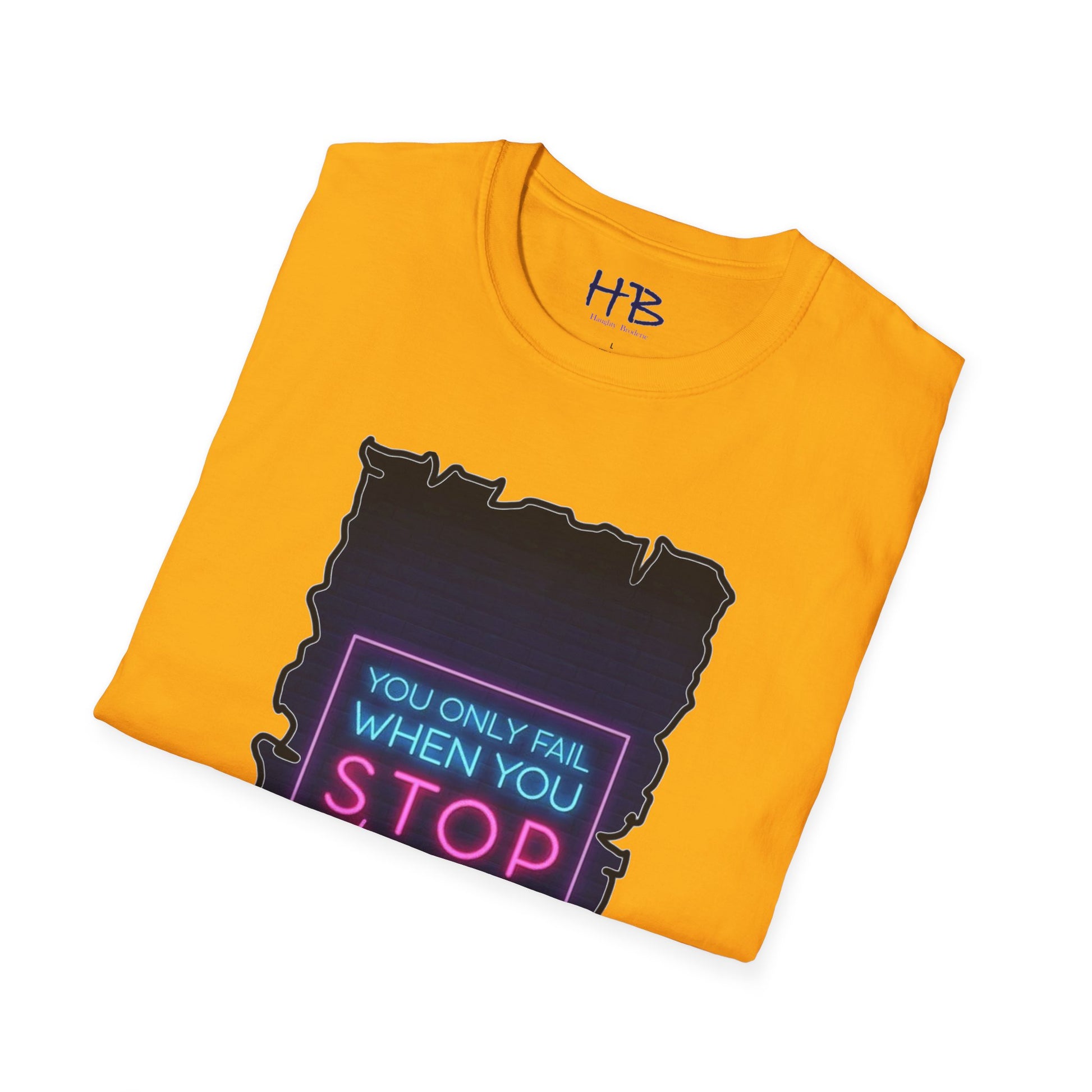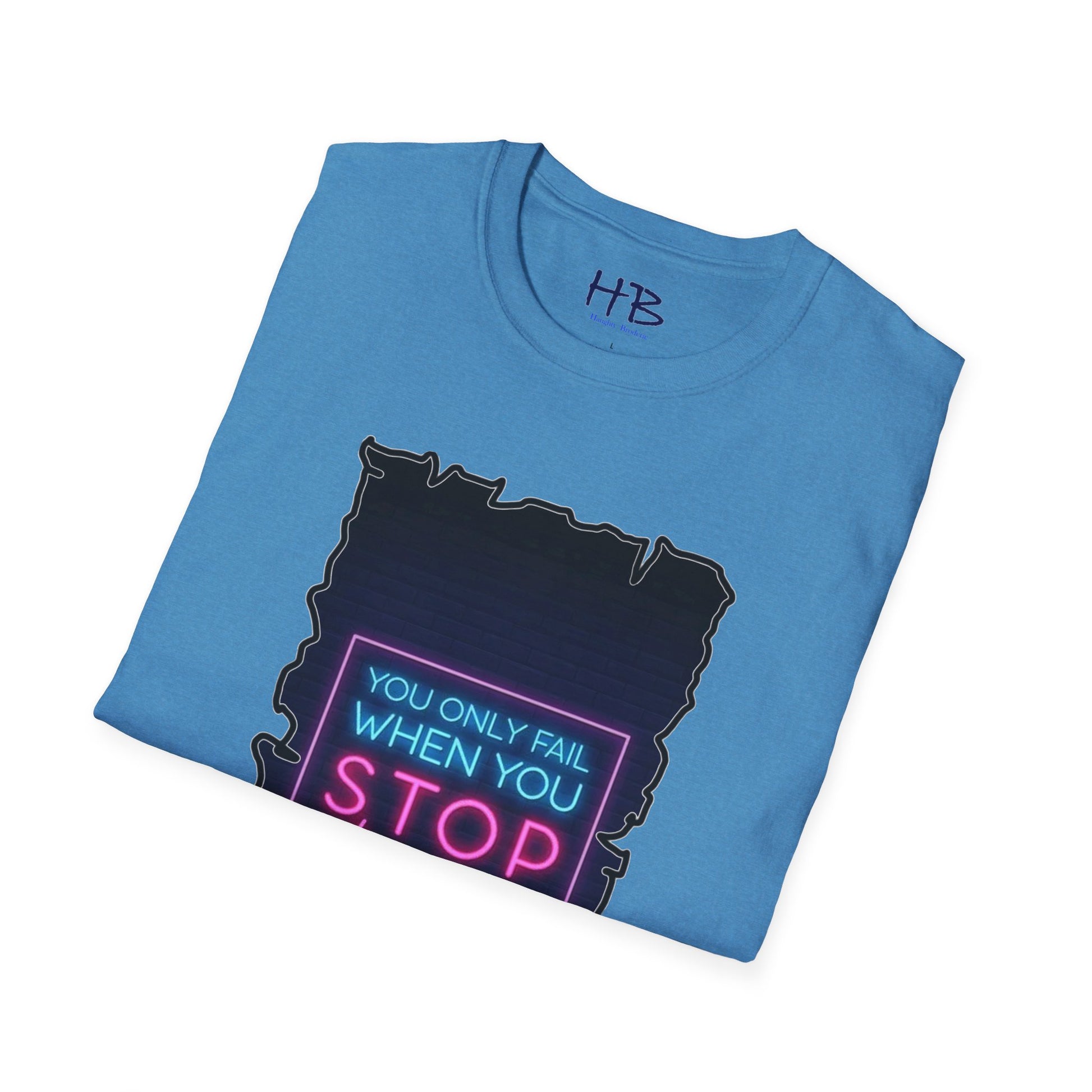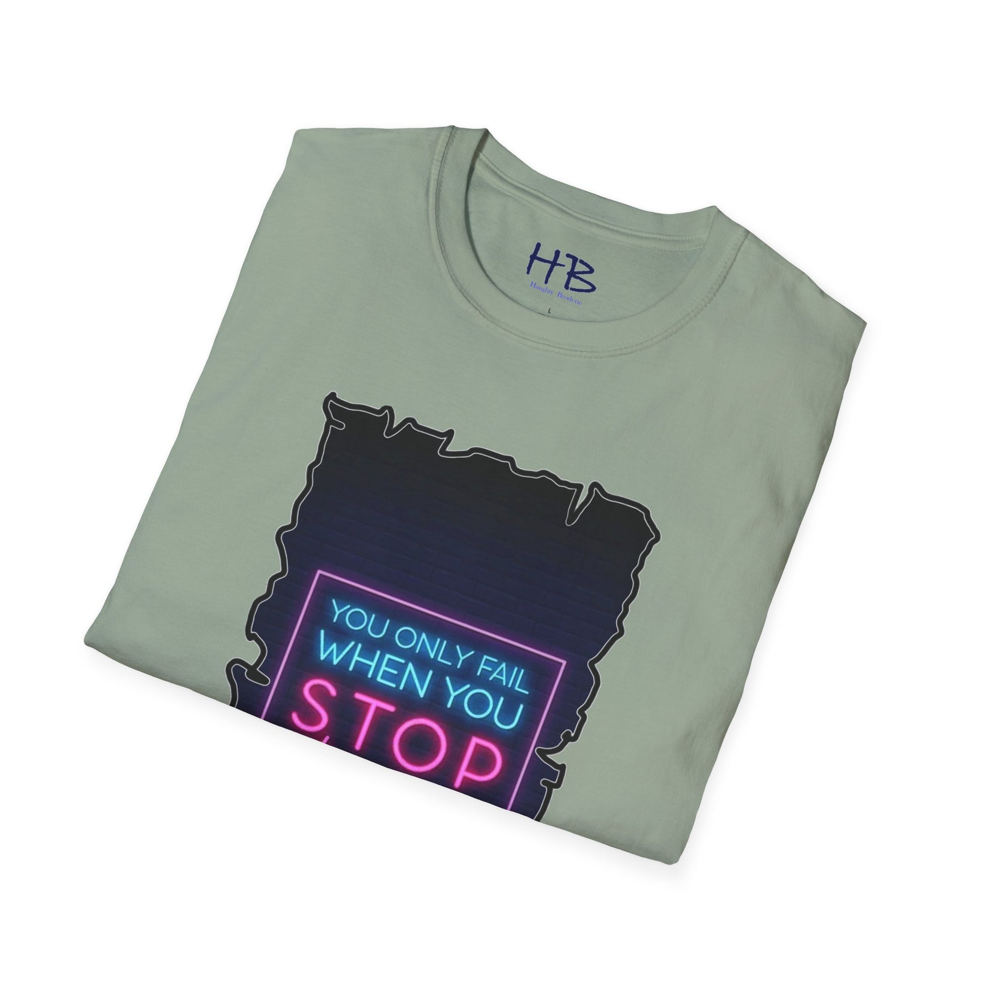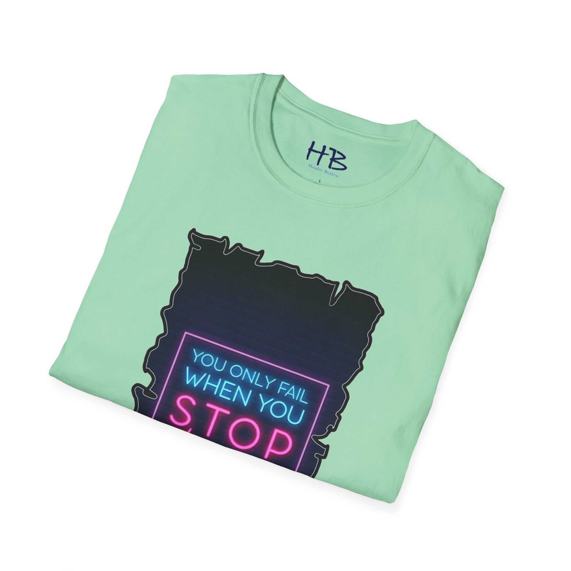 This exceptional piece of clothing doesn't just represent fashion; it is a tangible embodiment of an unwavering spirit, the kind that refuses to accept defeat. The neon sign eloquently declares, "You only fail when you STOP trying," a maxim that resonates deeply in the modern world, where resilience is paramount.