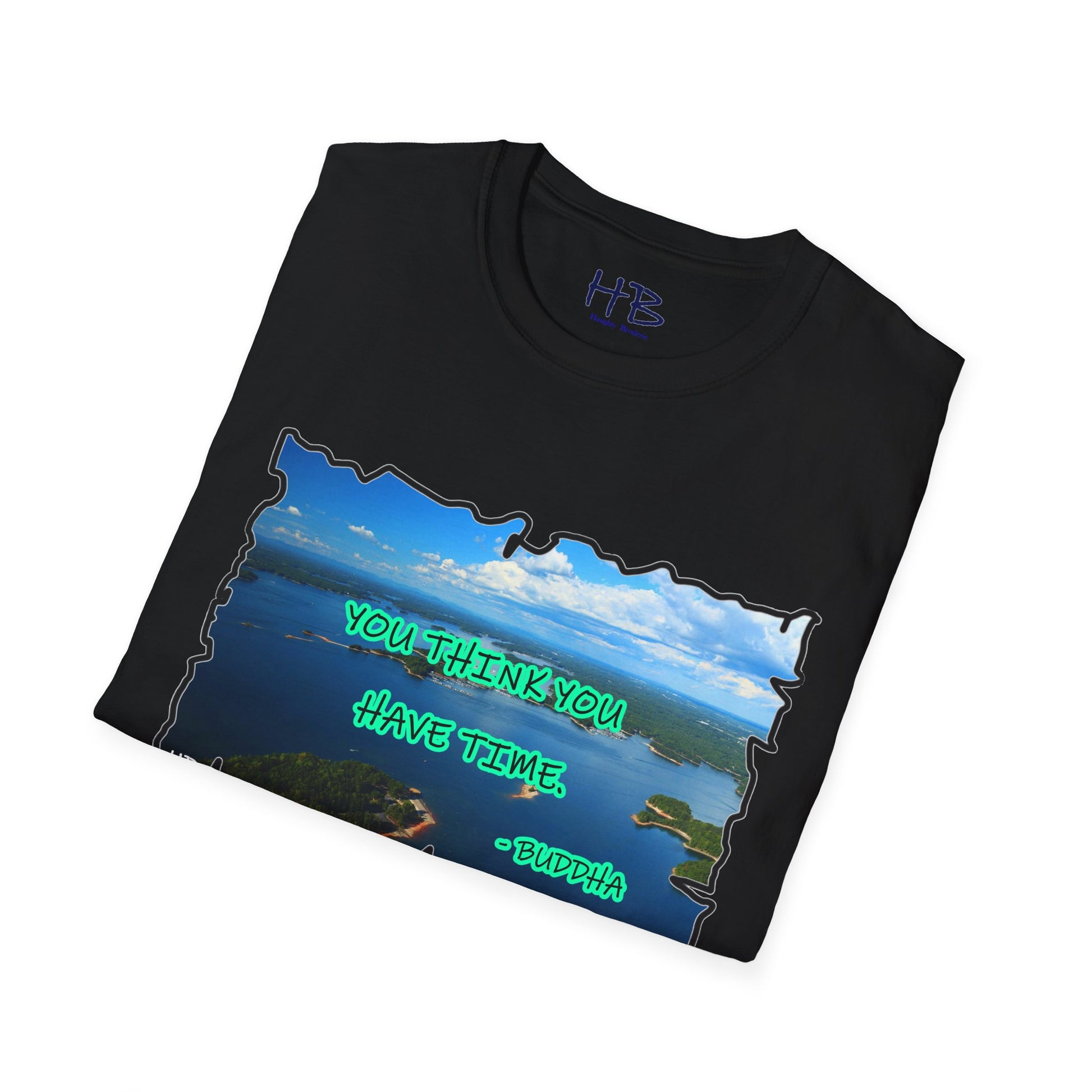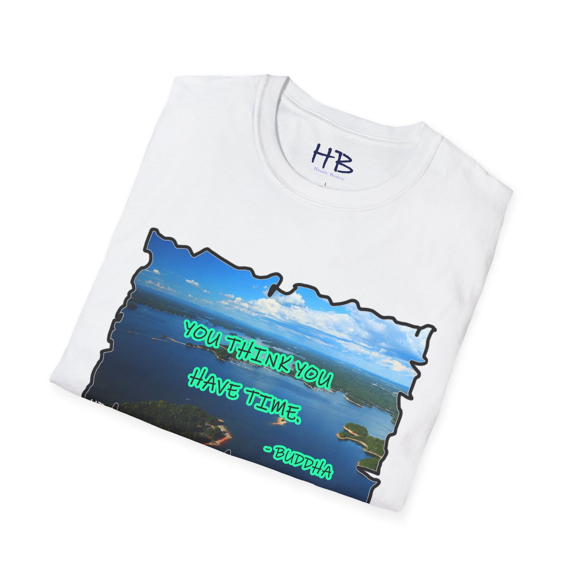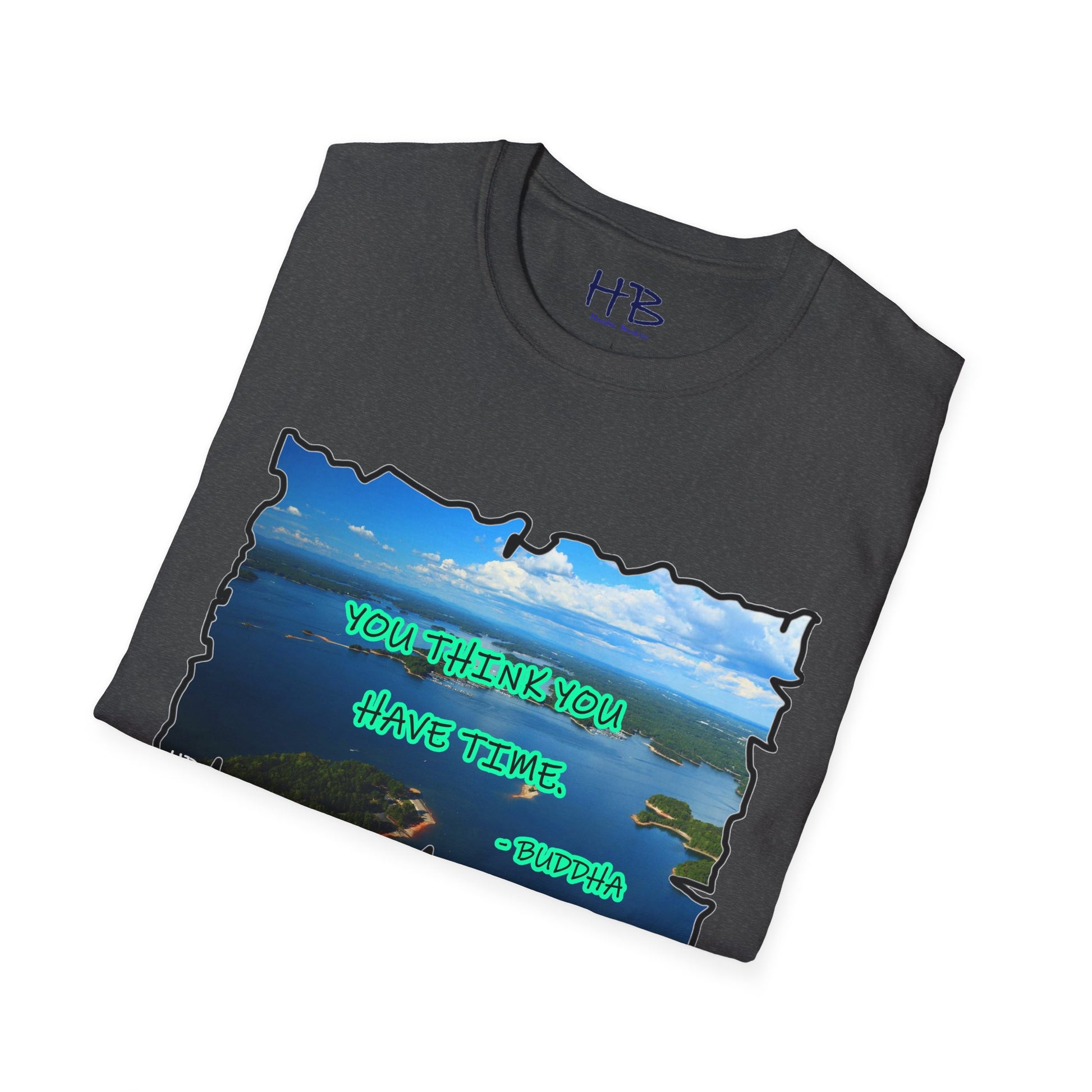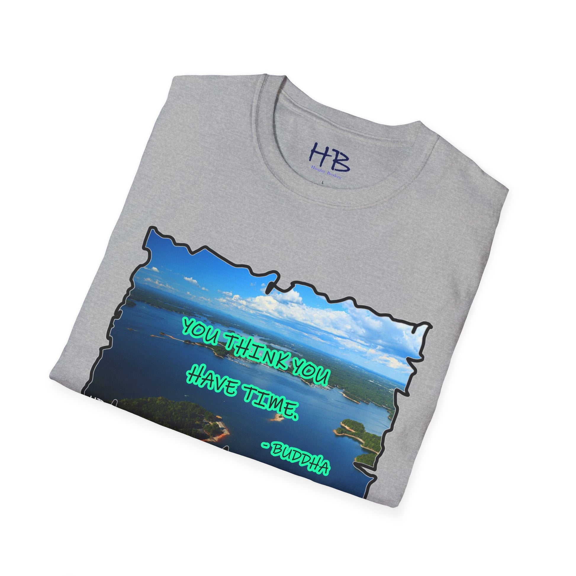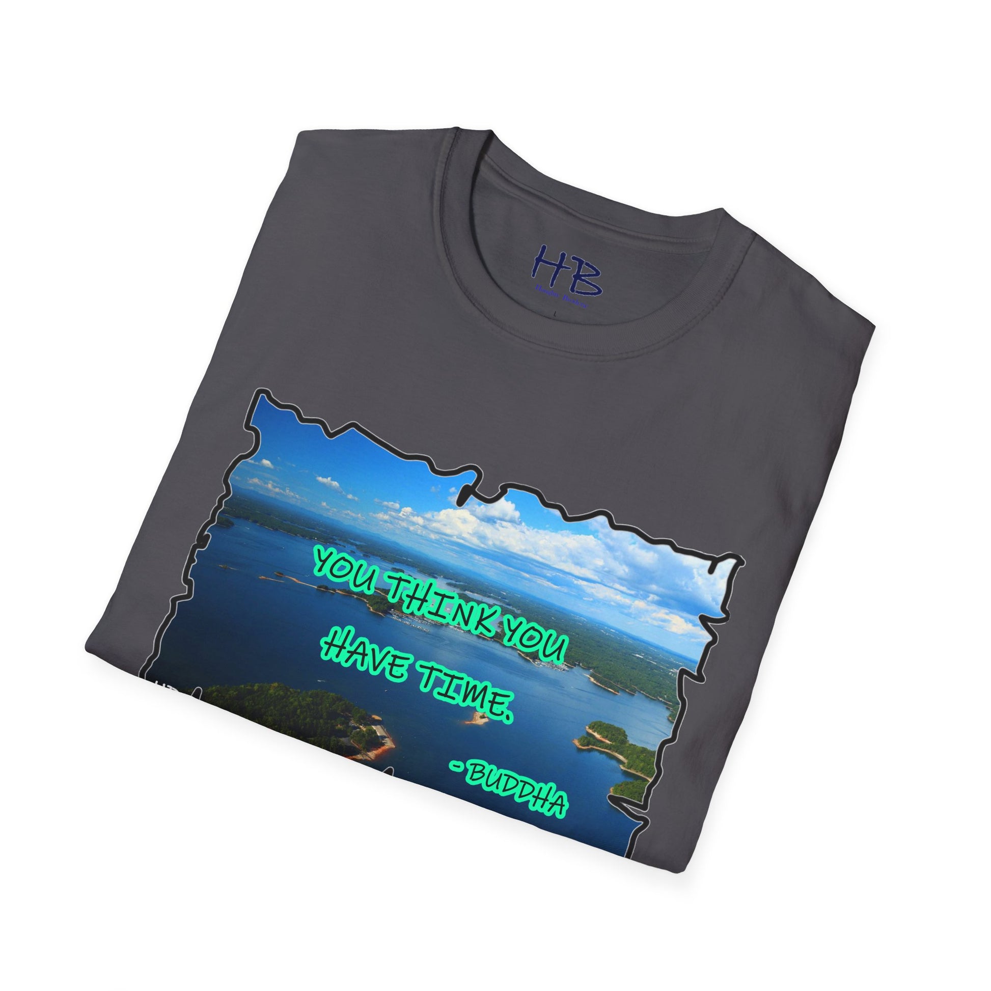 As you don this shirt, you're not just wearing fabric; you're enveloping yourself in a metaphorical journey. The tranquil lake and Buddha's timeless words create a harmonious blend that resonates with the search for balance and mindfulness in our daily lives.