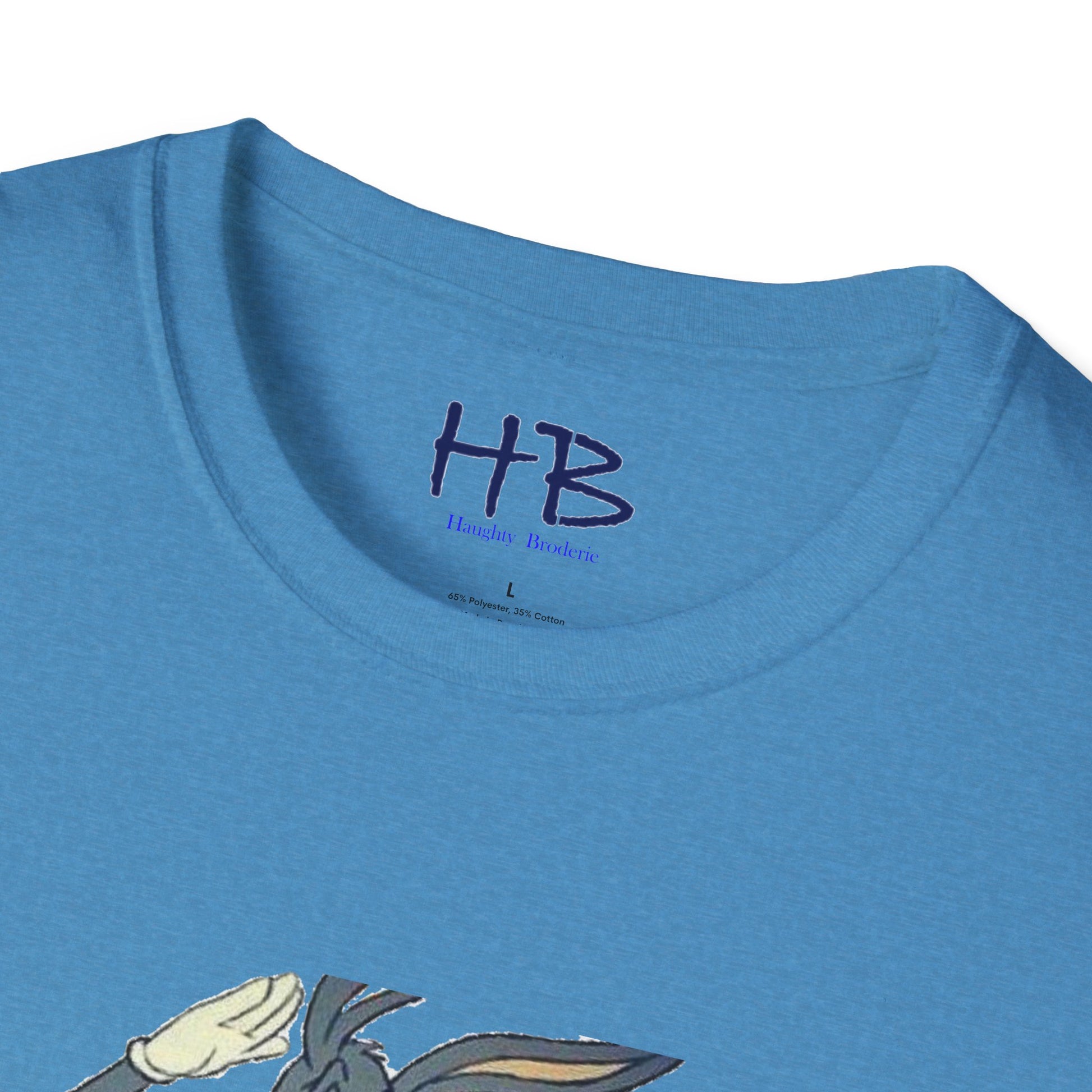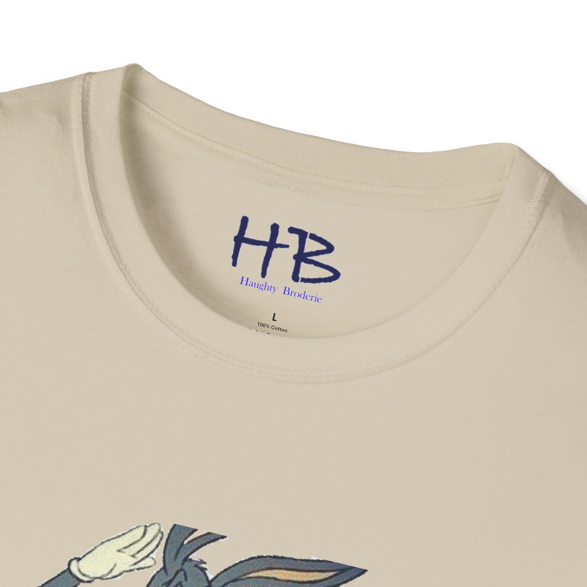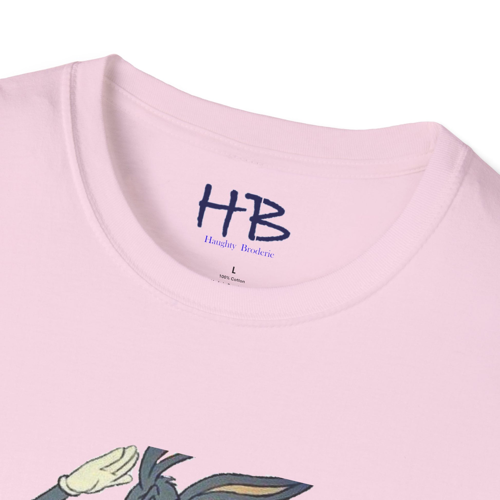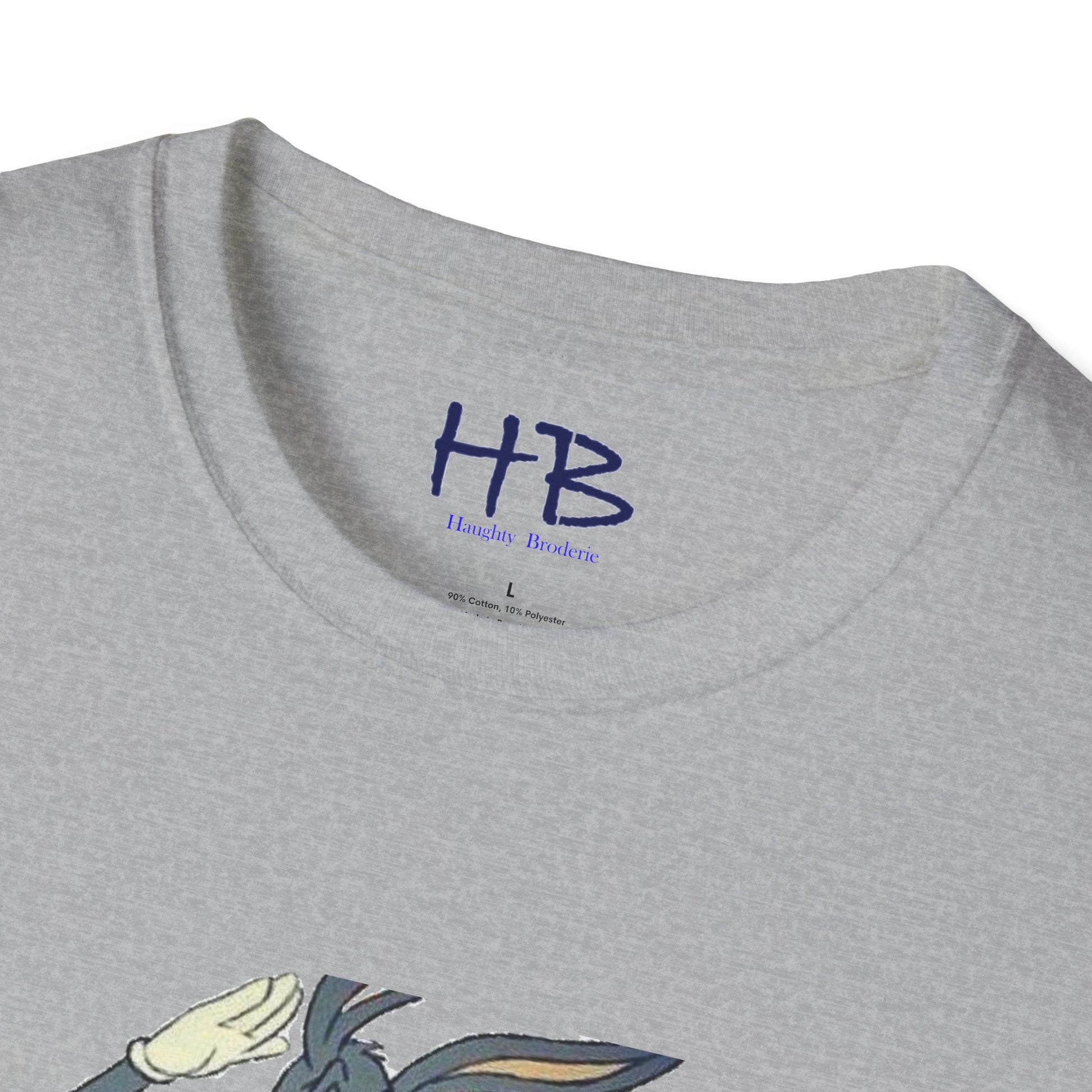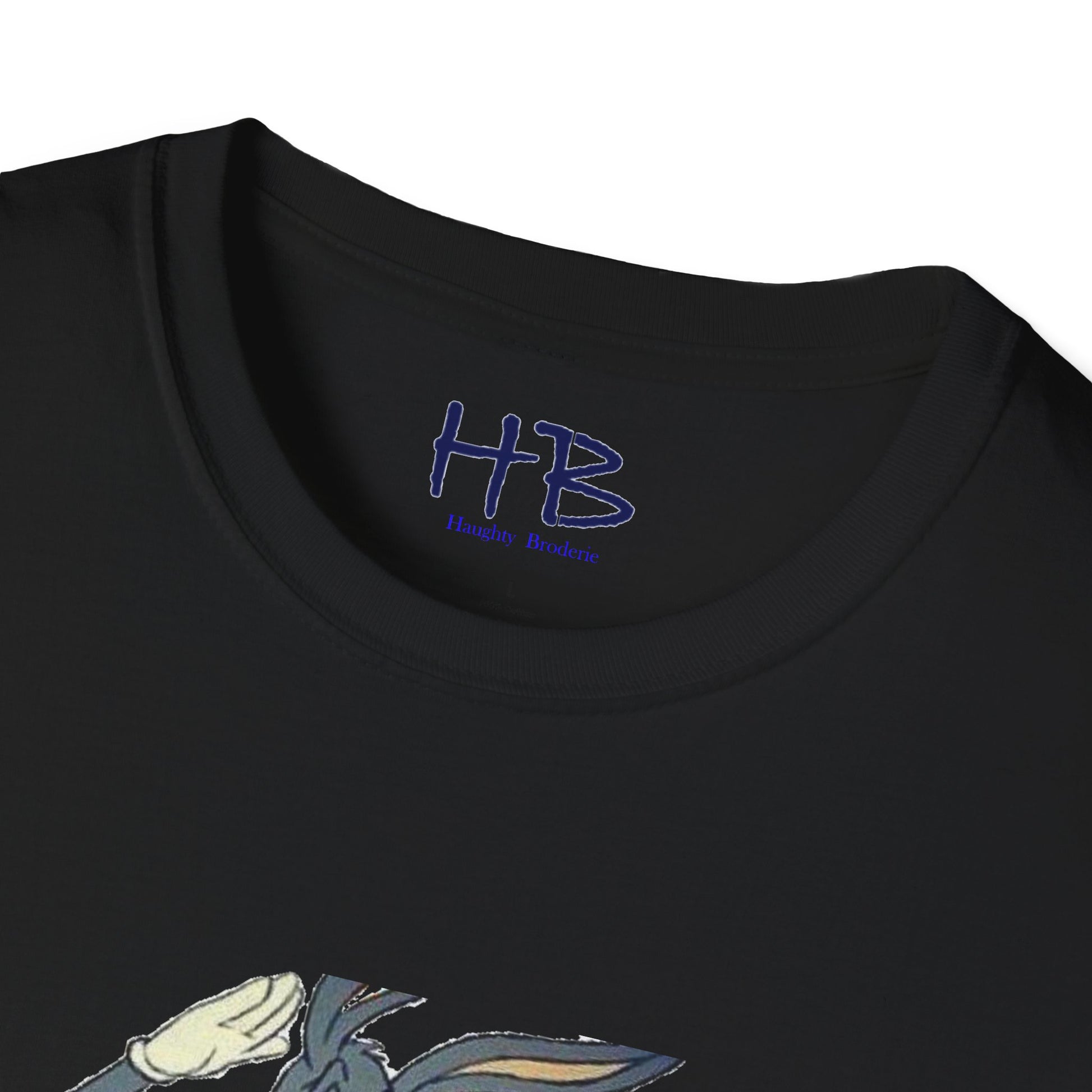 With its eye-catching design and comfortable fit, this tee shirt is perfect for those who want to make a statement and express their playful side. It's also an ideal gift for anyone who loves bunnies and enjoys a good laugh. So why wait? Order yours today and add a touch of fun to your wardrobe!