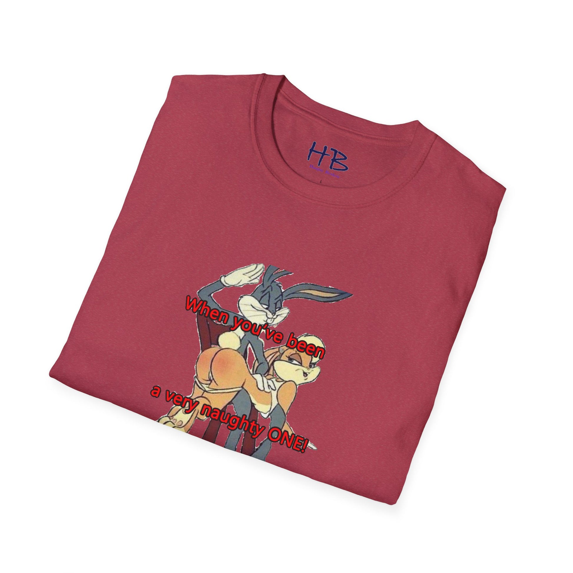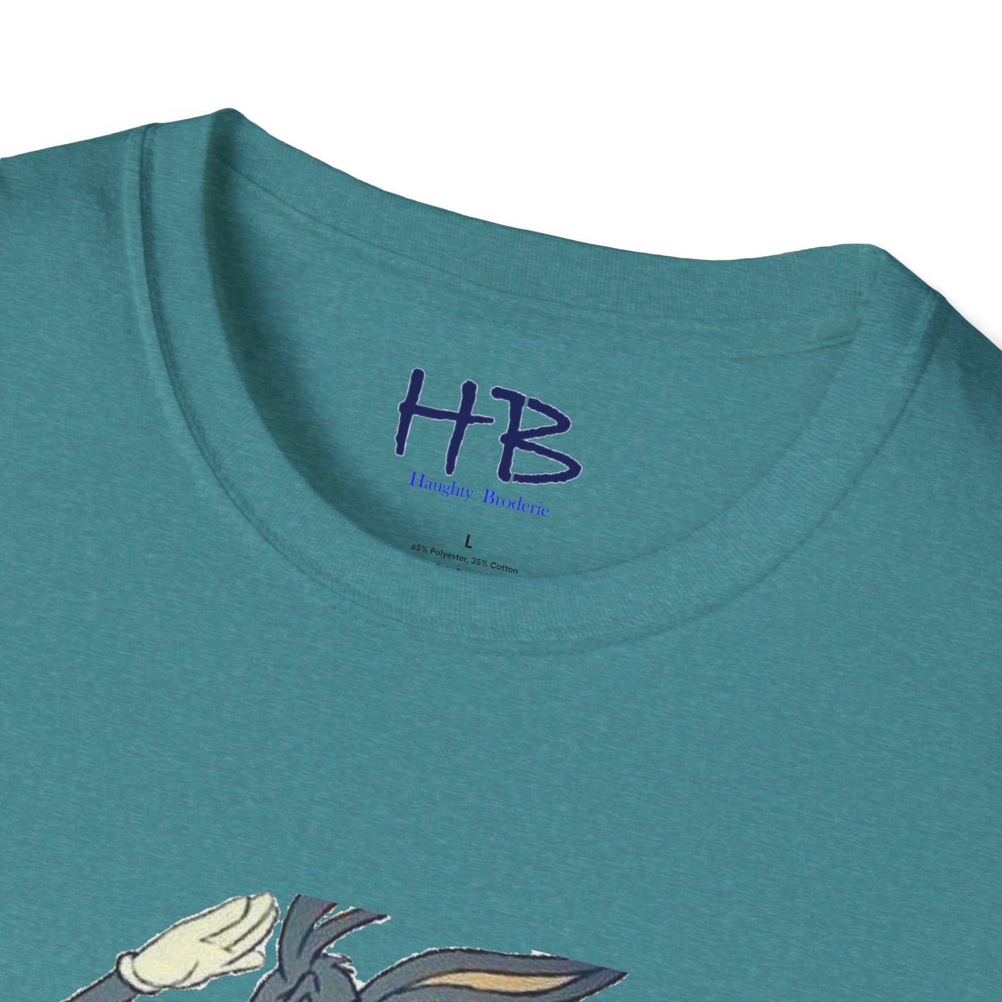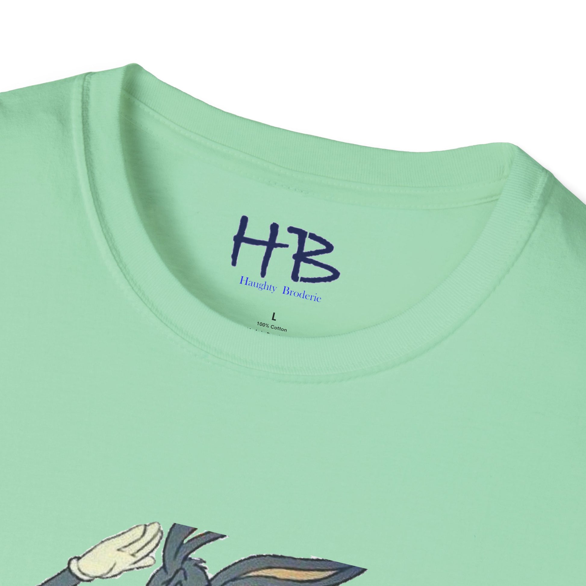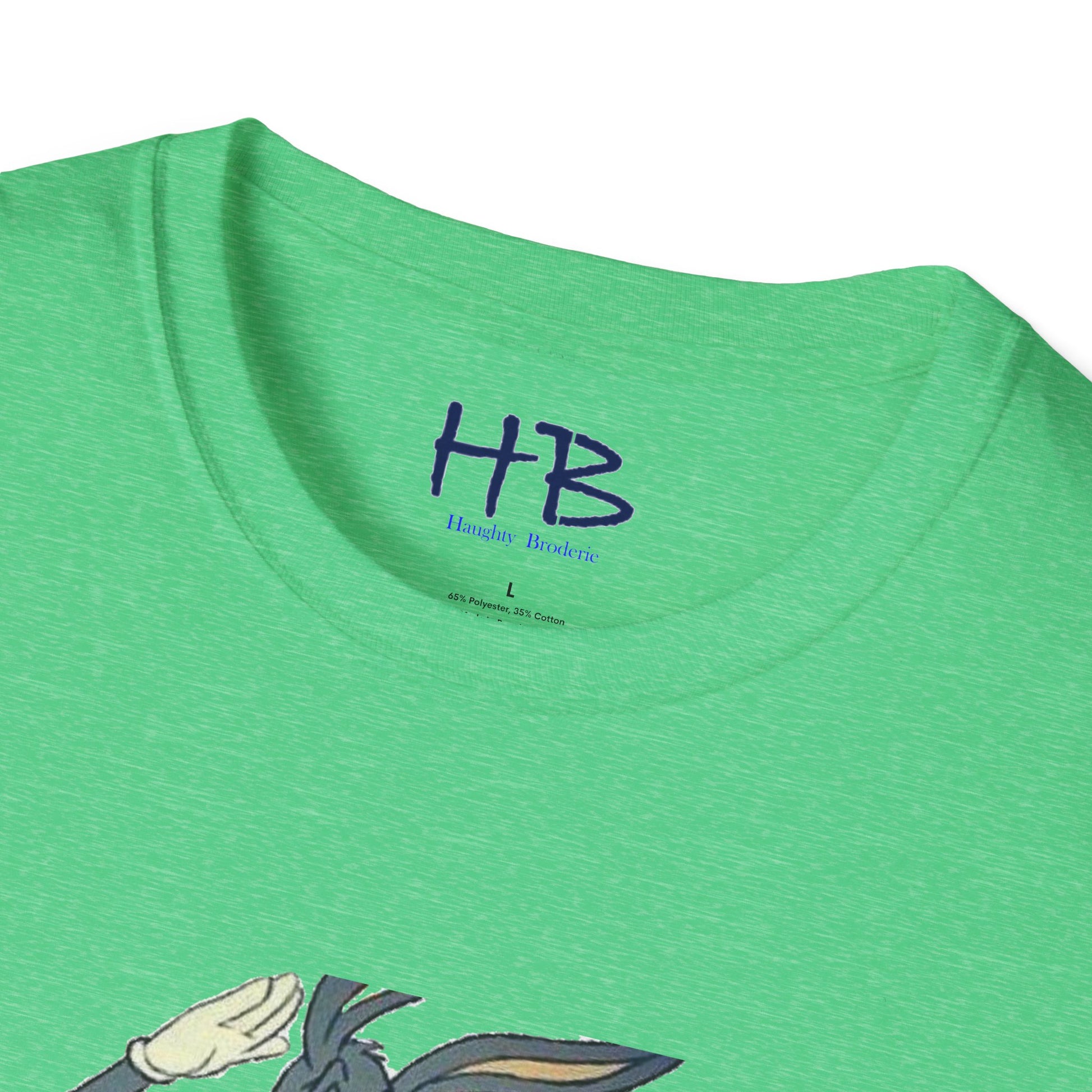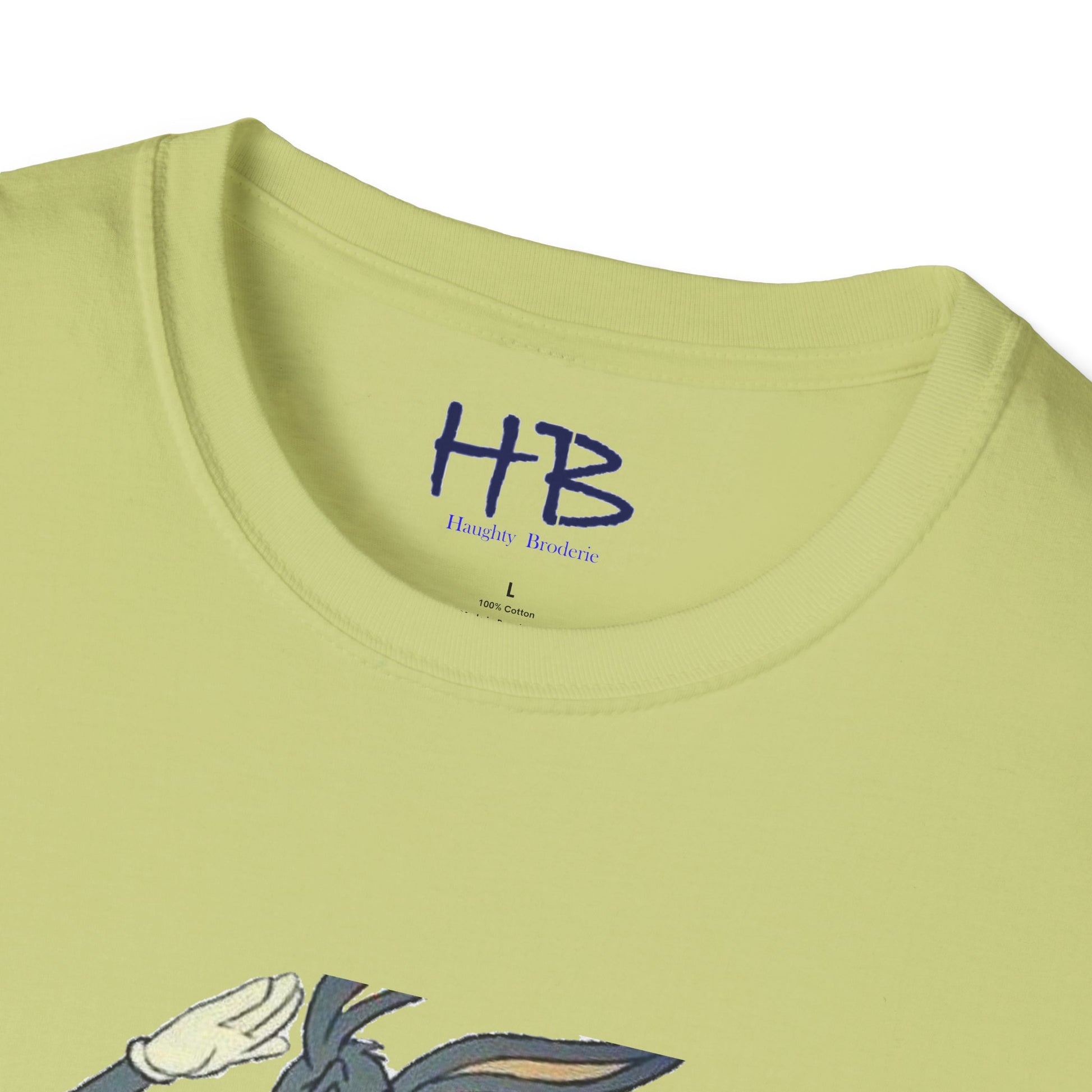 With its eye-catching design and comfortable fit, this tee shirt is perfect for those who want to make a statement and express their playful side. It's also an ideal gift for anyone who loves bunnies and enjoys a good laugh. So why wait? Order yours today and add a touch of fun to your wardrobe!
