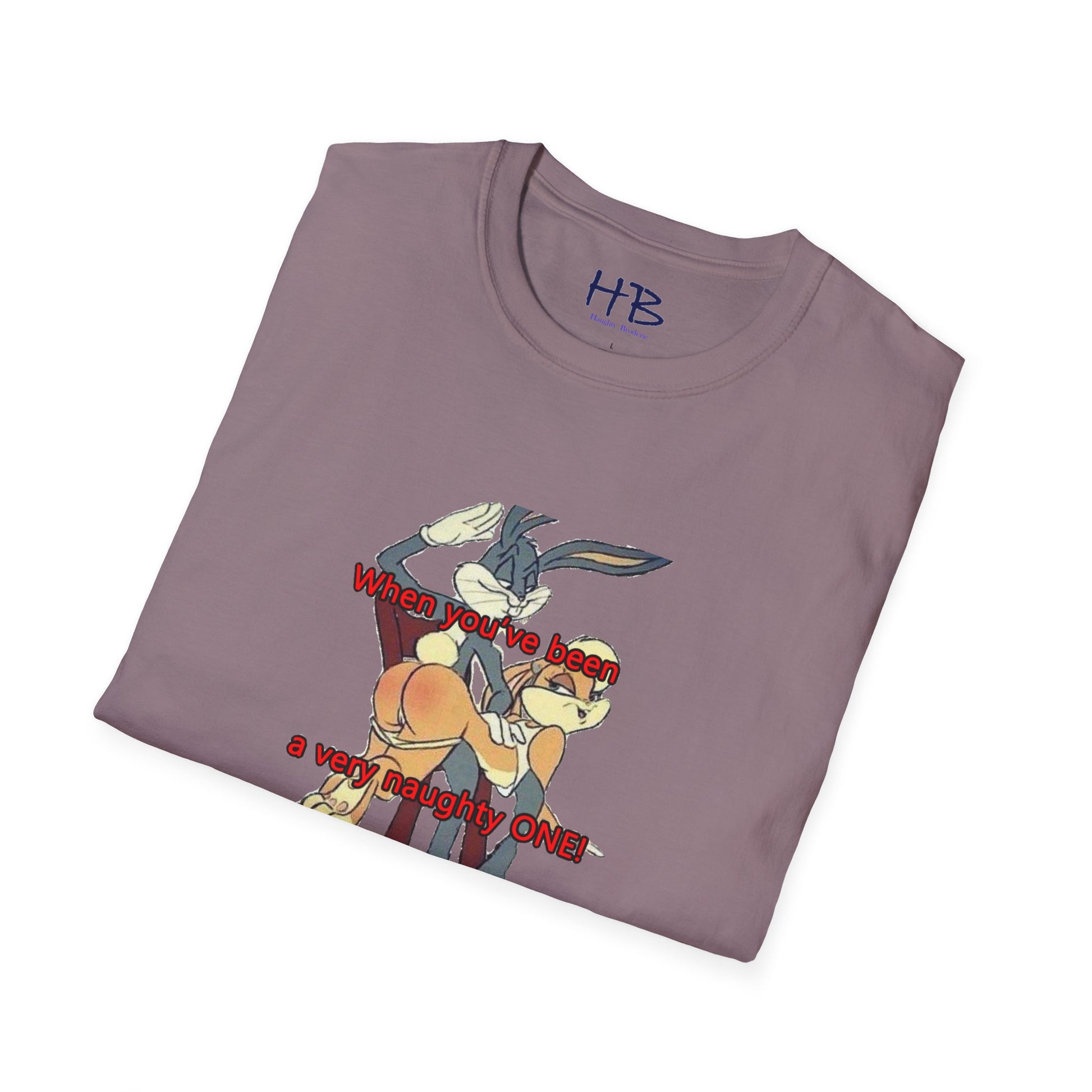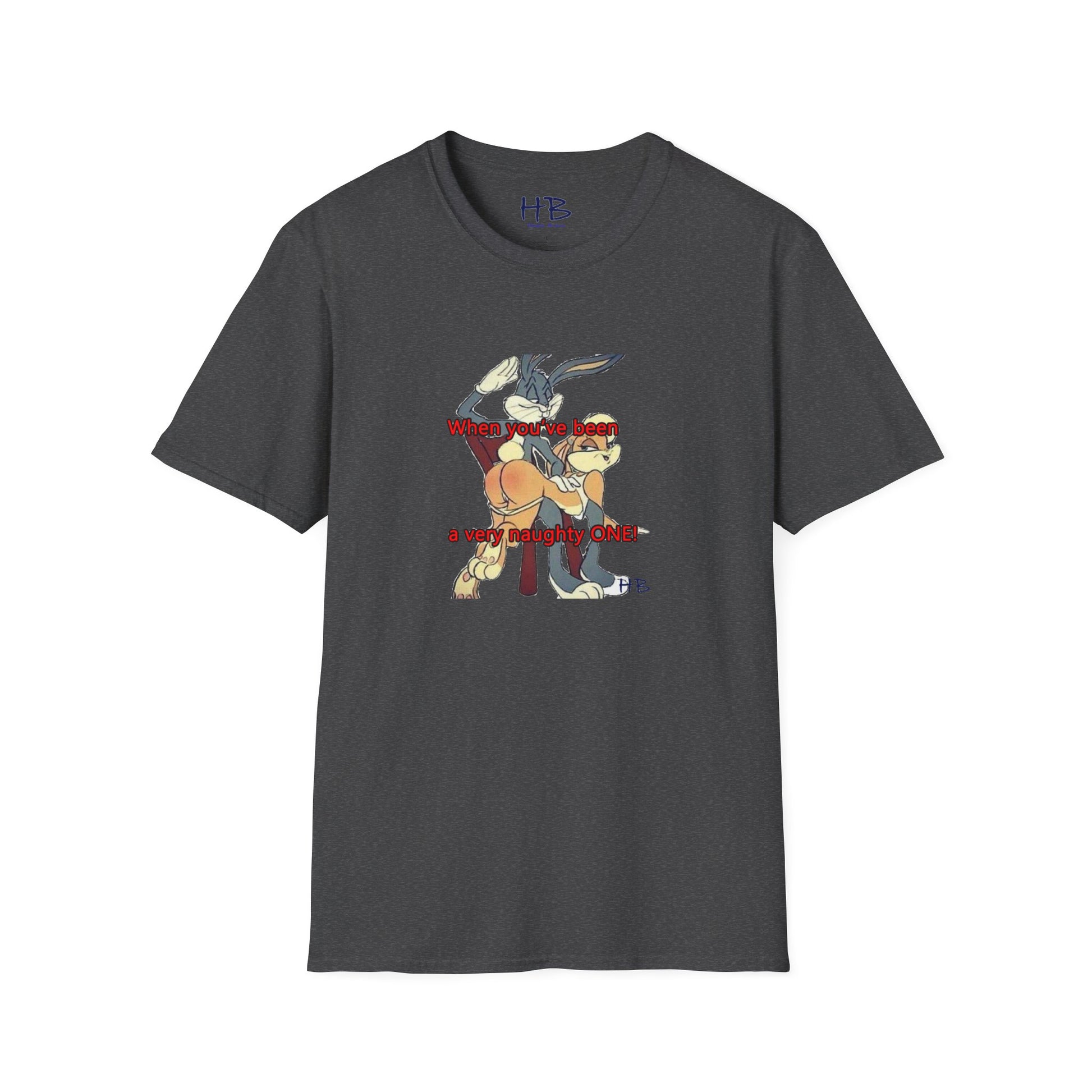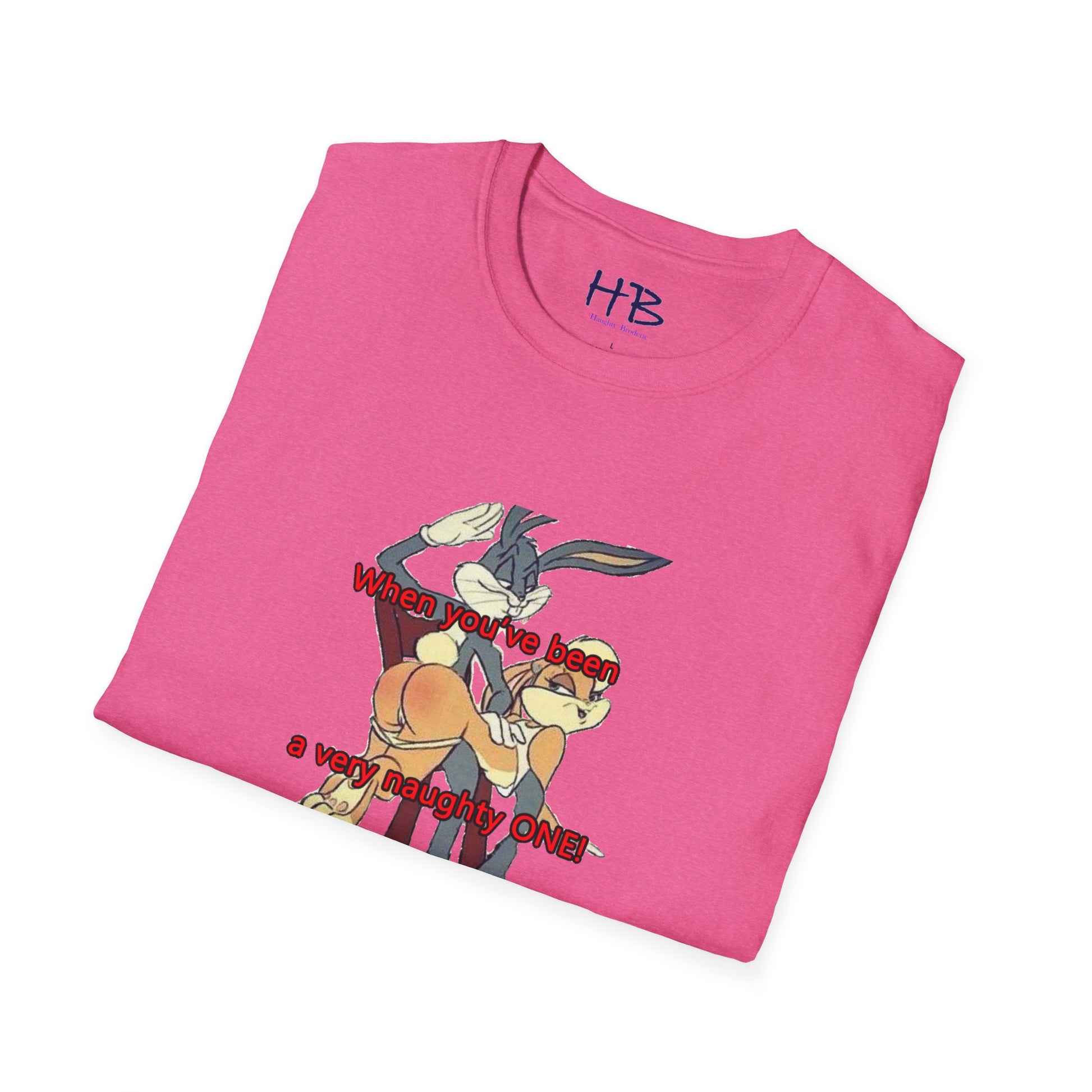 The design is completed with the text "When you've been a naughty ONE!!" which adds a touch of fun and playfulness to the overall design. This tee shirt is made of high-quality materials that are soft and comfortable to wear, making it perfect for any casual occasion. The fabric is breathable and lightweight, allowing you to wear it for long hours without any discomfort.