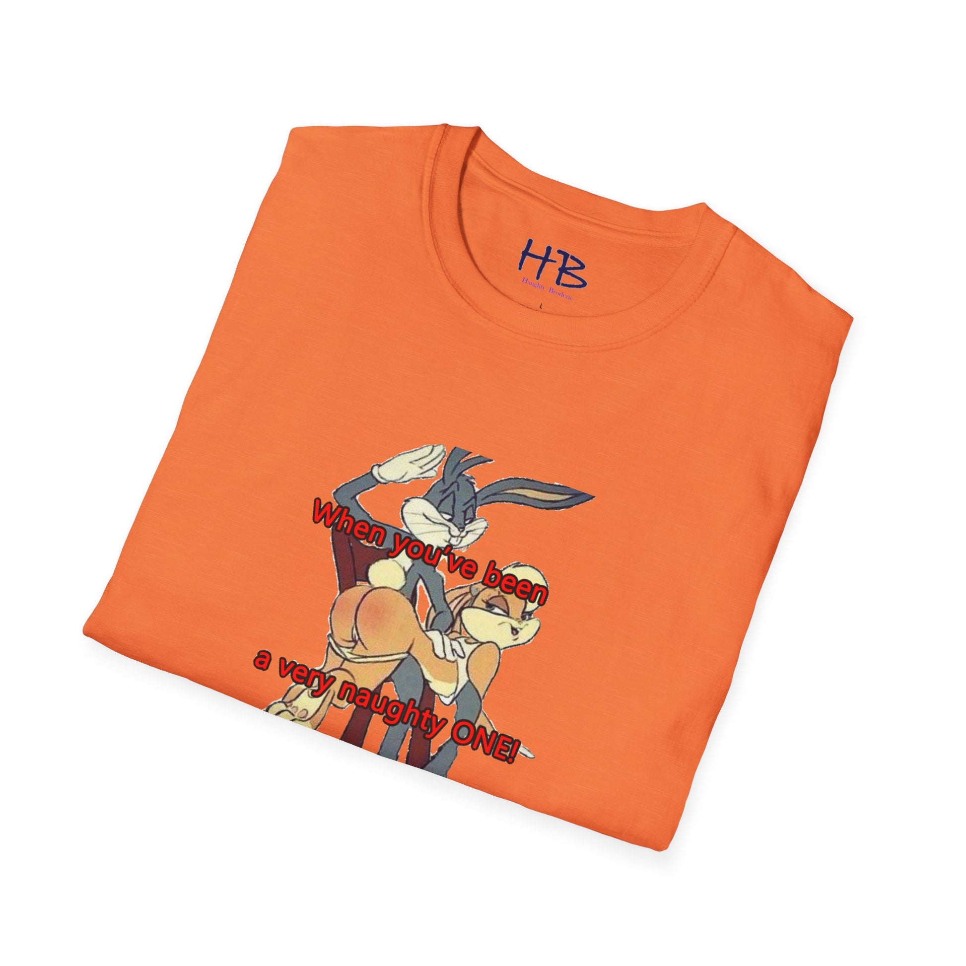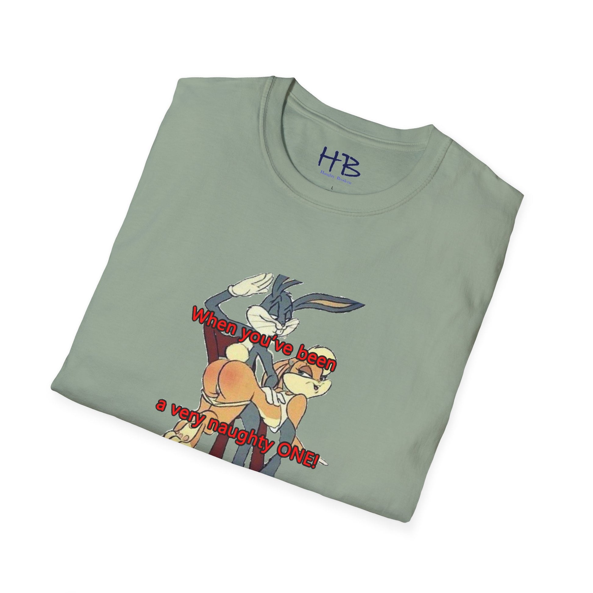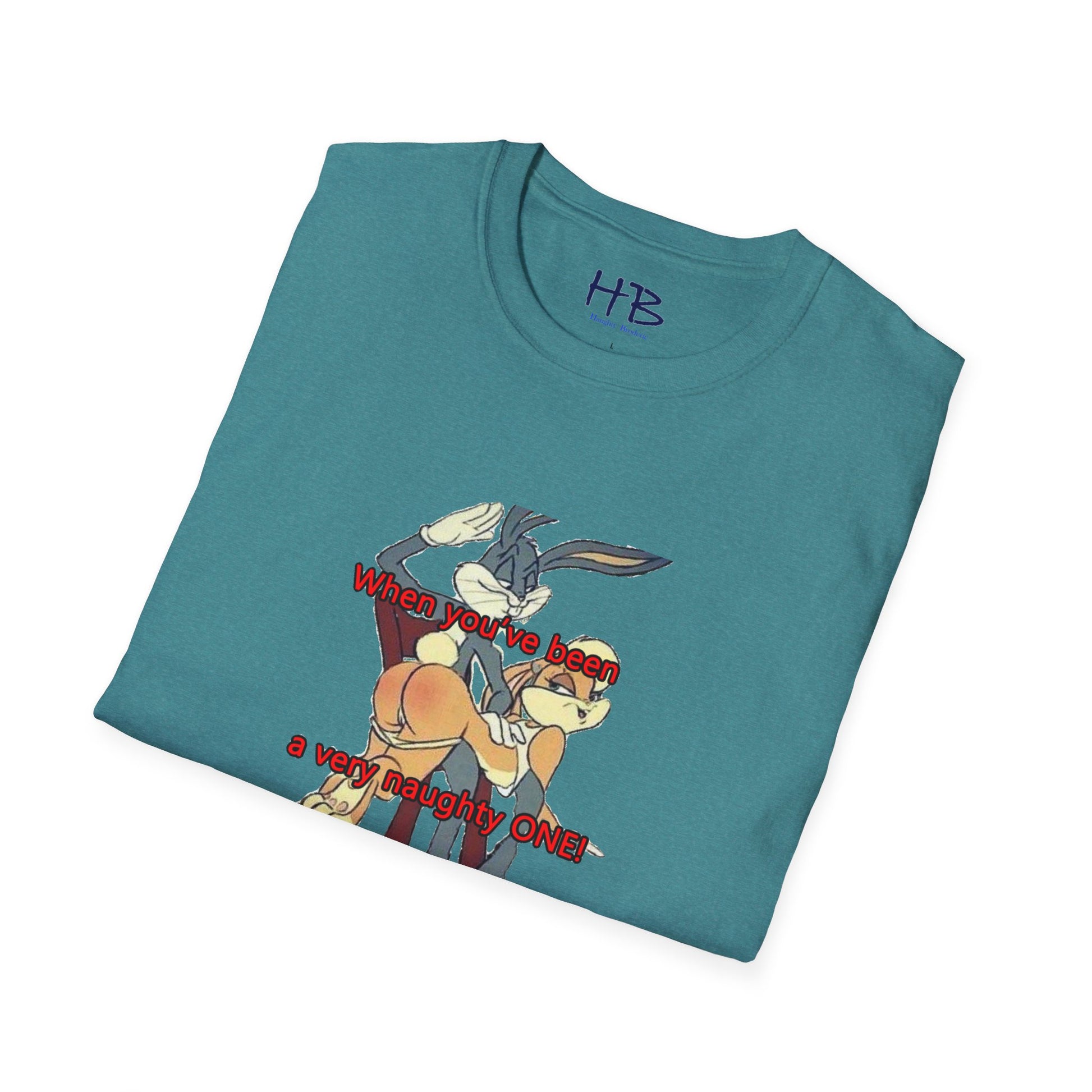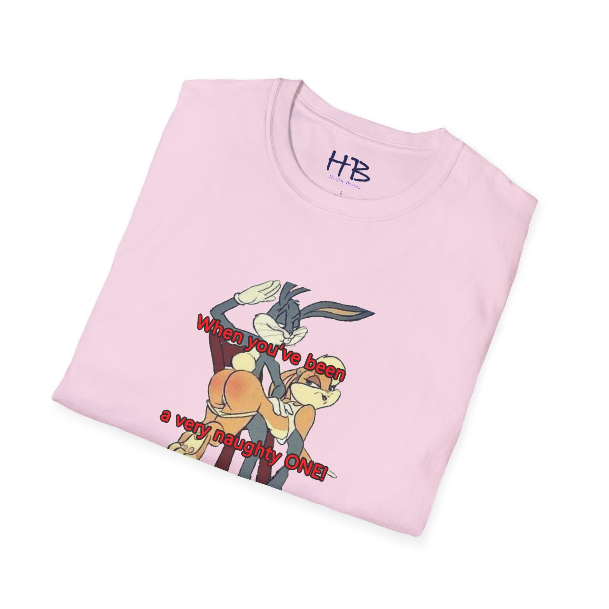 The design is completed with the text "When you've been a naughty ONE!!" which adds a touch of fun and playfulness to the overall design. This tee shirt is made of high-quality materials that are soft and comfortable to wear, making it perfect for any casual occasion. The fabric is breathable and lightweight, allowing you to wear it for long hours without any discomfort.