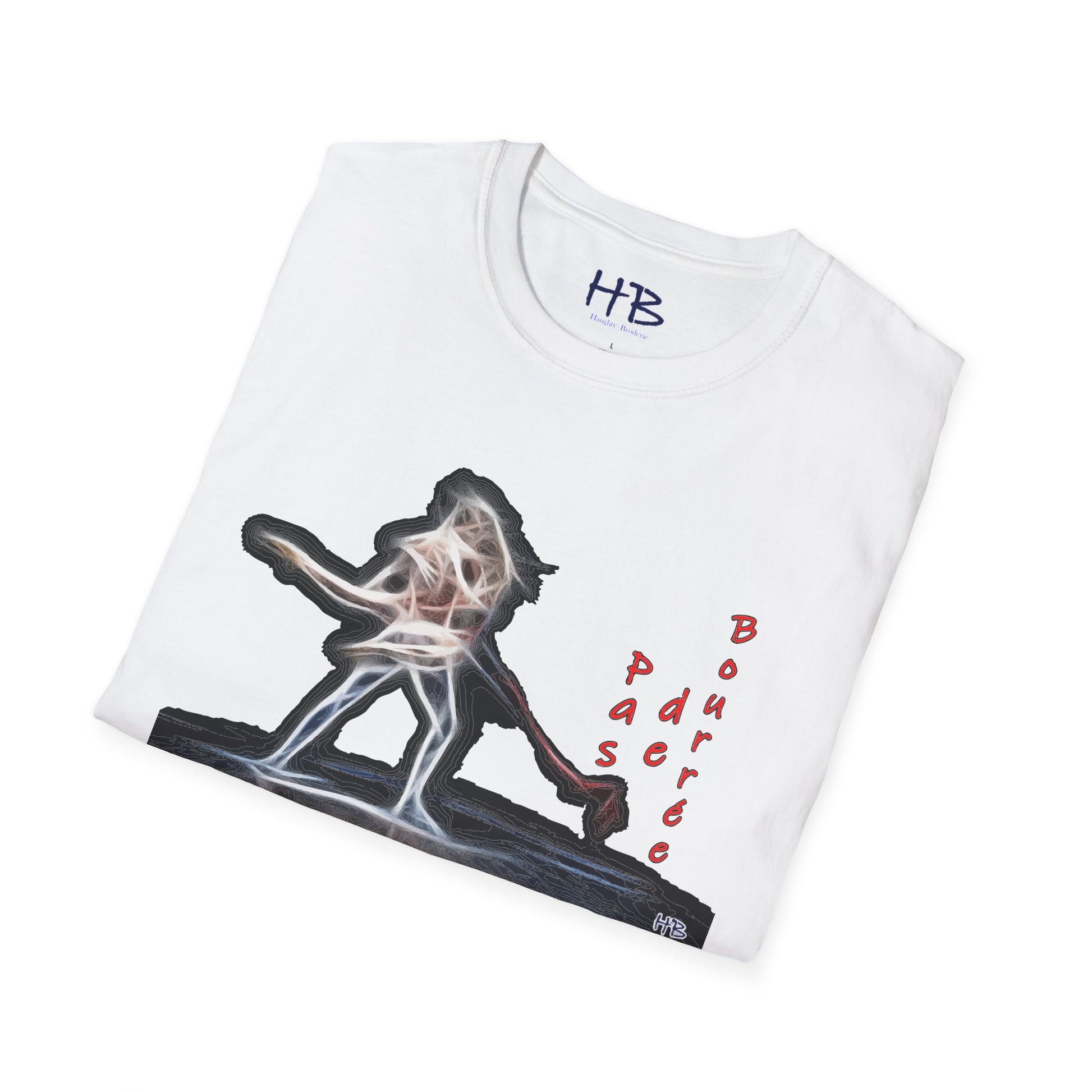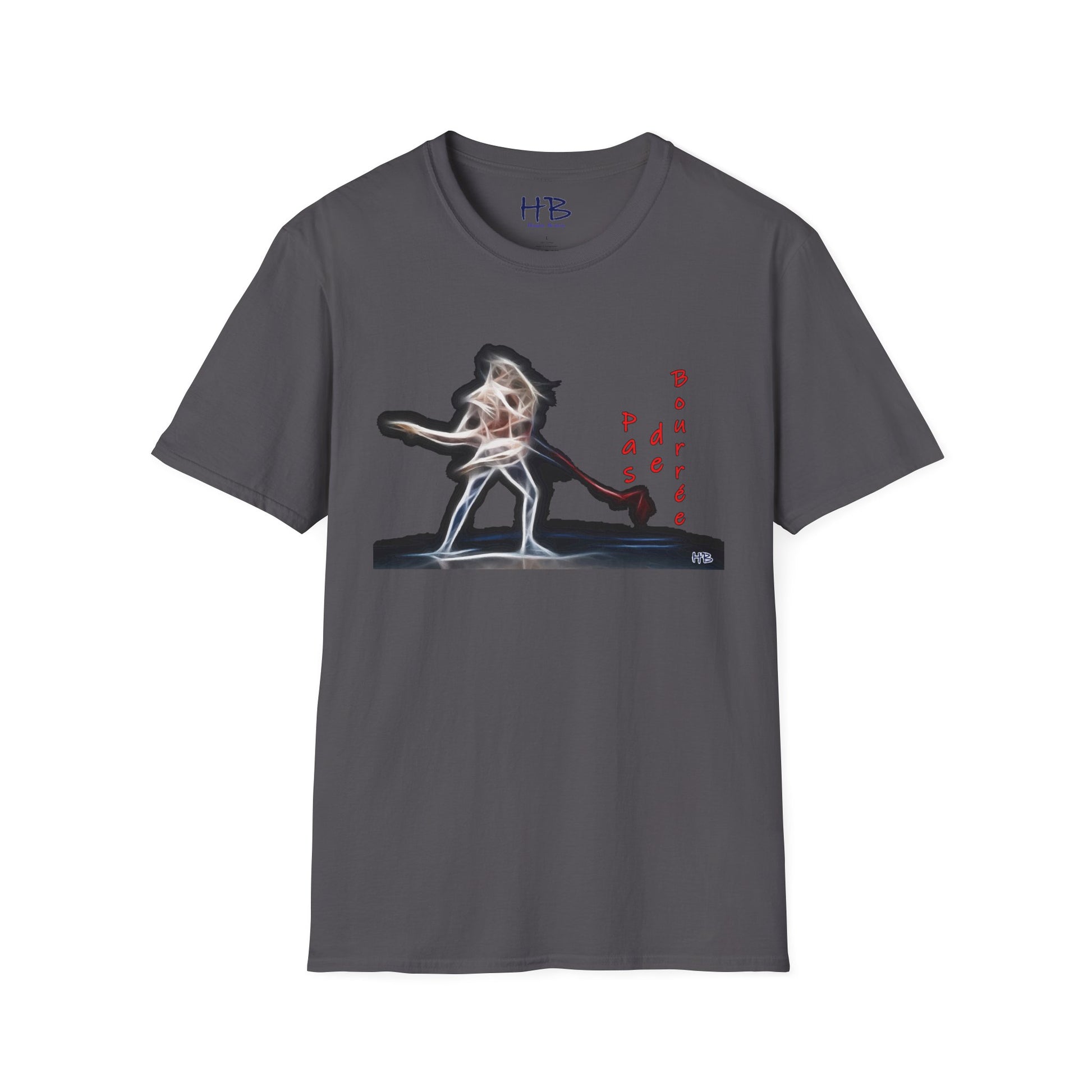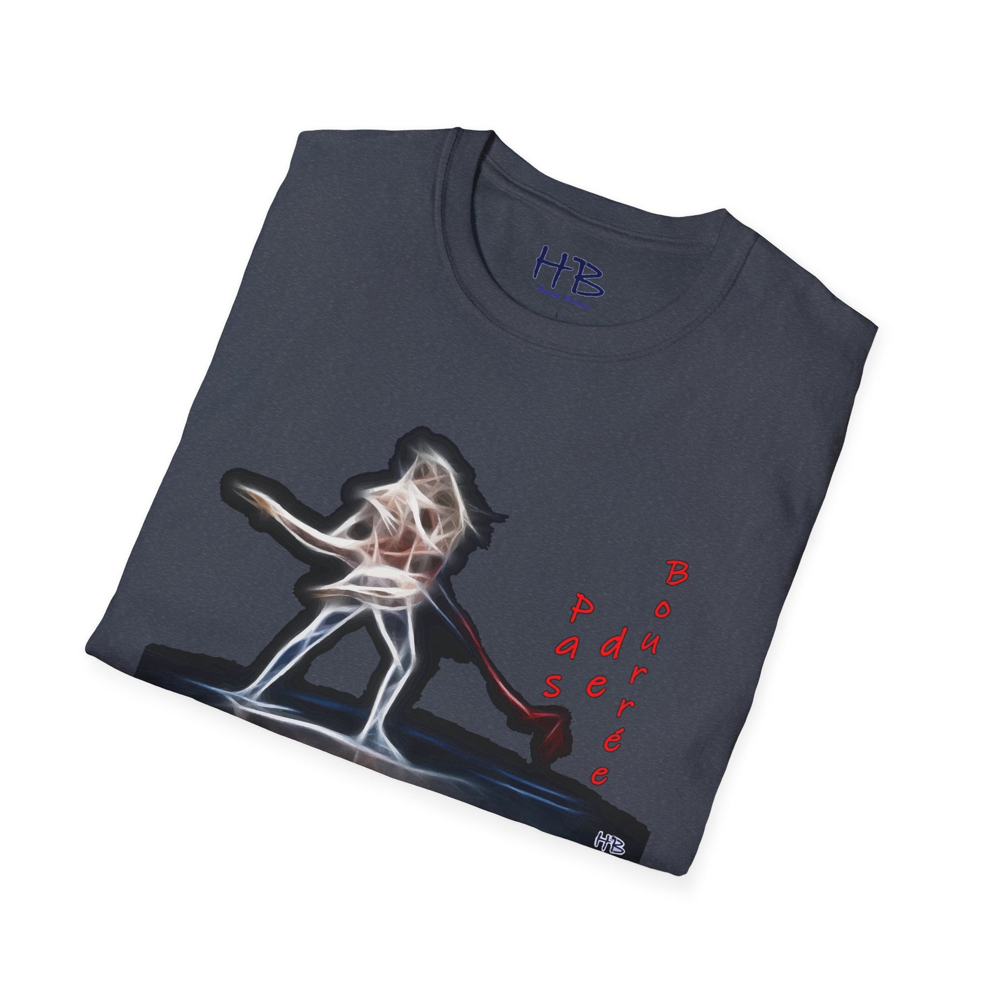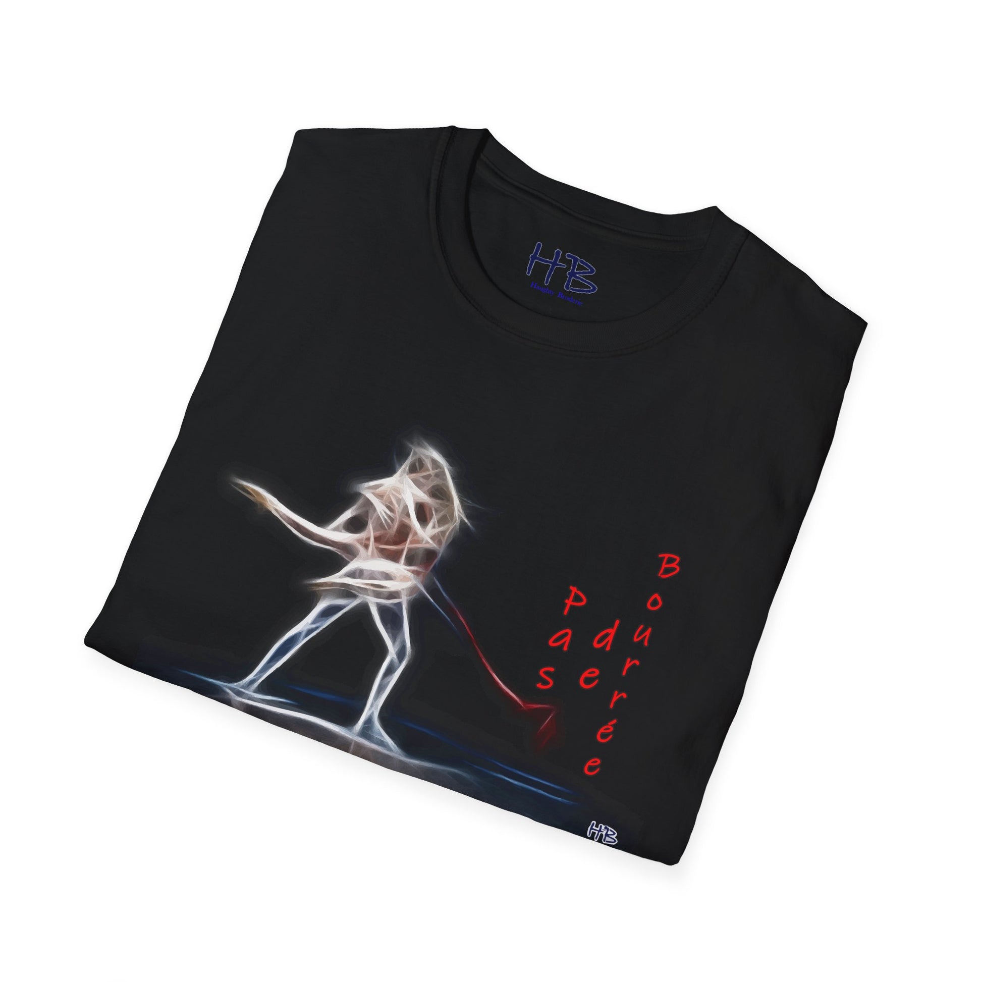 Step into the captivating world of ballet with our exquisite Pas de Bouree Tee Shirt. This visually stunning garment showcases a graphically created ballet dancer, accompanied by the empowering text "Pas de Bouree."