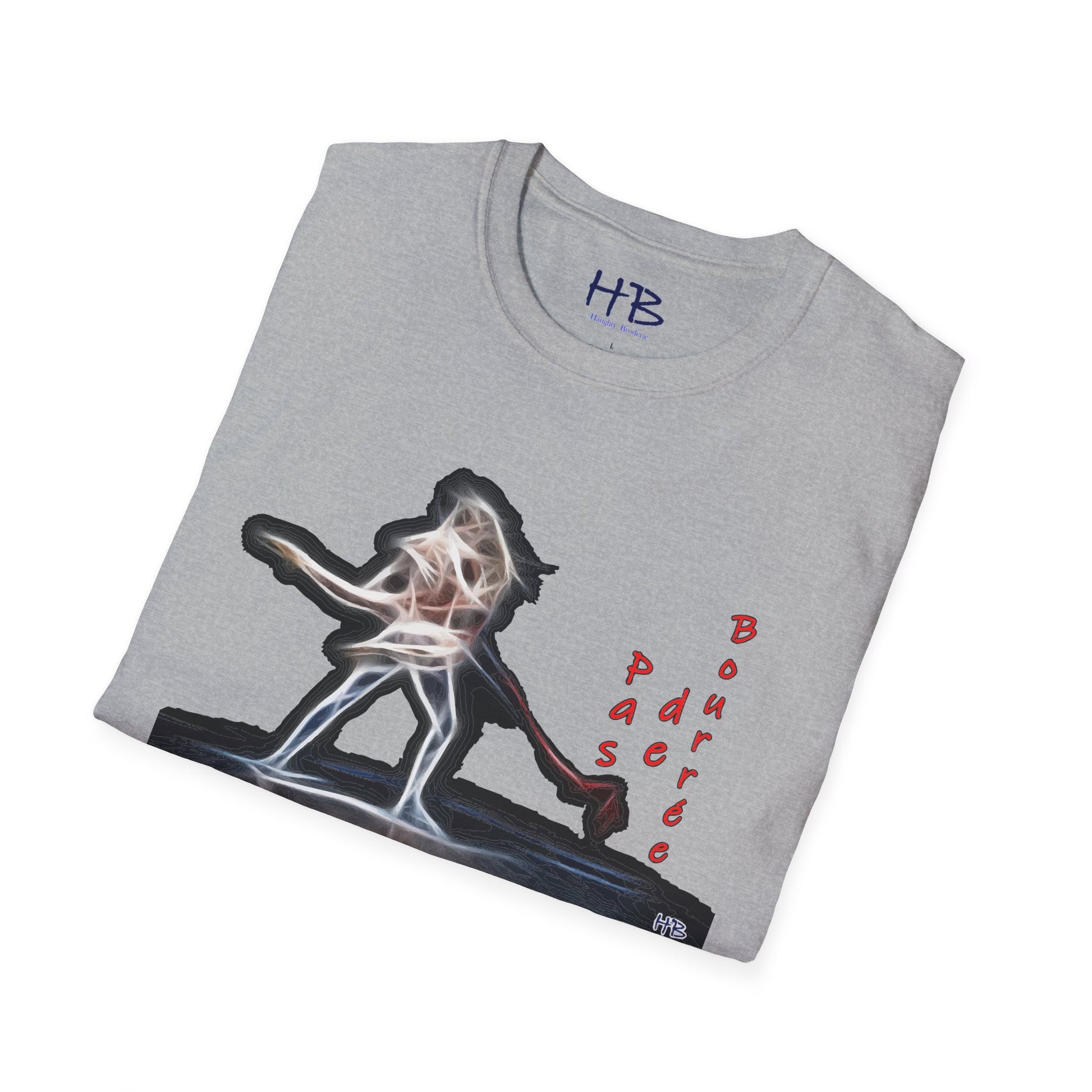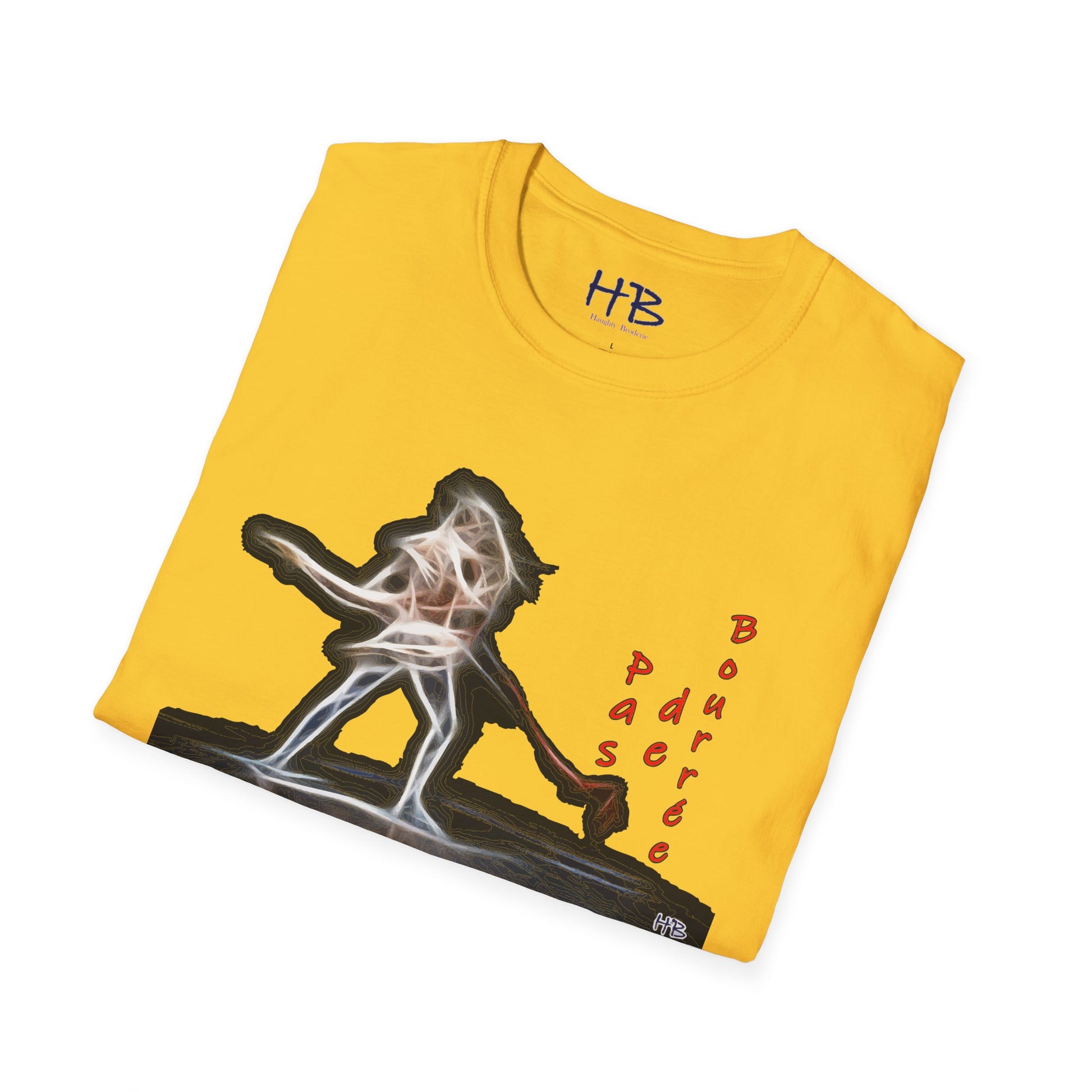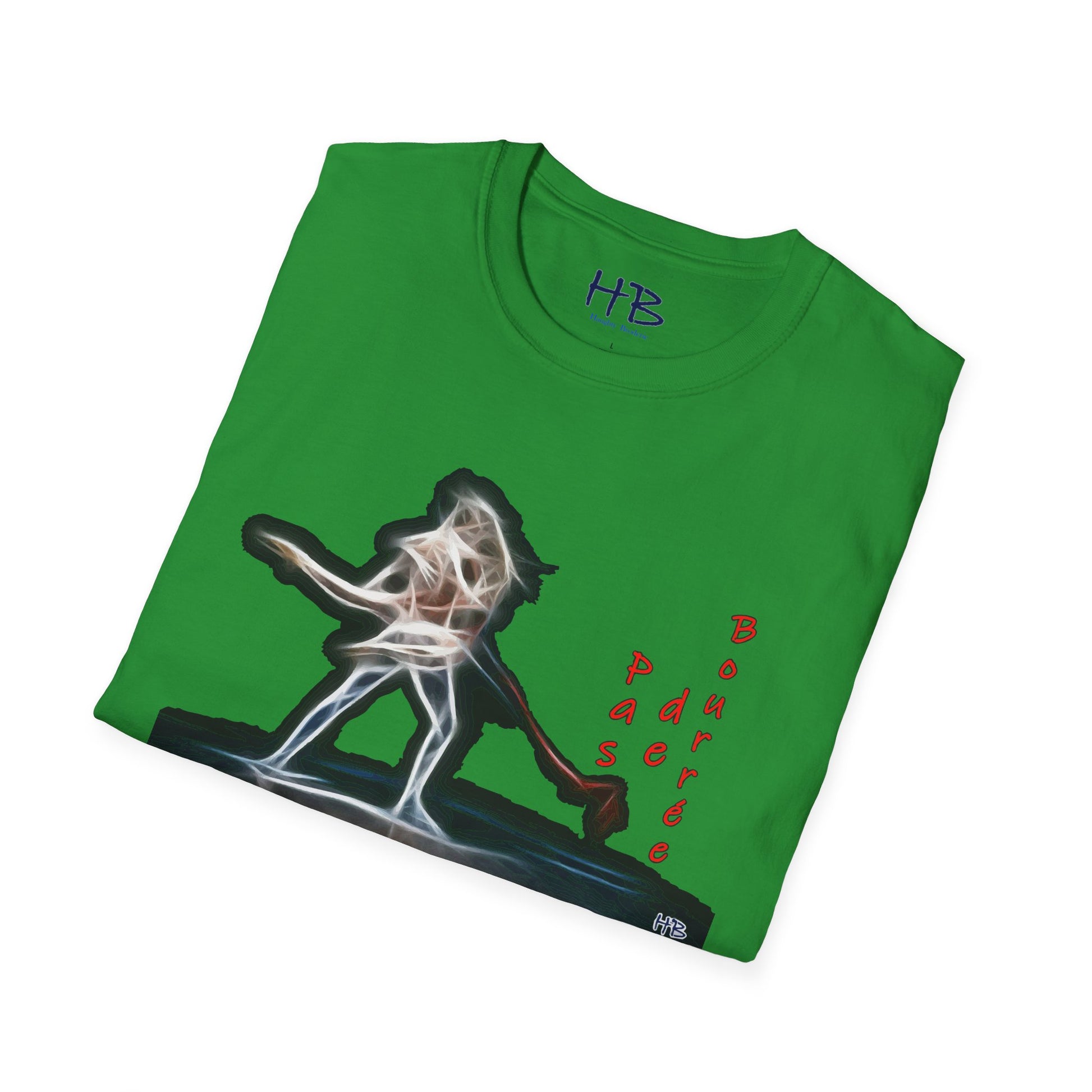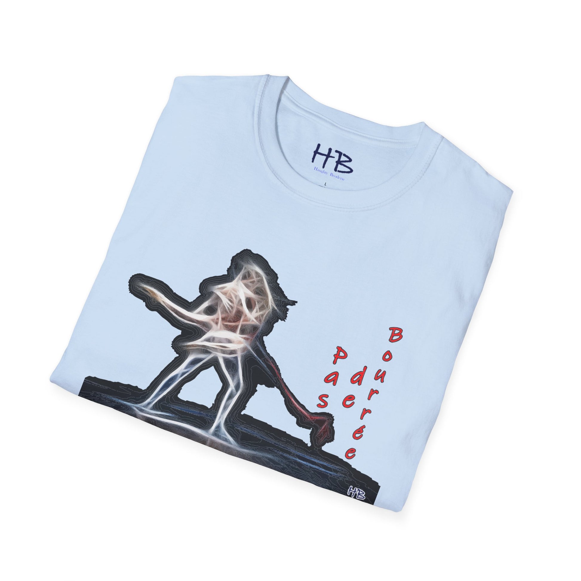 Step into the captivating world of ballet with our exquisite Pas de Bouree Tee Shirt. This visually stunning garment showcases a graphically created ballet dancer, accompanied by the empowering text "Pas de Bouree."