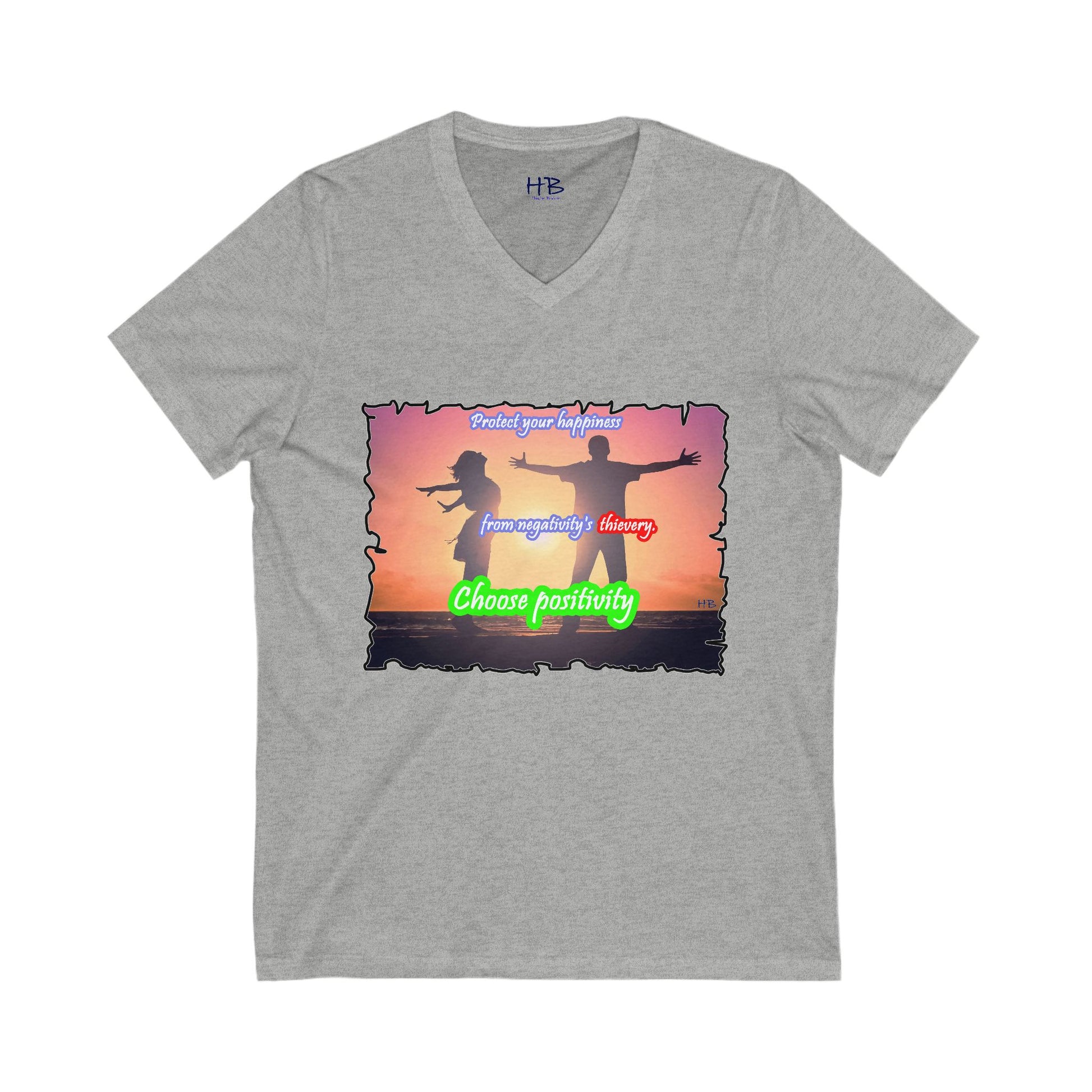 Choose positivity from negativity's thievery (Unisex Jersey Short Sleeve V-neck - Comfortable Everyday Wear)