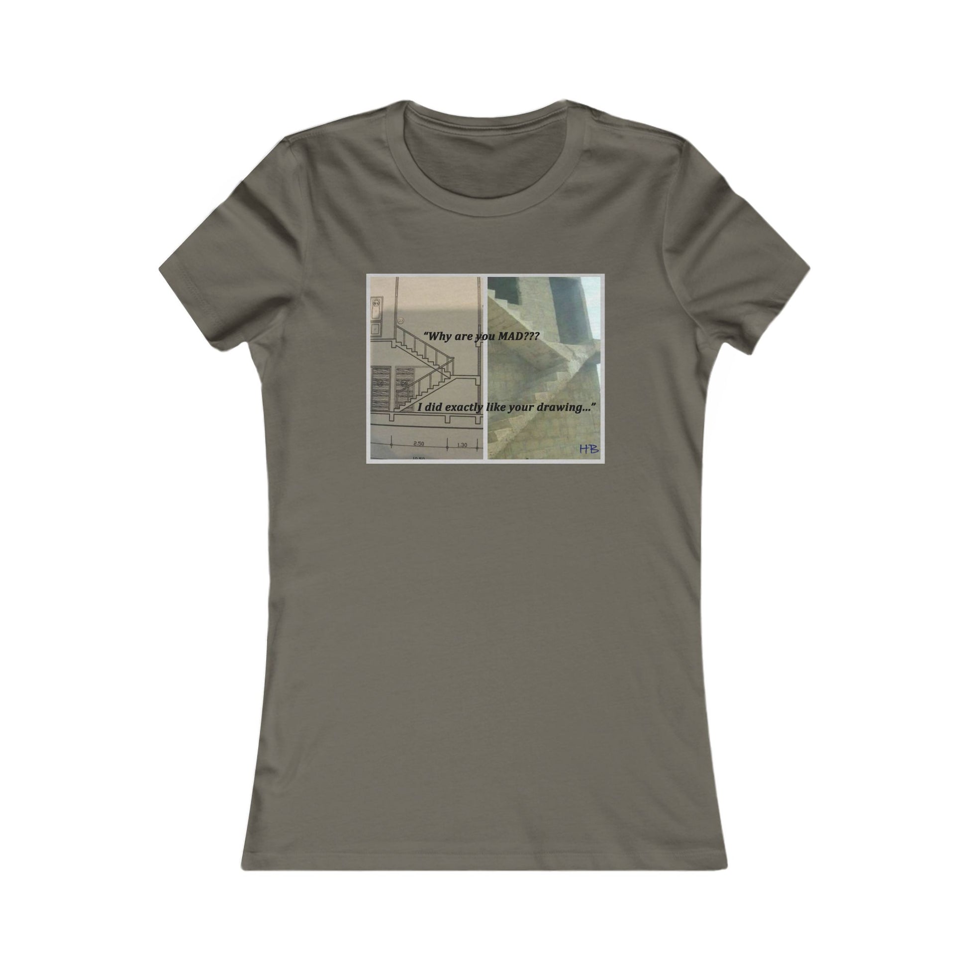 Looking for a tee shirt that features an ironic and comical image of an architectural sketch of stairs going up vertically, NOT looping, and then going up again without a link between the two? Look no further! Our tee shirt showcases this exact image, with the humorous text "Why are you MAD??? I did exactly like your drawing" emblazoned on the front.