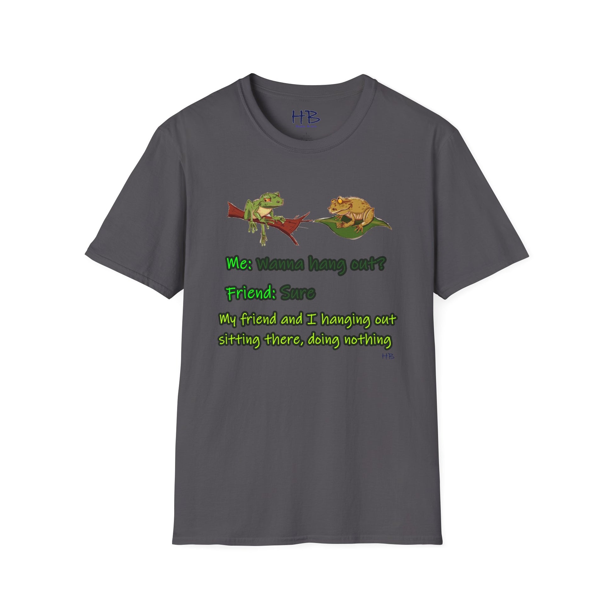 Picture this: a sunny afternoon in a serene park, where a charming drawing of a frog and a toad sits side by side, each exuding an aura of peace and contentment. Beneath them, the text reads, "Me: 'Wanna hang out?' Friend: 'Sure.'" It's a picturesque representation of friendship in its purest form, a simple yet profound connection where spending time together, whether there's a grand plan or not, is the most cherished part of it all.