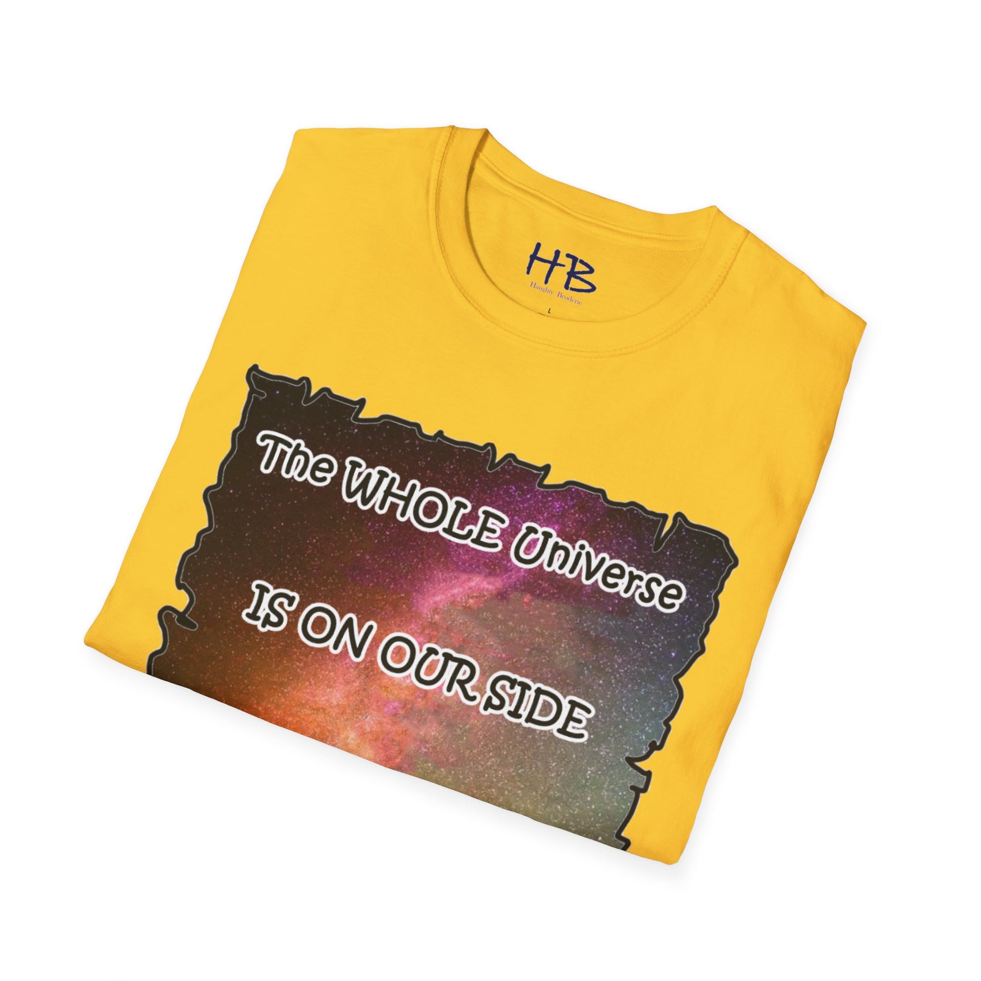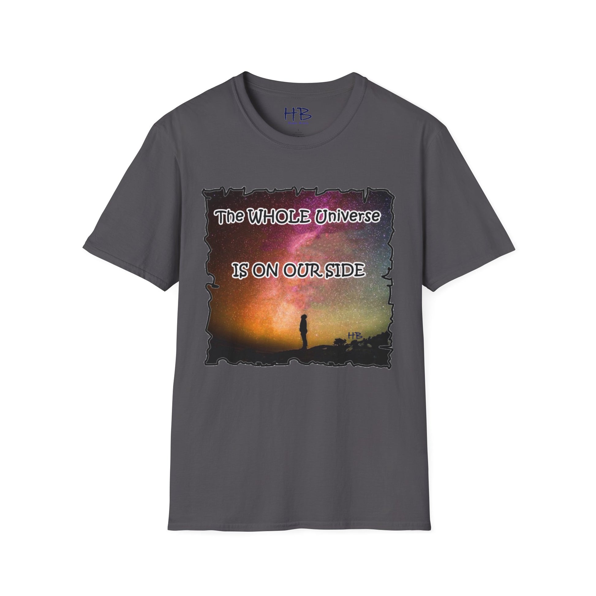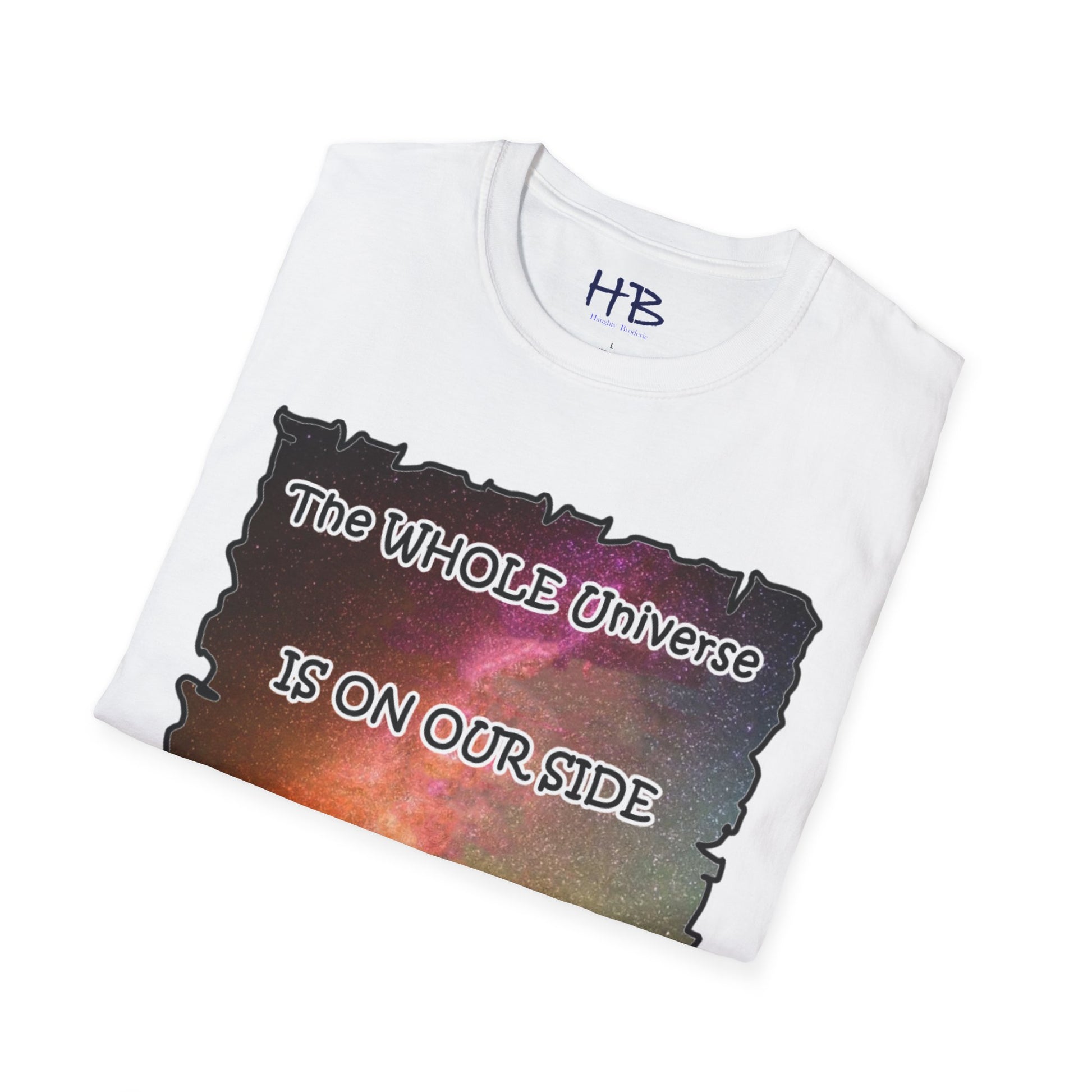 Introducing our extraordinary tee shirt that encapsulates the awe-inspiring beauty of the cosmos and empowers you with a profound message: "The WHOLE universe is ON OUR SIDE."
