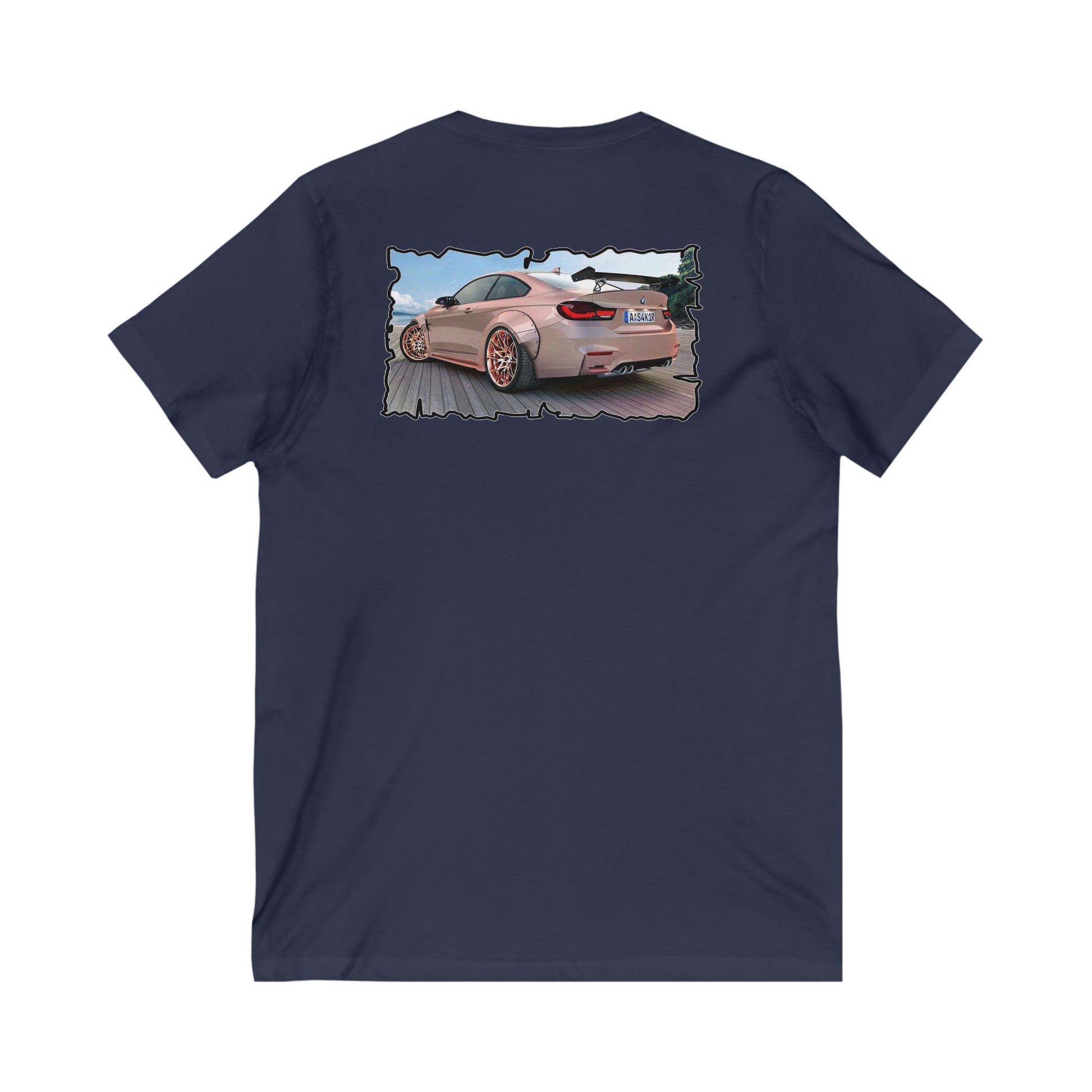 Customized pink BMW M3 (Unisex Jersey Short Sleeve V-neck - Comfortable Everyday Wear)