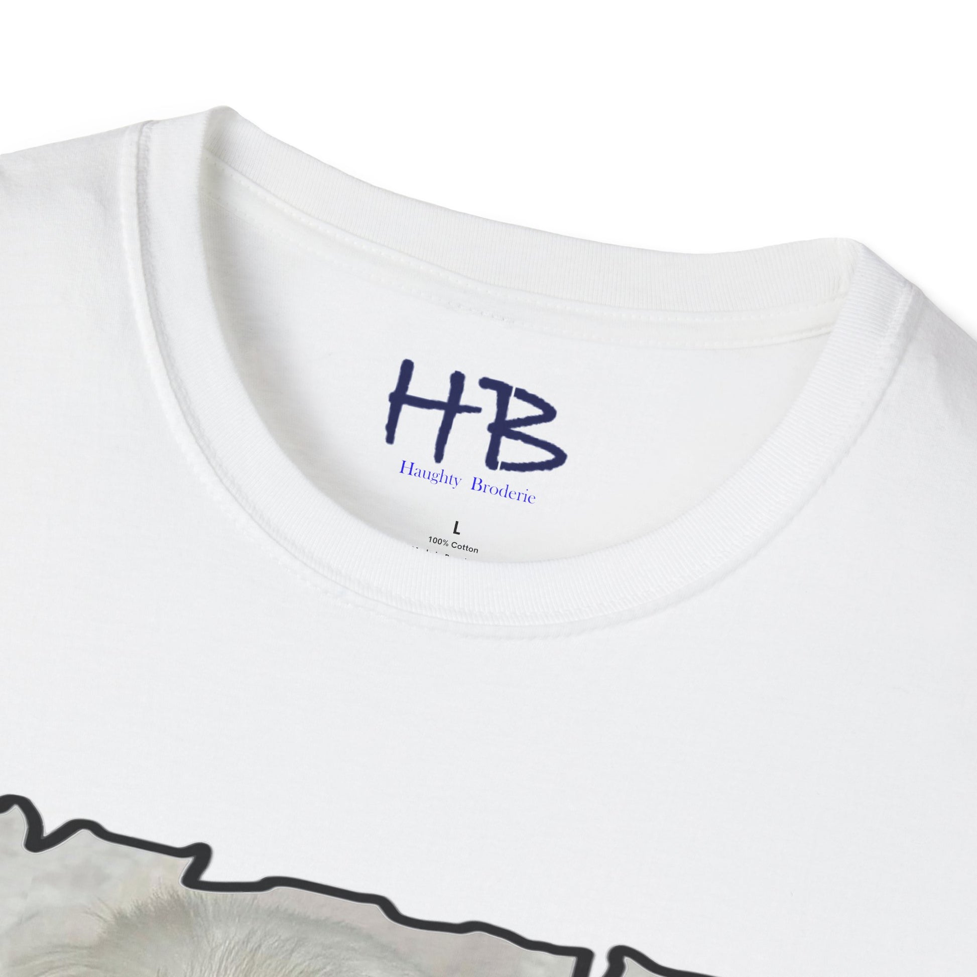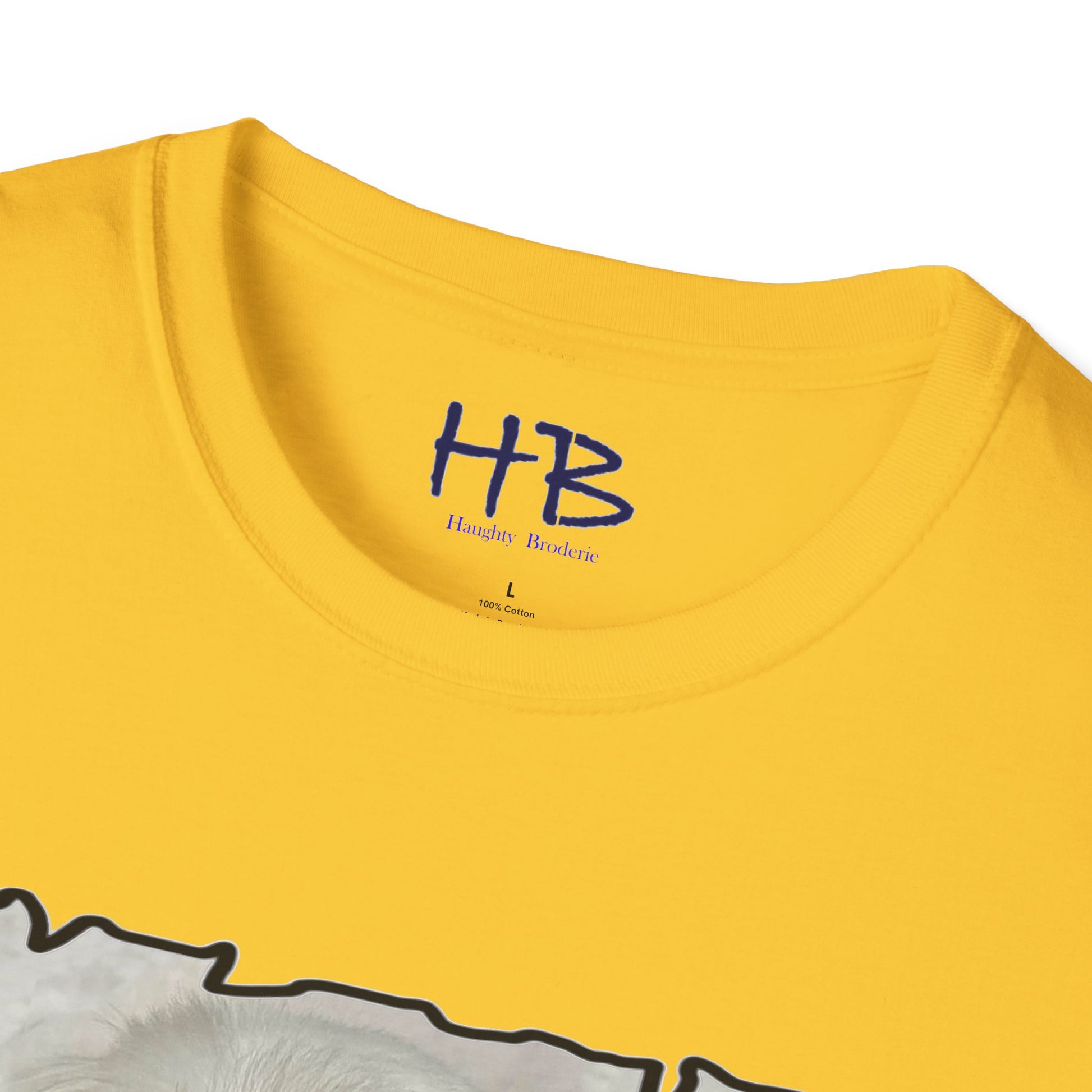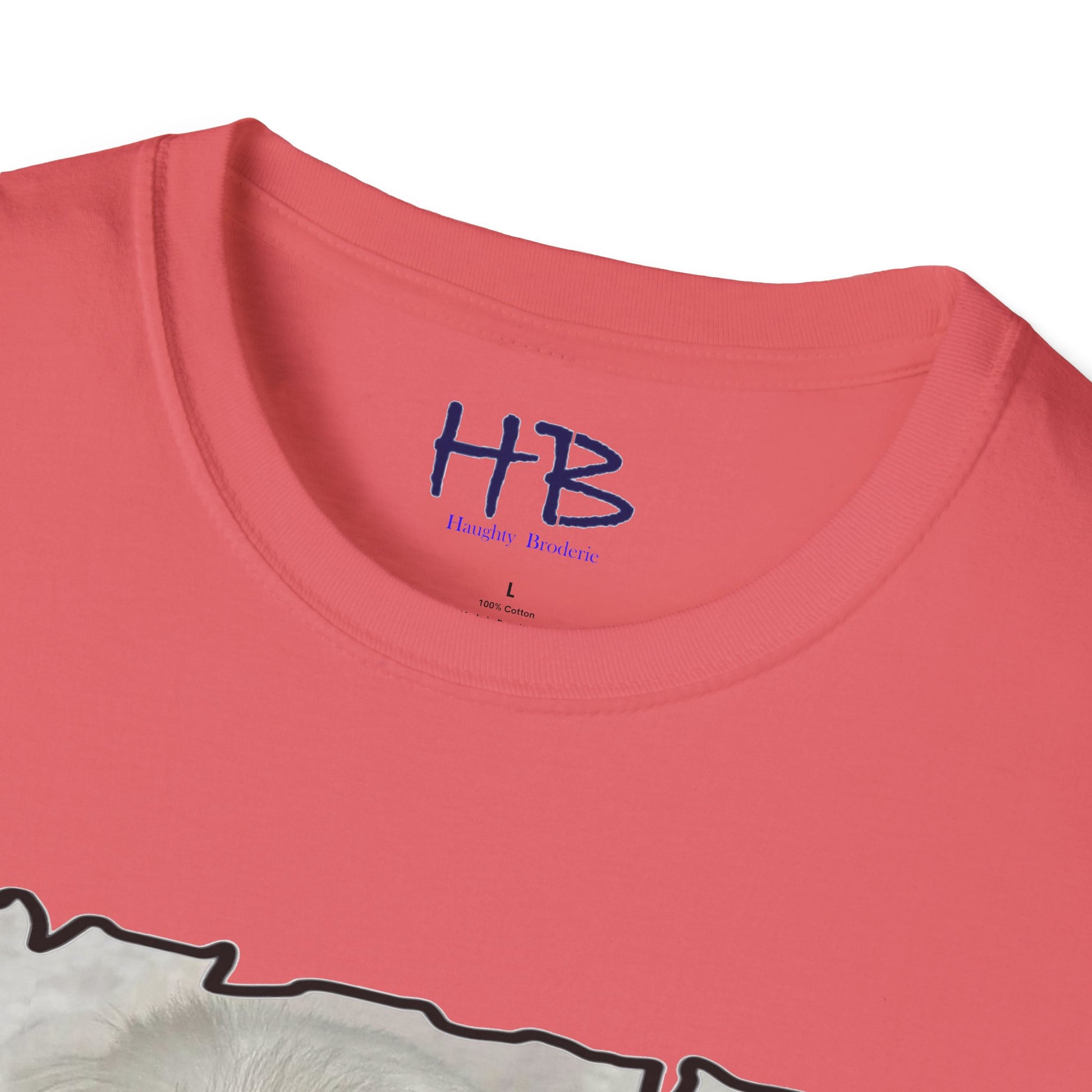Introducing a fabulous T-shirt featuring an adorable Bichon Maltese with its rosy tongue playfully sticking out and grinning for the camera. This tee shirt is perfect for dog lovers and fashionistas alike who are on the hunt for a top that showcases their love for their furry friend and their own self-confidence.