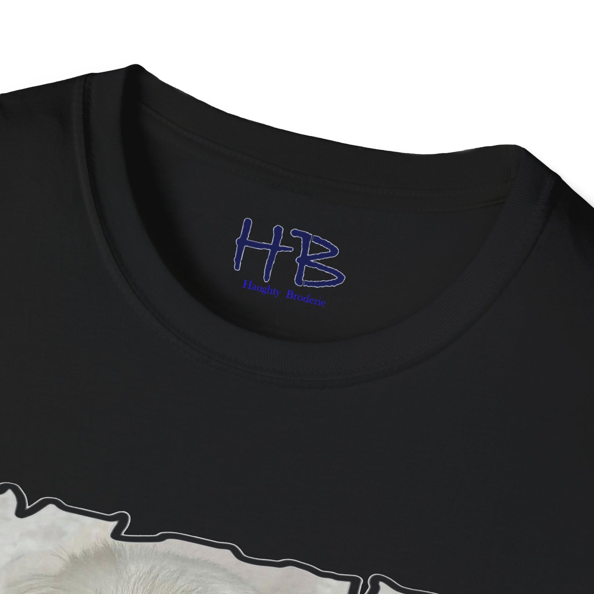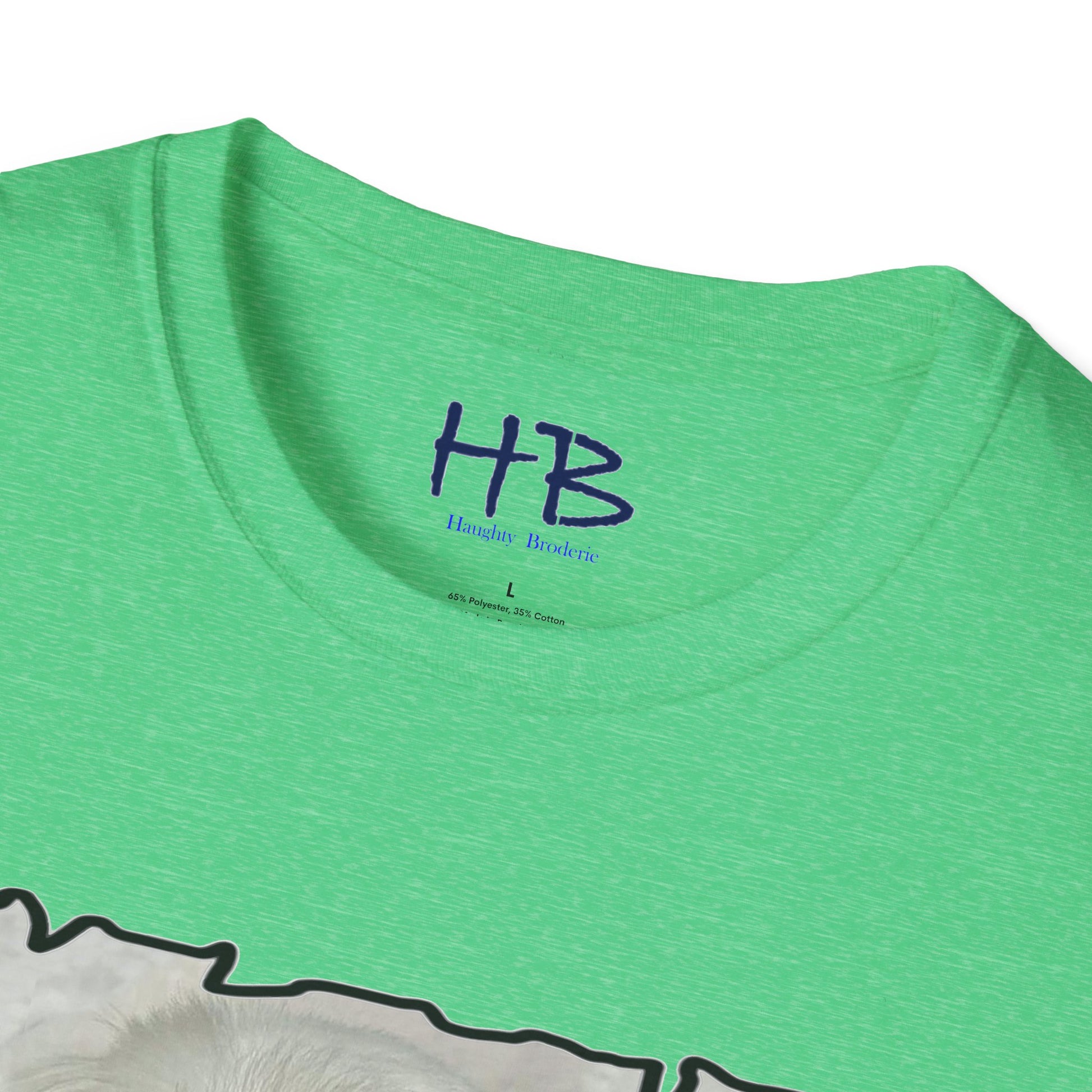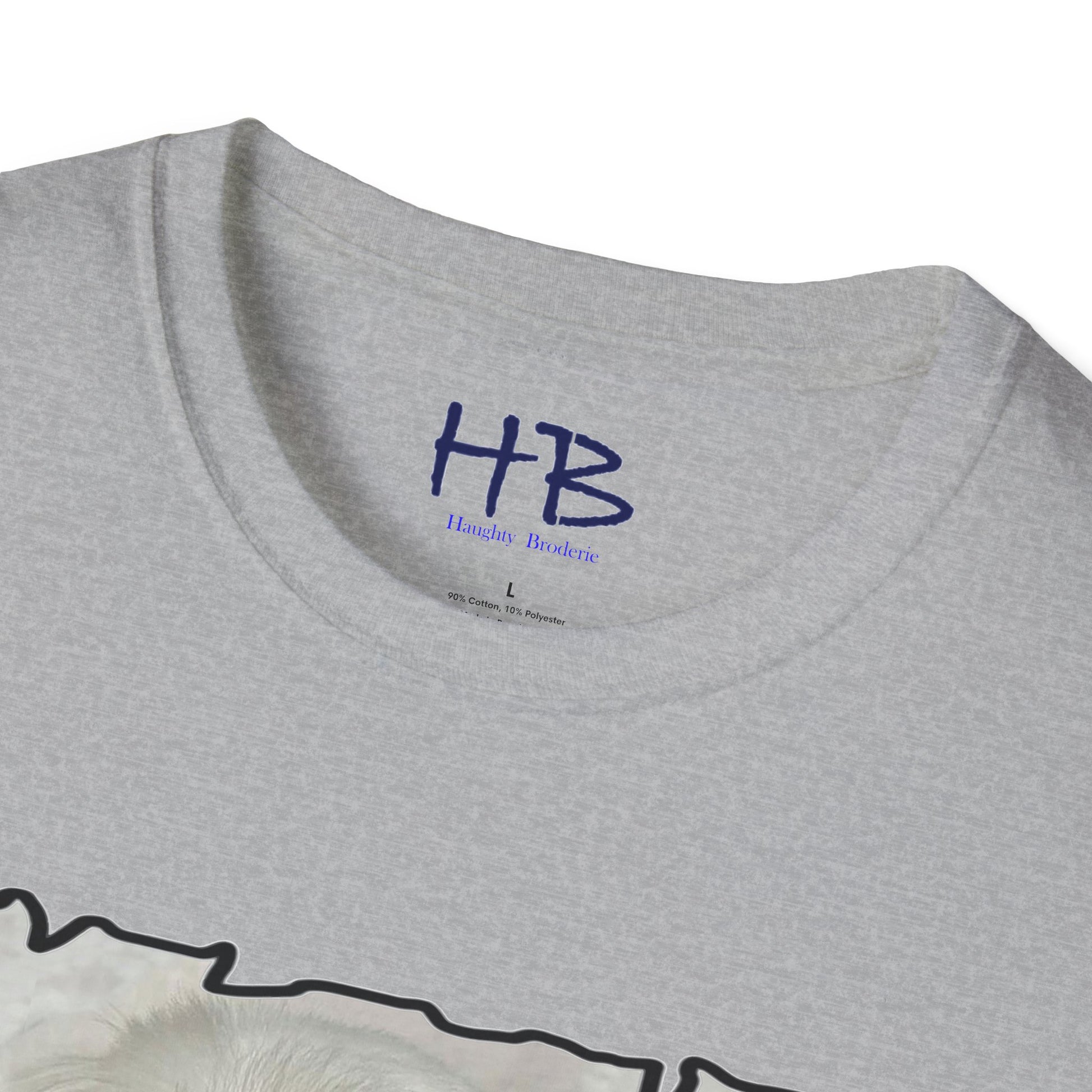 Introducing a fabulous T-shirt featuring an adorable Bichon Maltese with its rosy tongue playfully sticking out and grinning for the camera. This tee shirt is perfect for dog lovers and fashionistas alike who are on the hunt for a top that showcases their love for their furry friend and their own self-confidence.