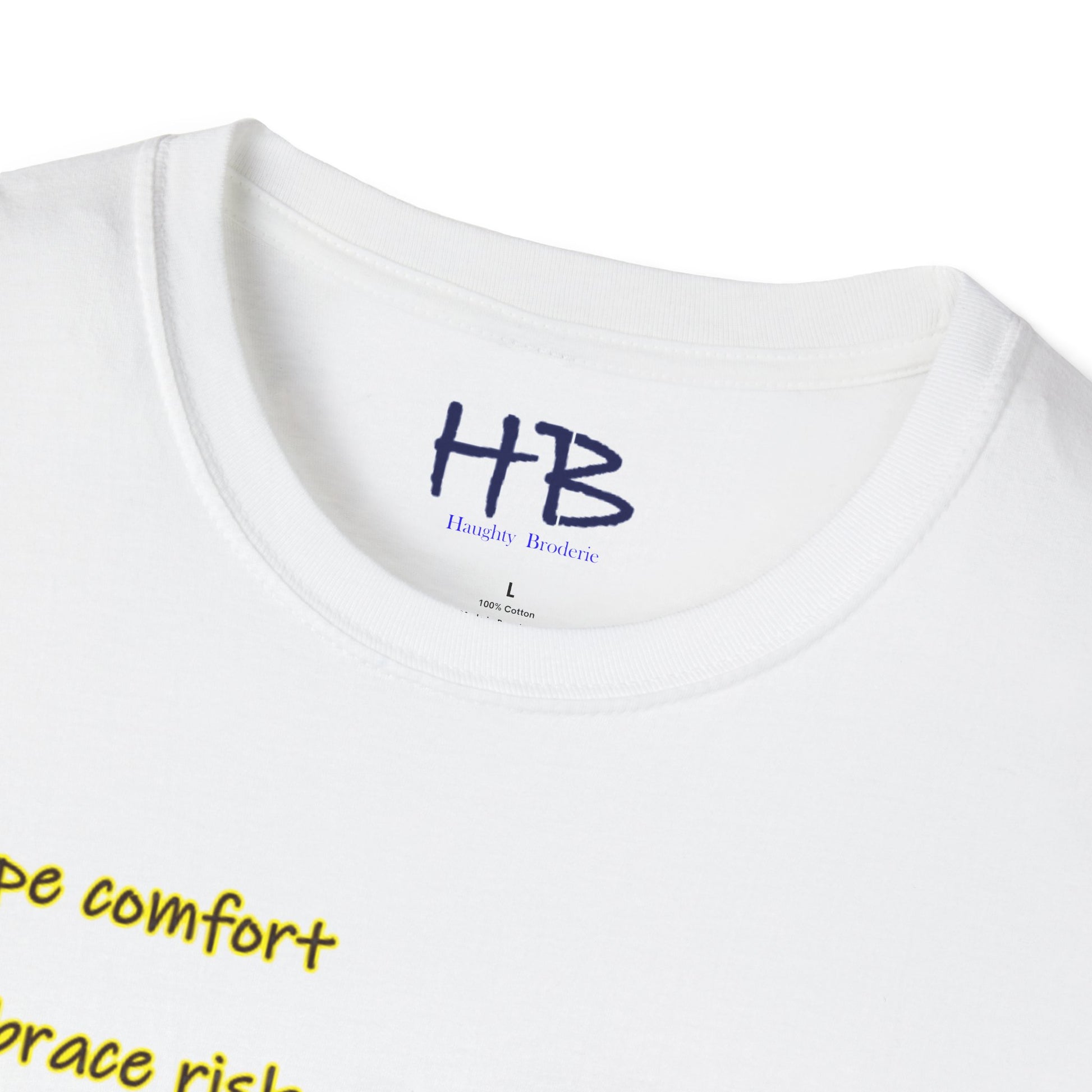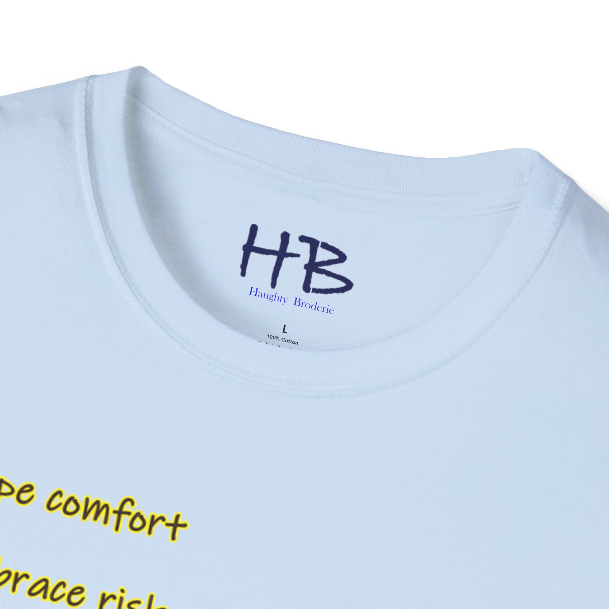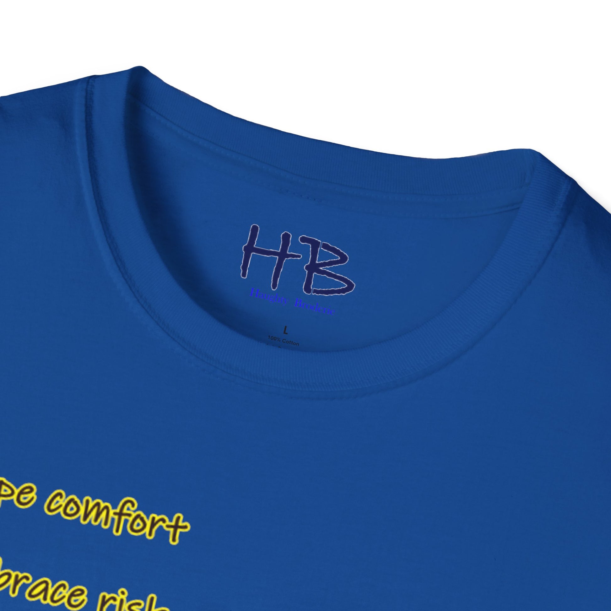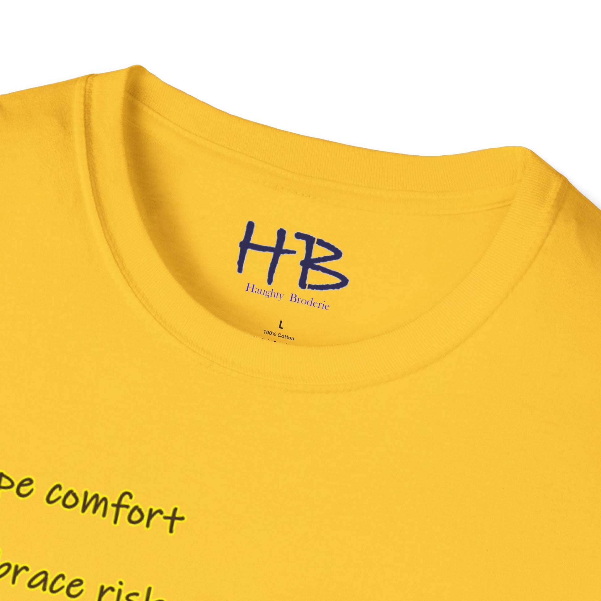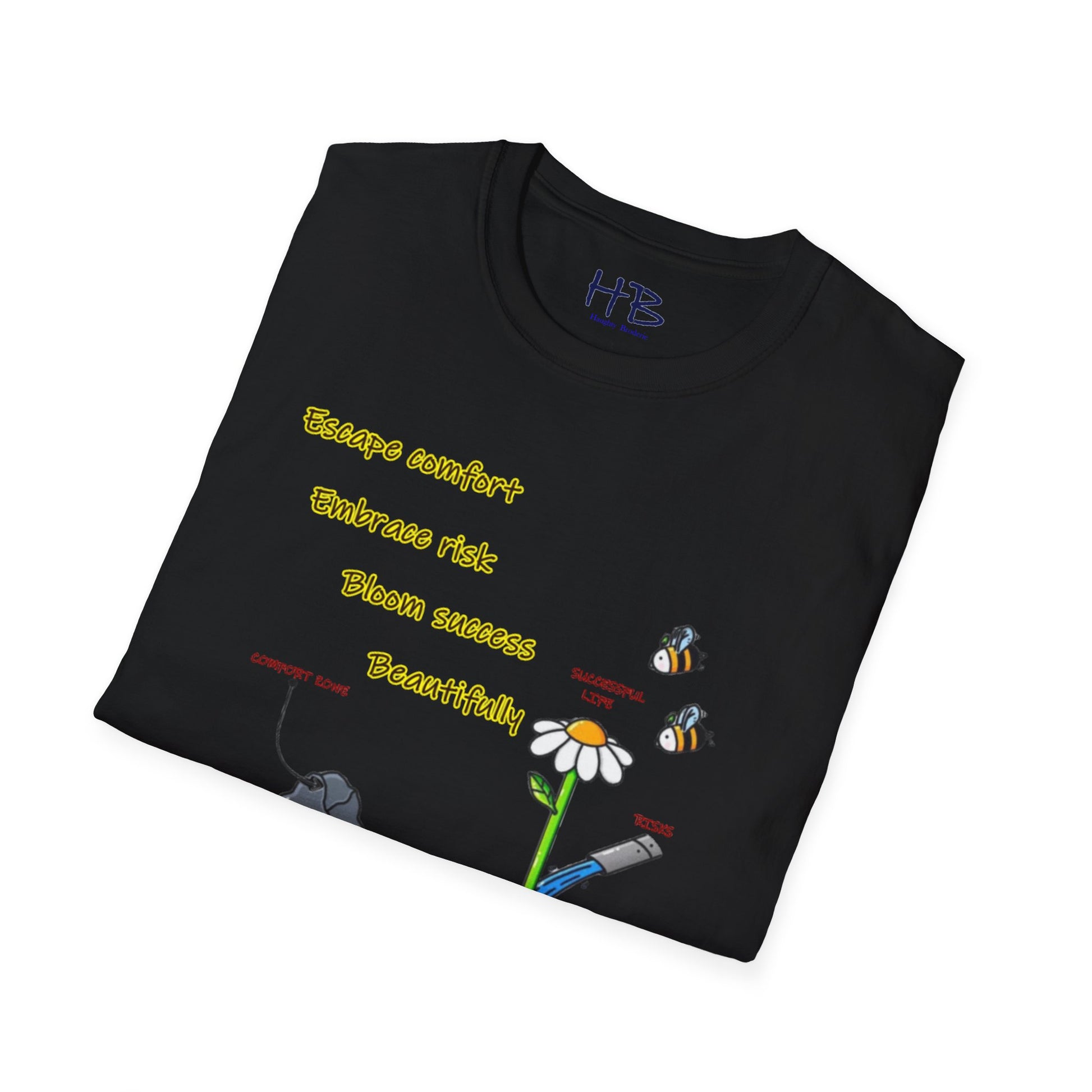Etched beneath this vibrant tableau are words to live by: "Escape comfort, Embrace risk, bloom success beautifully." Wear this emblem of resilience and ambition, inviting admiration and consensus from those attuned to the resonances of achievement. As you embrace the dynamic interplay of imagery and text, you not only don a garment but also embody a philosophy—a manifesto for a life lived boldly, outside the confines of the ordinary.