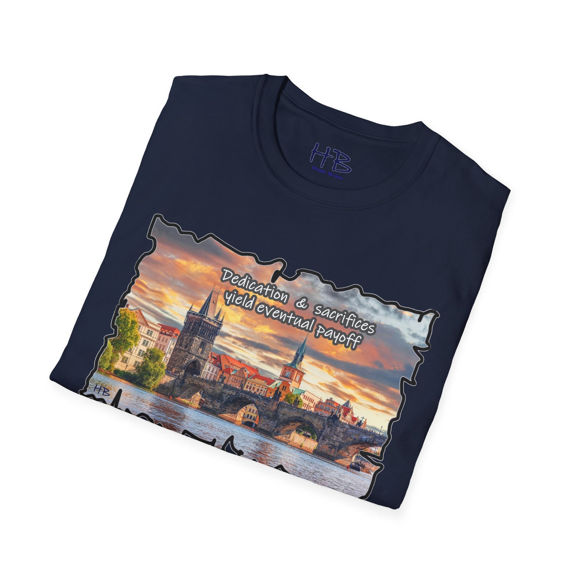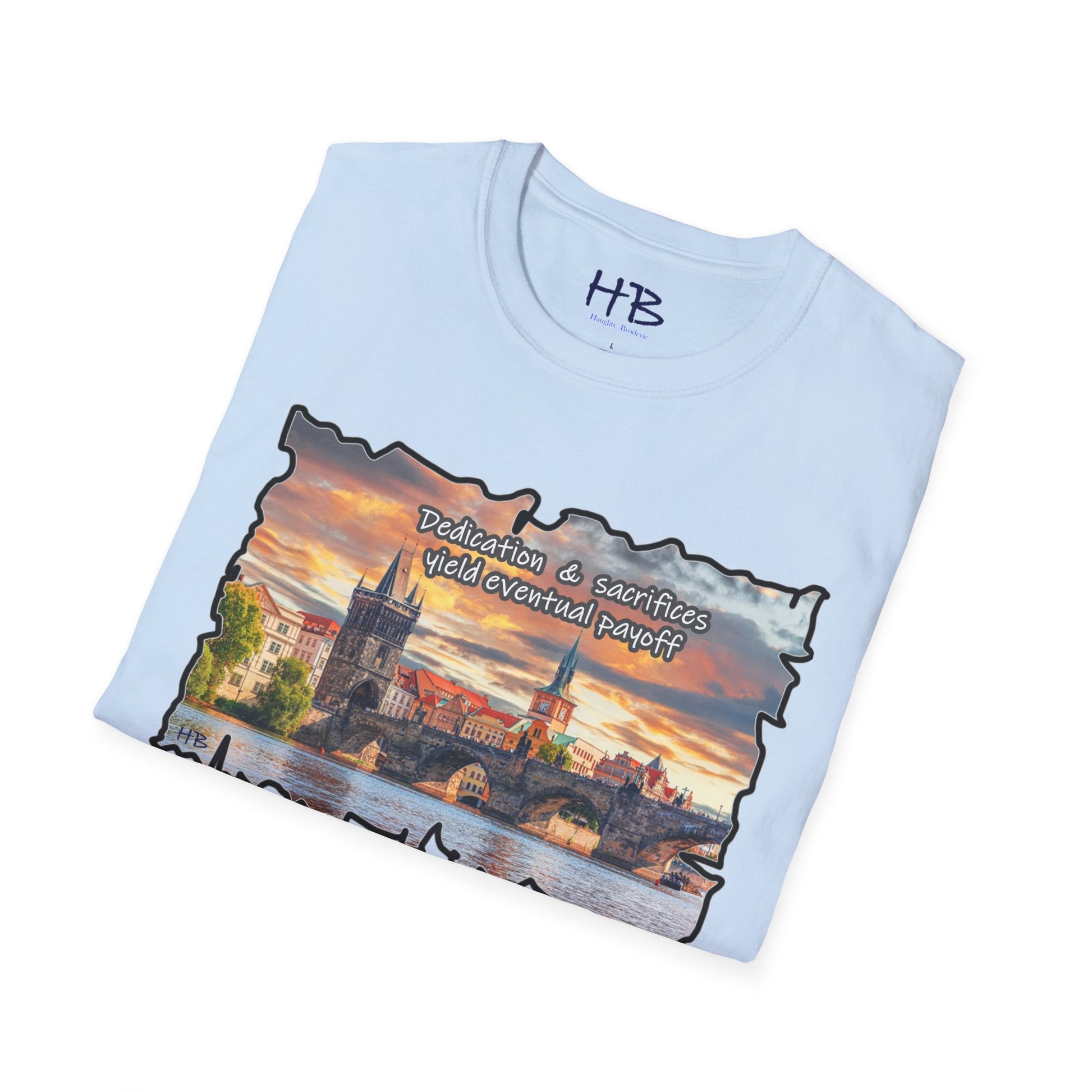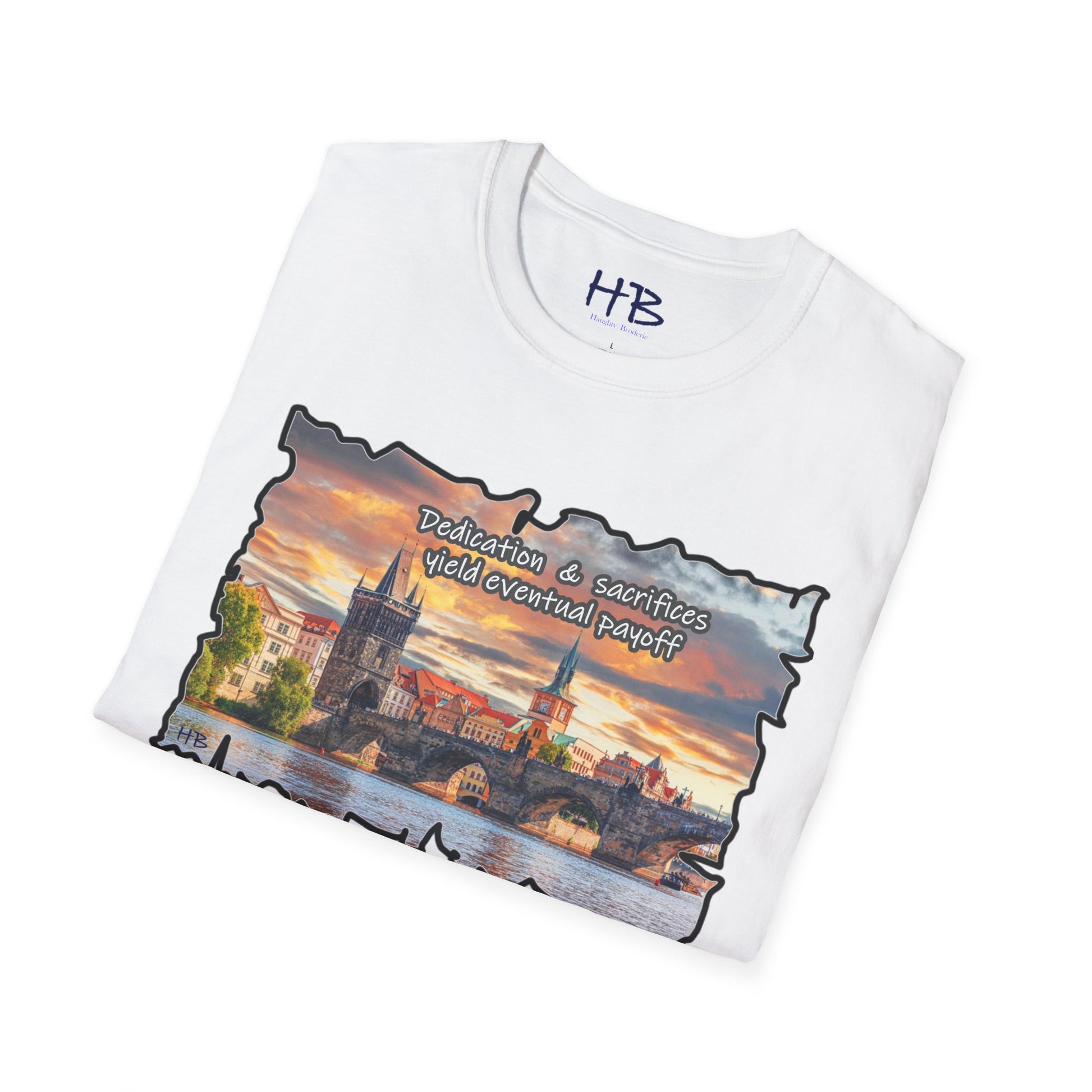 Introducing our exclusive masterpiece, a visual symphony captured on fabric, featuring a classical bridge connecting two worlds. This wearable dream isn't just a garment; it's an allegory of ambition and tenacity, a bridge from hard work to the reward waiting on the other side.