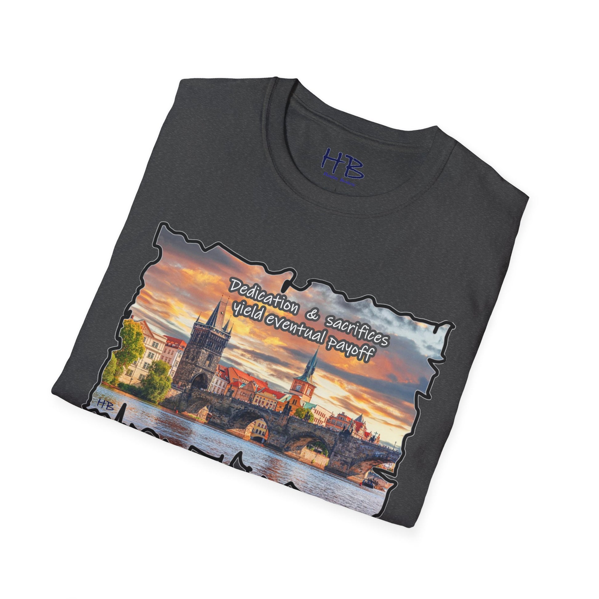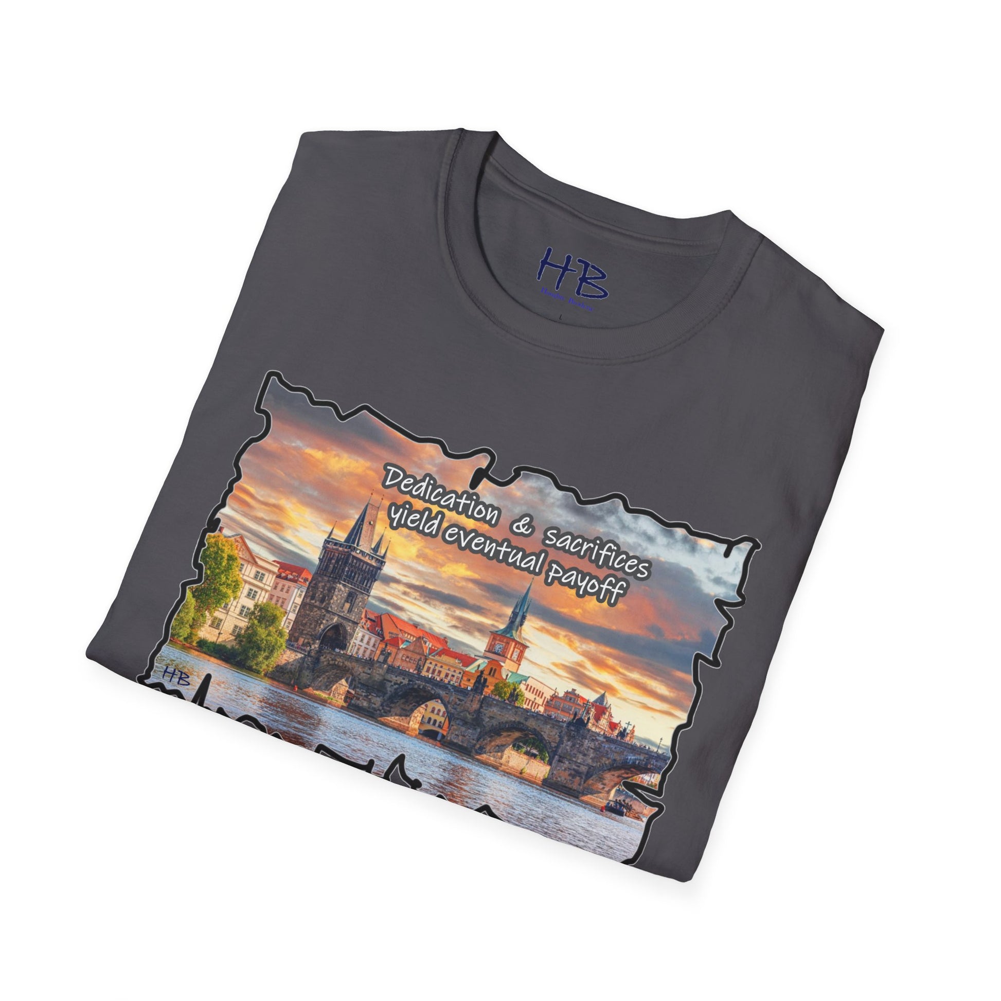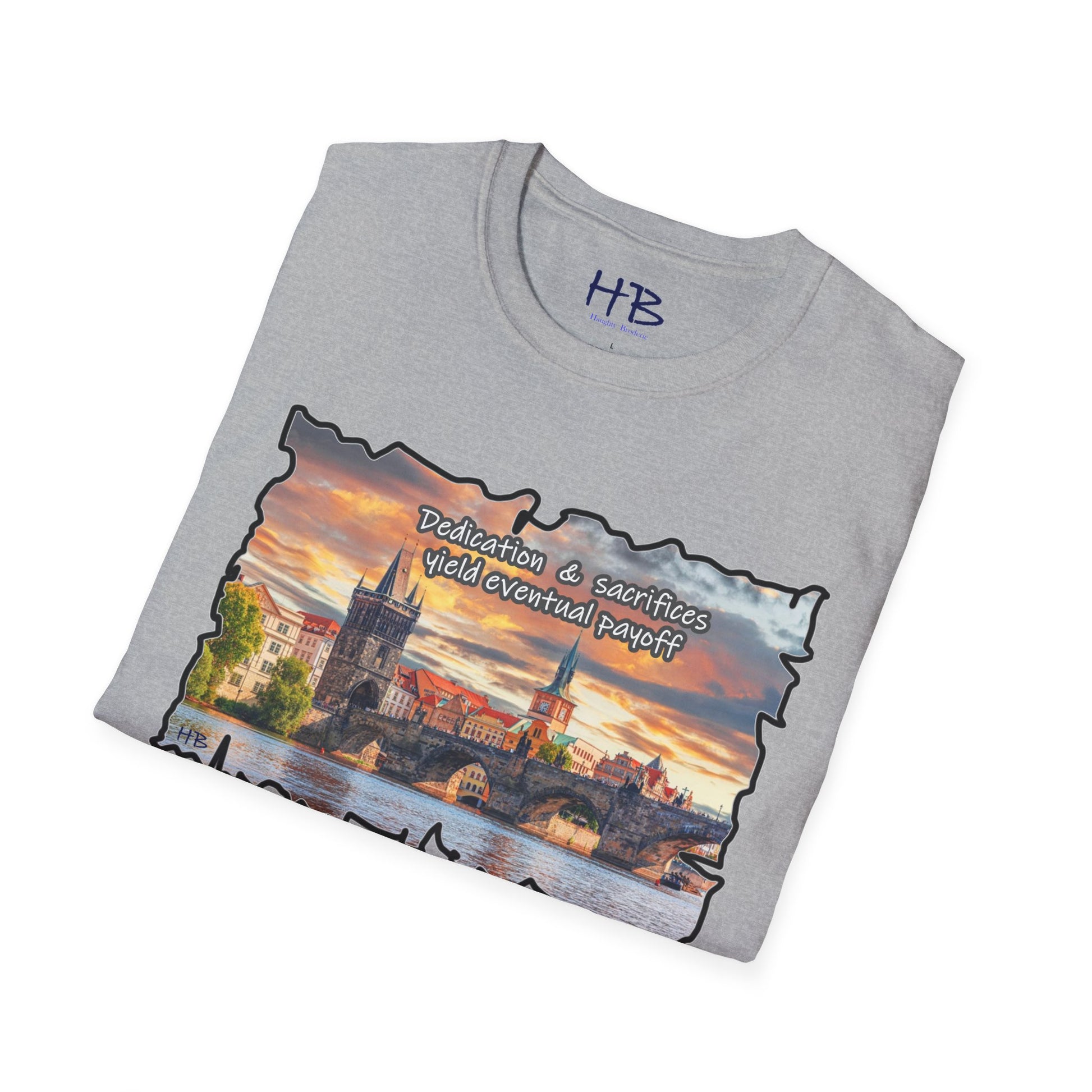 Introducing our exclusive masterpiece, a visual symphony captured on fabric, featuring a classical bridge connecting two worlds. This wearable dream isn't just a garment; it's an allegory of ambition and tenacity, a bridge from hard work to the reward waiting on the other side.