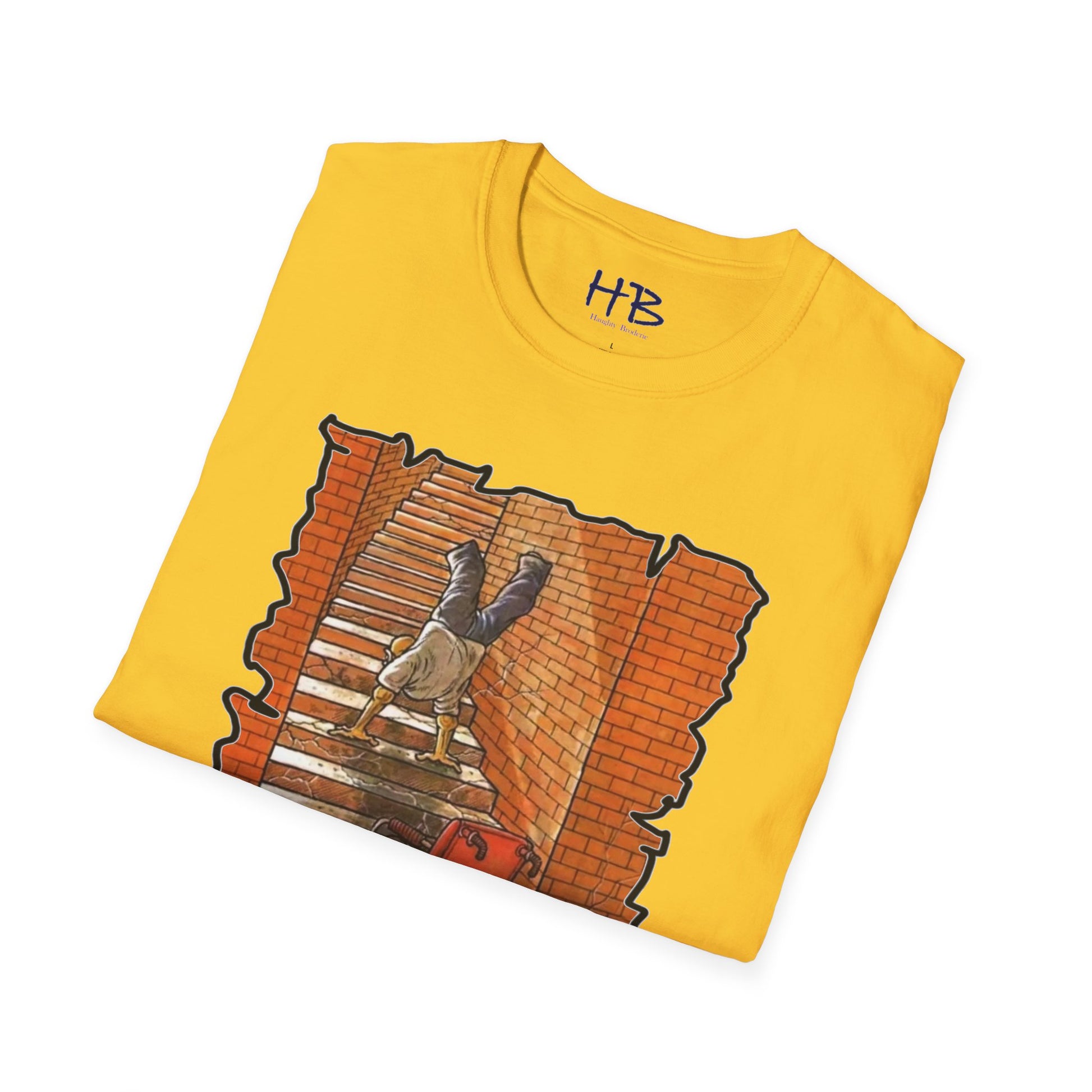 Step into empowerment and resilience with our exclusive "Ascend Beyond Limits" t-shirt, a wearable masterpiece that tells a compelling story of determination and triumph. This unique design showcases a remarkable illustration of a bald, handicapped man fearlessly conquering a staircase using his powerful arms, leaving his wheelchair on the ground floor. Every stroke of the artist's hand captures the essence of relentless progress, symbolizing the indomitable human spirit.