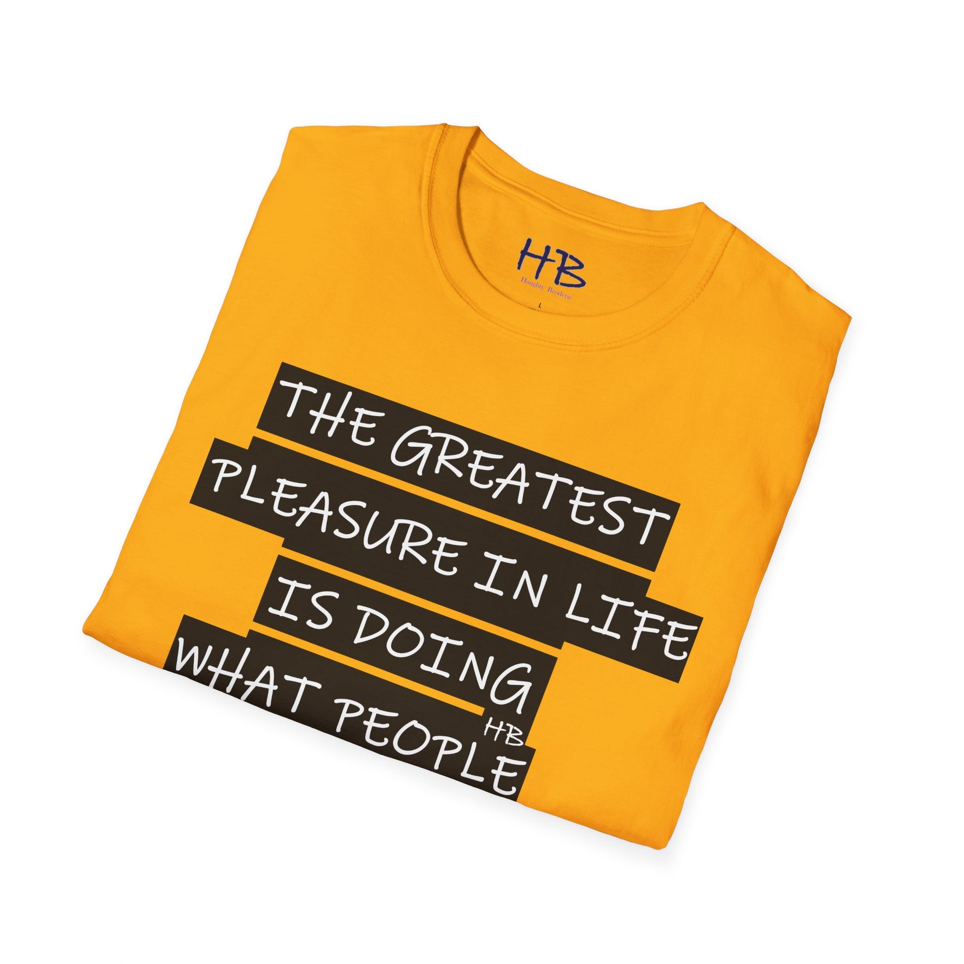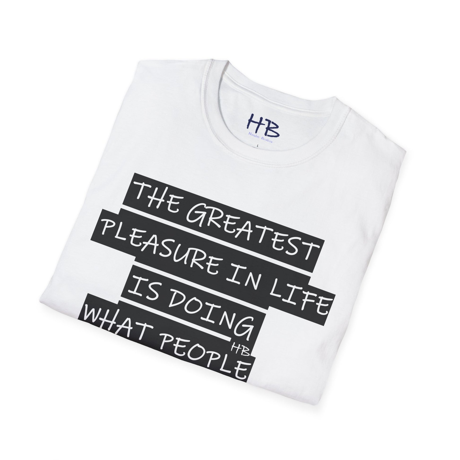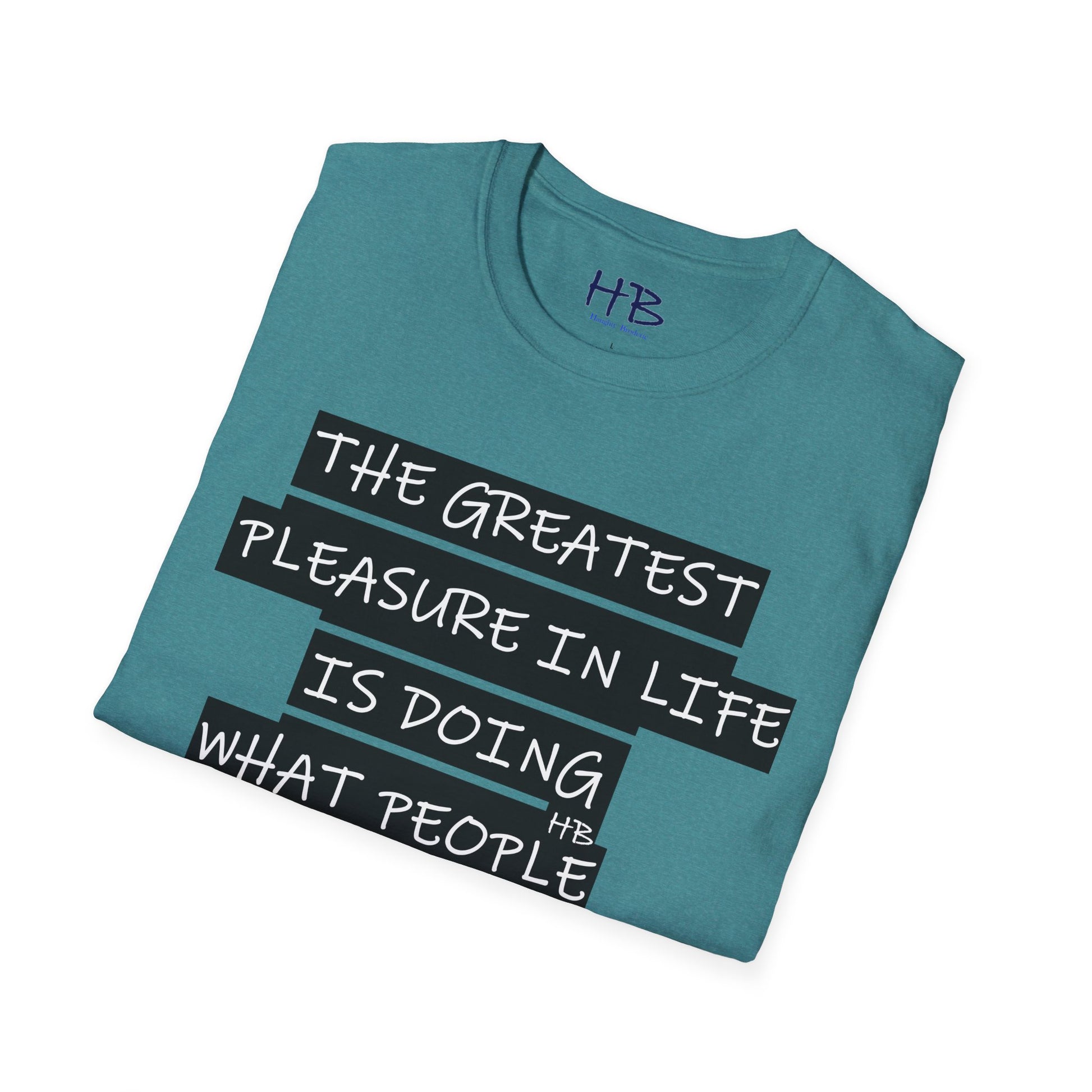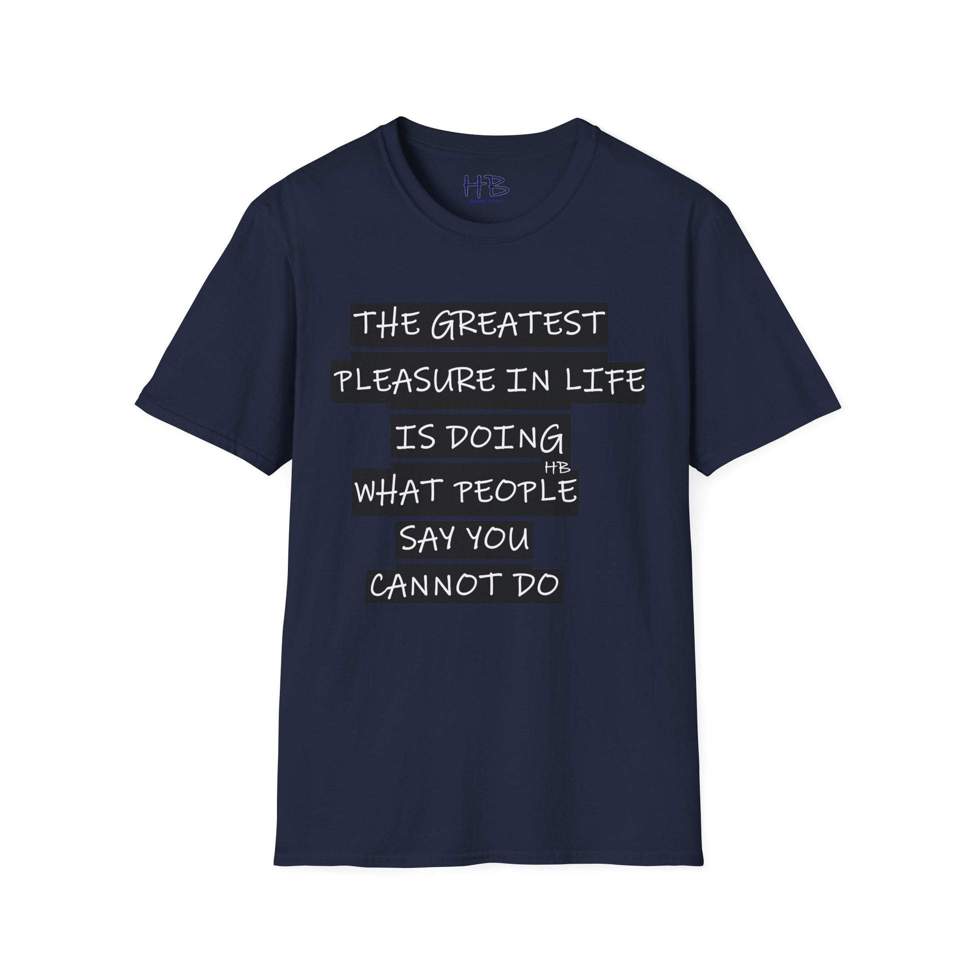 Step into a world of limitless possibilities with our captivating tee shirt featuring the powerful phrase, "The greatest pleasure in life is doing what people say you cannot do." This thought-provoking statement serves as a catalyst for personal growth, empowerment, and defying the limits imposed by others.