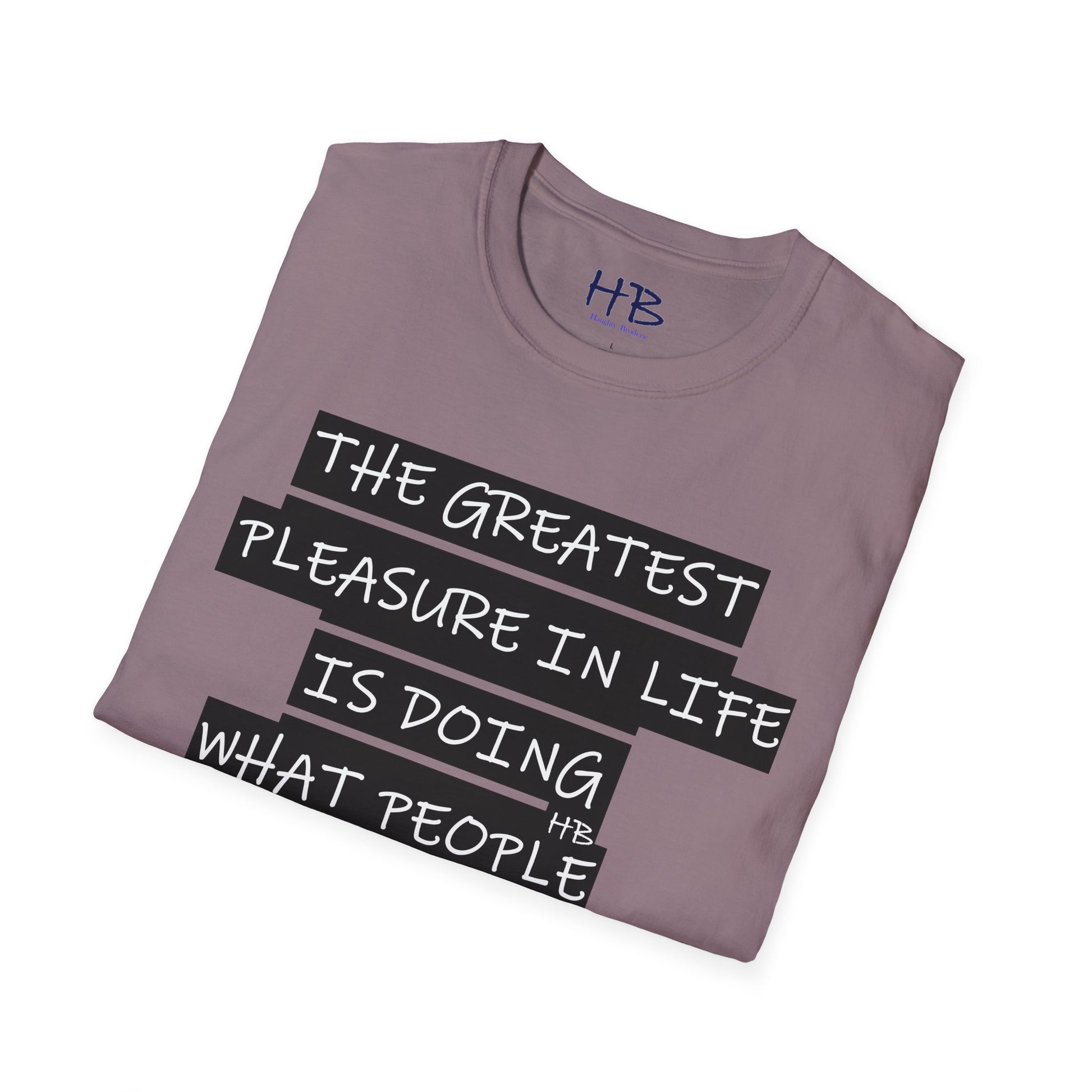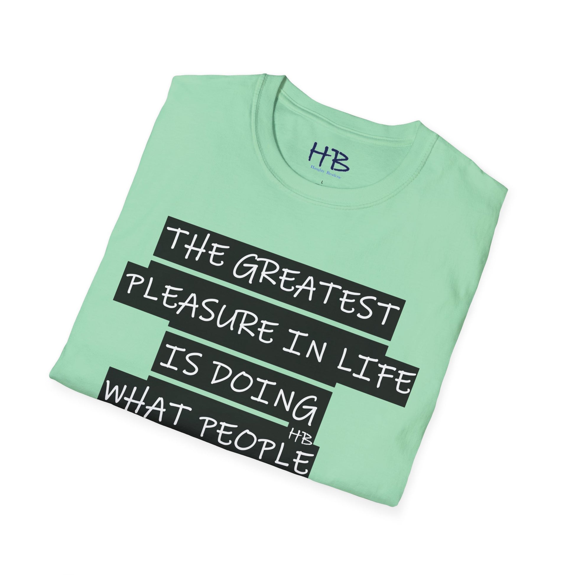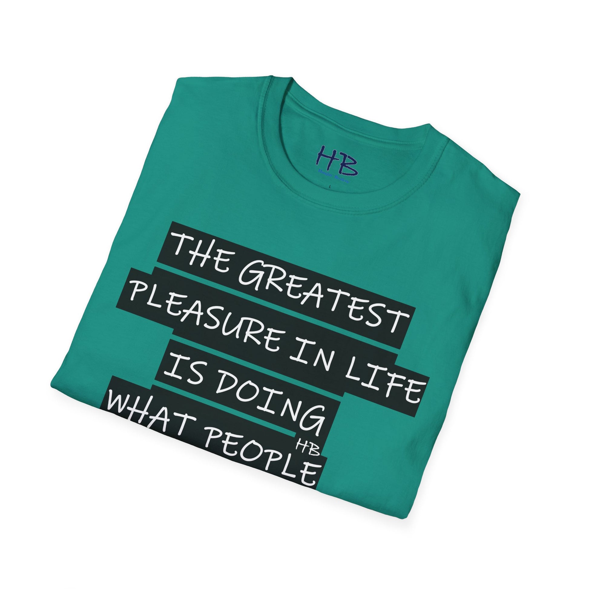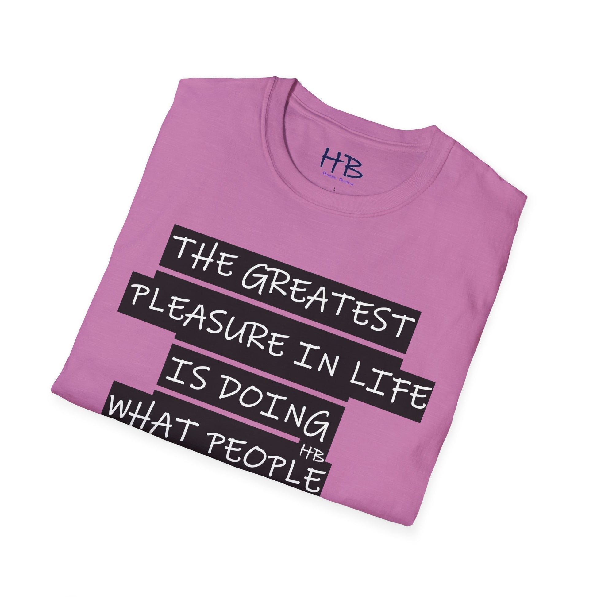 Step into a world of limitless possibilities with our captivating tee shirt featuring the powerful phrase, "The greatest pleasure in life is doing what people say you cannot do." This thought-provoking statement serves as a catalyst for personal growth, empowerment, and defying the limits imposed by others.