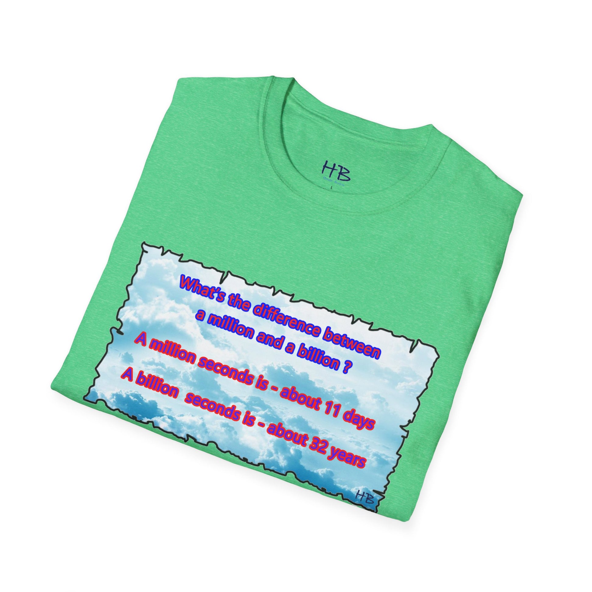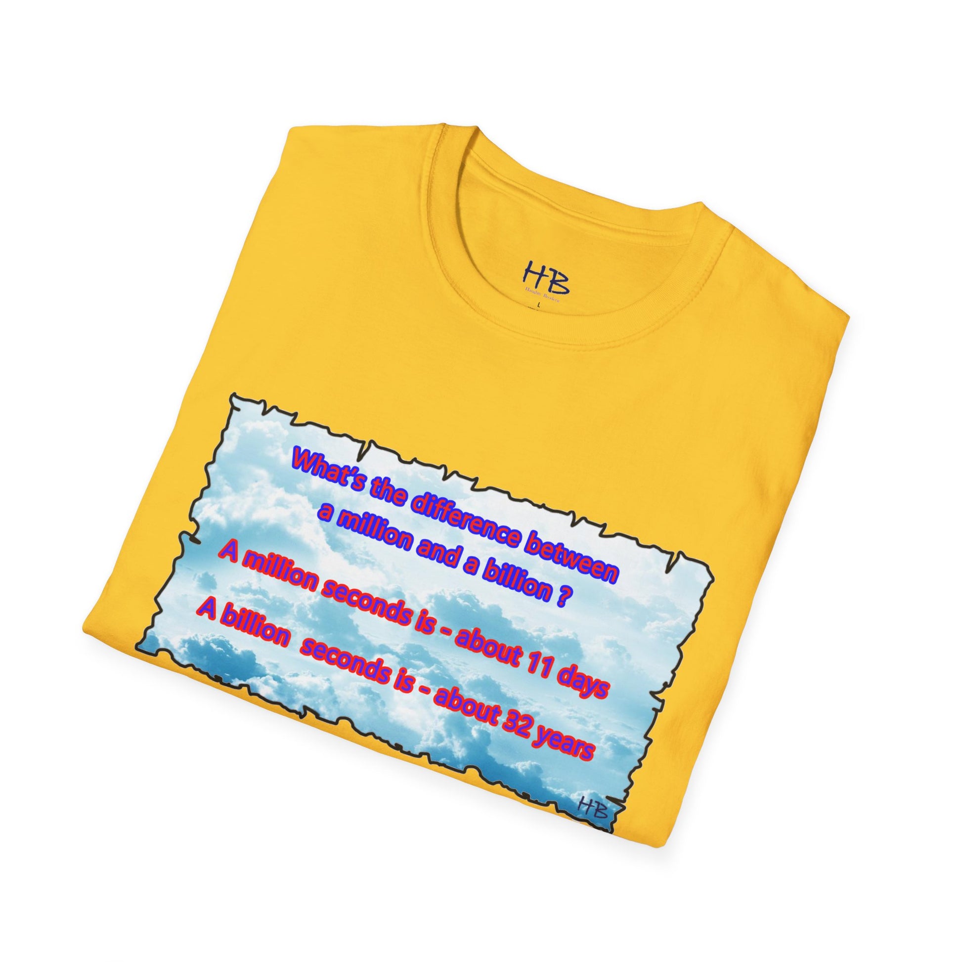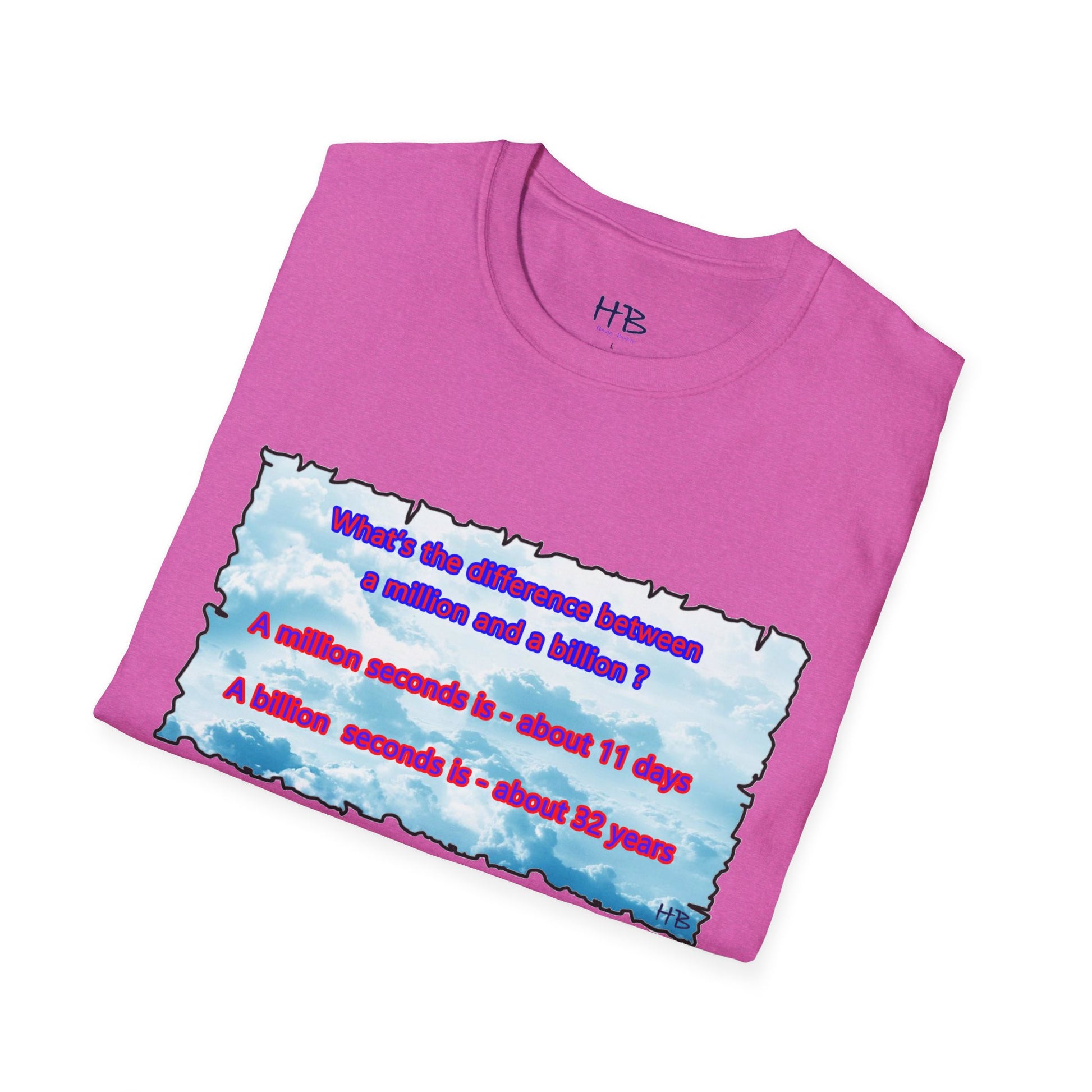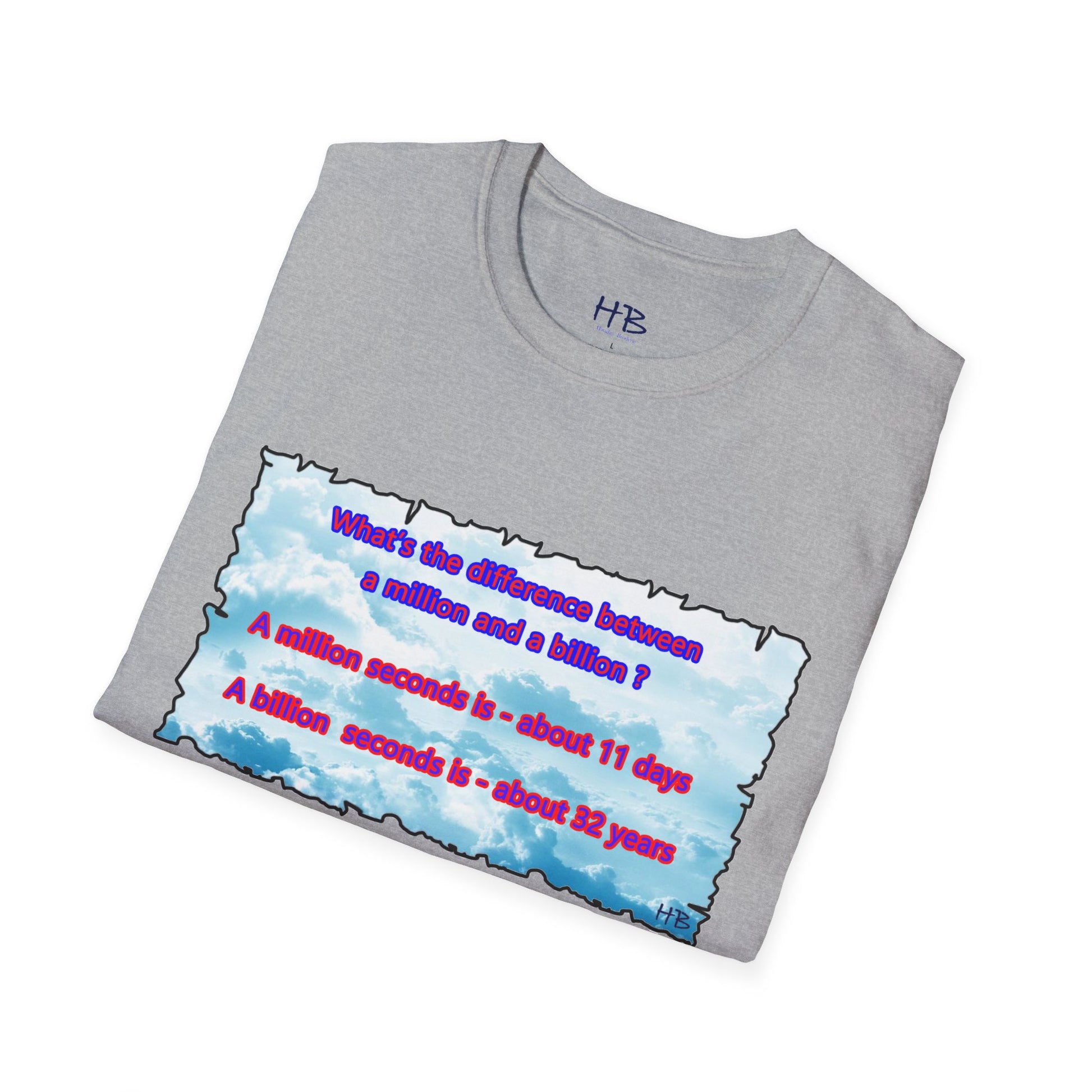 Introducing our captivating t-shirt featuring a mesmerizing sky adorned with fluffy clouds and an intriguing question that asks, "What sets apart a million from a billion?" This stylish tee is an absolute must-have for anyone eager to showcase their fascination with numbers and the cosmos.